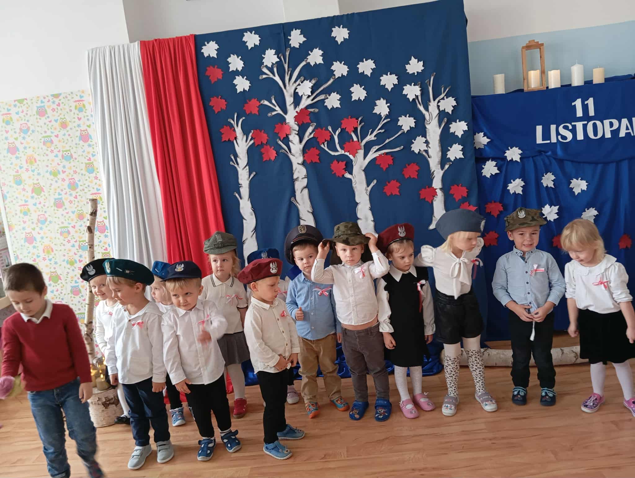 7 listopada w naszym przedszkolu obchodziliśmy uroczystość z okazji 11 Listopada – Narodowe Święto Niepodległości. Z tej okazji dzieci ze wszystkich grup zebrali się, aby uroczyście świętować ten wyjątkowy dla Polaków czas. Przedszkolaki odśpiewały hymn państwowy „Mazurek Dąbrowskiego” pamiętając przy tym o zachowaniu należytej postawy. Uroczystość z okazji Narodowego Święta Niepodległości miała na celu rozwijanie wśród wychowanków naszego przedszkola poczucia przynależności narodowej, pielęgnowanie polskiej kultury i tradycji. Jednocześnie była pouczającą lekcją historii i patriotyzmu.