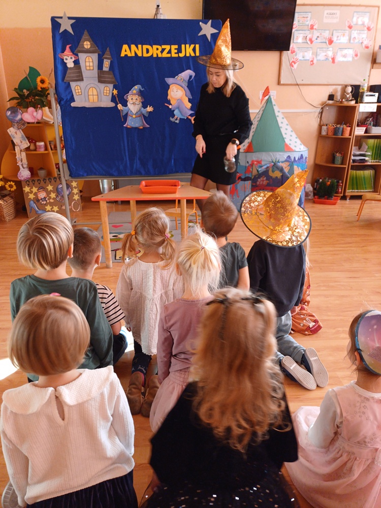 W naszej grupie odbyły się magiczne Andrzejki! Dzieci wróżyły, odkrywały tajemnice przyszłości i wzięły udział w ciekawych eksperymentach. Wiele z nich przebrało się za wróżki, dodając wydarzeniu wyjątkowego, bajkowego klimatu. Na zakończenie wykonały piękne prace plastyczne. To był dzień pełen uśmiechów, radości i dobrej zabawy!