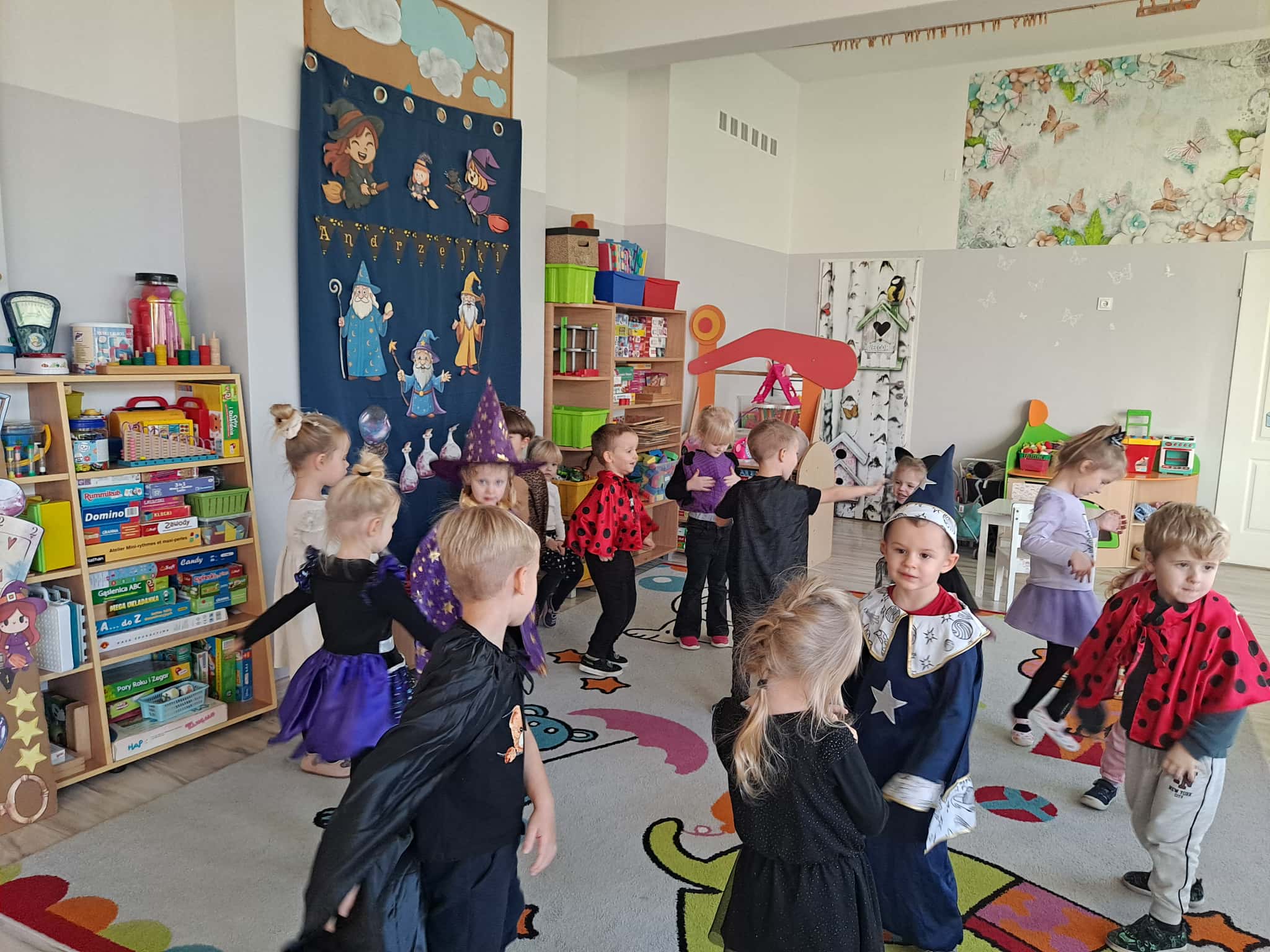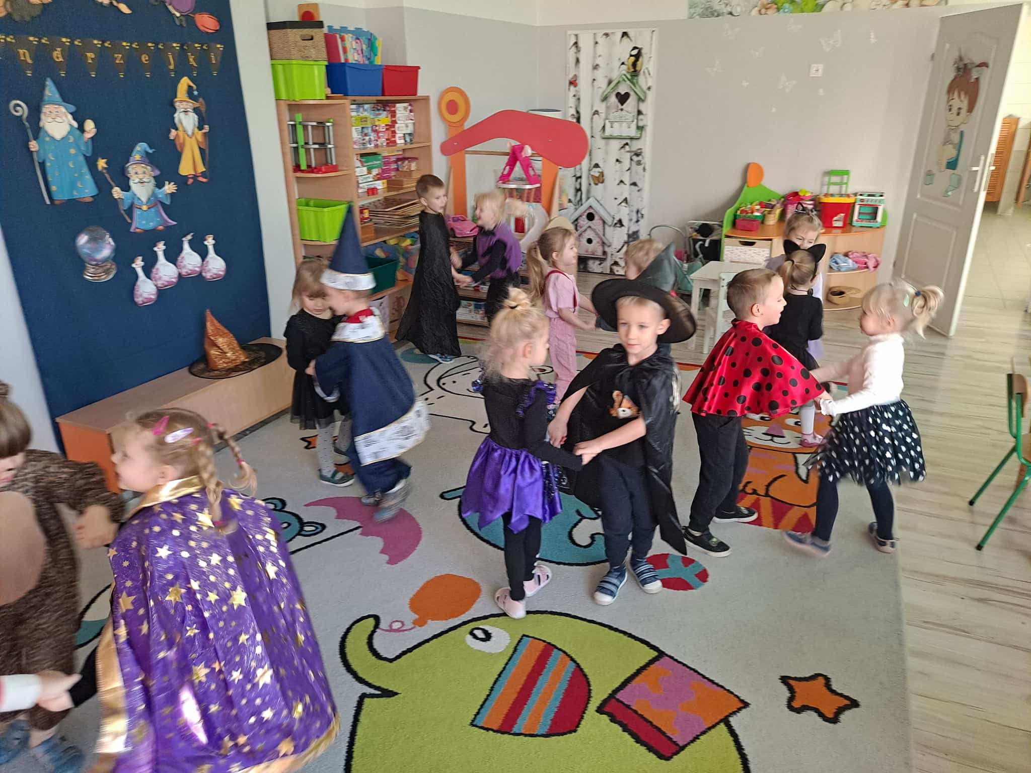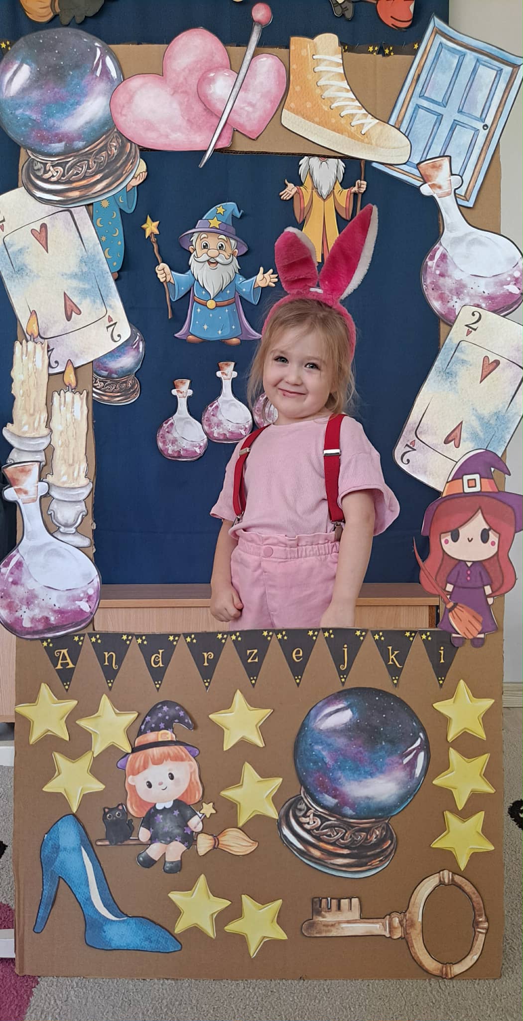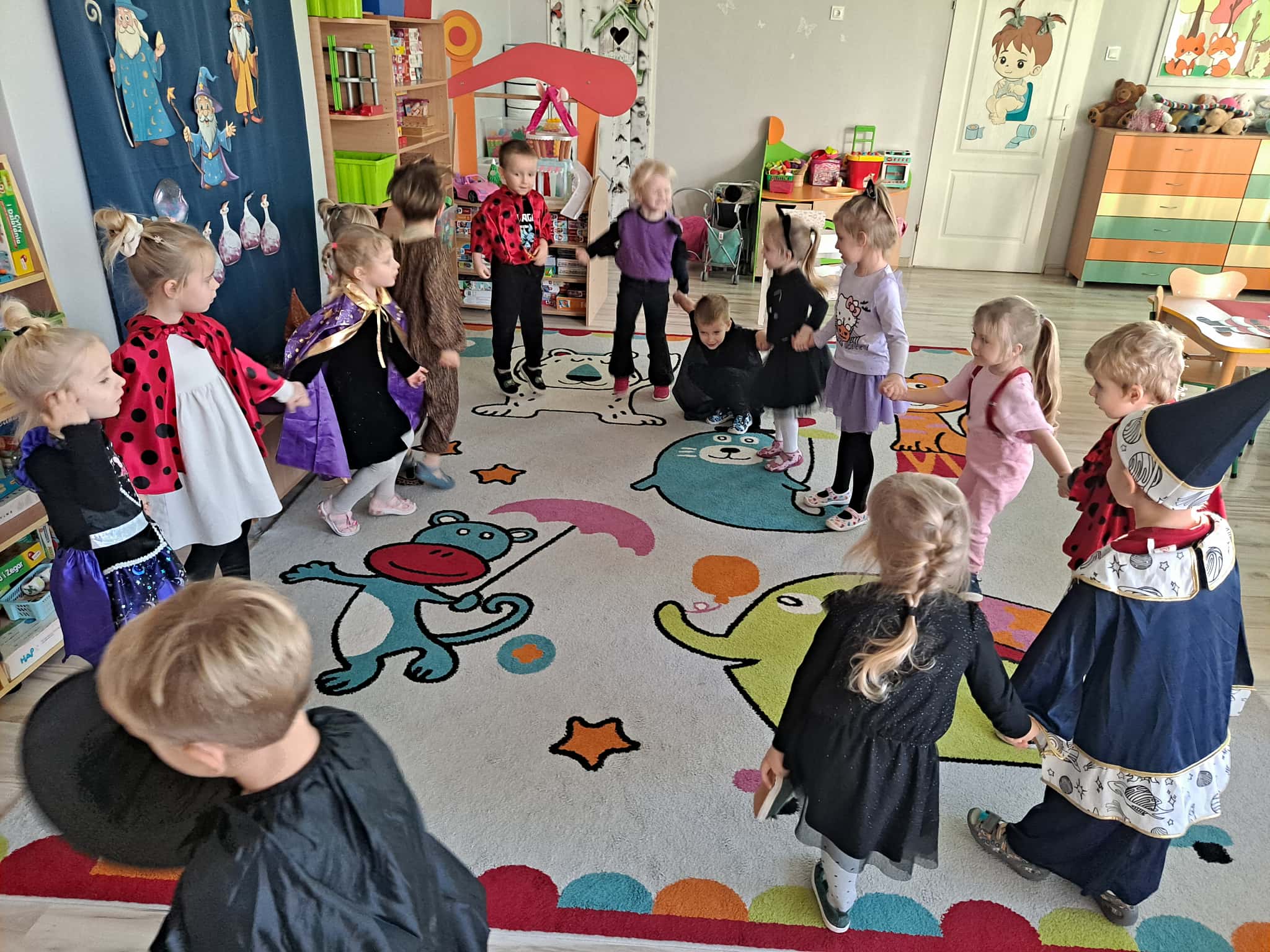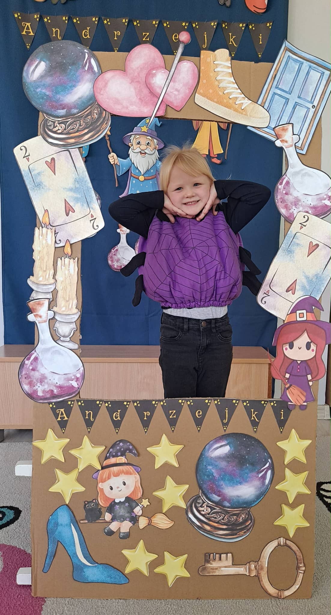 Dzieci przyszły przebrane za czarodziei i czarownice, dzięki czemu już od rana w sali unosił się wyjątkowy, bajkowy klimat. Spotkanie rozpoczęliśmy od krótkiego filmu edukacyjnego, z którego przedszkolaki dowiedziały się, czym są Andrzejki, skąd wzięła się ta tradycja oraz jakie zwyczaje jej towarzyszą.