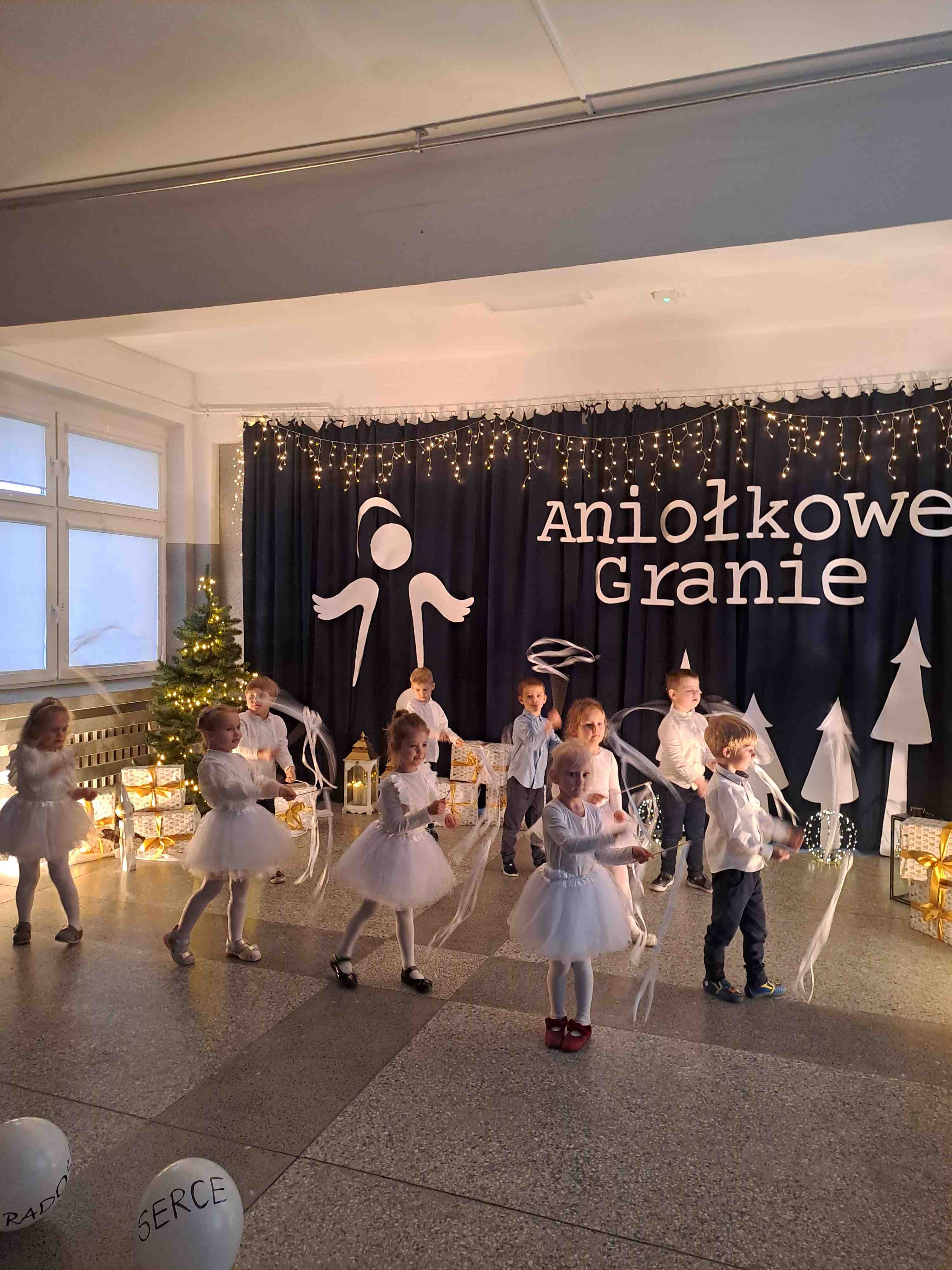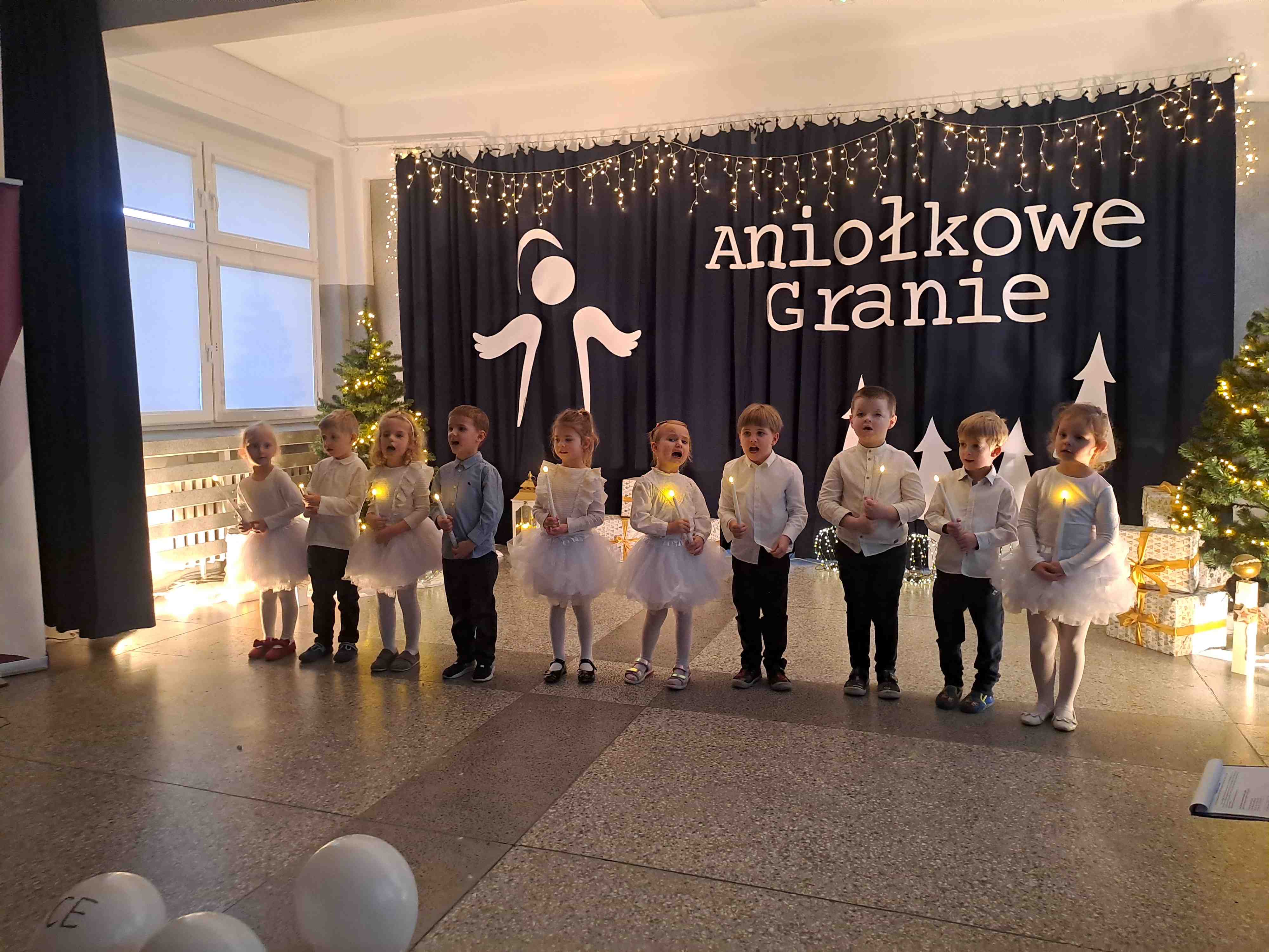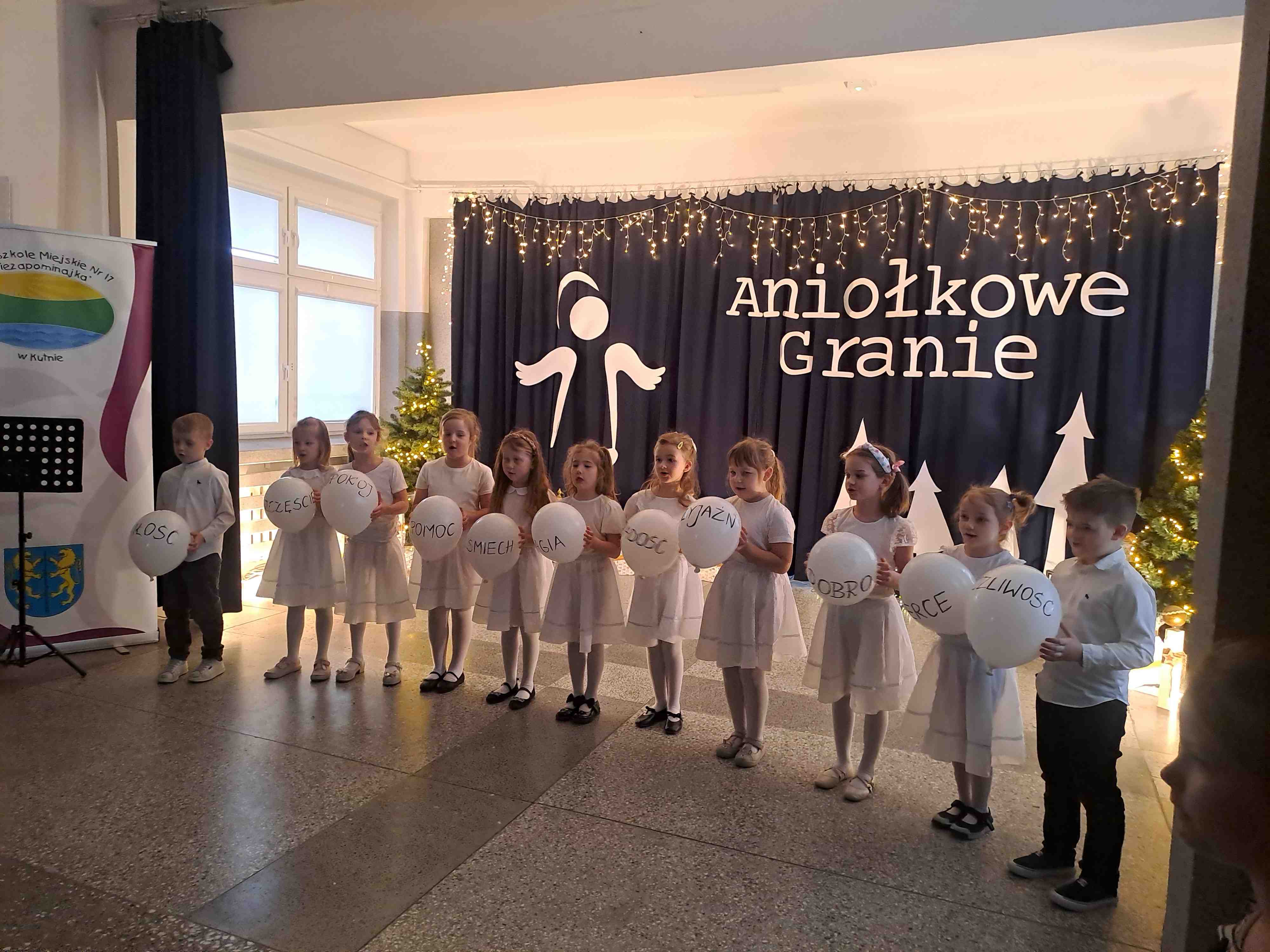 „Aniołkowe Granie” to Ogólnopolski Projekt Edukacyjny, który wplata ideę rodzicielstwa zastępczego w działania edukacji. Głównym celem projektu jest integracja środowisk przedszkoli, szkół i placówek opiekuńczych, niesienie bezinteresownej pomocy poprzez zbiórki darów na rzecz rodzin i ośrodków, a zwieńczeniem projektu są uroczyste koncerty charytatywne odbywające się w całej Polsce. Przedszkole Miejskie Nr 17 „Niezapominajka” w Kutnie po raz piąty przystąpiło w bieżącym roku szkolnym do w/w projektu. Z tej okazji zorganizowana została na terenie przedszkola zbiórka darów dla podopiecznych Placówki Opiekuńczo – Wychowawczej „Tęcza” w Kutnie. Dnia 28 stycznia odbył się uroczysty koncert przygotowany pod kierunkiem p. Anety Barylskiej i p. Anny Pałczyńskiej, w którym udział wzięły dzieci z oddziałów przedszkolnych oraz absolwenci przedszkola, uczniowie szkół podstawowych oraz Państwowej Szkoły Muzycznej w Kutnie. W koncercie uczestniczyli zaproszeni goście – p. Jolanta Siuda – Dyrektor Przedszkola Miejskiego Nr 17 „Niezapominajka”, p. Dorota Bonawenturczak – Wicedyrektor Przedszkola Miejskiego Nr 17 „Niezapominajka”, p. Aleksandra Krysińska – Wicedyrektor Przedszkola Miejskiego Nr 17 „Niezapominajka” , p. Dorota – Ćwirko Godycka – Dyrektor Placówki Opiekuńczo – Wychowawczej „Tęcza” wraz z podopiecznymi, a także rodzice i bliscy dzieci występujących na scenie. Koncert dostarczył zgromadzonej widowni wielu pięknych odczuć, pełnych emocji i wzruszenia. Na scenie pojawili się wokaliści, tancerze i instrumentaliści. Dzieci wykonywały utwory nawiązujące do niesienia pomocy, wartości takich jak dobro, szlachetność, życzliwość, bezinteresowność.
