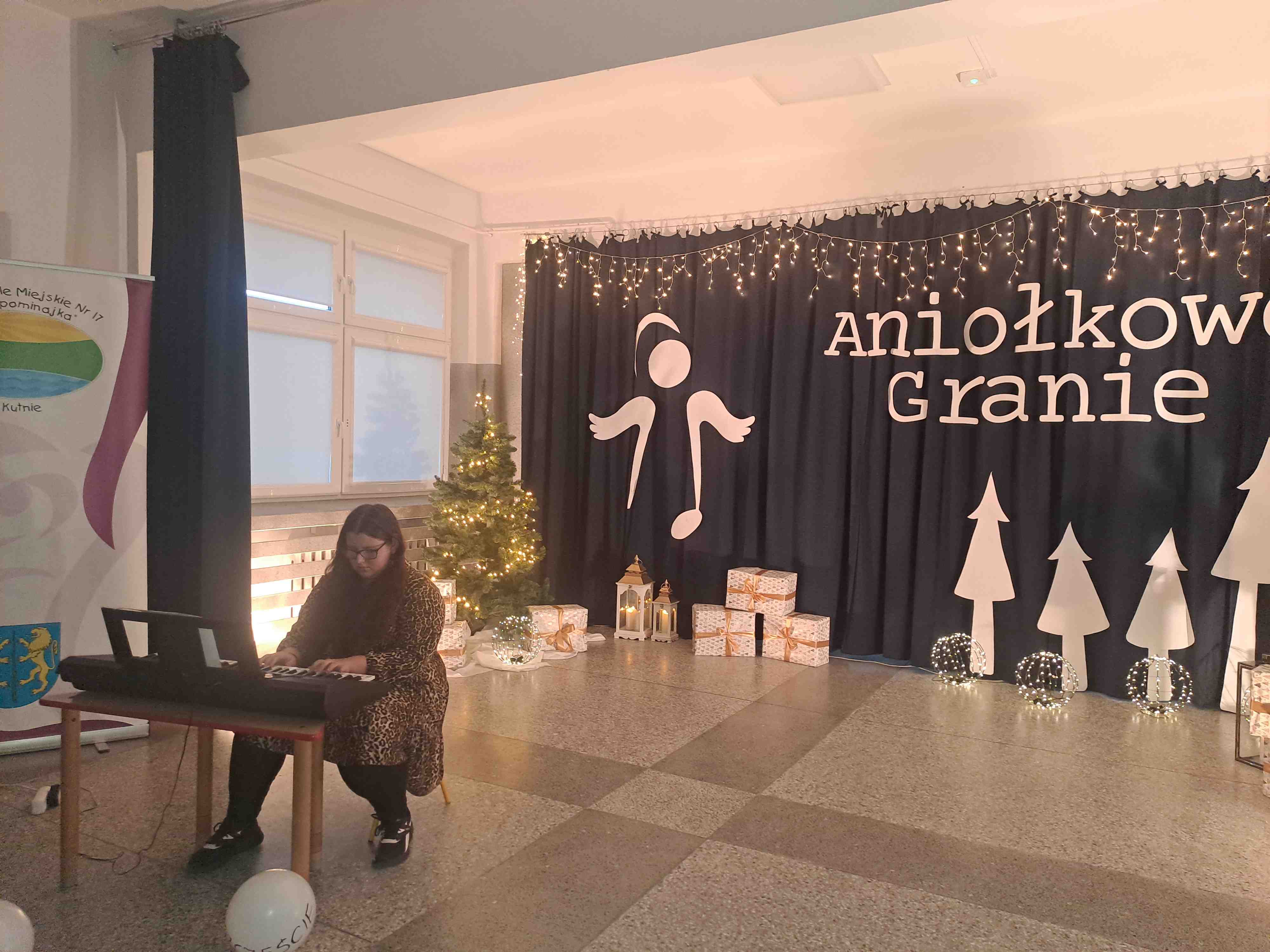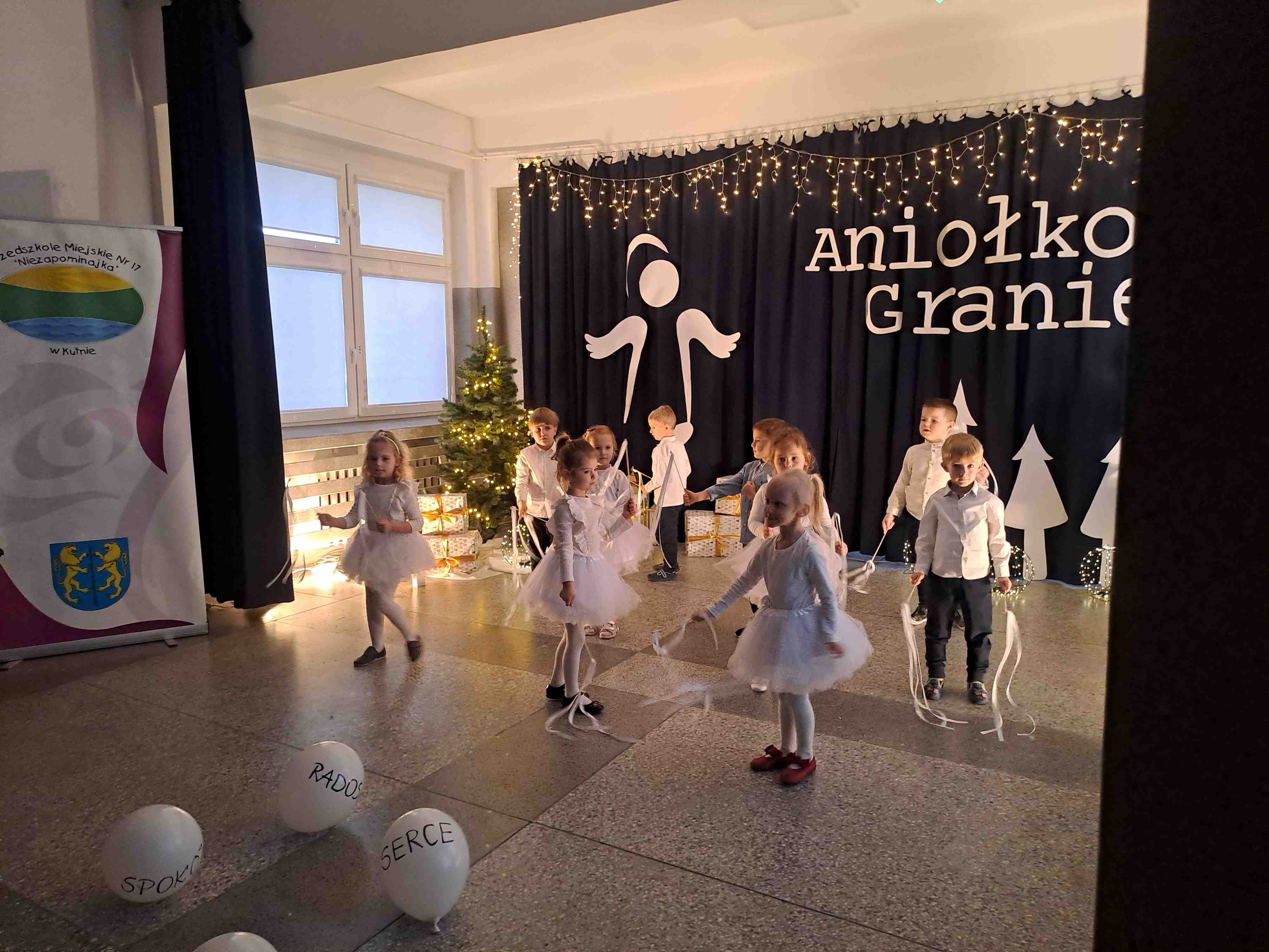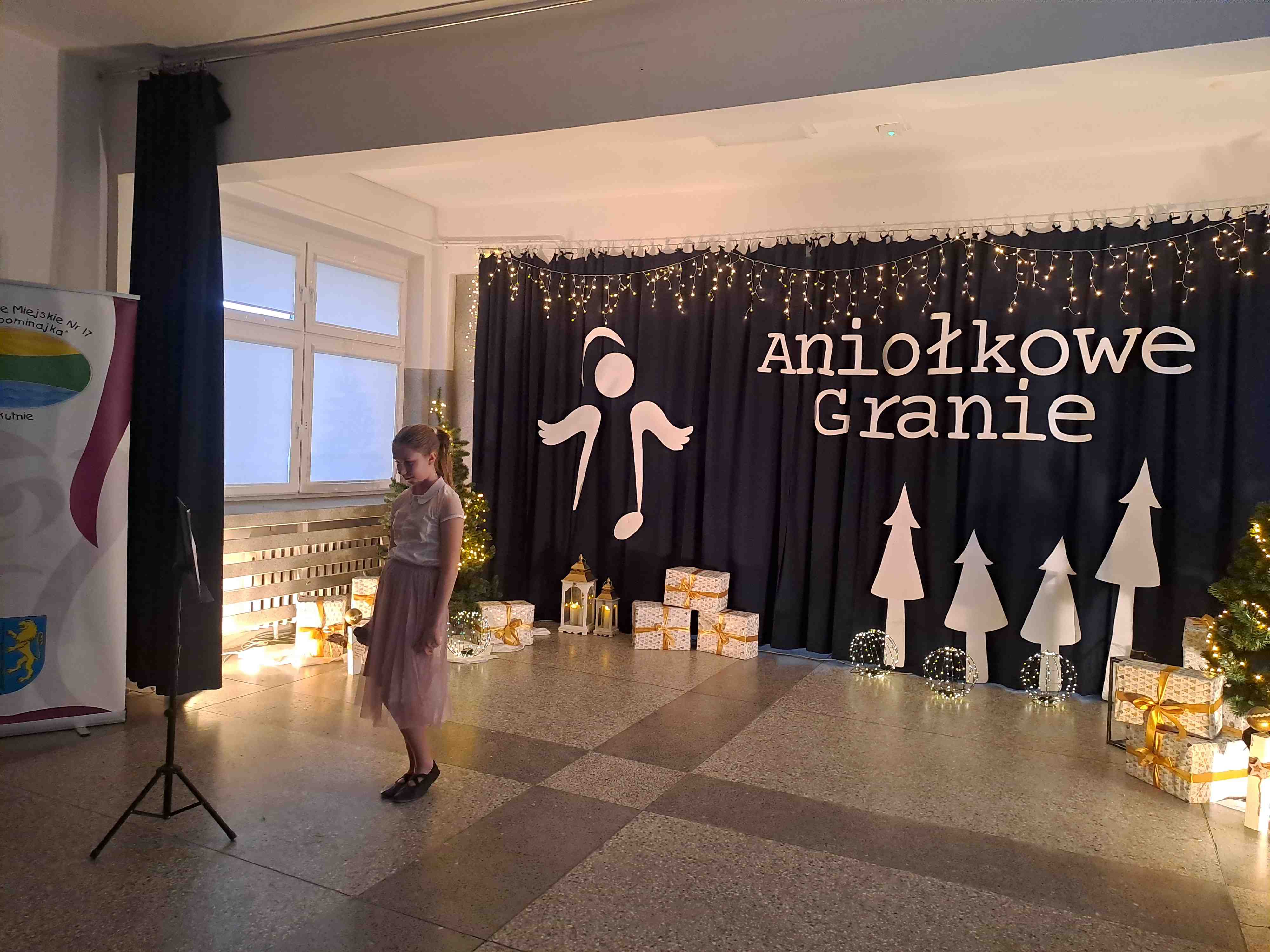 „Aniołkowe Granie” to Ogólnopolski Projekt Edukacyjny, który wplata ideę rodzicielstwa zastępczego w działania edukacji. Głównym celem projektu jest integracja środowisk przedszkoli, szkół i placówek opiekuńczych, niesienie bezinteresownej pomocy poprzez zbiórki darów na rzecz rodzin i ośrodków, a zwieńczeniem projektu są uroczyste koncerty charytatywne odbywające się w całej Polsce. Przedszkole Miejskie Nr 17 „Niezapominajka” w Kutnie po raz piąty przystąpiło w bieżącym roku szkolnym do w/w projektu. Z tej okazji zorganizowana została na terenie przedszkola zbiórka darów dla podopiecznych Placówki Opiekuńczo – Wychowawczej „Tęcza” w Kutnie. Dnia 28 stycznia odbył się uroczysty koncert przygotowany pod kierunkiem p. Anety Barylskiej i p. Anny Pałczyńskiej, w którym udział wzięły dzieci z oddziałów przedszkolnych oraz absolwenci przedszkola, uczniowie szkół podstawowych oraz Państwowej Szkoły Muzycznej w Kutnie. W koncercie uczestniczyli zaproszeni goście – p. Jolanta Siuda – Dyrektor Przedszkola Miejskiego Nr 17 „Niezapominajka”, p. Dorota Bonawenturczak – Wicedyrektor Przedszkola Miejskiego Nr 17 „Niezapominajka”, p. Aleksandra Krysińska – Wicedyrektor Przedszkola Miejskiego Nr 17 „Niezapominajka” , p. Dorota – Ćwirko Godycka – Dyrektor Placówki Opiekuńczo – Wychowawczej „Tęcza” wraz z podopiecznymi, a także rodzice i bliscy dzieci występujących na scenie. Koncert dostarczył zgromadzonej widowni wielu pięknych odczuć, pełnych emocji i wzruszenia. Na scenie pojawili się wokaliści, tancerze i instrumentaliści. Dzieci wykonywały utwory nawiązujące do niesienia pomocy, wartości takich jak dobro, szlachetność, życzliwość, bezinteresowność.