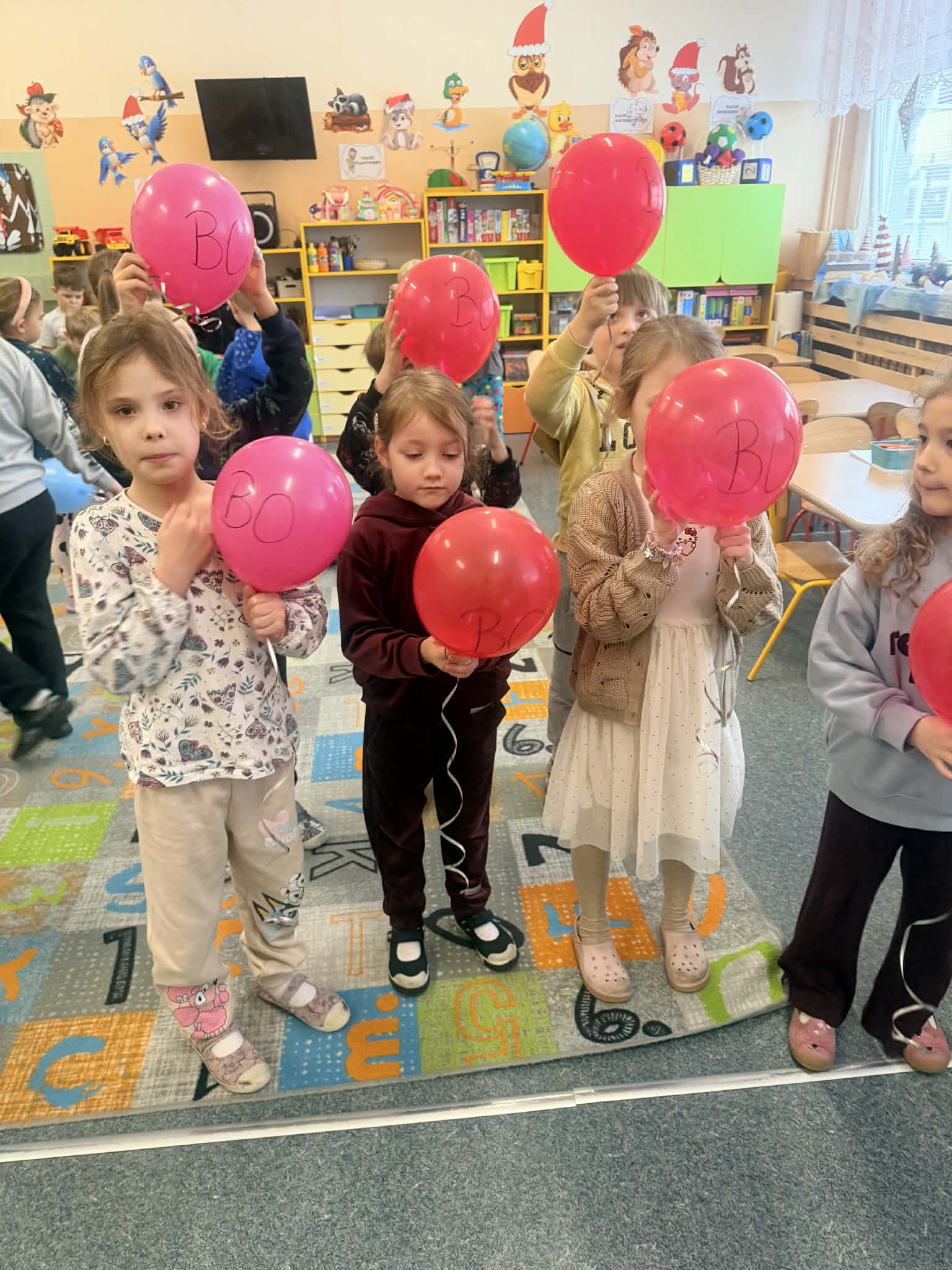 W ramach realizacji Ogólnopolskiego Projektu Edukacyjnego "Alfabet Logopedyczny" w grupie I, II oraz III zostały zrealizowane kolejne zajęcia. Zajęcia te odbyły się w klimacie karnawałowym. W czasie spotkań dzieci poznały głoski: "B jak balon" - gdzie wykonywały ćwiczenia oddechowe i fonacyjne oraz różnicowały głoski dźwięczne i bezdźwięczne. Dzieci poznały także głoskę "C jak cyrk", gdzie ćwiczyły automatyzację trudnych głosek oraz rozwijały mowę zdaniową. Dzieci zostały także zapoznane z głoską "S jak serpentyna", gdzie wzmacniały i wykorzystywały siłę mięśni oddechowych, prowadziły kontrolę oddechu oraz wykonywały ćwiczenia fonacyjne i artykulacyjne.