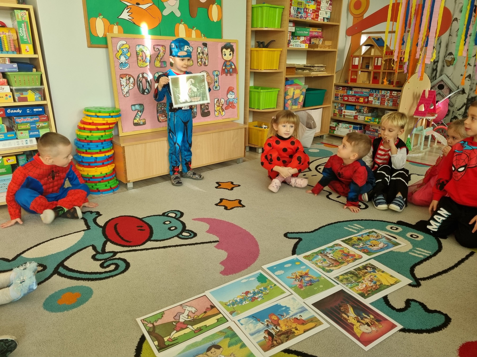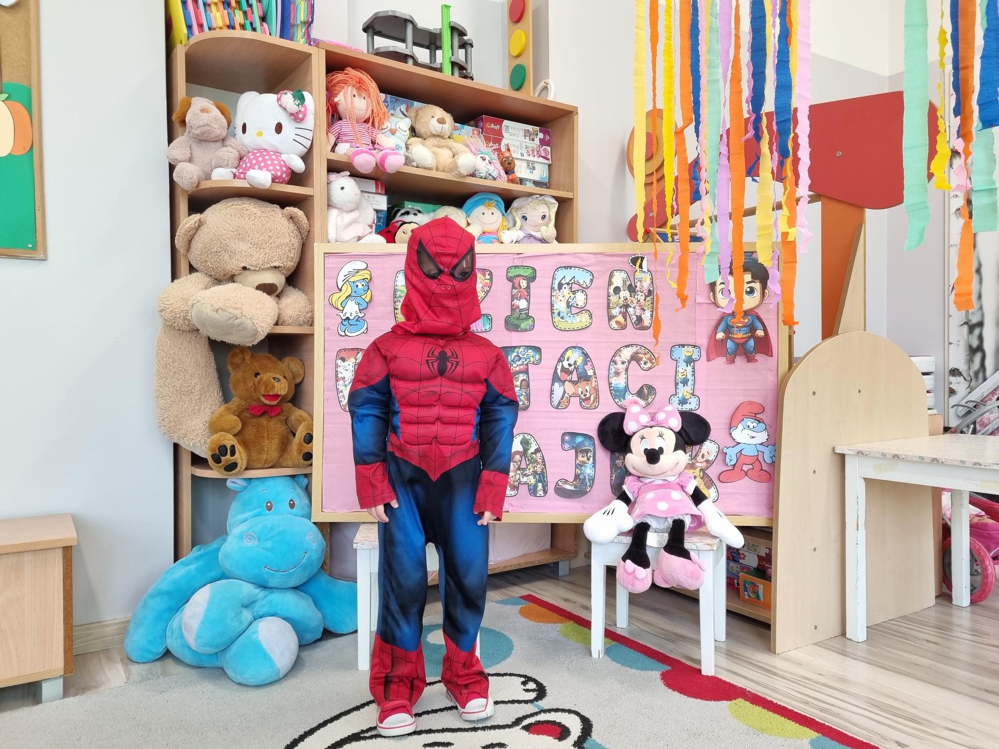 Dzisiejszy dzień był wyjątkowo magiczny, ponieważ świętowaliśmy Dzień Postaci z Bajek! Nasze przedszkolaki zamieniły się w ulubionych bohaterów z baśni i bajek – w sali pojawili się księżniczki, superbohaterowie, wróżki, zwierzątka i wiele innych niezwykłych postaci.