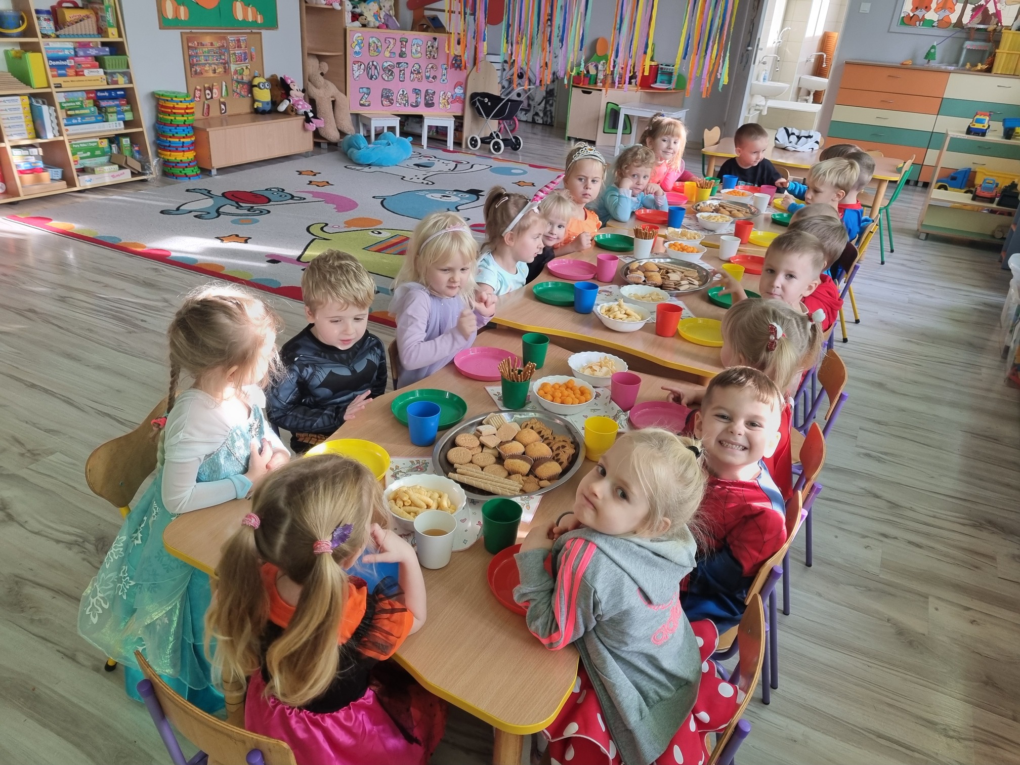 Aby dopełnić ten magiczny klimat, czekał na nas pyszny, słodki poczęstunek, który wywołał jeszcze więcej uśmiechów na twarzach dzieci.