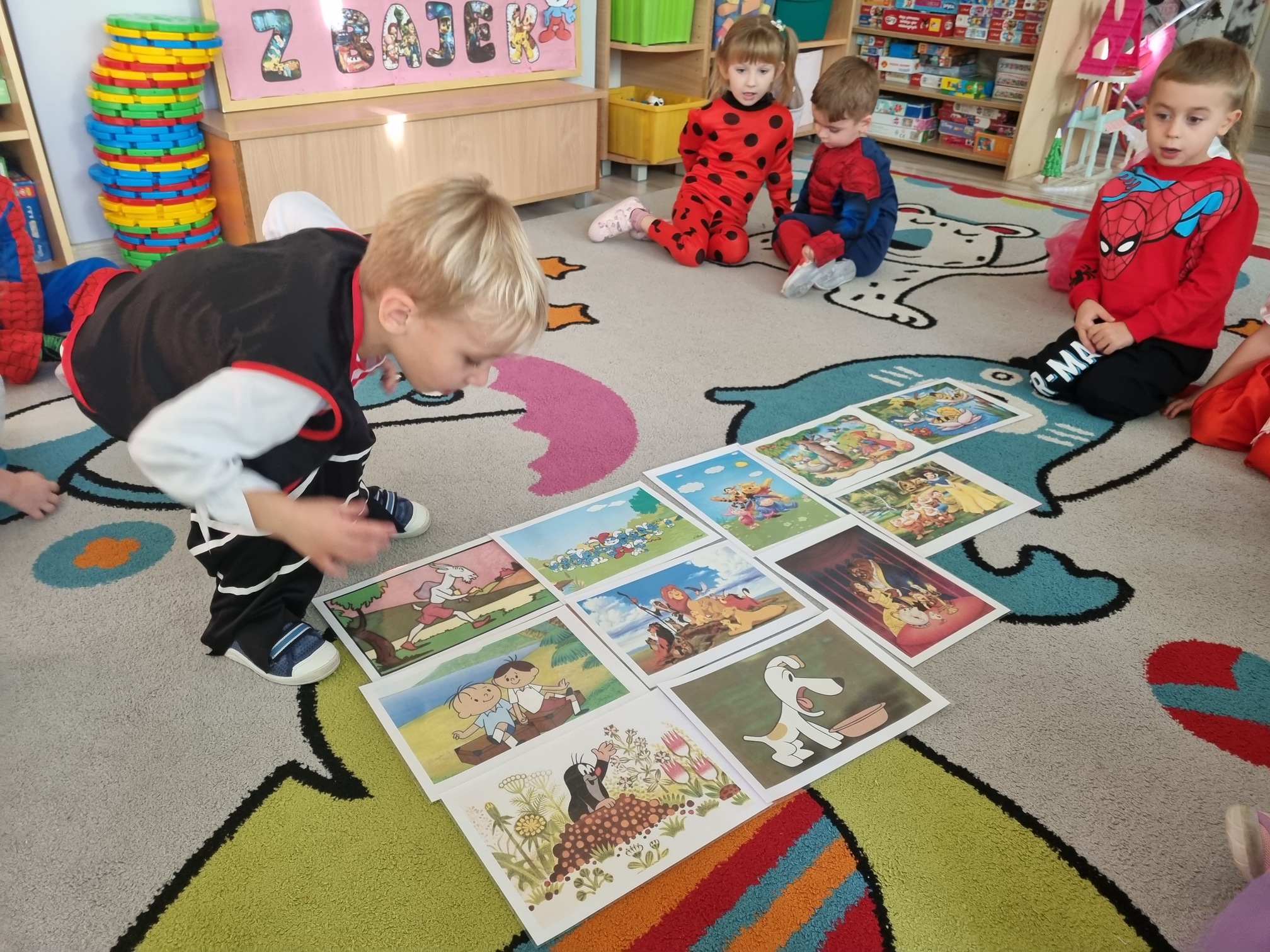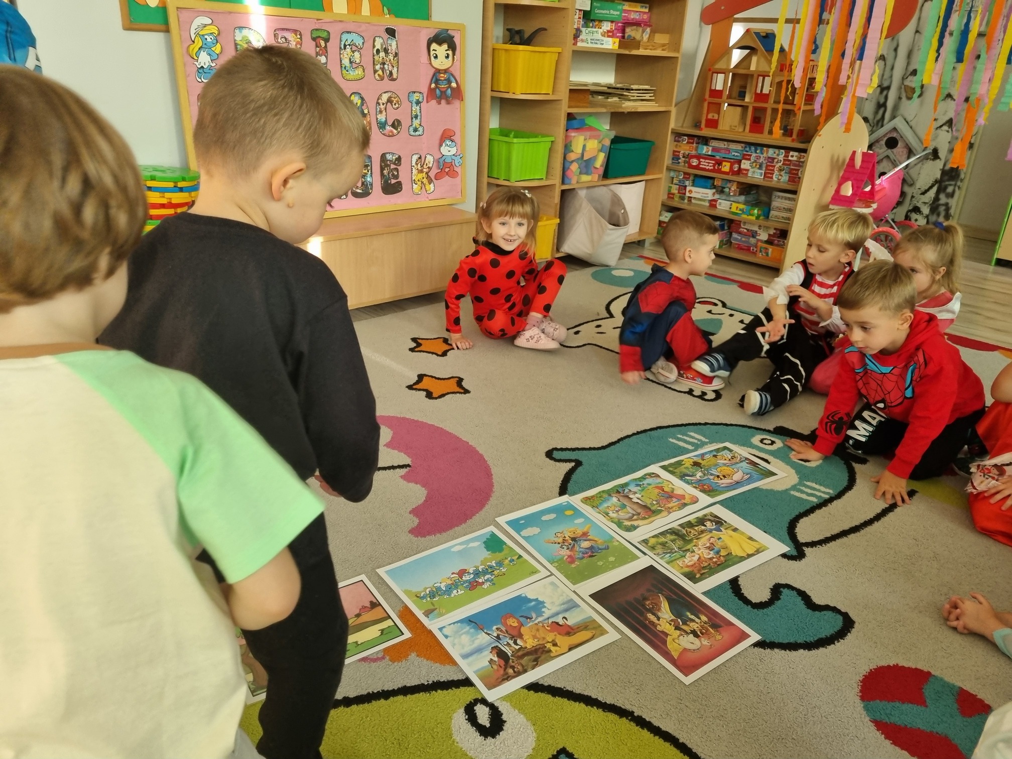 Wspólnie tańczyliśmy, bawiliśmy się w zabawy dydaktyczne oraz rozmawialiśmy o bajkach, które wszyscy dobrze znamy, jak i tych, które pamiętają jeszcze nasi rodzice i dziadkowie. Dzieci odkrywały, że każda bajka – dawna czy współczesna – niesie ze sobą ważne wartości: dobro zawsze zwycięża, przyjaźń ma wielką moc, a odwaga pomaga pokonywać trudności.