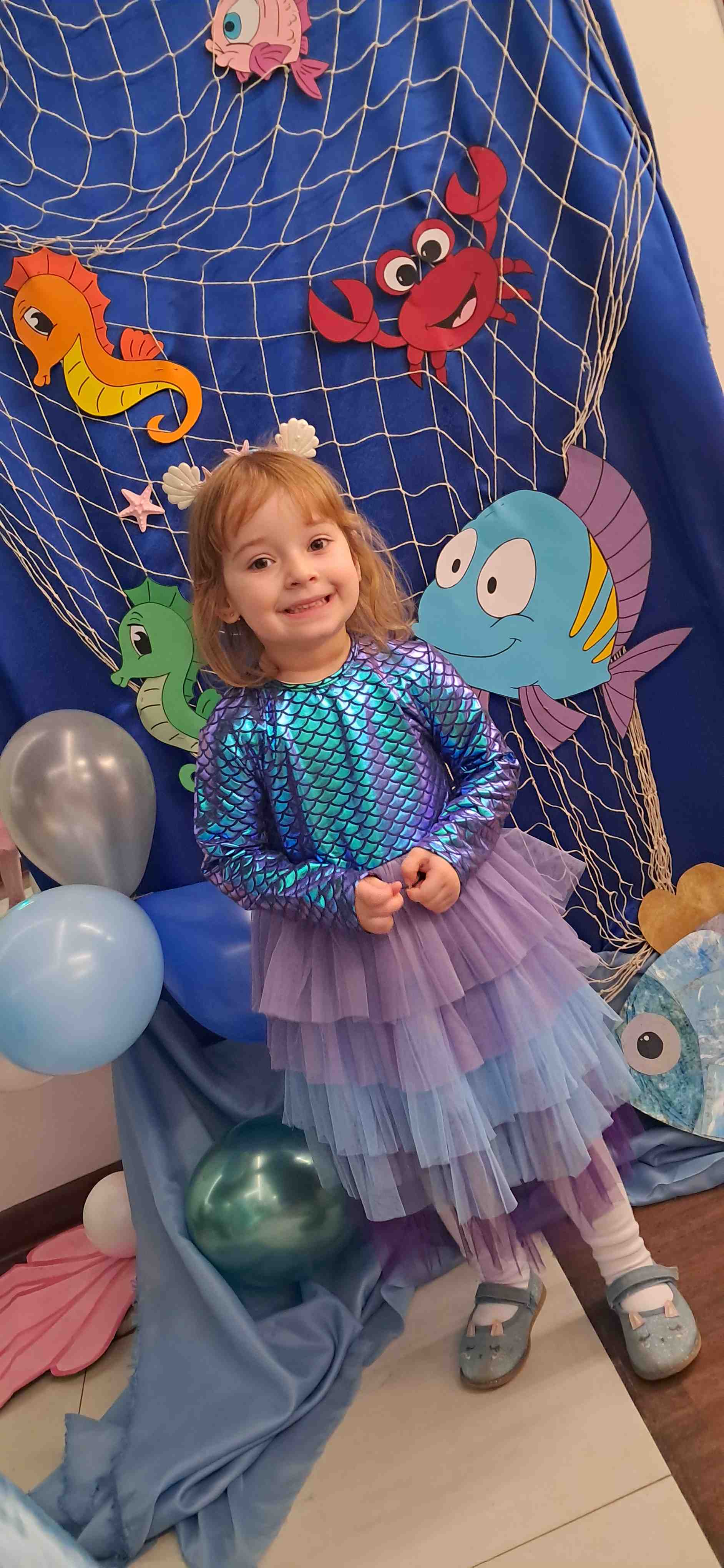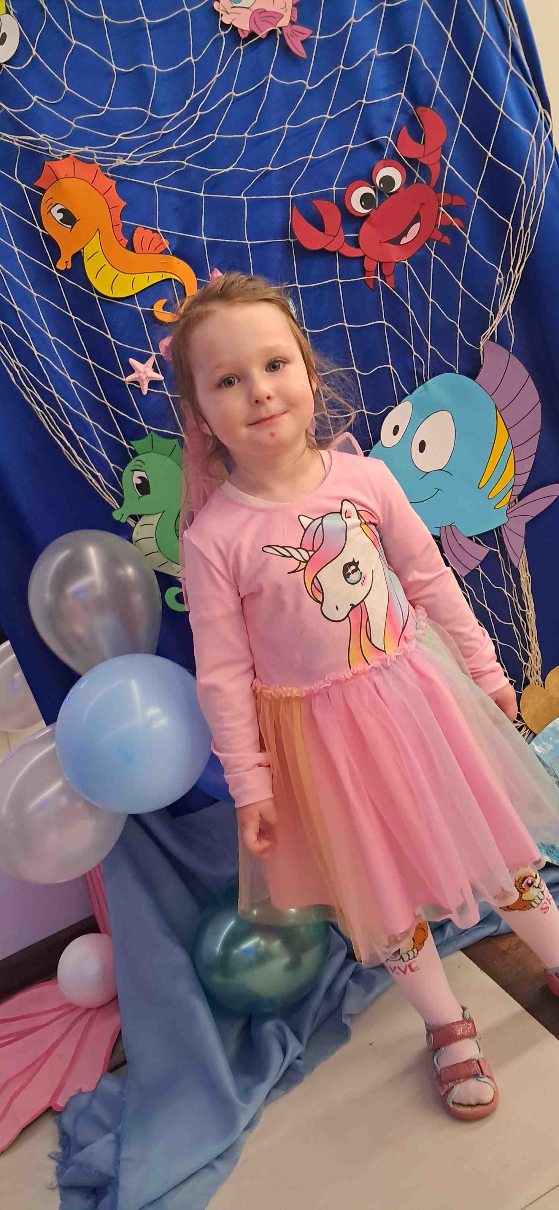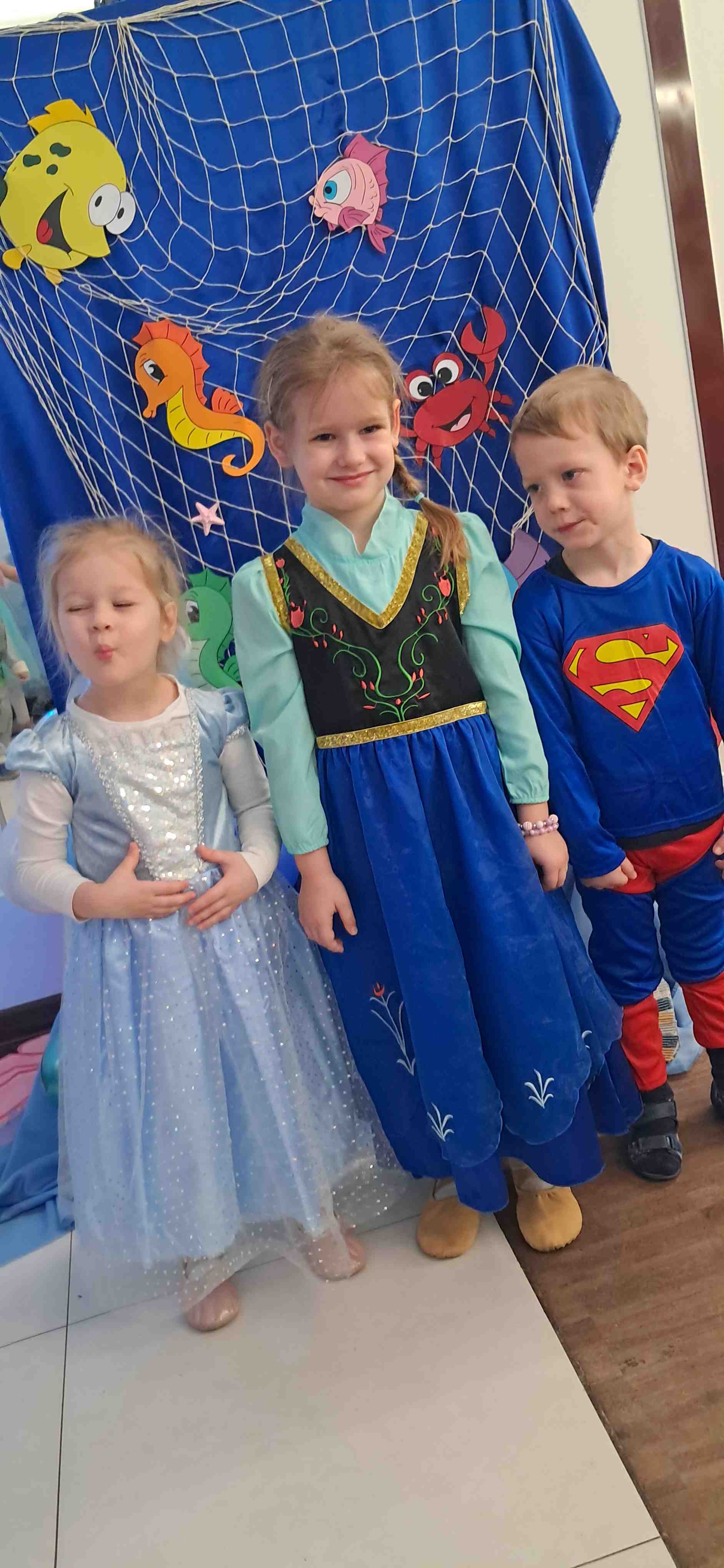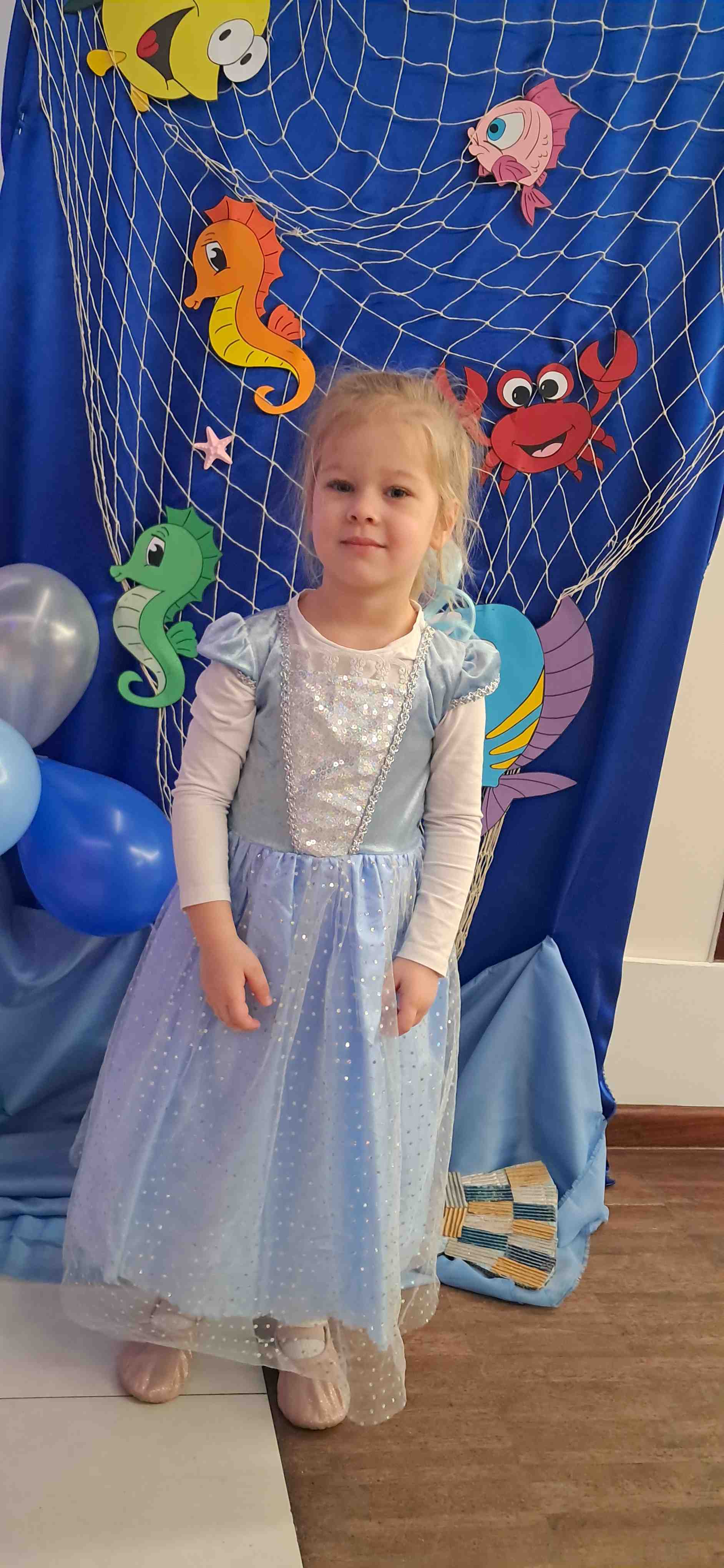 Bal karnawałowy w przedszkolu o tematyce „Podwodny świat” był pełen kolorów, radości i dziecięcej wyobraźni. Już od progu można było poczuć niezwykłą atmosferę – sala została udekorowana niebieskimi i turkusowymi balonami z elementami świata podwodnego, bibułowymi falami oraz papierowymi rybkami. W jednym z kącików stały wodorosty, muszle a na ścianach pojawiły się złapane w sieci rybki. Nie zabrakło również ścianki z balonami i dużej ryby pływającej w falach. Dzieci przyszły przebrane w przepiękne stroje związane z podwodnym światem. Każde dziecko z dumą prezentowało swój strój podczas wspólnego pokazu. Zabawa była wspaniała – dzieci tańczyły przy skocznej muzyce. Nie zabrakło też wspólnych zdjęć na tle morskiej dekoracji oraz słodkiego poczęstunku. Bal karnawałowy „Podwodny świat” na długo pozostanie w pamięci przedszkolaków jako dzień pełen śmiechu, tańca i niezwykłych przygód w głębinach oceanu.