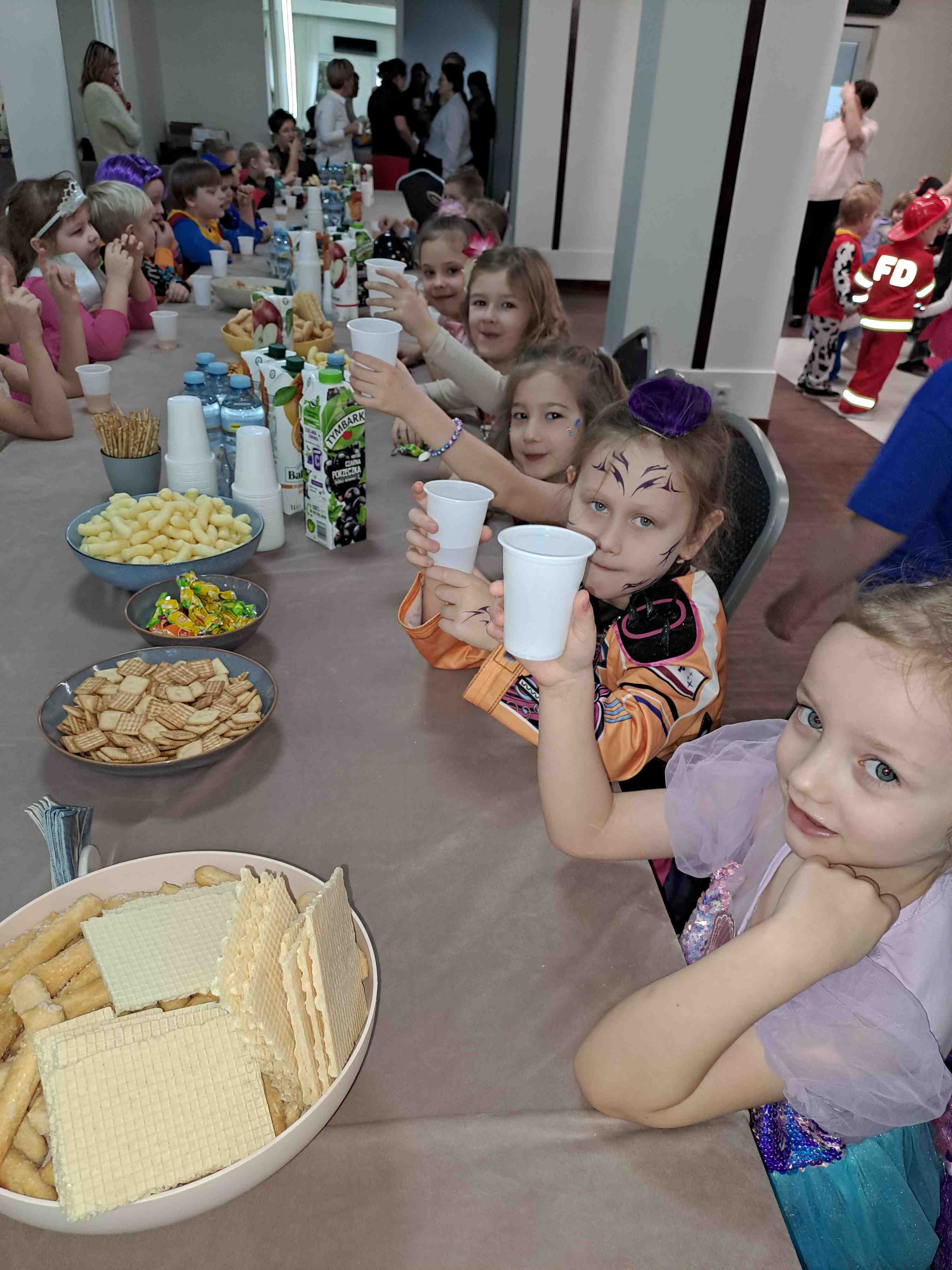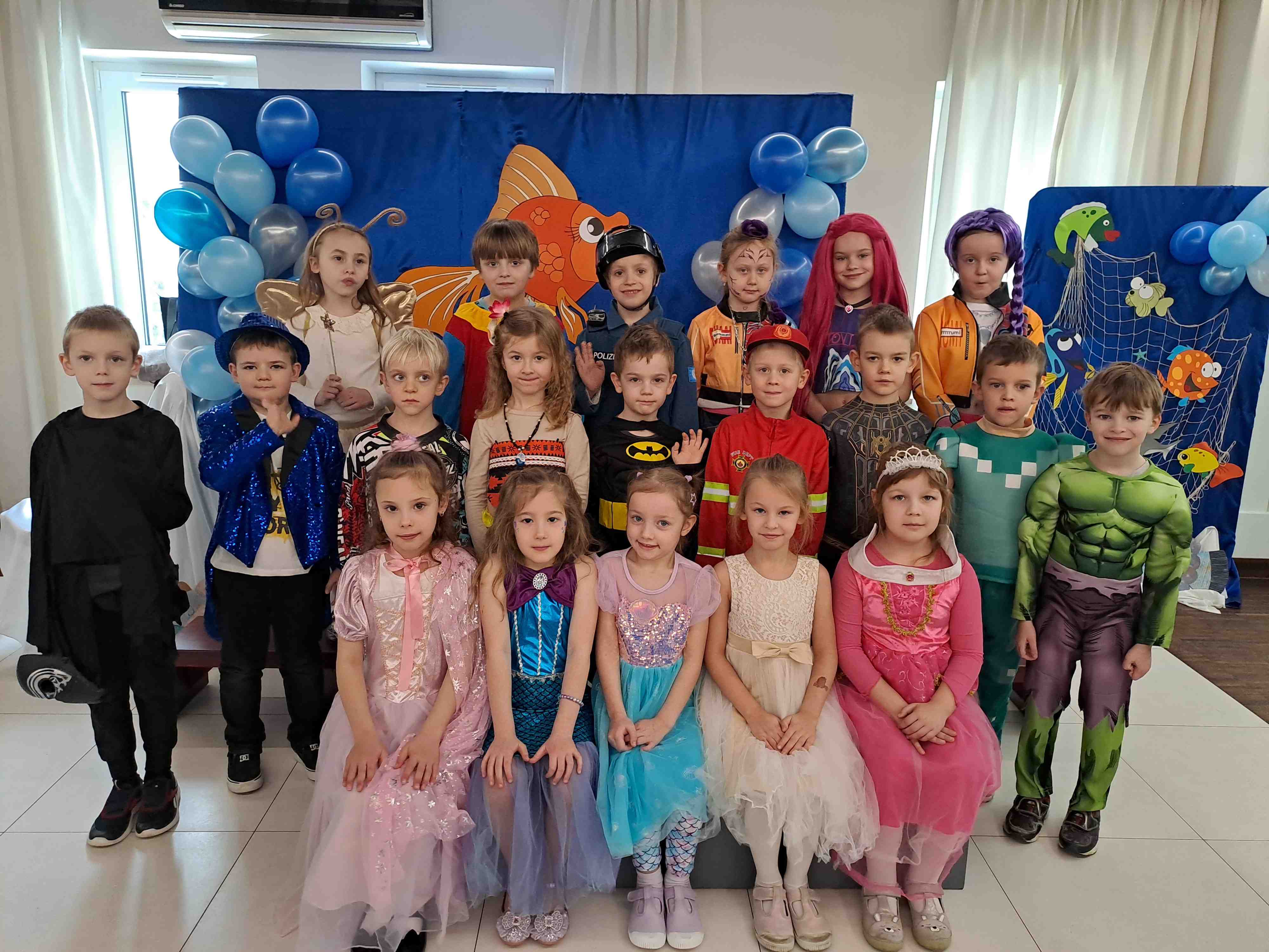 Na balu karnawałowym w naszym przedszkolu nie brakowało pięknych strojów dzieci i dekoracji w klimacie podwodnego świata. Wspólna zabawa, słodki poczęstunek i pamiątkowe fotografie wypełniły ten dzień radością i wywoływały uśmiech na twarzach przedszkolaków. Dzieci dały się porwać wyjątkowej atmosferze, tanecznej muzyce i hucznie obchodziły karnawał „W królestwie morskich fal”.