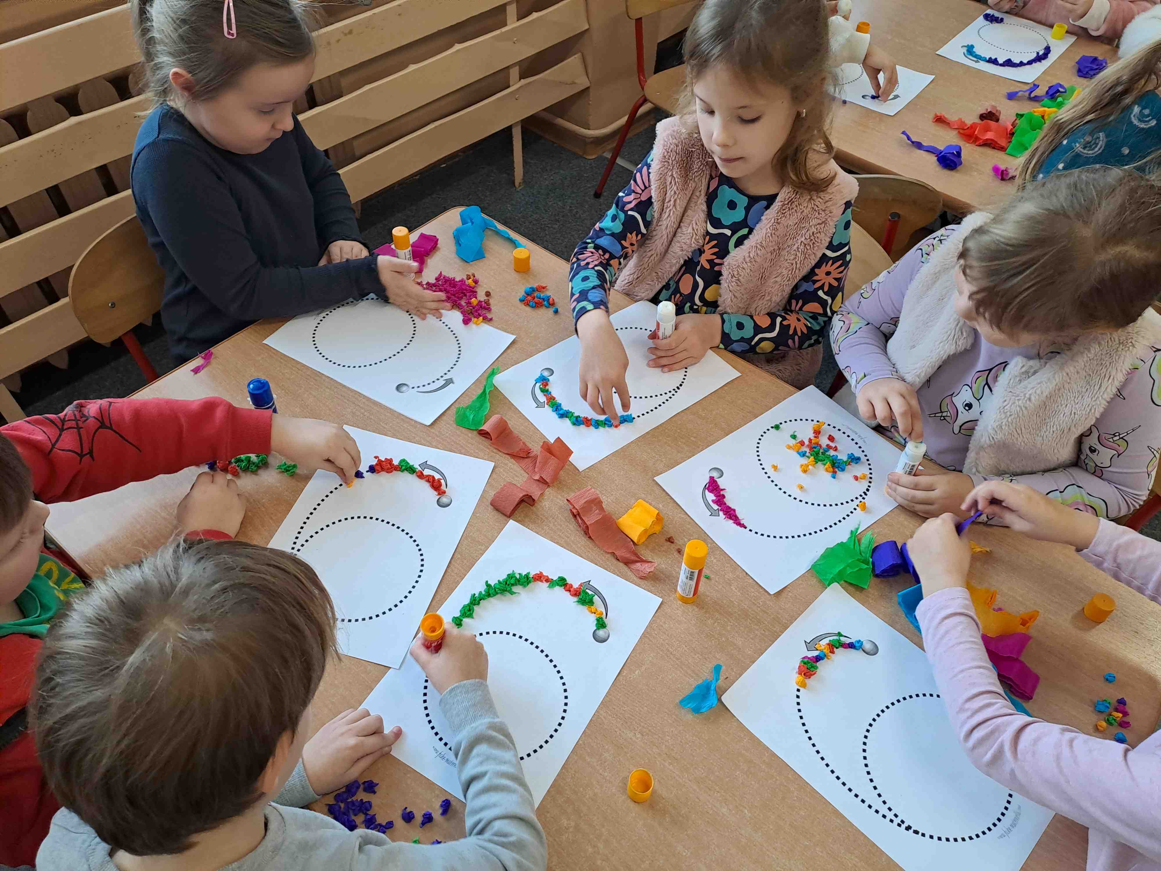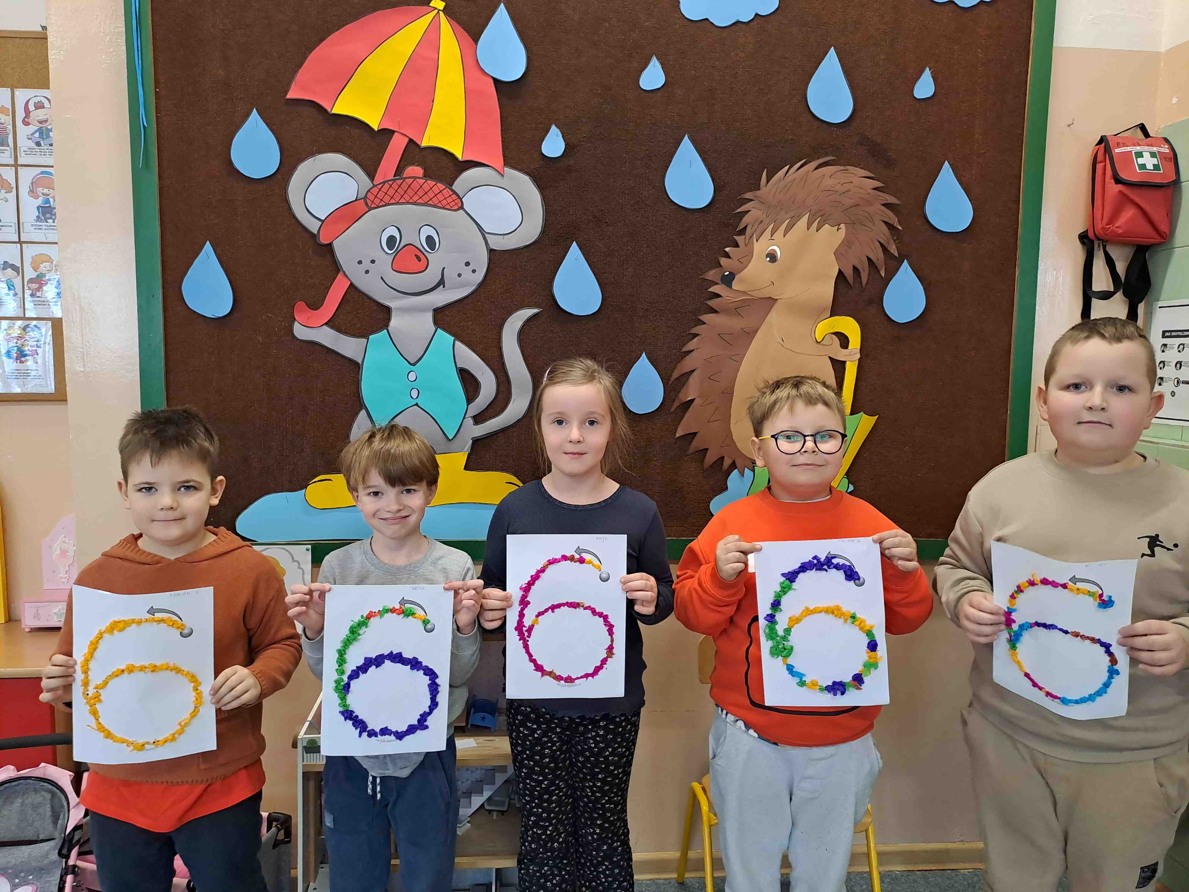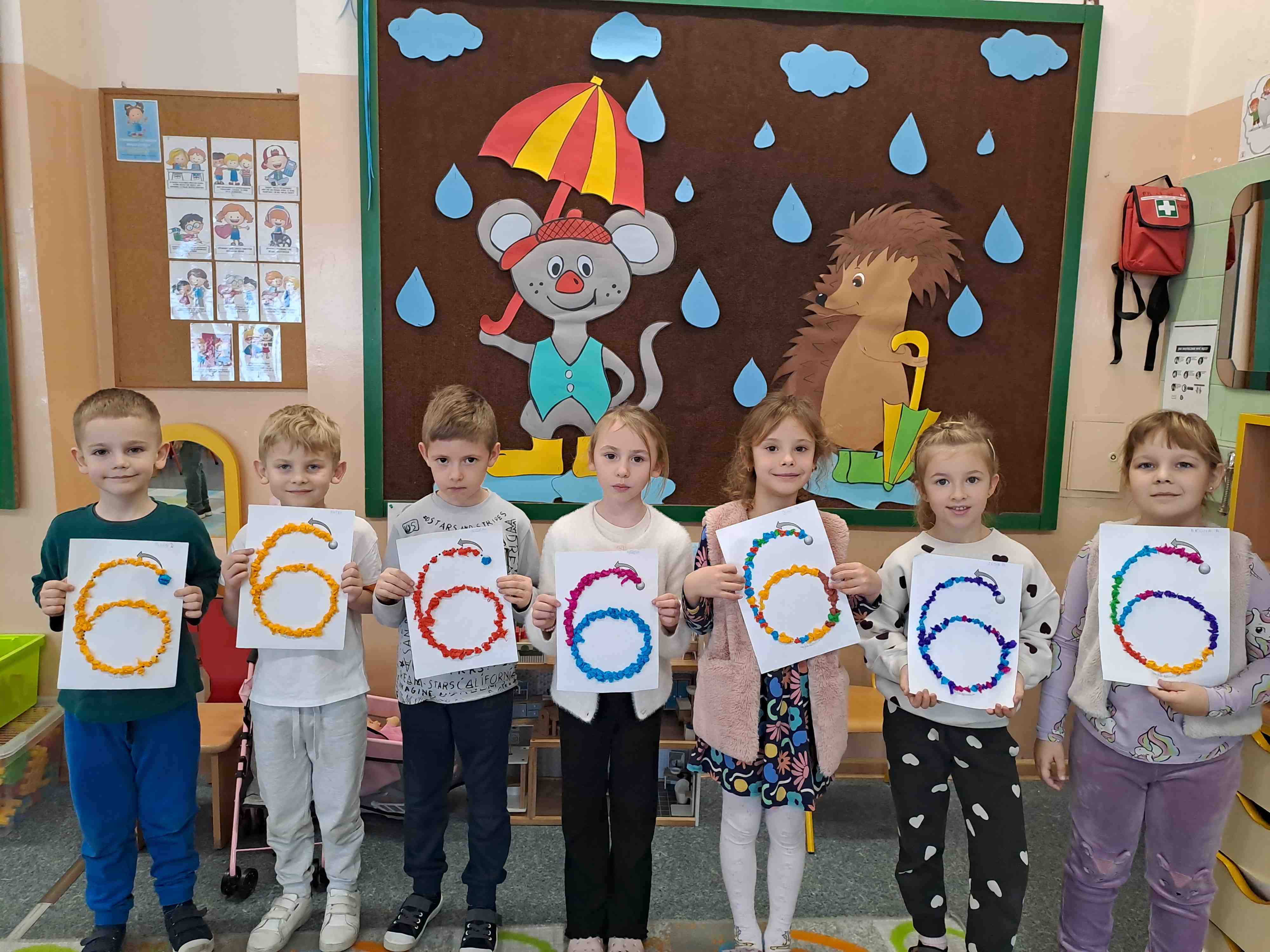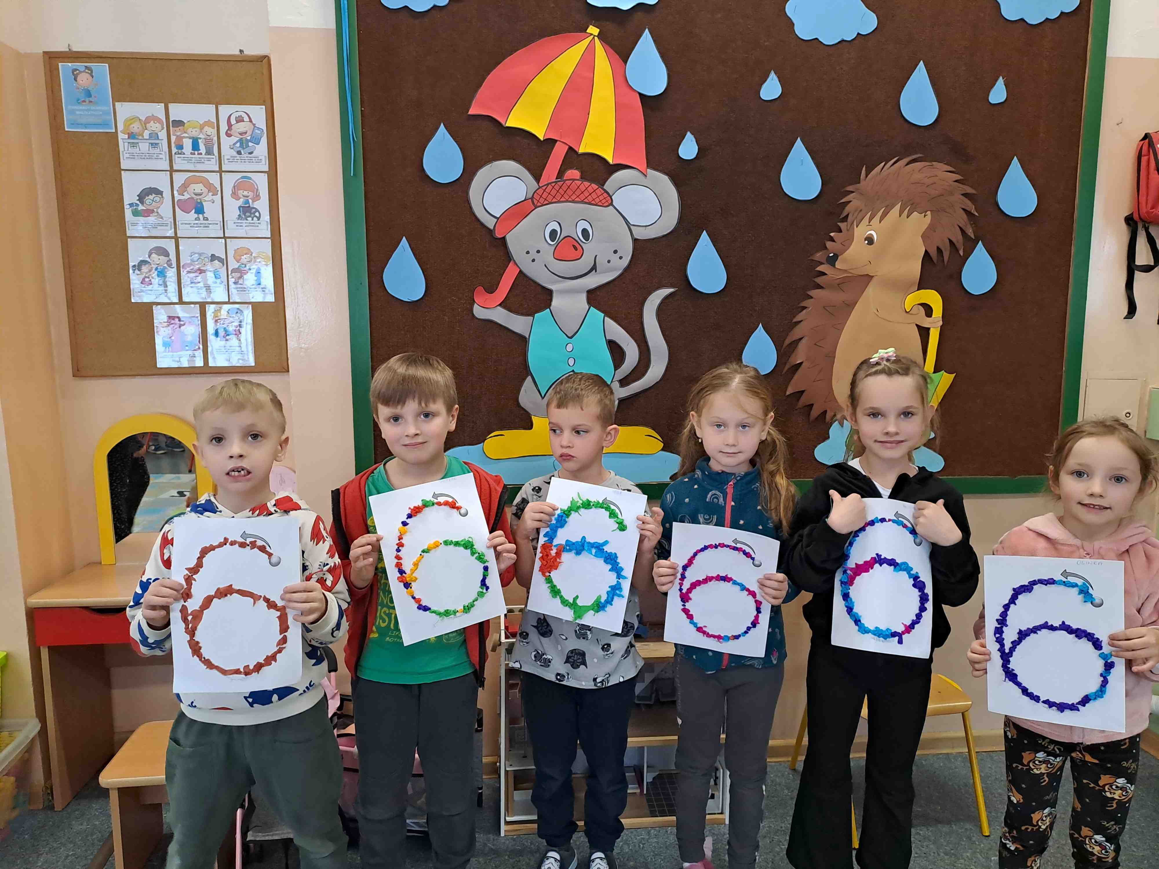 W celu utrwalenia zapisu cyfrowego liczby sześć Motylki wykonały dziś pracę plastyczną "Kolorowa szóstka" techniką wylepianki bibułowej. Wszystkie szóstki zdecydowanie zasługują na szóstkę!