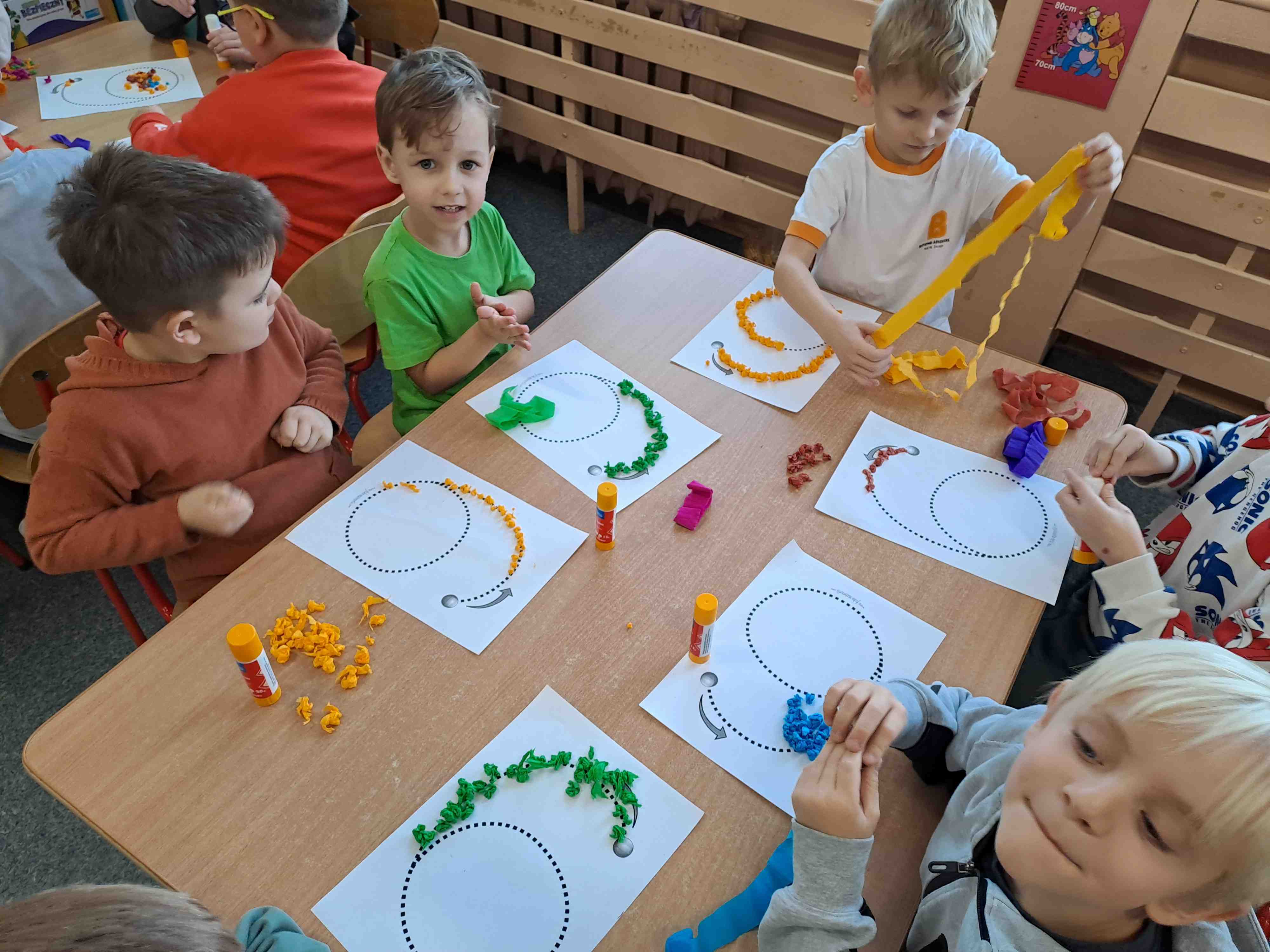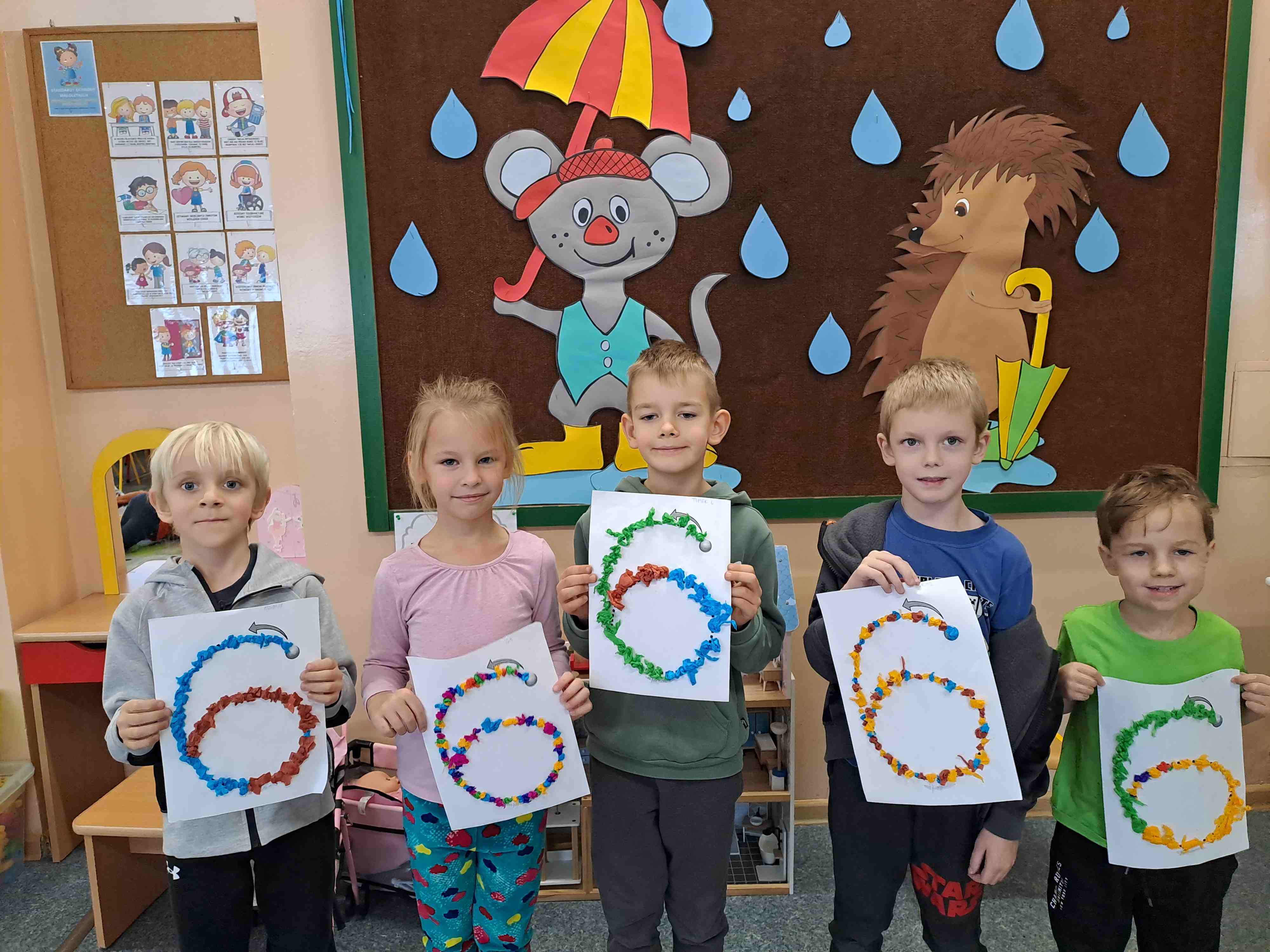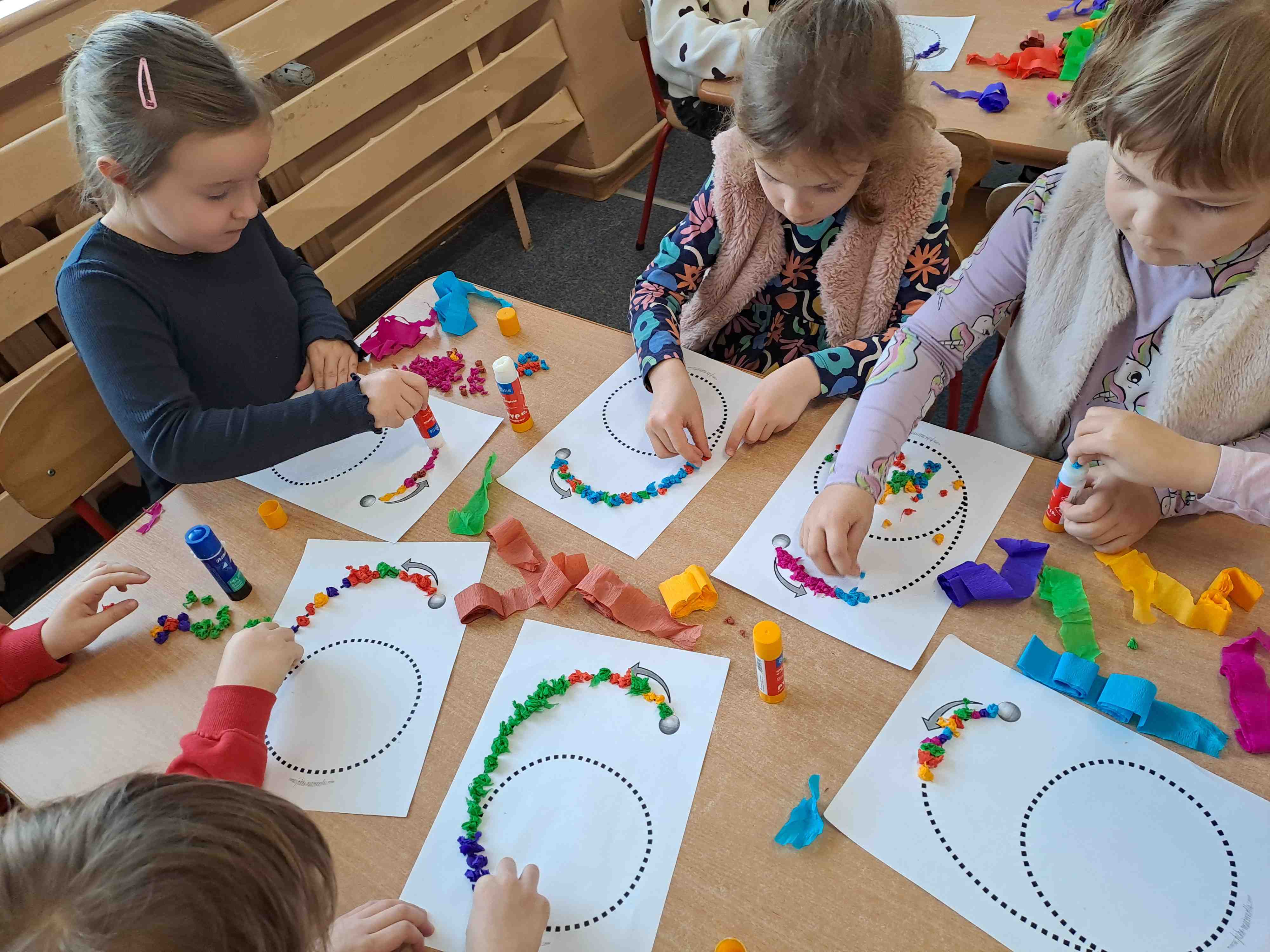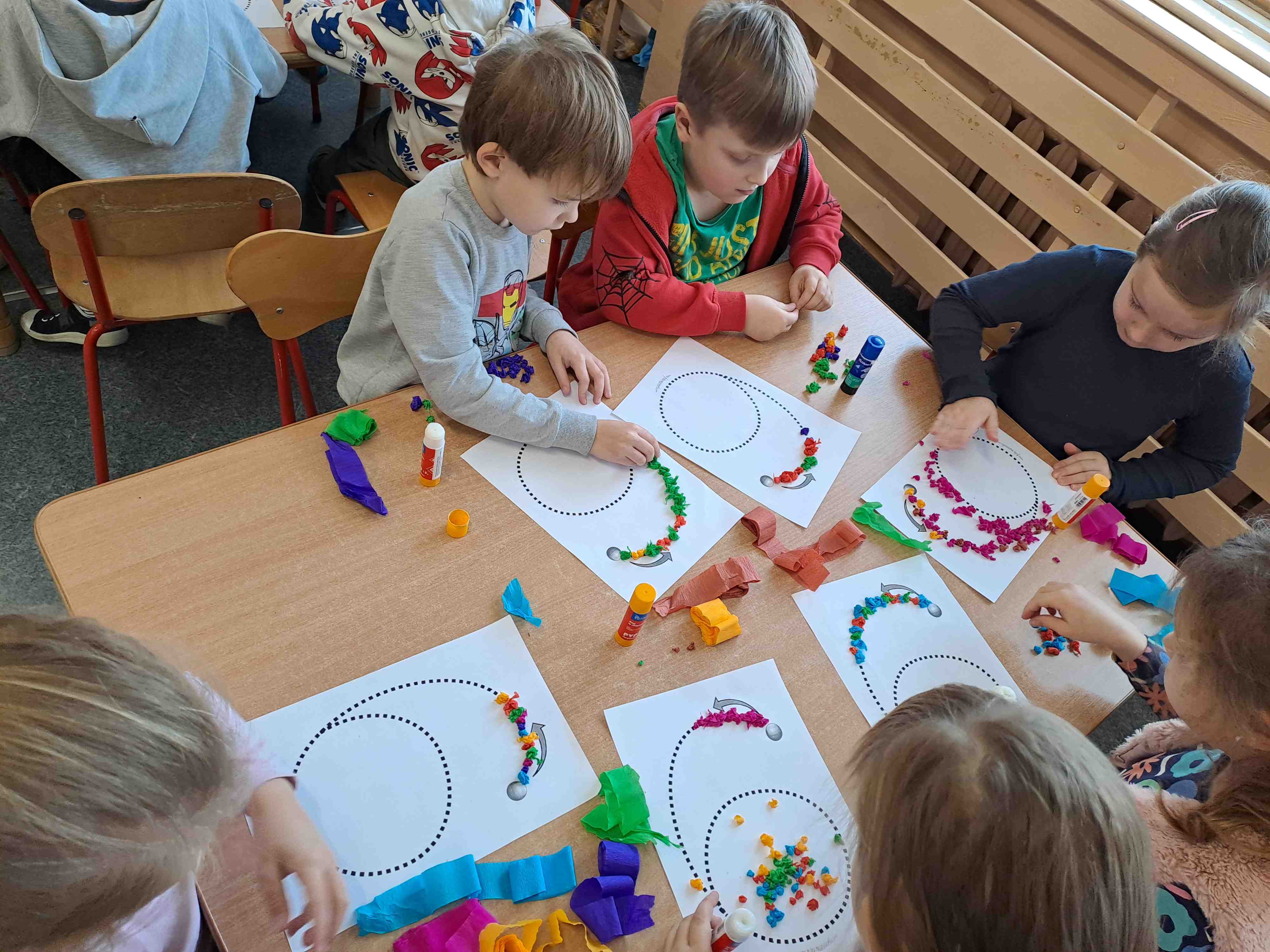 W celu utrwalenia zapisu cyfrowego liczby sześć Motylki wykonały dziś pracę plastyczną "Kolorowa szóstka" techniką wylepianki bibułowej. Wszystkie szóstki zdecydowanie zasługują na szóstkę!