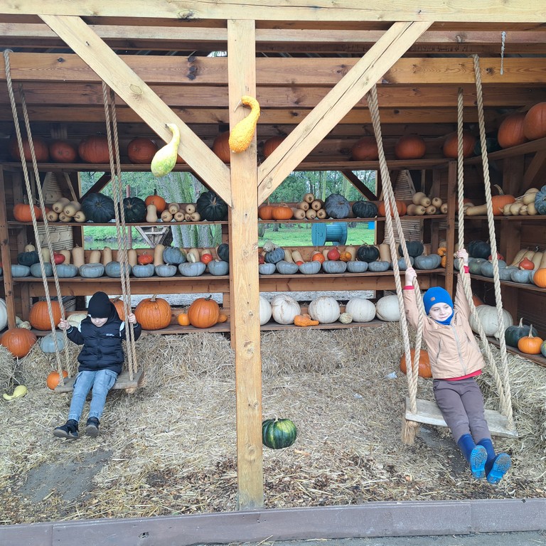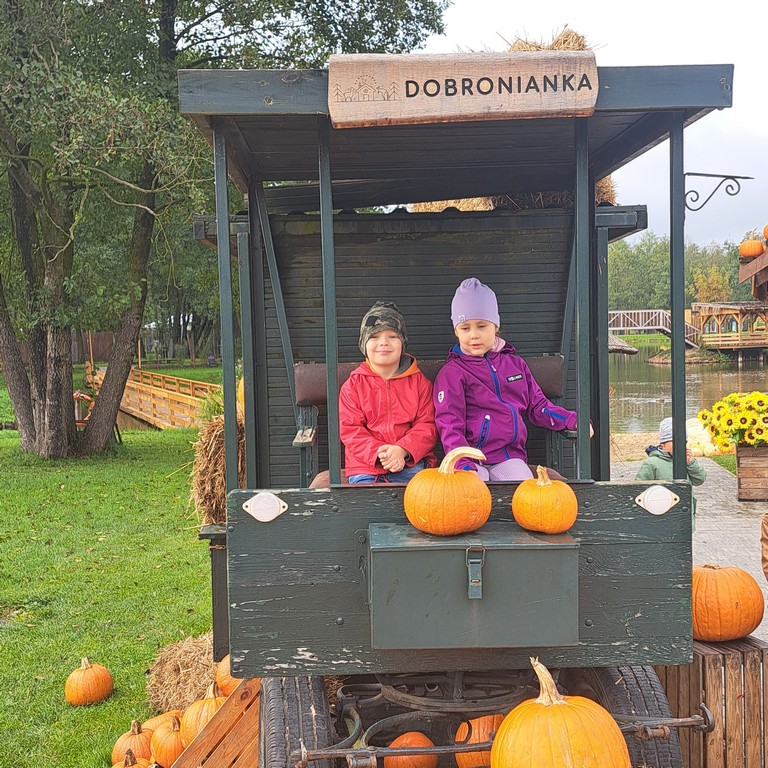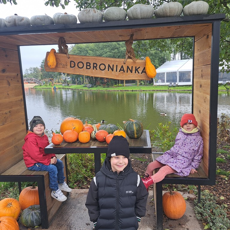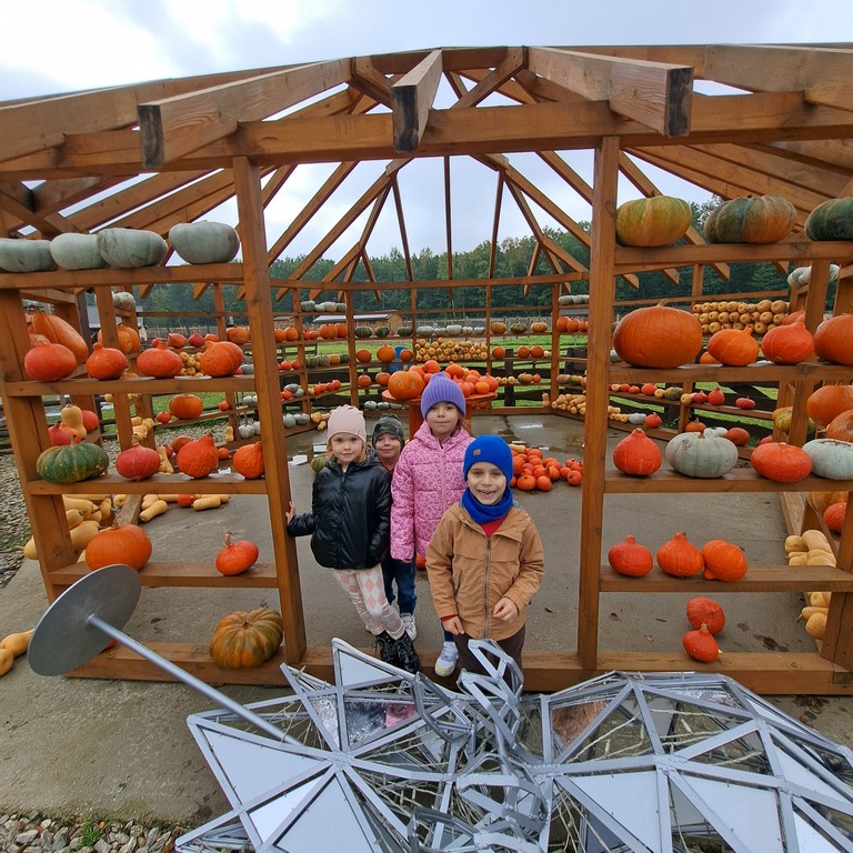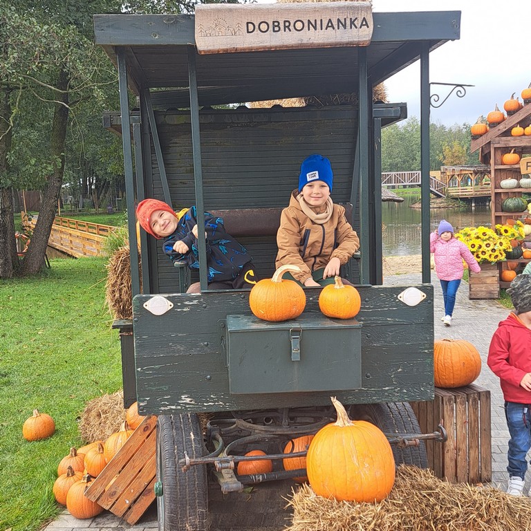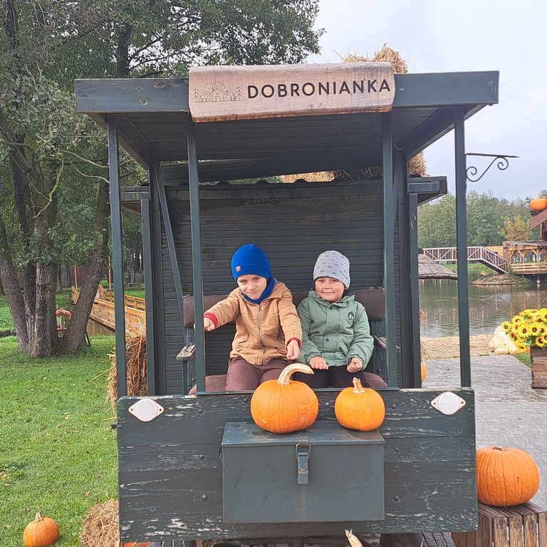 W dniu 08.10.2025 Mrówki wybrały się na wycieczkę do Mini Zoo Dobronianka w Dobroniu. Celem wycieczki były: obserwacja i czerpanie pozytywnych wrażeń w kontakcie z przyrodą, zainteresowanie różnorodnością gatunków świata zwierząt oraz kształtowanie świadomości ekologicznej. Przedszkolaki miały możliwość poznać różne zwierzęta np. alpaki, kozy, konie, wielbłądy, osły, mary, króliki, pawie i wiele innych, a także karmić niektóre z ich marchewkami oraz wysłuchać ciekawostek na ich temat od pani przewodnik. Po zwiedzaniu zoo udaliśmy się na warsztaty plastyczne "Zdobienie dyń", podczas których dzieci rozwijały zdolności manualne i inwencję twórczej. Pobyt w zoo dostarczył najmłodszym wiele radości oraz był wspaniałą lekcją przyrody przeżytą w ciekawym i atrakcyjnym miejscu. Ach... cóż to był za dzień!