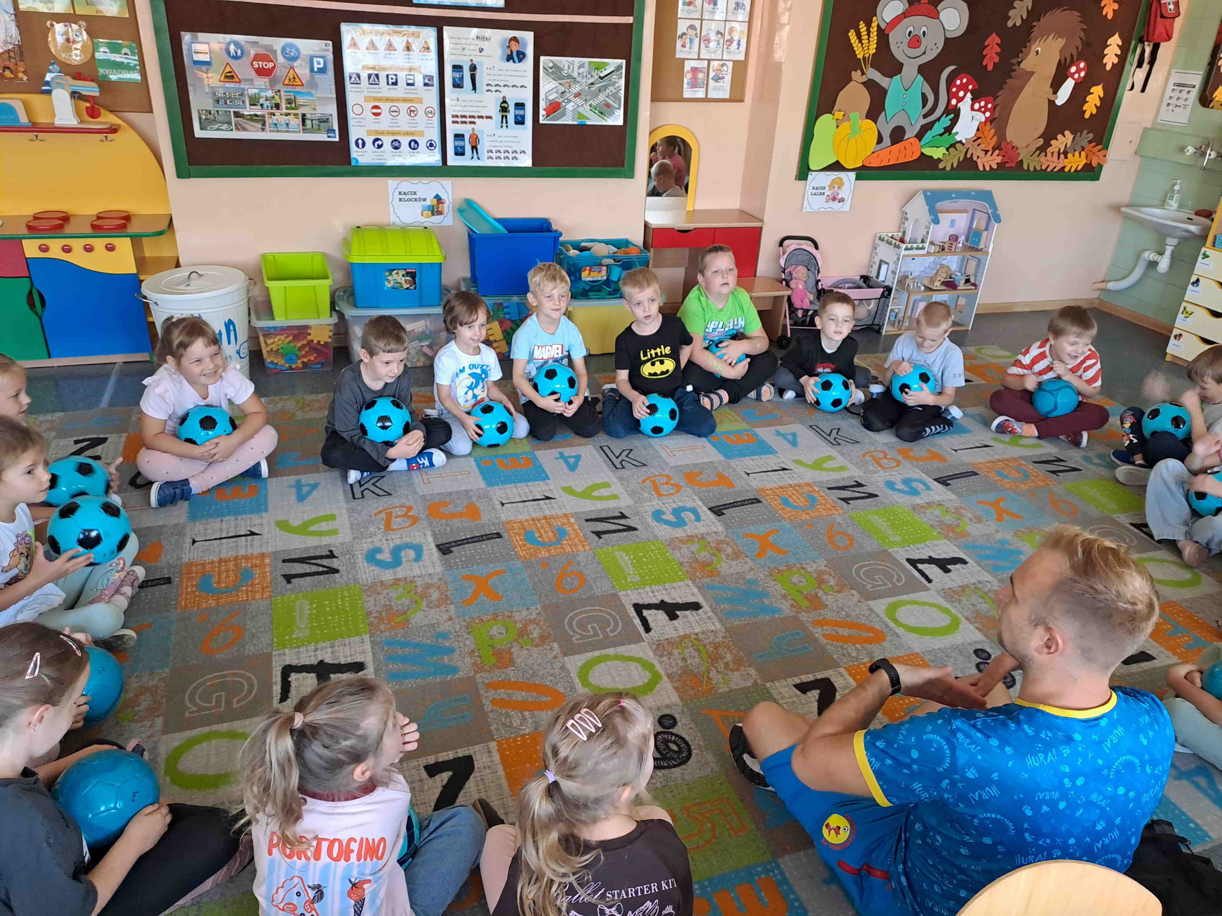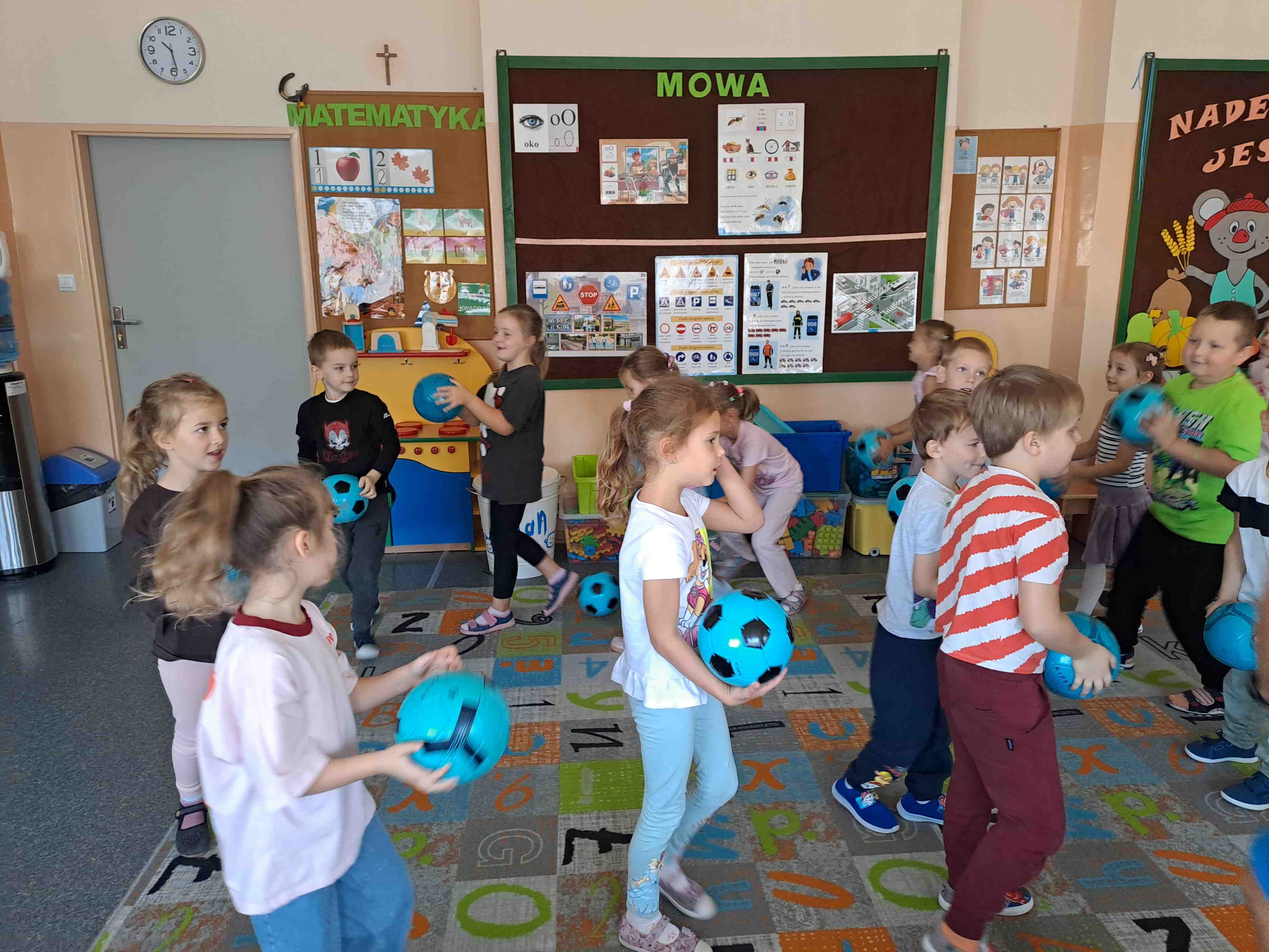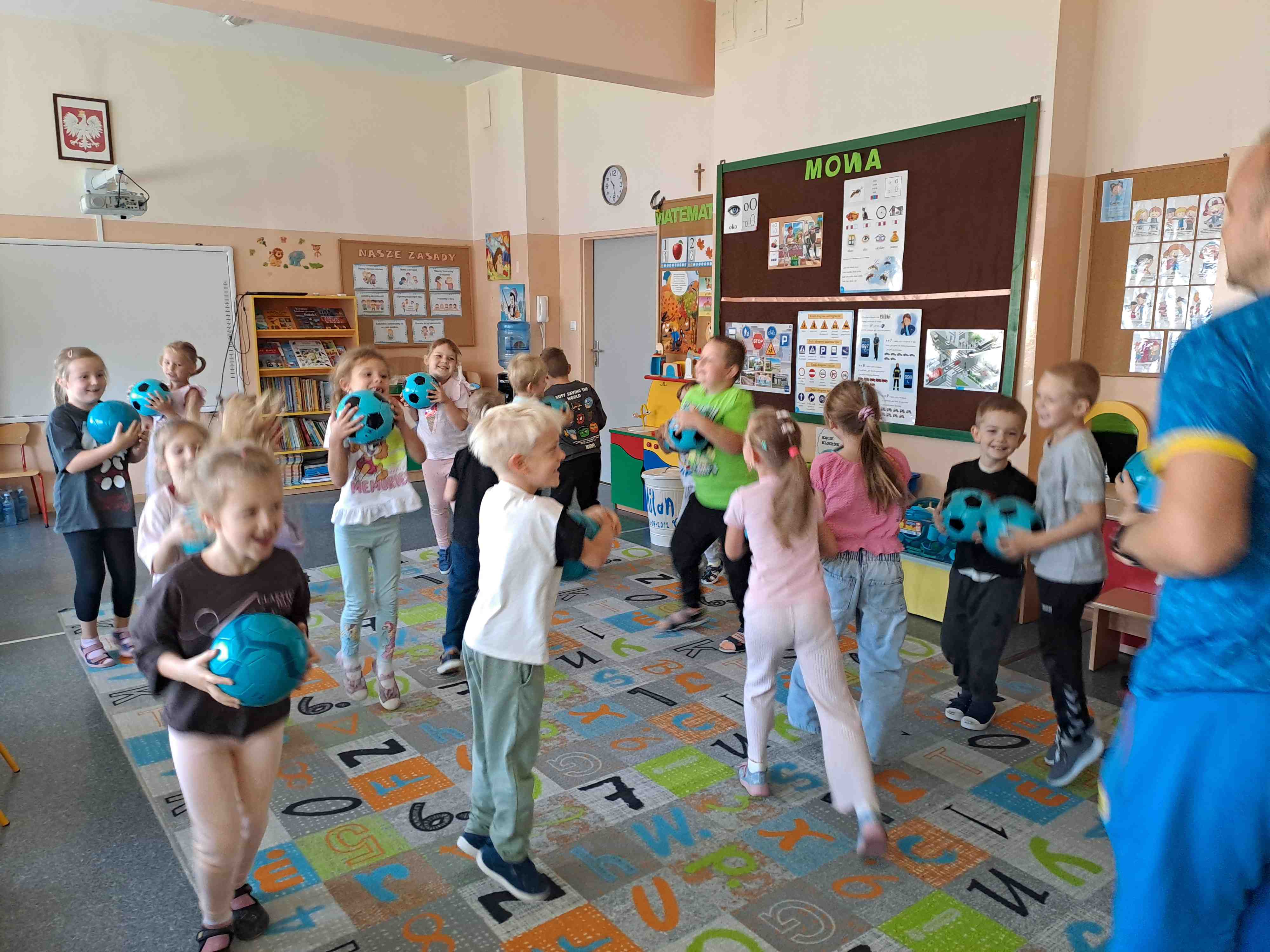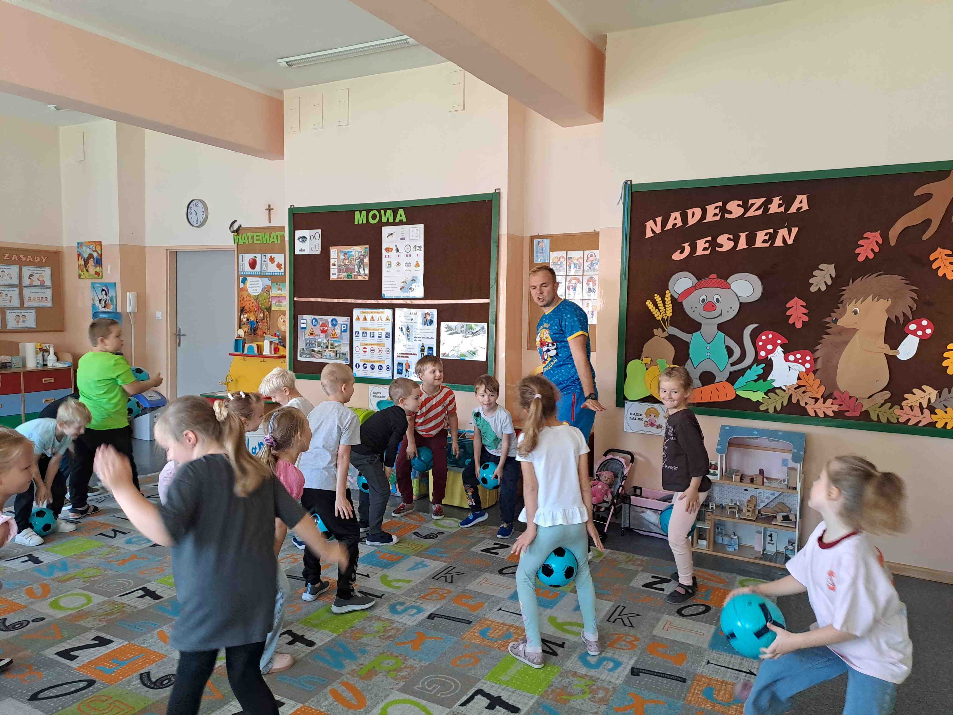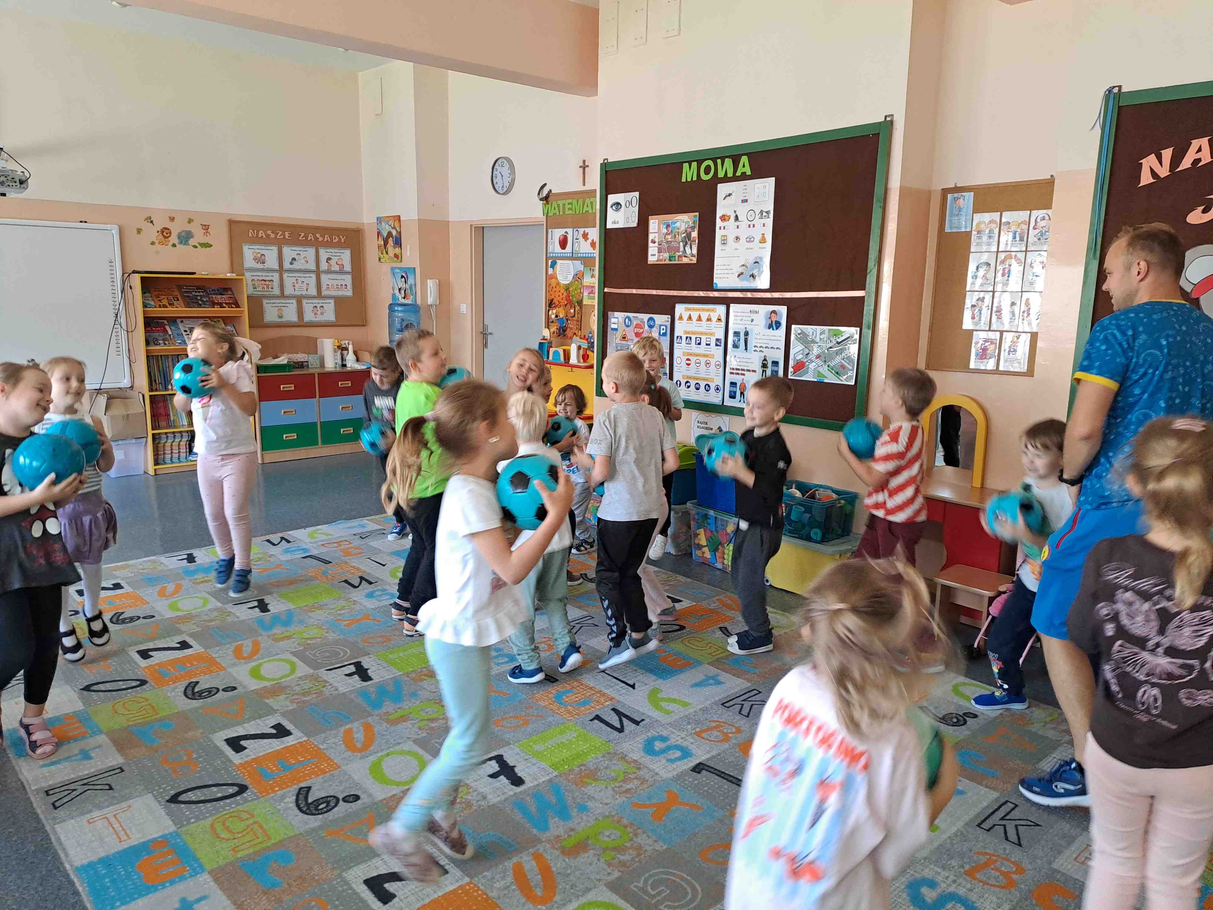 W dniu dzisiejszym "Motylki" brały udział w zajęciach pokazowych Drużyny Kangura, które zostały przeprowadzone w każdej grupie. Celem zajęć było kształtowanie u przedszkolaków zainteresowania ruchem i kulturą fizyczną, zaspokojenie potrzeby spontanicznej aktywności fizycznej, a także zachęcanie dzieci do udziału w zabawach sportowych. Na zajęciach panowała bardzo wesoła i pełna energii atmosfera.
