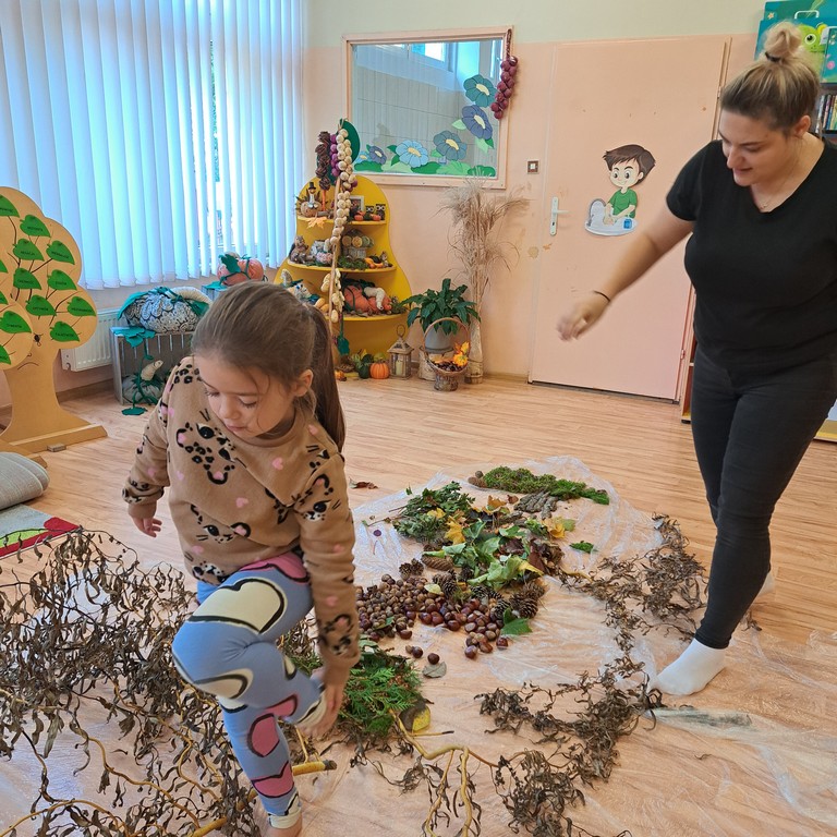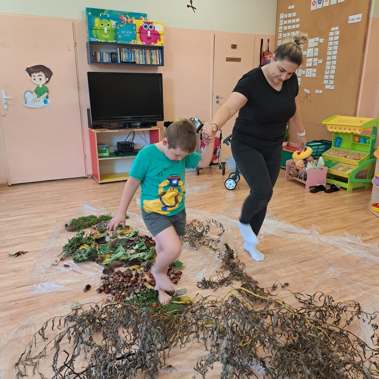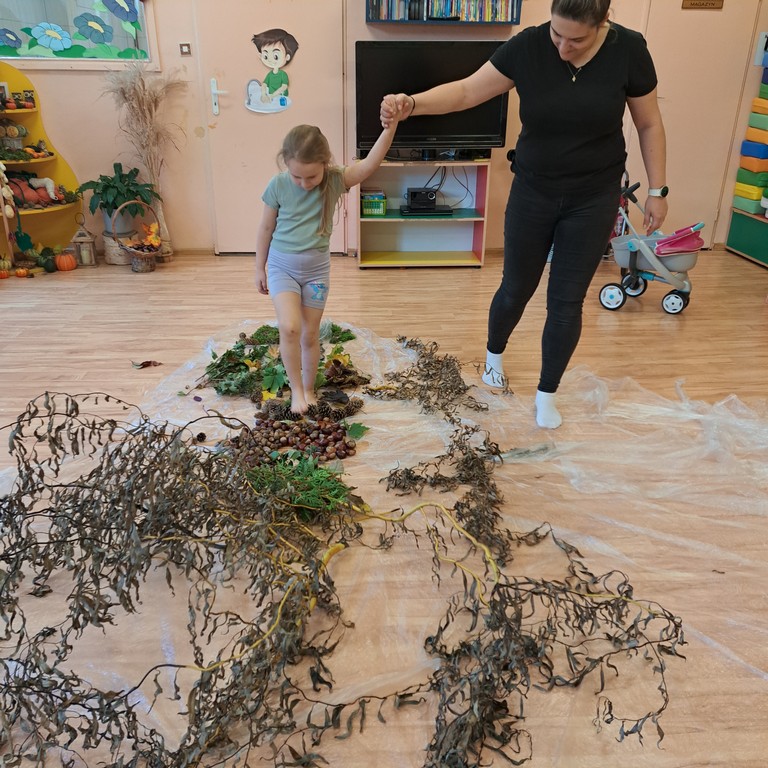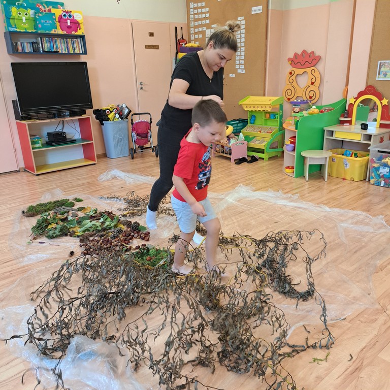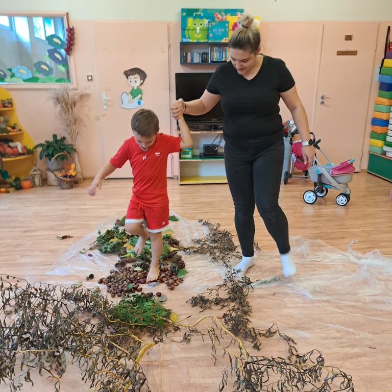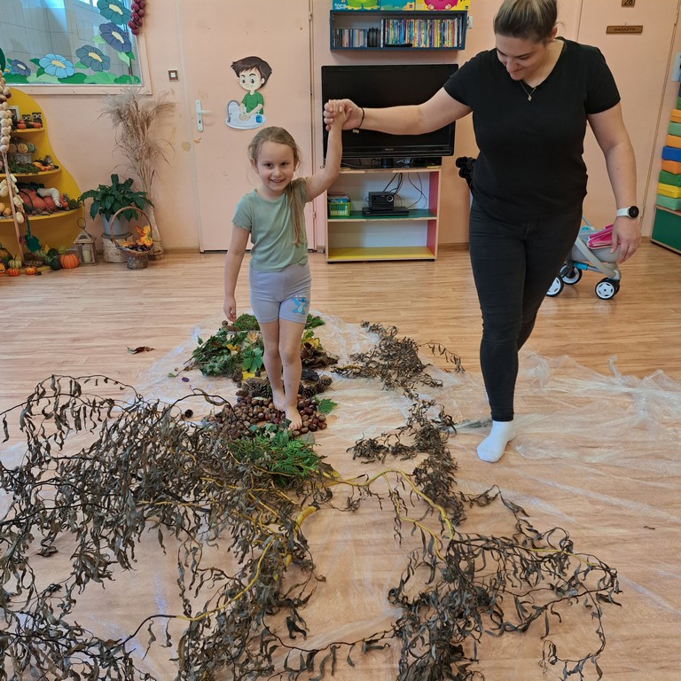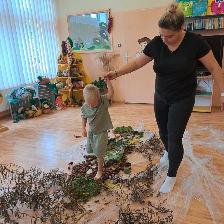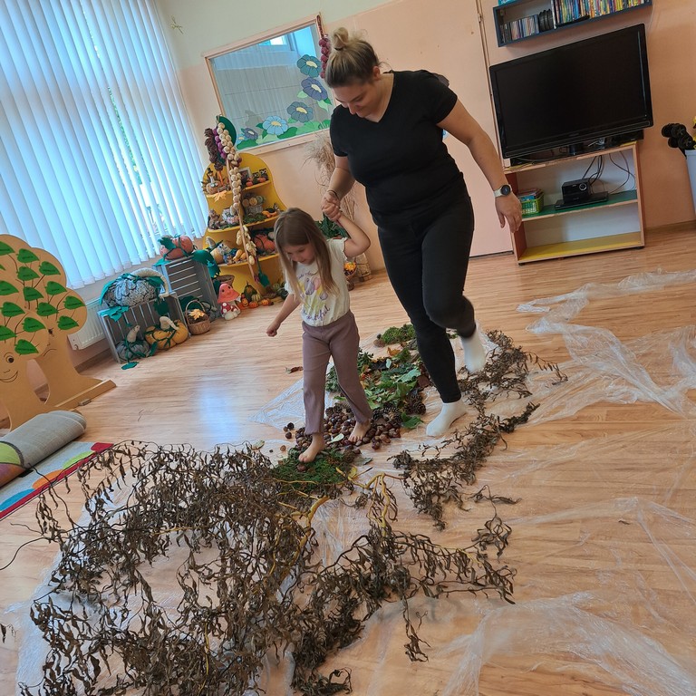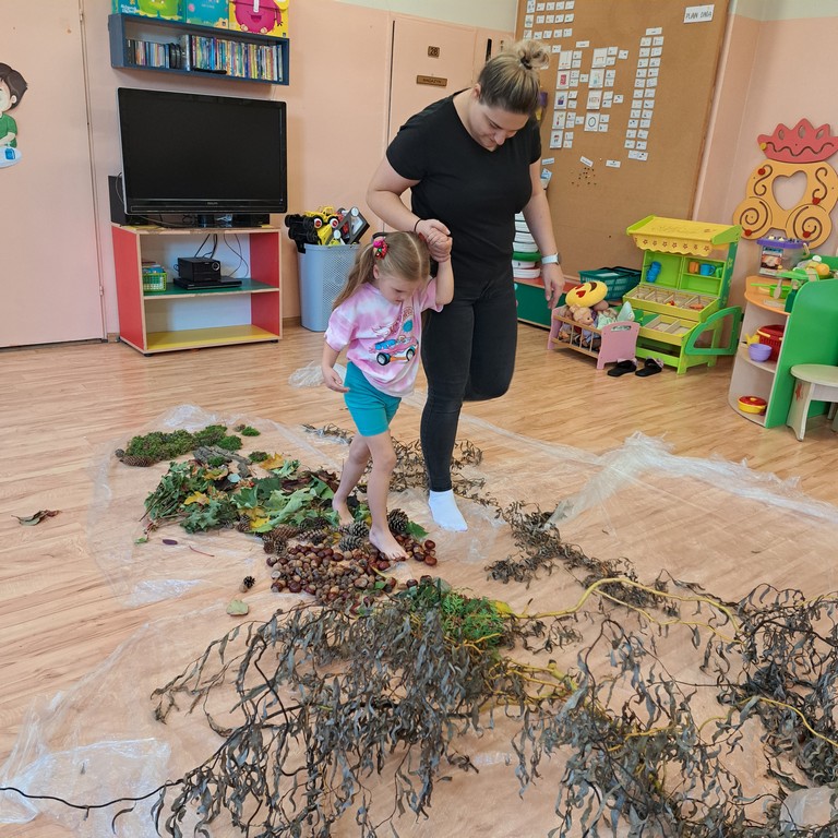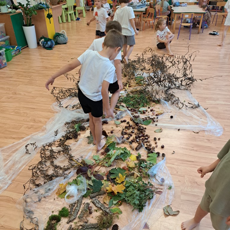 10 października w obchodzimy „Święto Drzewa”. To ważne święto przypomina nam o znaczeniu drzew dla życia ludzi, zwierząt, przyrody i dla całej naszej planety. Z tej okazji w naszym przedszkolu dzieci przeszły boso przez ścieżkę sensoryczną, stworzoną z darów lasu. Taka ścieżka ma bardzo duże znaczenie dla rozwoju dziecka- usprawnia motorykę dużą, rozwija wrażenia dotykowe, poprawia równowagę i koordynację ruchową i przede wszystkim stymuluje receptory. Pozwala odczuwać, porządkować, składać w jedną spójną całość i rozumieć w relacji do siebie bodźce odbierane przez zmysły z otaczającego nas świata. Spacer po wyznaczonej trasie sprawił mnóstwo radości i satysfakcji. Dzieci układały też drzewo z darów lasu. To był dzień pełen świetnej zabawy.