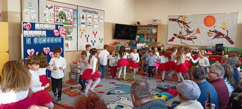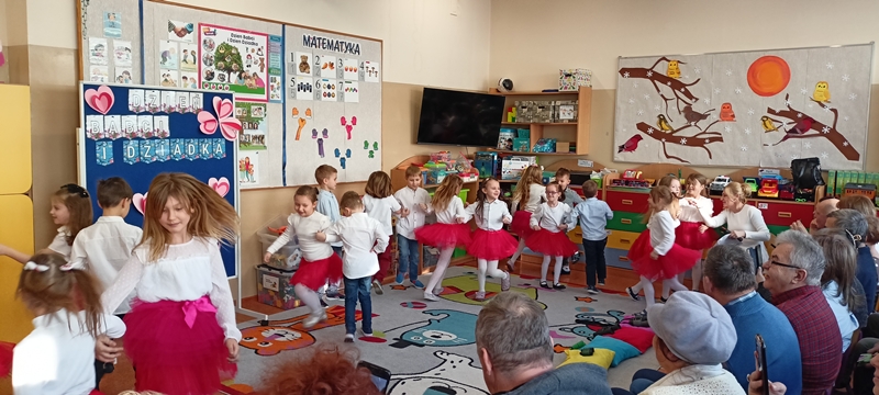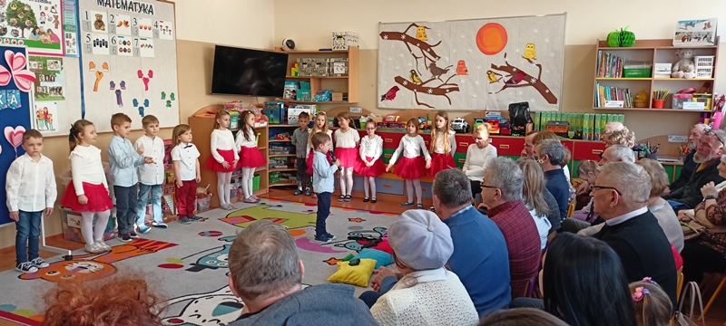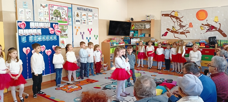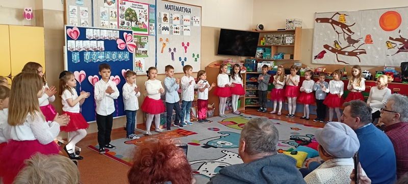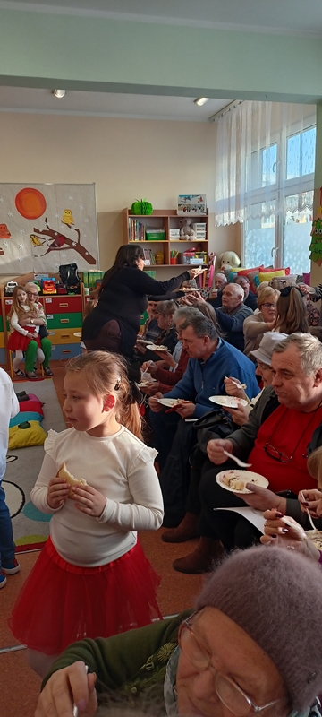 22 stycznia obchodziliśmy w naszej grupie Dzień Babci i Dziadka - w tym dniu dzieci przygotowały montaż muzyczno- słowny, nie zabrakło kwiatków, laurek i całusów. Na koniec uroczystości zaplanowany był słodki poczęstunek , którym był przepyszny tort. Życzymy wszystkim dziadkom, dużo zdrowia i samych pięknych chwil w życiu.