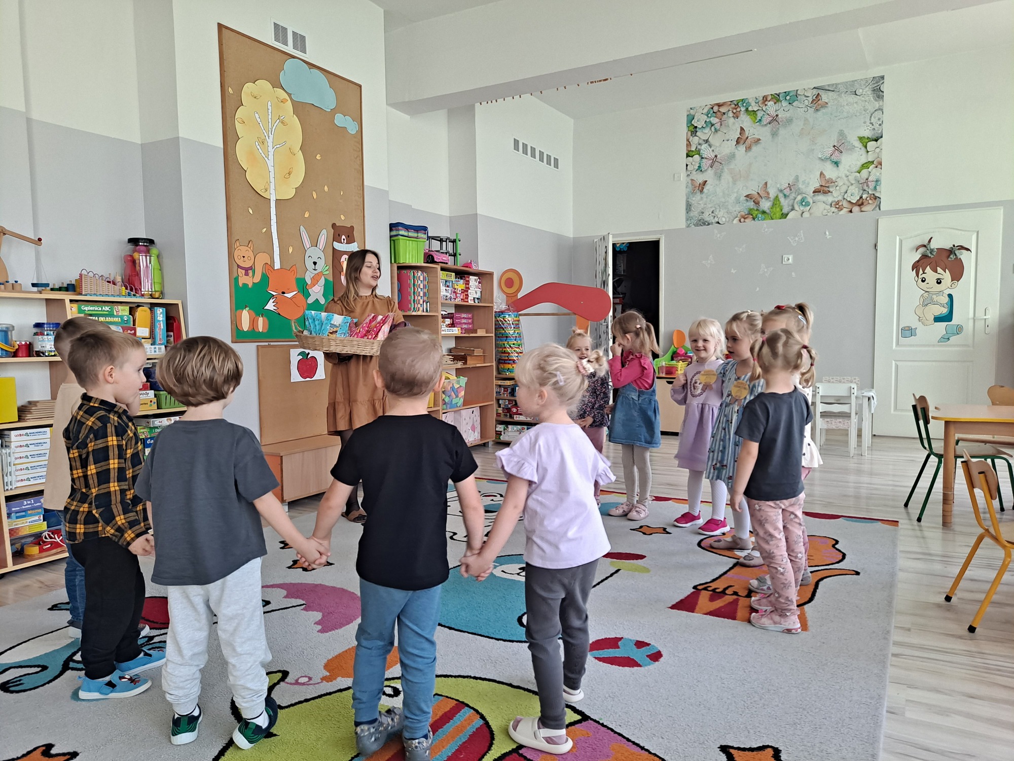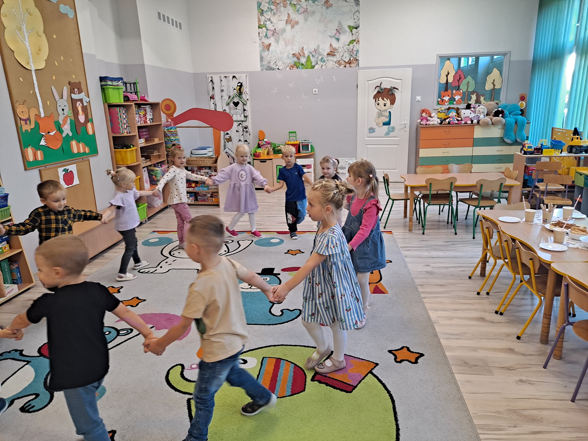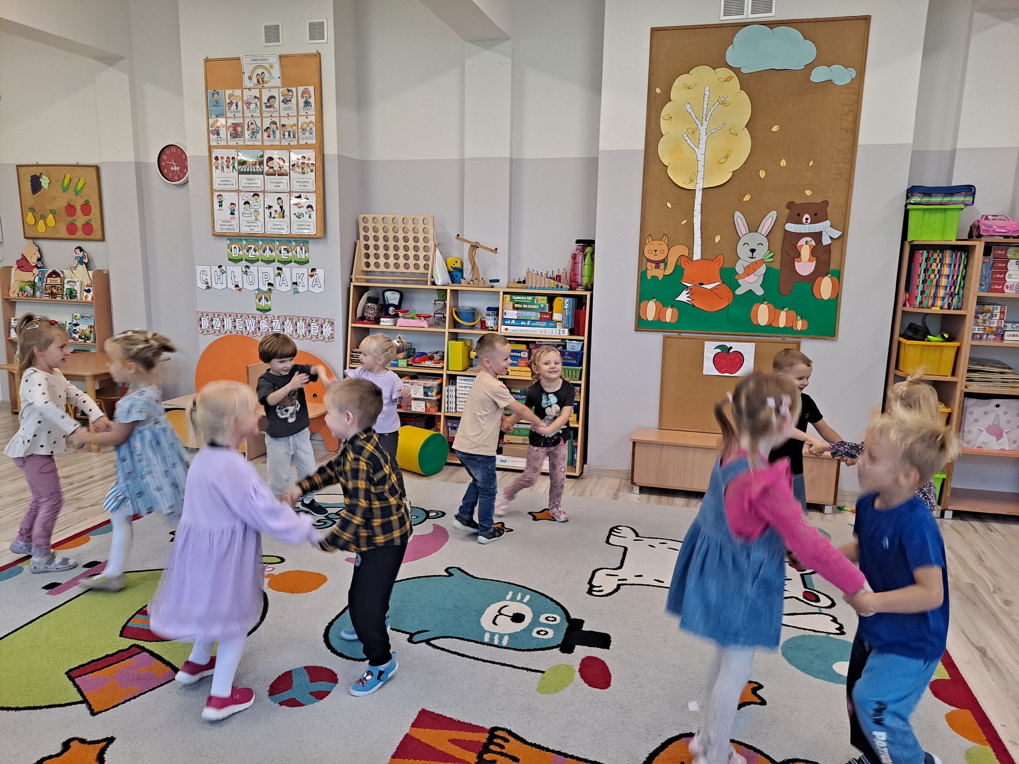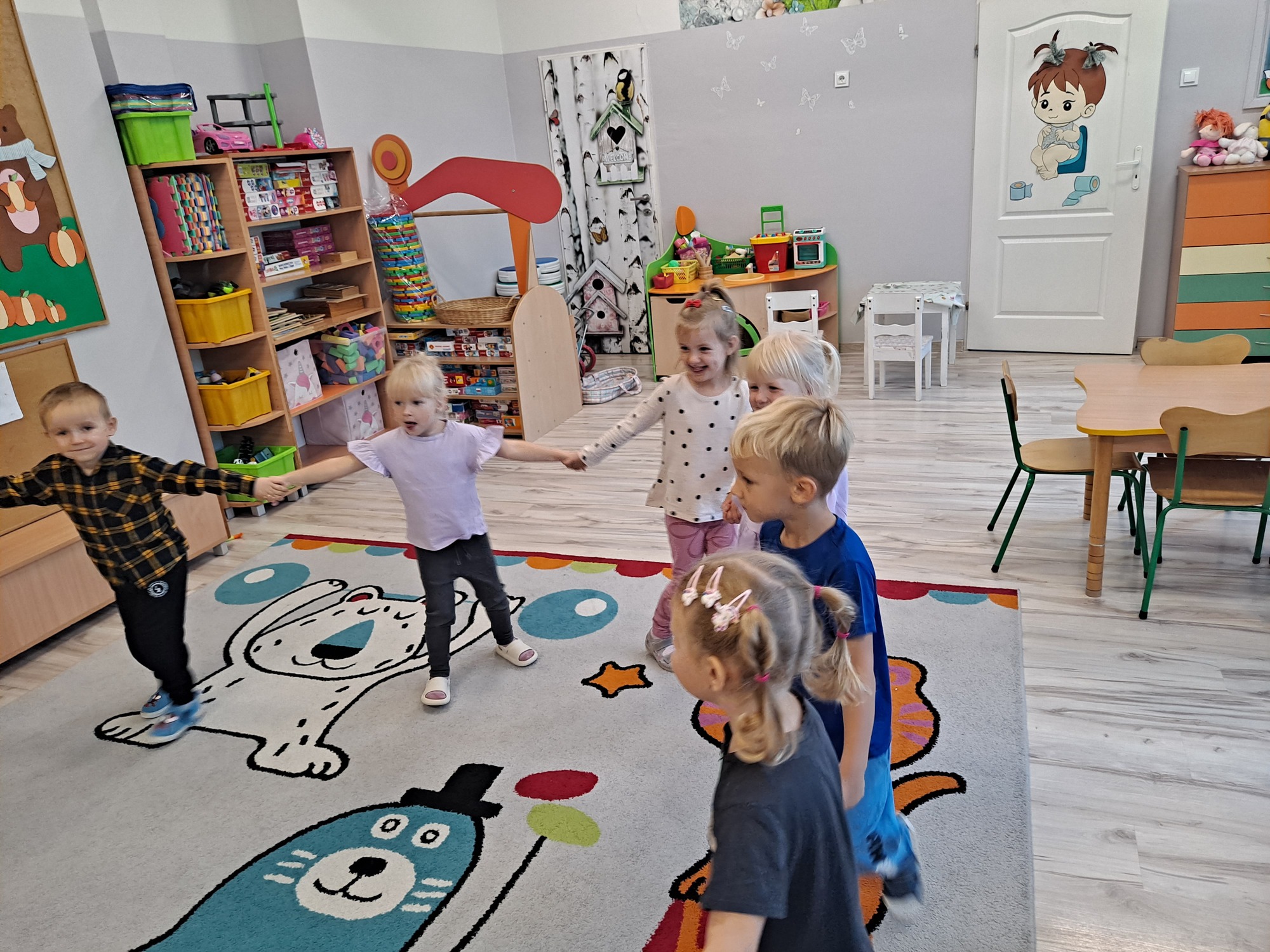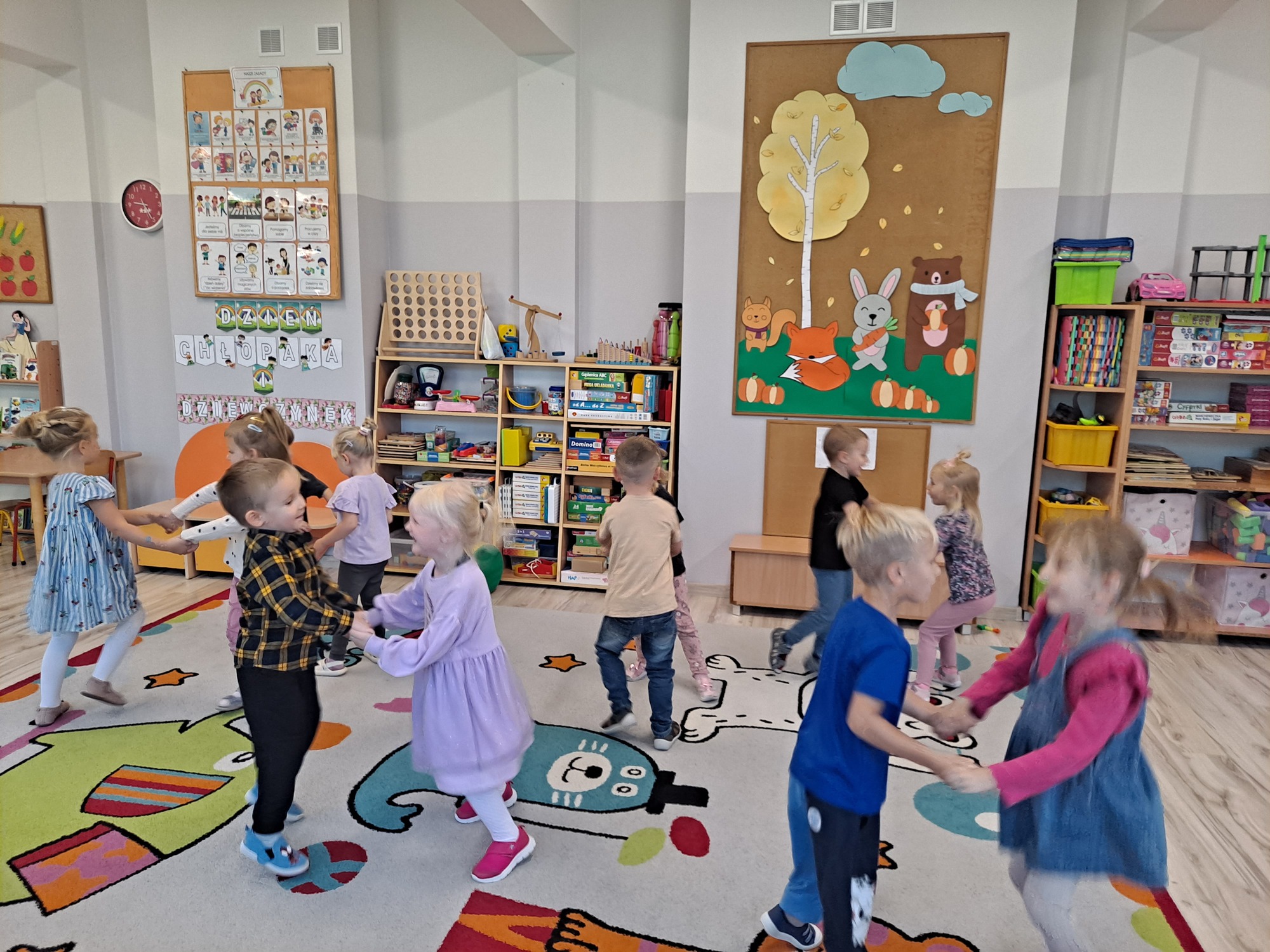 Dzieci bawiły się razem przy muzyce – nie zabrakło tańców i radosnych zabaw integracyjnych.