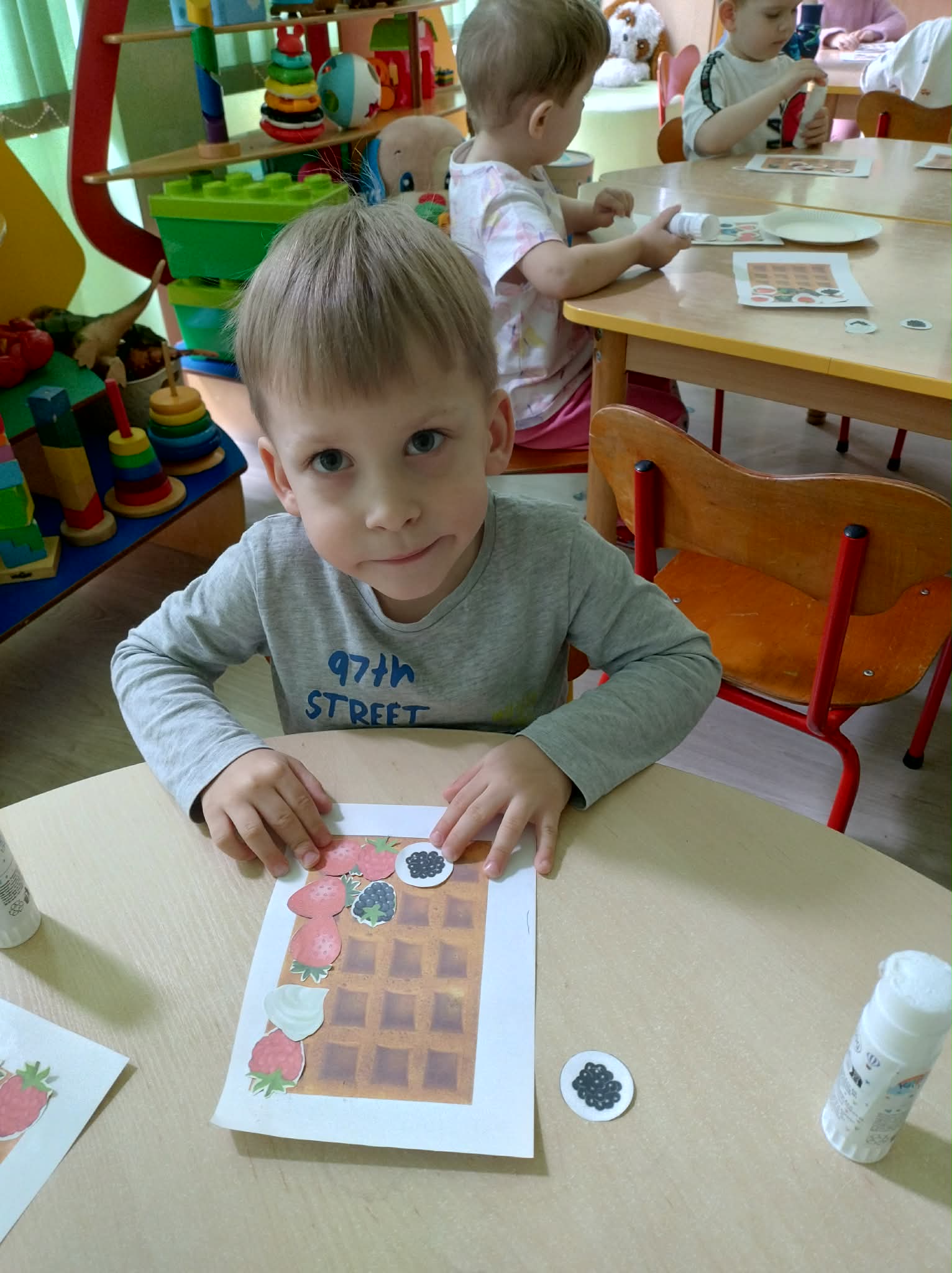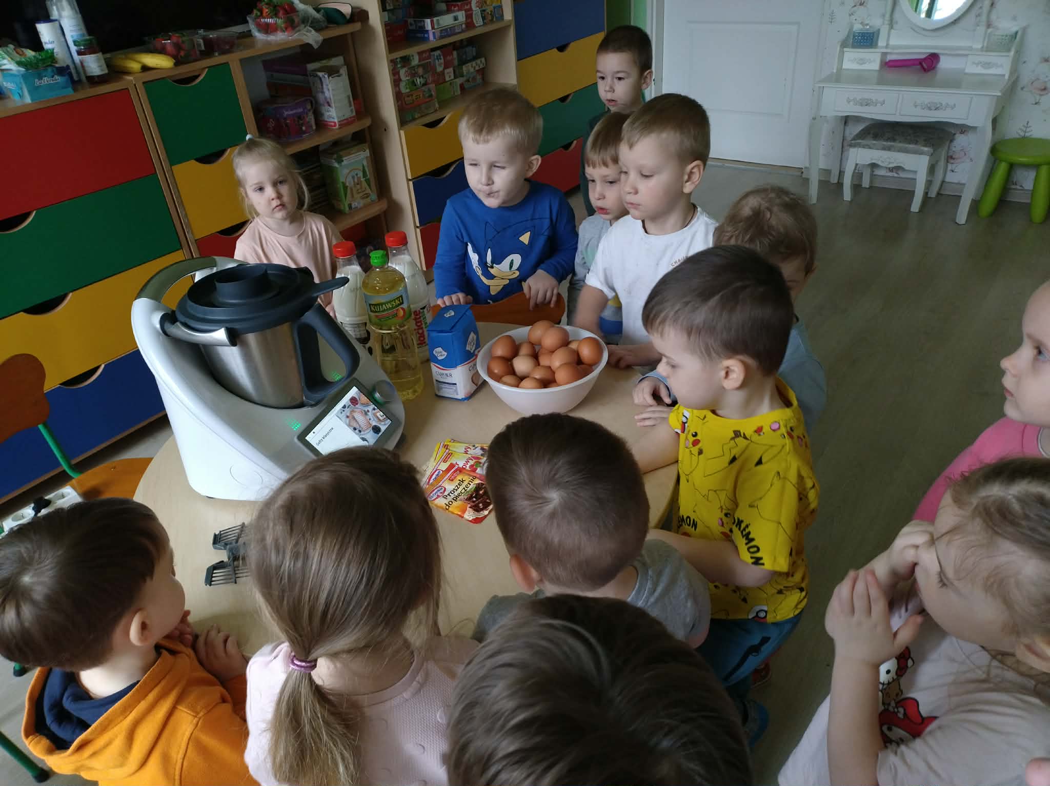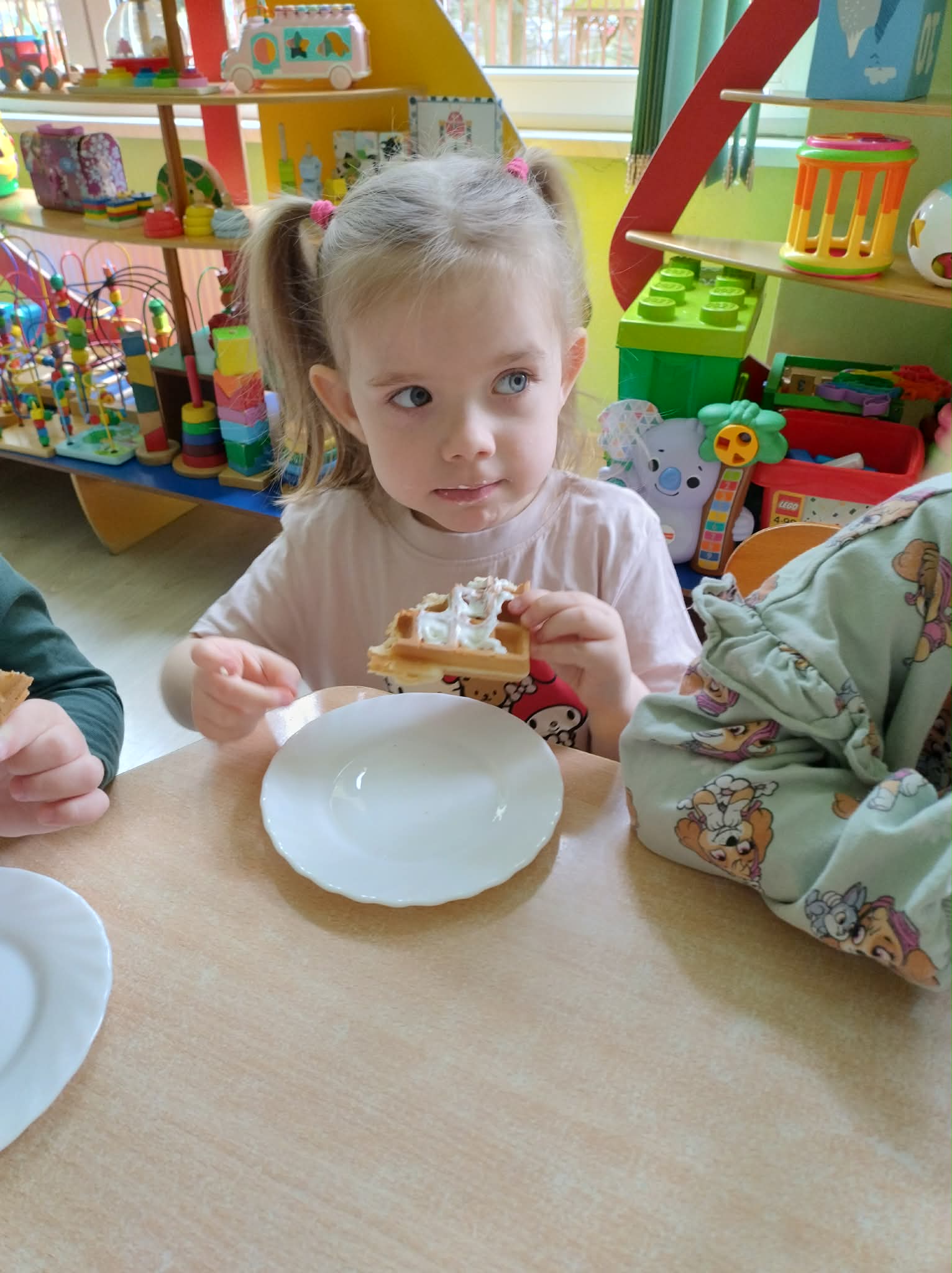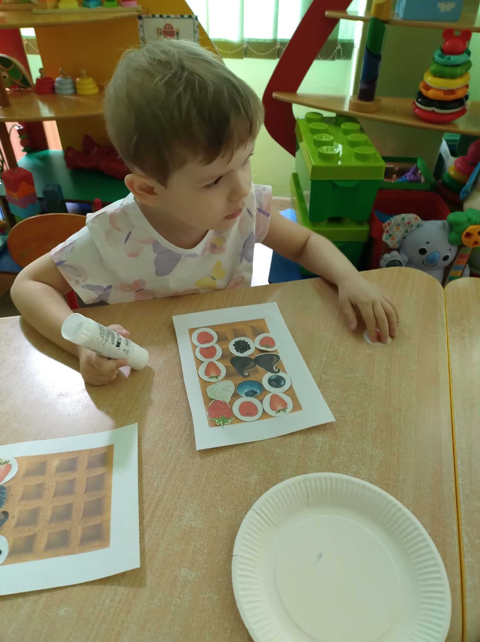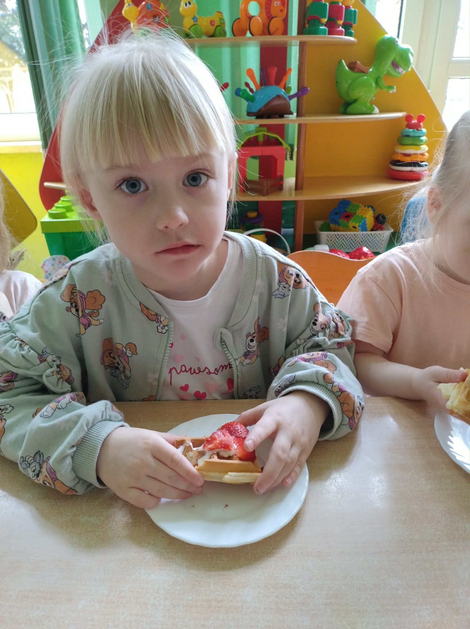 W naszej grupie odbył się wyjątkowy Dzień Gofra, który dostarczył dzieciom wielu radości i smakowitych wrażeń. Przedszkolaki miały okazję samodzielnie uczestniczyć w przygotowaniu gofrów – obserwowały kolejne etapy ich powstawania, a także pomagały w prostych czynnościach. Po upieczeniu przyszedł czas na najprzyjemniejszą część, czyli degustację. Dzieci dekorowały swoje gofry według własnych upodobań, wybierając spośród dodatków takich jak bita śmietana, dżem, cukier puder oraz świeże owoce. Każdy mógł stworzyć swojego wyjątkowego, kolorowego gofra. Na zakończenie dzieci wykonały pracę plastyczną – naklejały gotowe elementy, tworząc własnego gofra na wzór prawdziwego wypieku. Zajęcia rozwijały kreatywność, sprawność manualną oraz były doskonałą okazją do wspólnej zabawy. Dzień upłynął w bardzo radosnej i słodkiej atmosferze.
