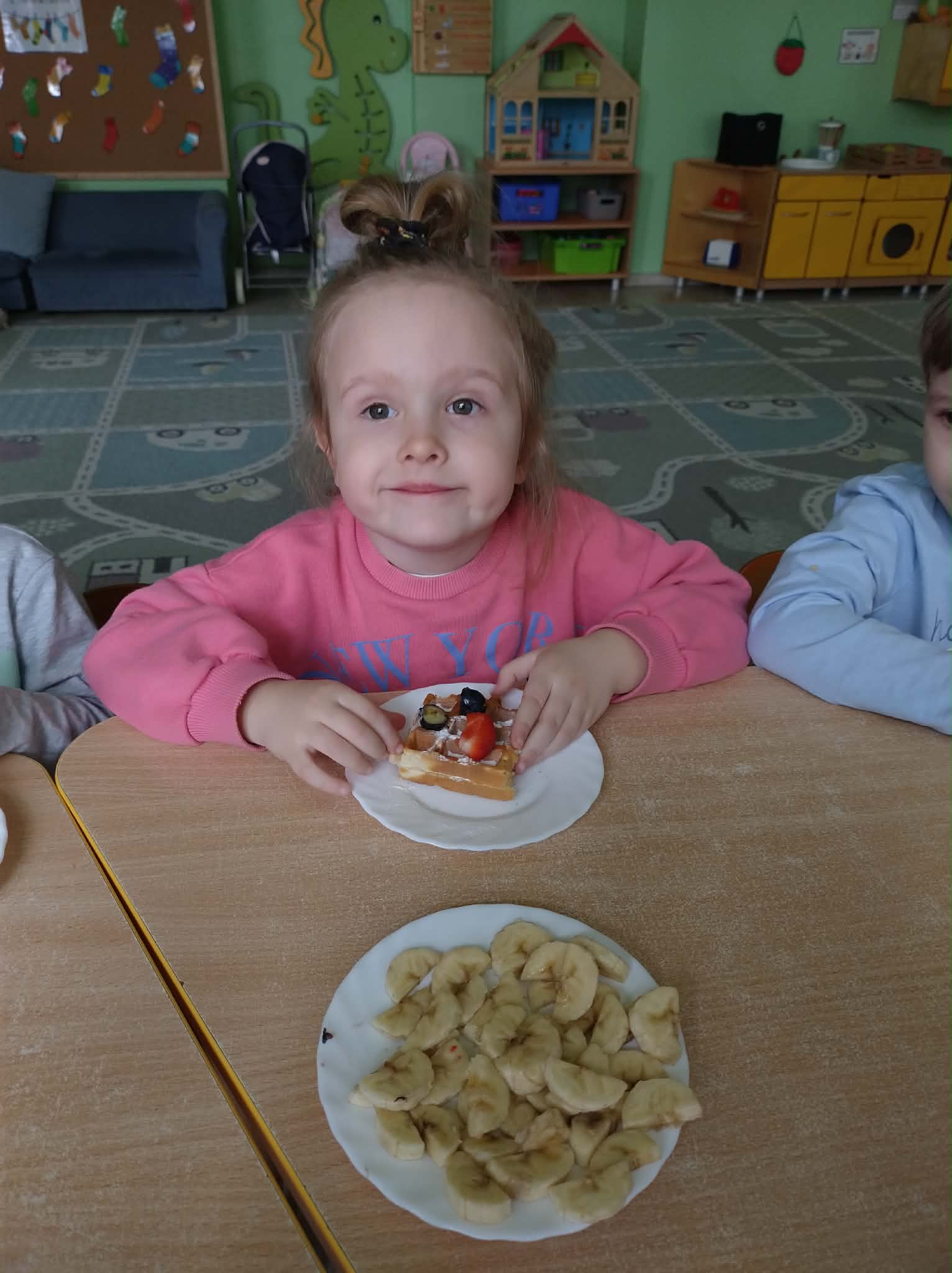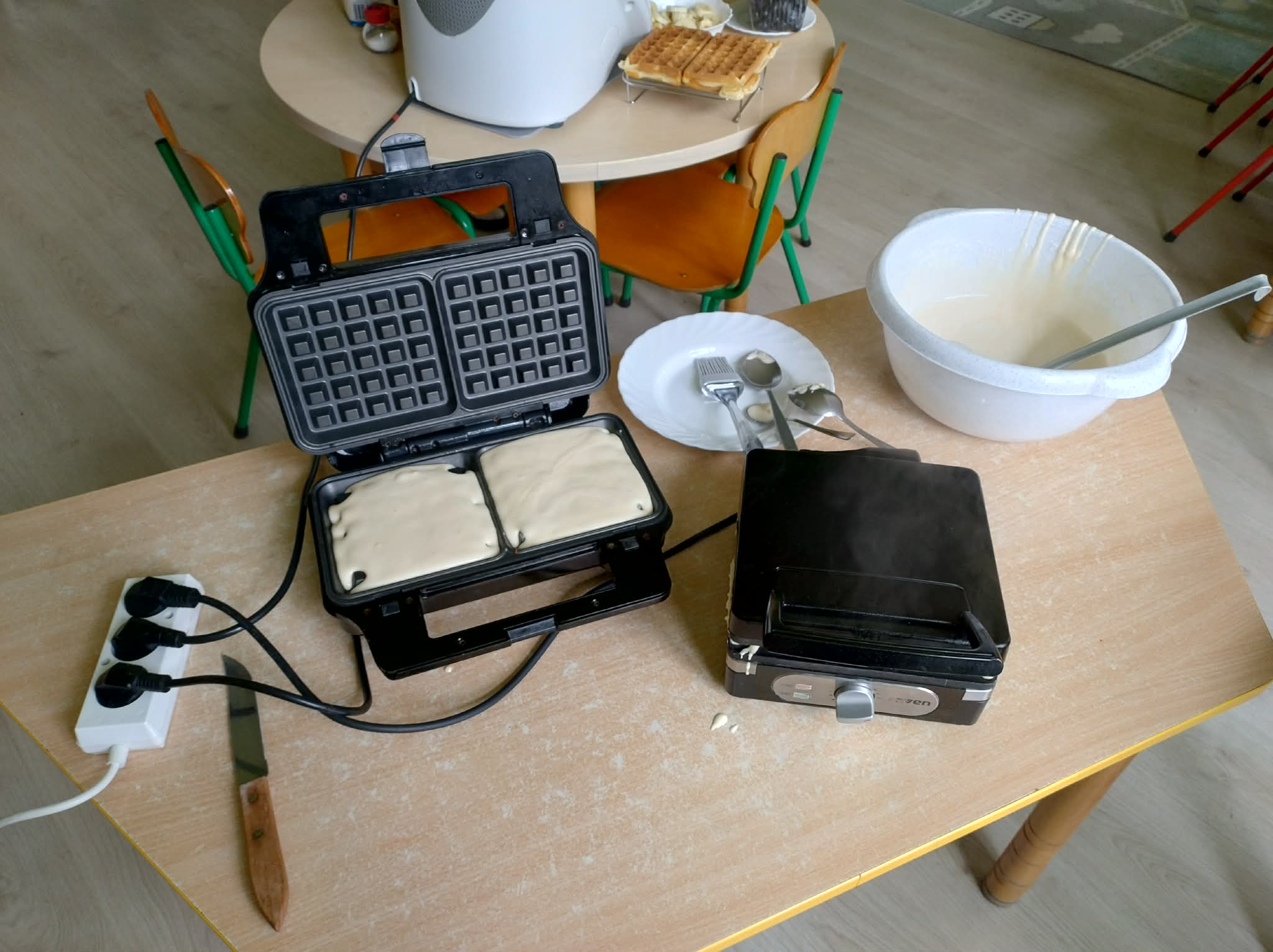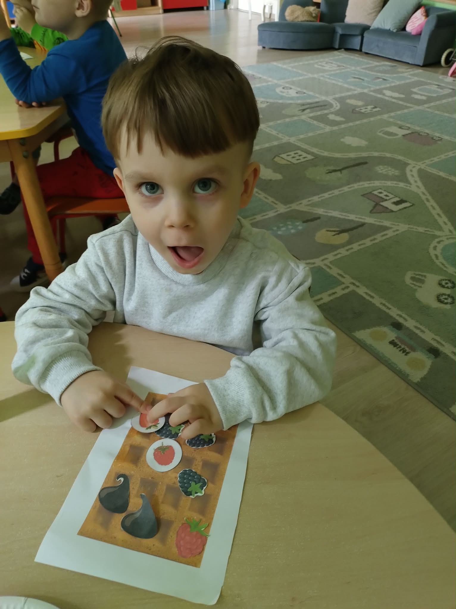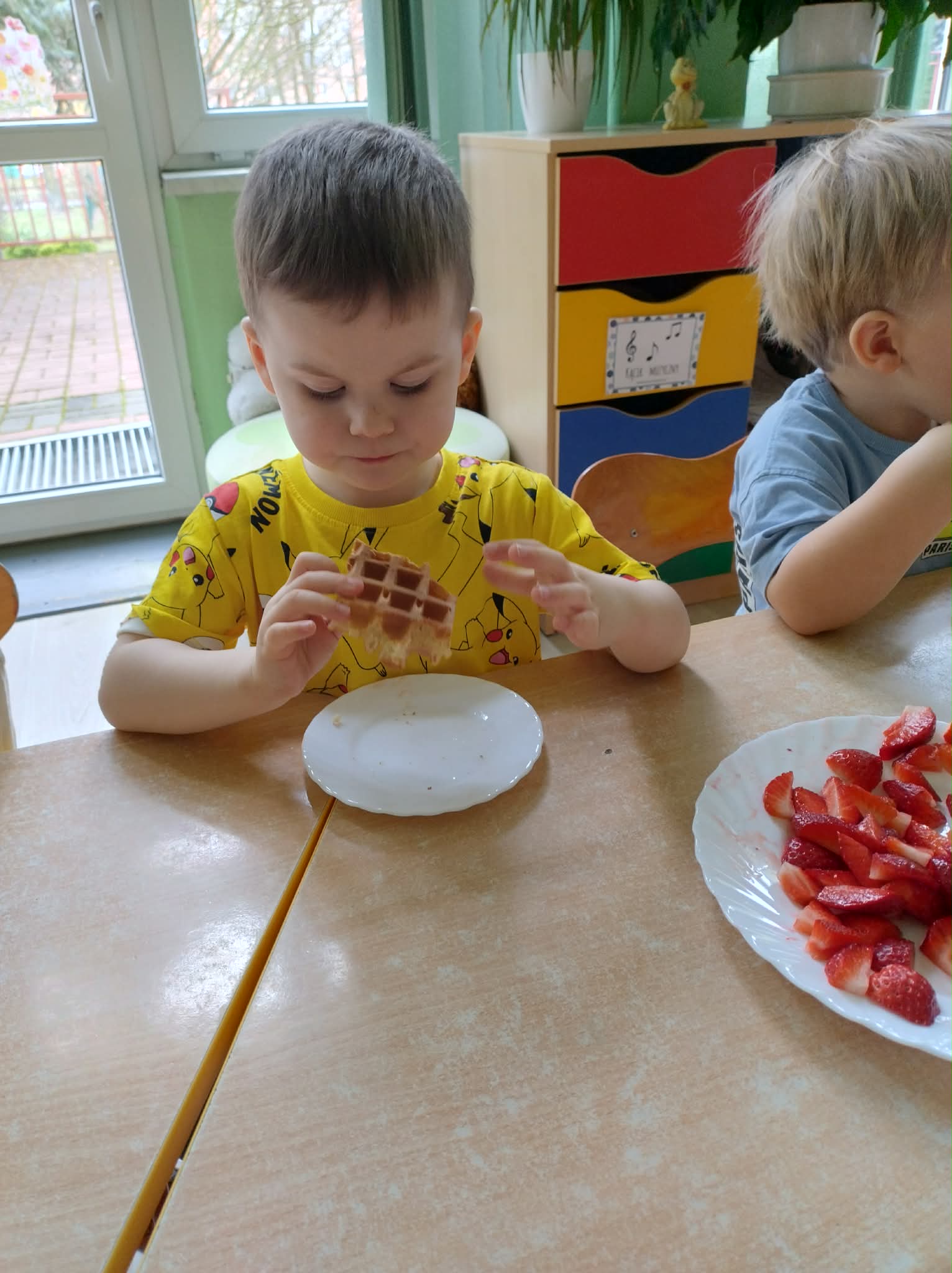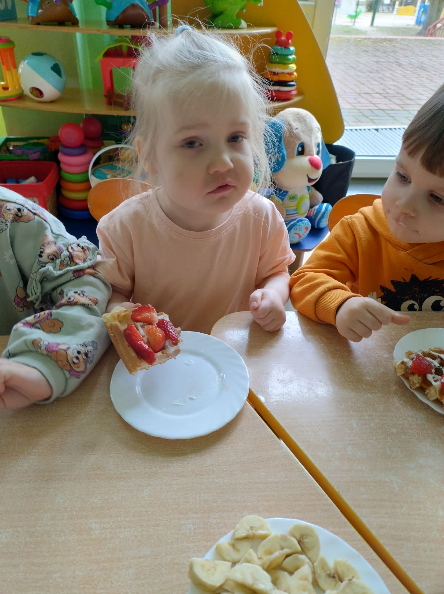 W naszej grupie odbył się wyjątkowy Dzień Gofra, który dostarczył dzieciom wielu radości i smakowitych wrażeń. Przedszkolaki miały okazję samodzielnie uczestniczyć w przygotowaniu gofrów – obserwowały kolejne etapy ich powstawania, a także pomagały w prostych czynnościach. Po upieczeniu przyszedł czas na najprzyjemniejszą część, czyli degustację. Dzieci dekorowały swoje gofry według własnych upodobań, wybierając spośród dodatków takich jak bita śmietana, dżem, cukier puder oraz świeże owoce. Każdy mógł stworzyć swojego wyjątkowego, kolorowego gofra. Na zakończenie dzieci wykonały pracę plastyczną – naklejały gotowe elementy, tworząc własnego gofra na wzór prawdziwego wypieku. Zajęcia rozwijały kreatywność, sprawność manualną oraz były doskonałą okazją do wspólnej zabawy. Dzień upłynął w bardzo radosnej i słodkiej atmosferze.