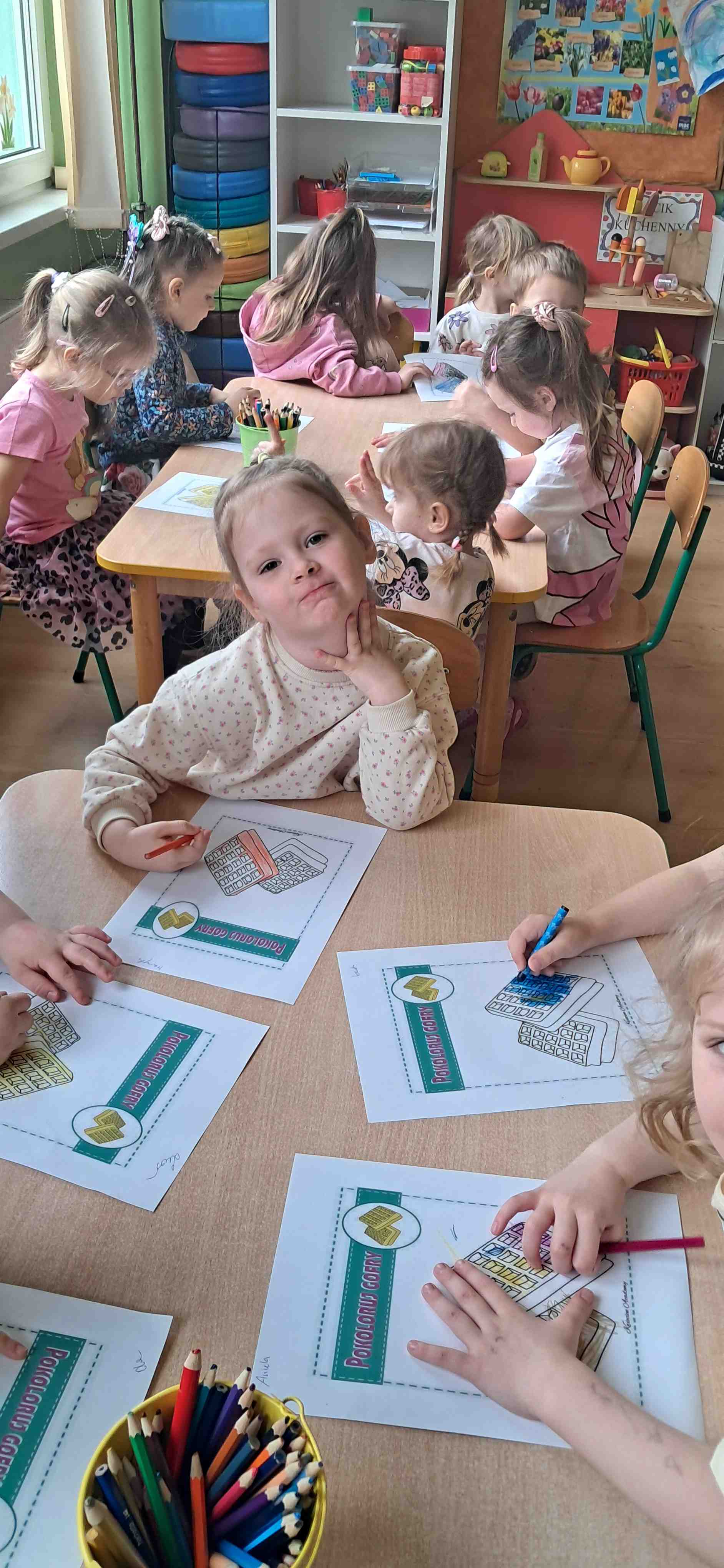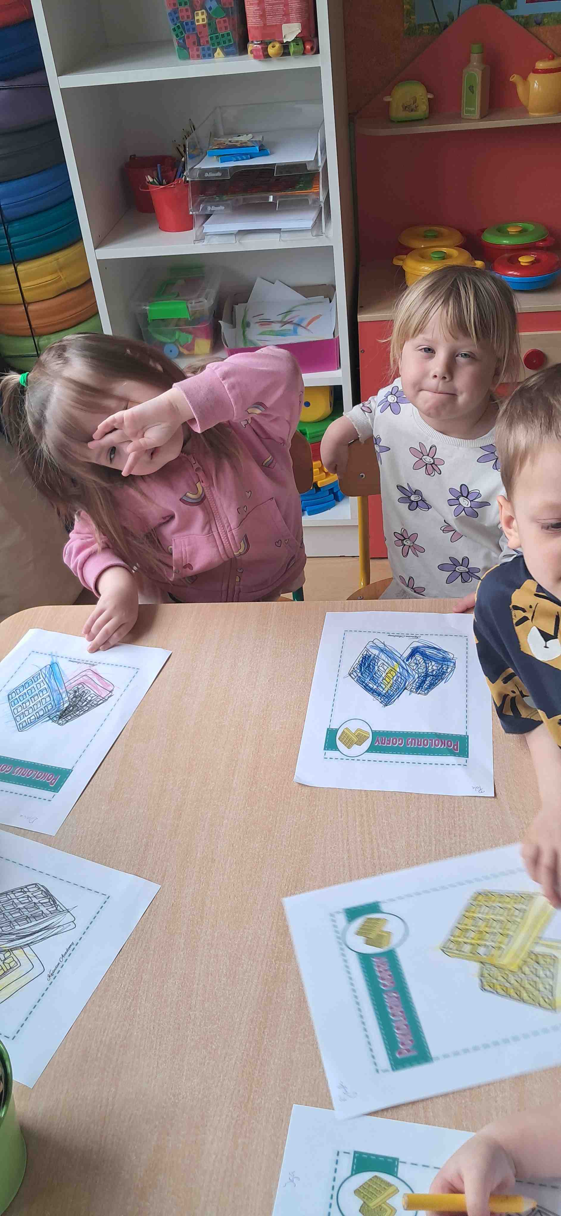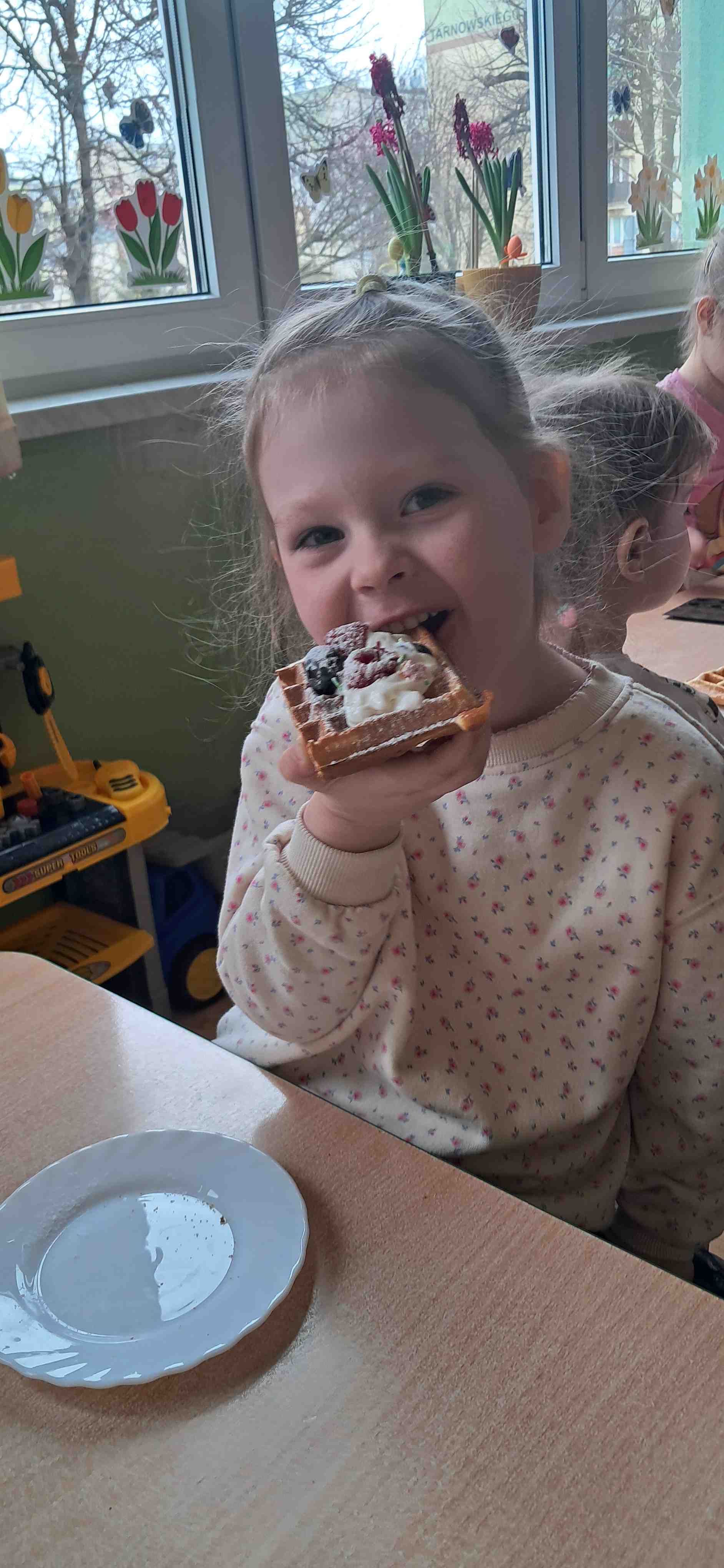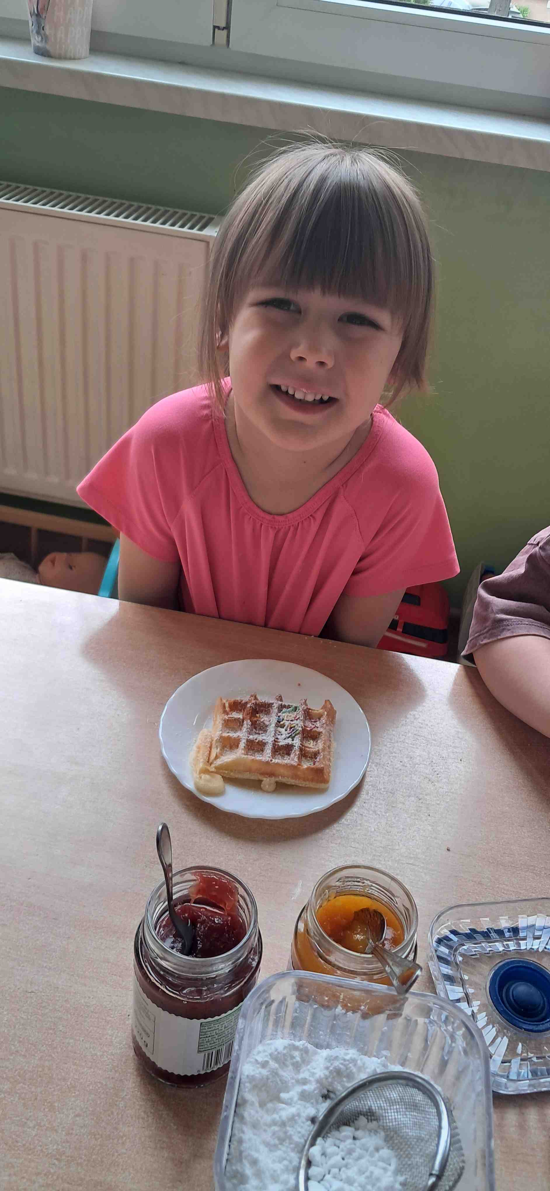 W naszej grupie odbył się wyjątkowy Dzień Gofra, który dostarczył dzieciom wielu radości i smakowitych wrażeń. Przedszkolaki miały okazję samodzielnie uczestniczyć w przygotowaniu gofrów – obserwowały kolejne etapy ich powstawania, a także pomagały w prostych czynnościach. Po upieczeniu przyszedł czas na najprzyjemniejszą część, czyli degustację. Dzieci dekorowały swoje gofry według własnych upodobań, wybierając spośród dodatków takich jak bita śmietana, dżem, cukier puder oraz świeże owoce. Każdy mógł stworzyć swojego wyjątkowego, kolorowego gofra. Na zakończenie dzieci wykonały pracę plastyczną – naklejały gotowe elementy, tworząc własnego gofra na wzór prawdziwego wypieku. Zajęcia rozwijały kreatywność, sprawność manualną oraz były doskonałą okazją do wspólnej zabawy. Dzień upłynął w bardzo radosnej i słodkiej atmosferze.