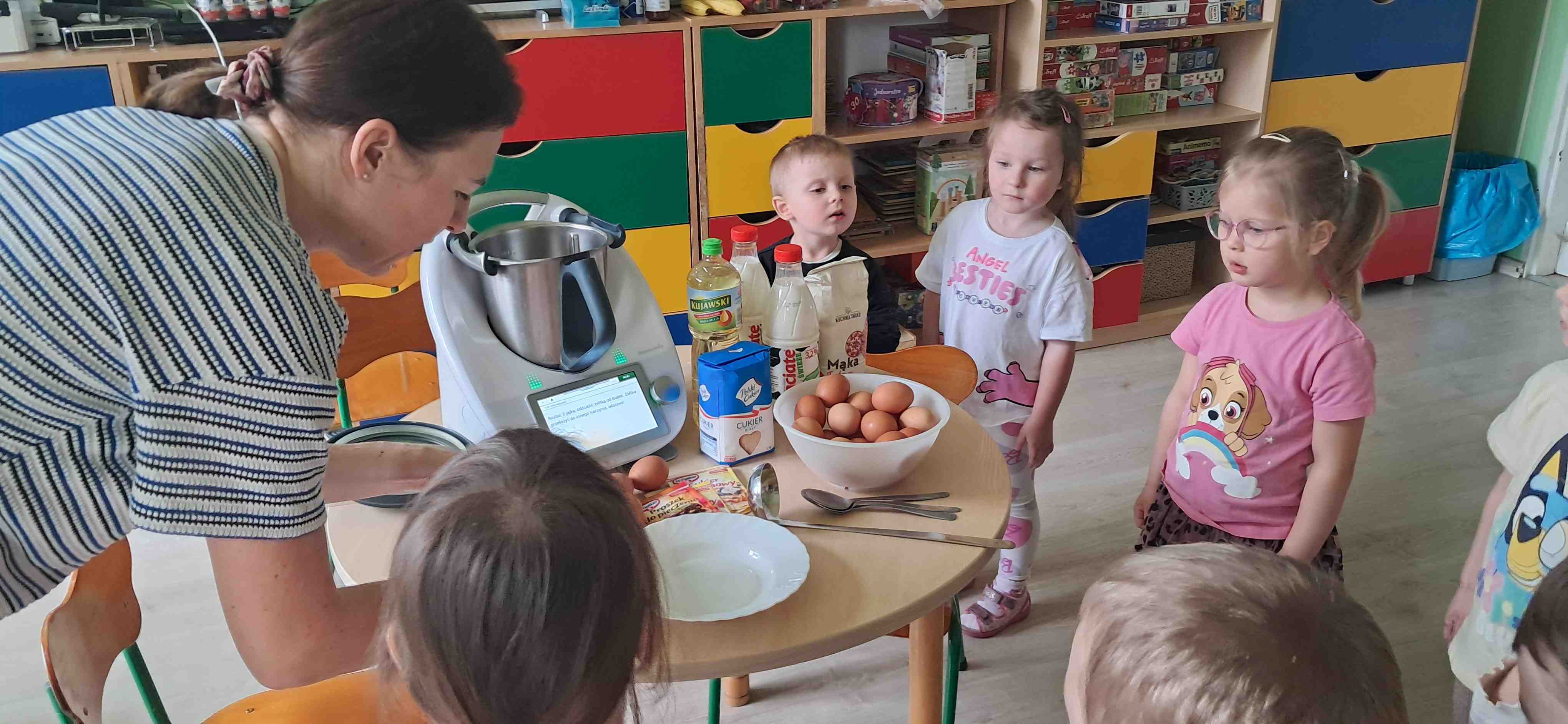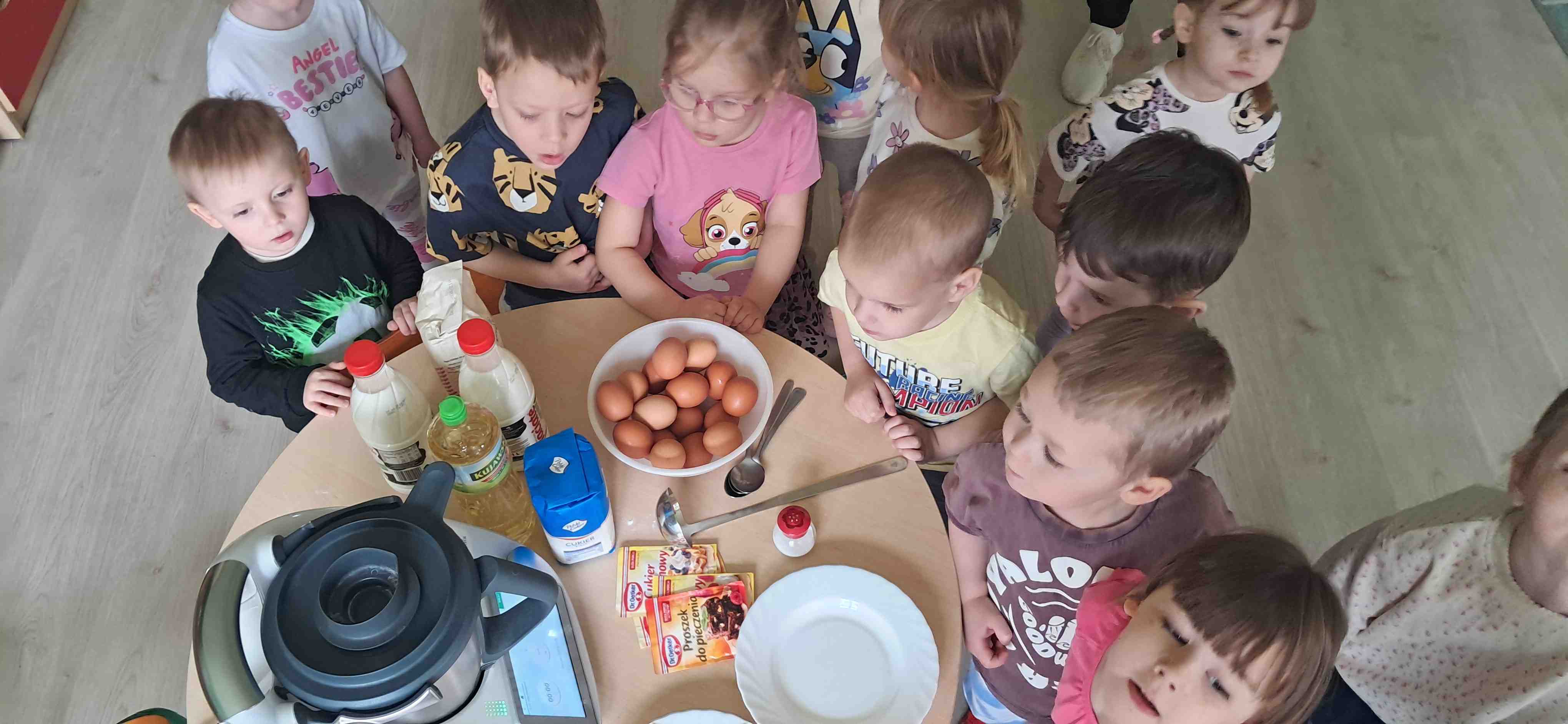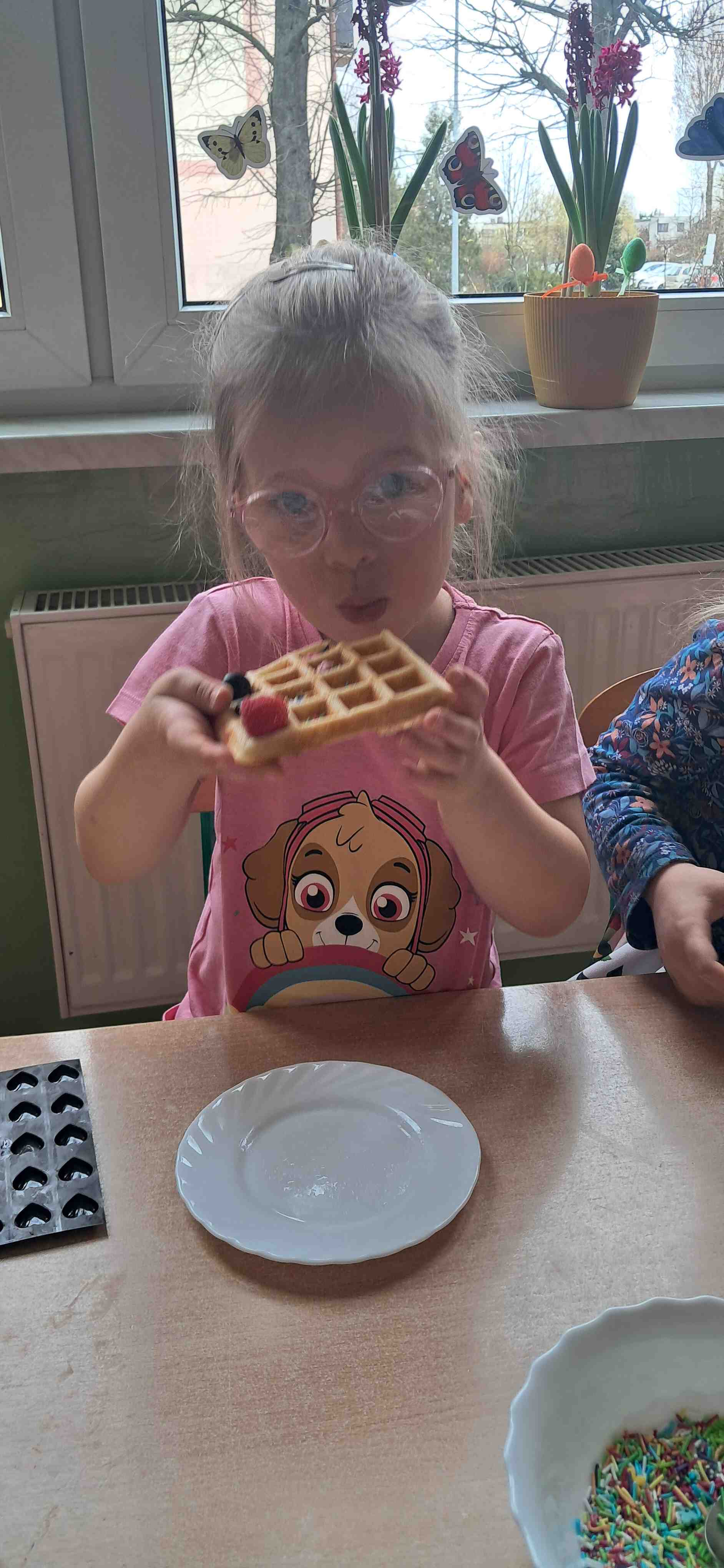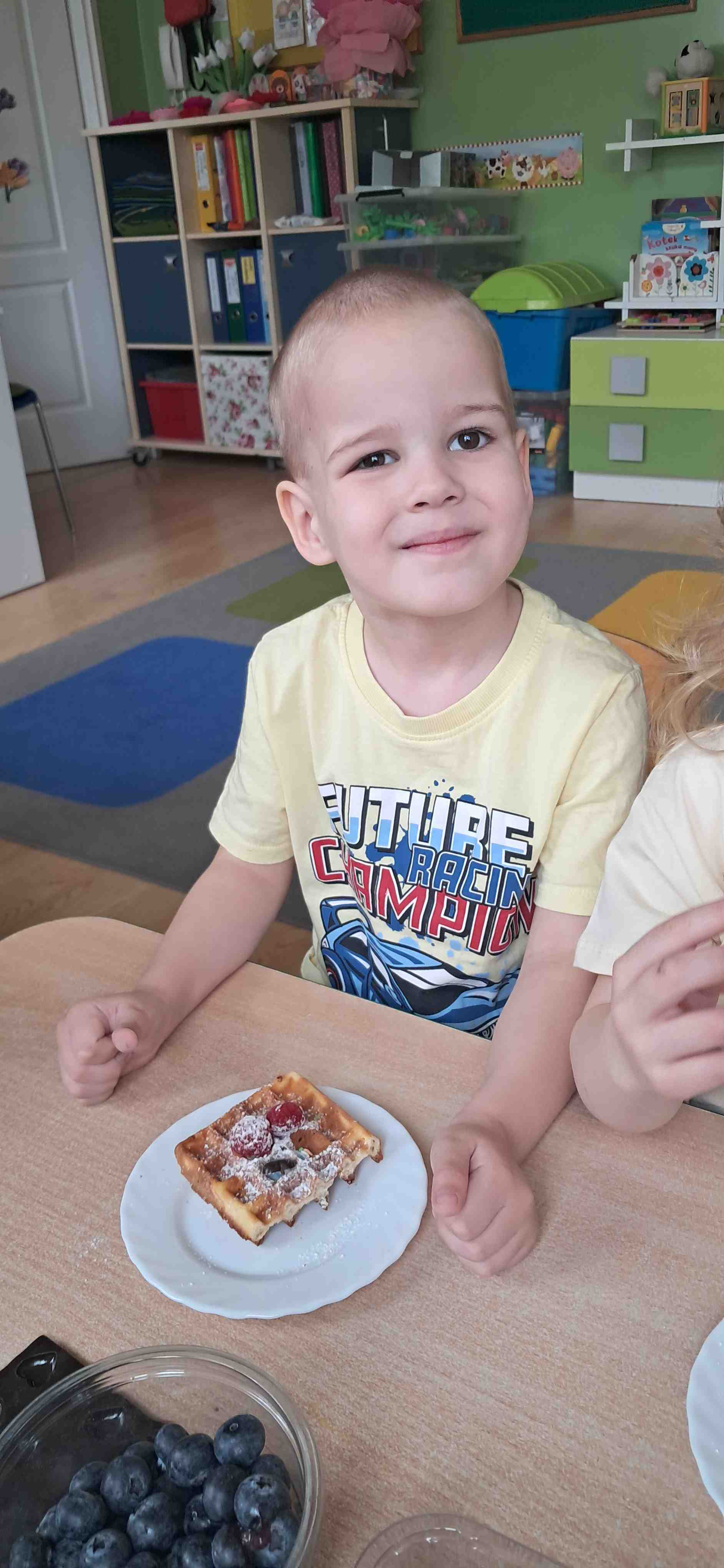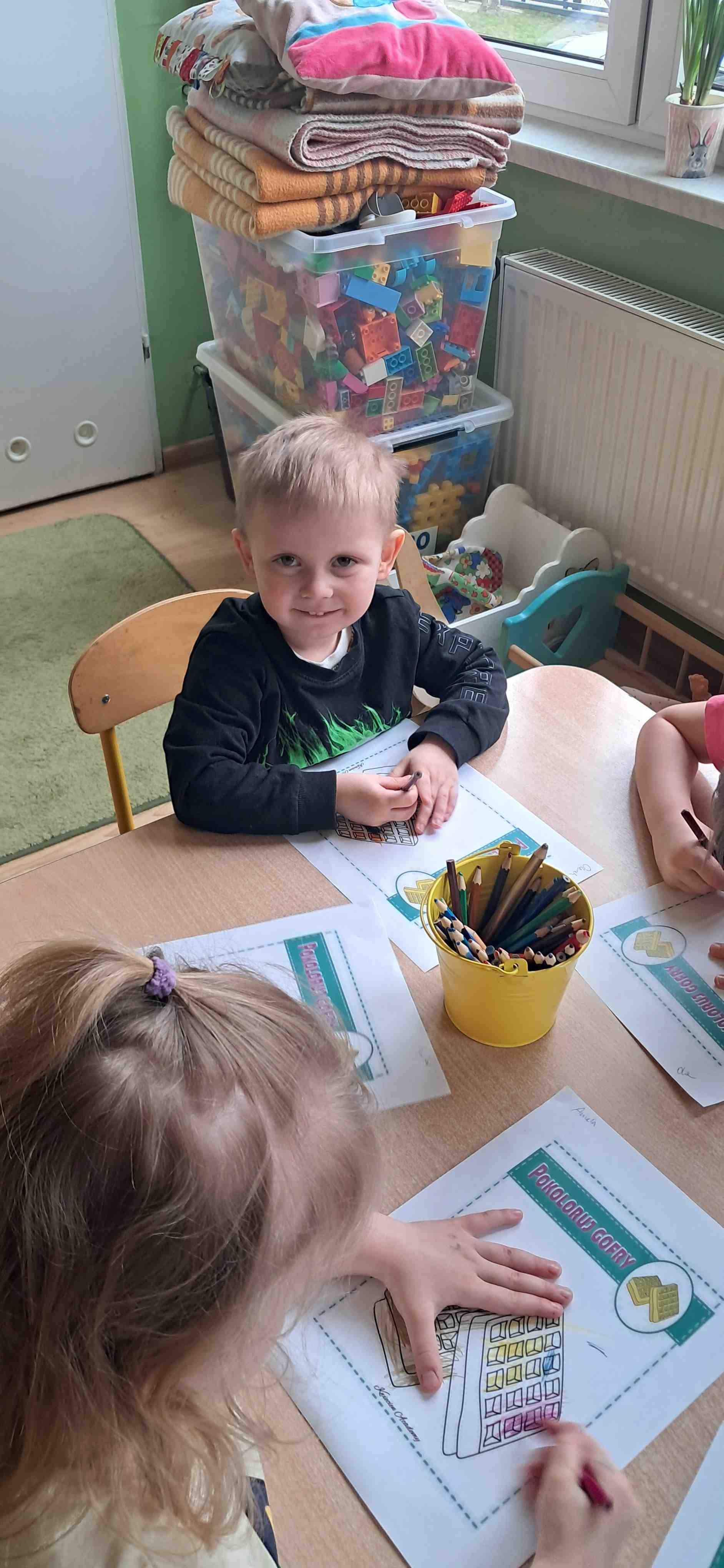 W naszej grupie odbył się wyjątkowy Dzień Gofra, który dostarczył dzieciom wielu radości i smakowitych wrażeń. Przedszkolaki miały okazję samodzielnie uczestniczyć w przygotowaniu gofrów – obserwowały kolejne etapy ich powstawania, a także pomagały w prostych czynnościach. Po upieczeniu przyszedł czas na najprzyjemniejszą część, czyli degustację. Dzieci dekorowały swoje gofry według własnych upodobań, wybierając spośród dodatków takich jak bita śmietana, dżem, cukier puder oraz świeże owoce. Każdy mógł stworzyć swojego wyjątkowego, kolorowego gofra. Na zakończenie dzieci wykonały pracę plastyczną – naklejały gotowe elementy, tworząc własnego gofra na wzór prawdziwego wypieku. Zajęcia rozwijały kreatywność, sprawność manualną oraz były doskonałą okazją do wspólnej zabawy. Dzień upłynął w bardzo radosnej i słodkiej atmosferze.