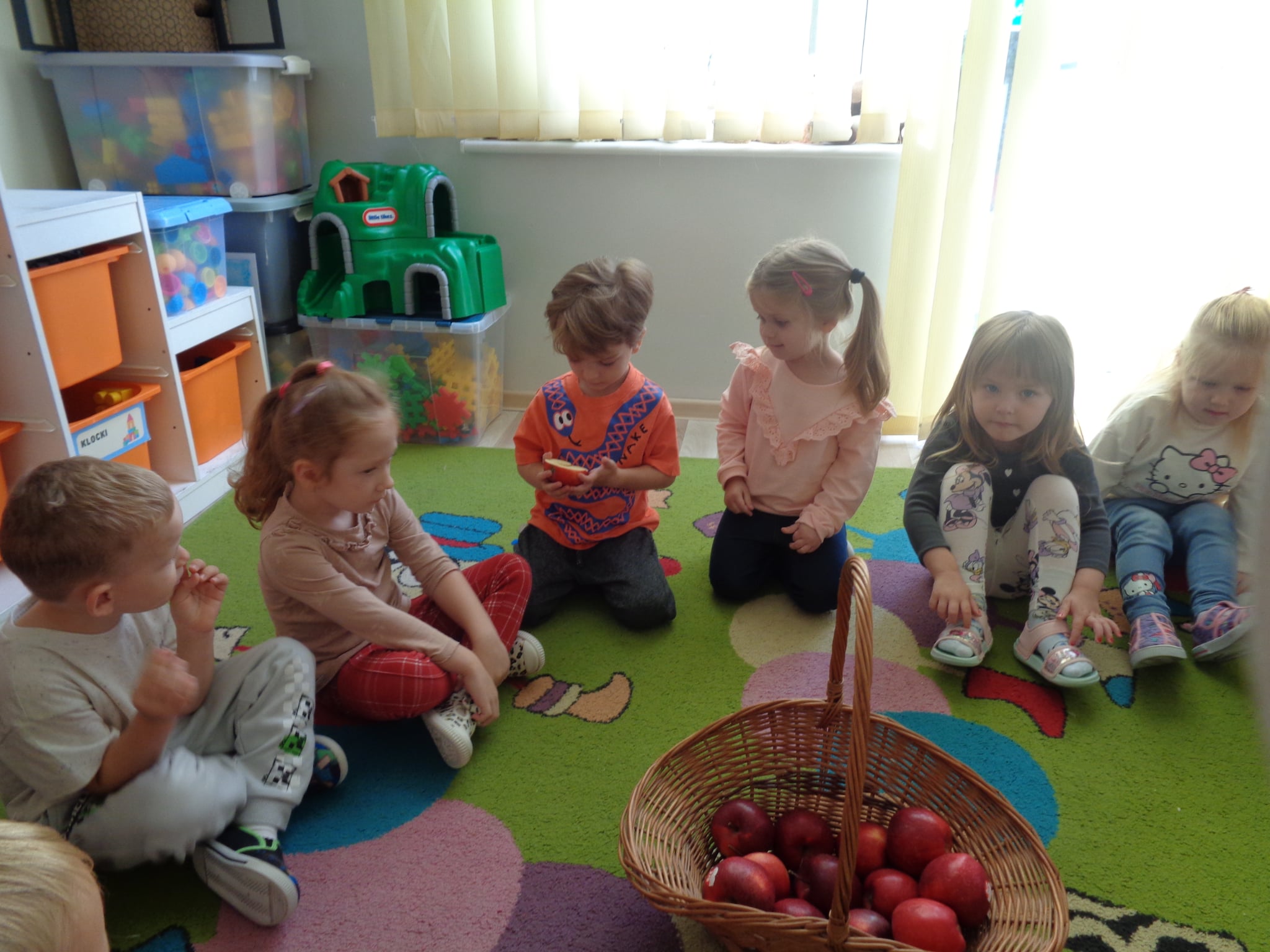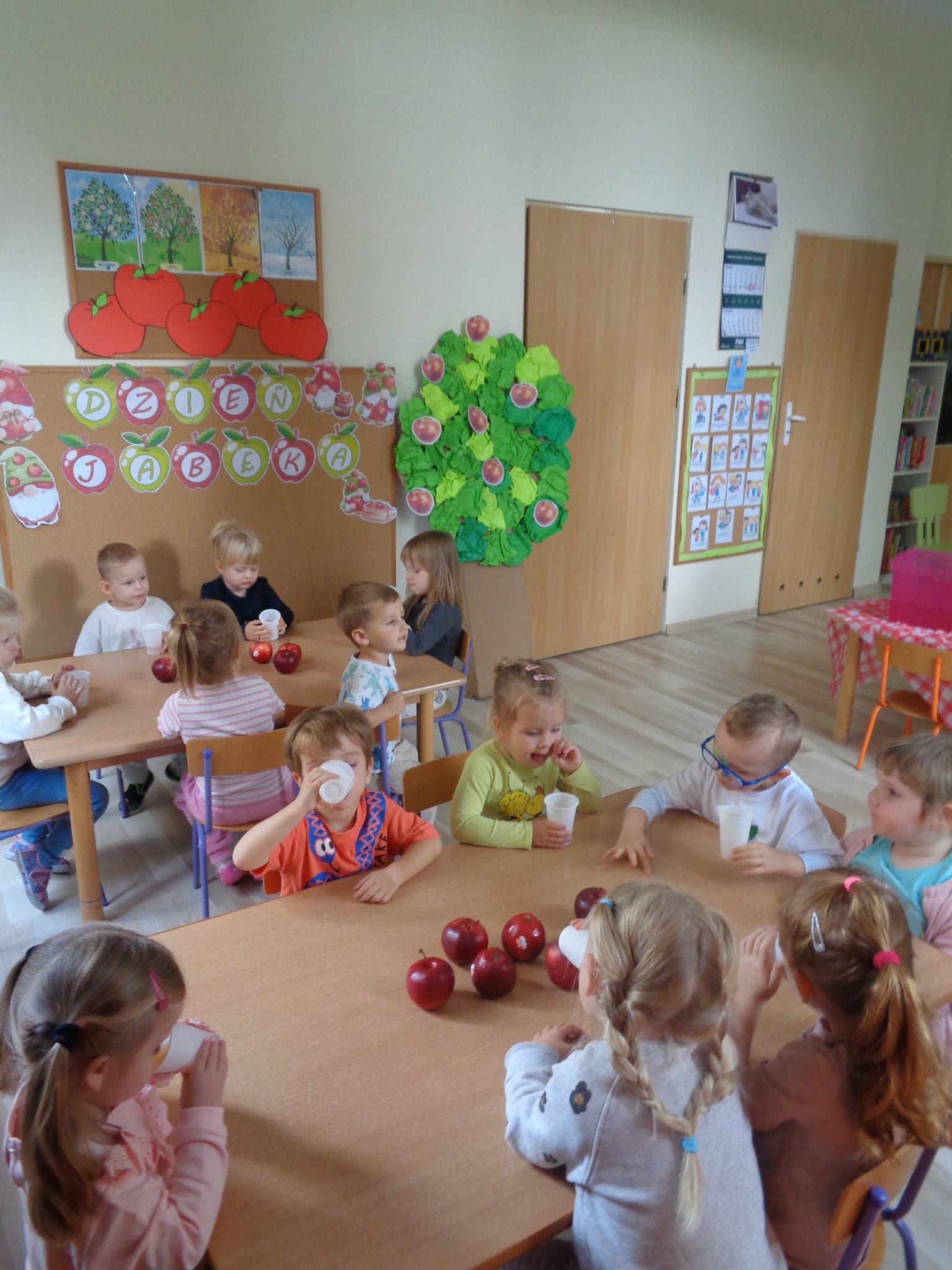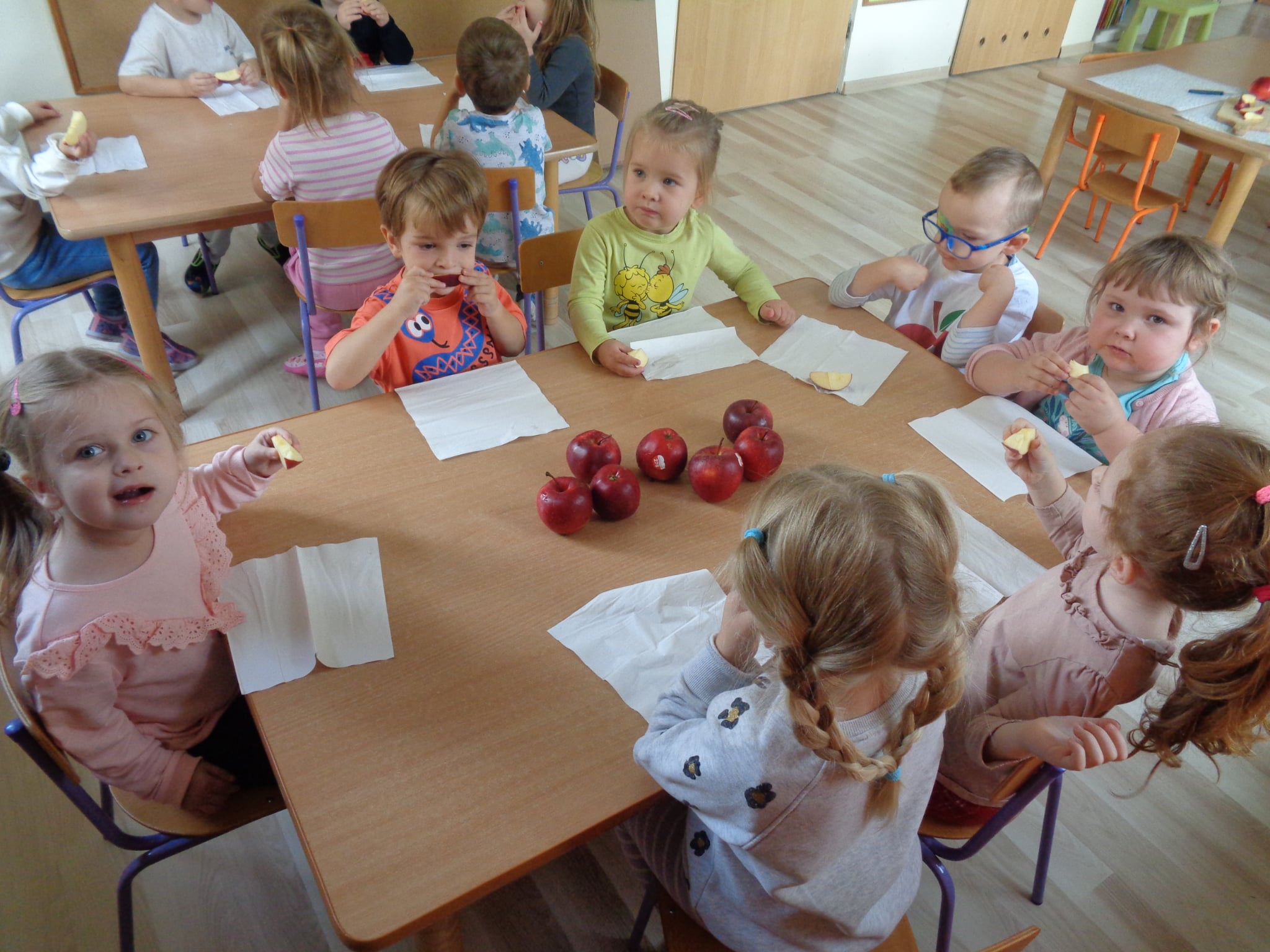 Dzień Jabłka to doskonała okazja do kształtowania postaw prozdrowotnych. Przedszkolaki podczas kreatywnych zabaw tematycznych ćwiczyły swoją koncentrację oraz motorykę małą. Wspaniały nastrój towarzyszył dzieciom podczas degustacji jabłek i soku jabłkowego, a zadanie, by własnoręcznie wykonać ,,Jabłkowego Jeża" bardzo spodobało się chłopcom i dziewczynkom.