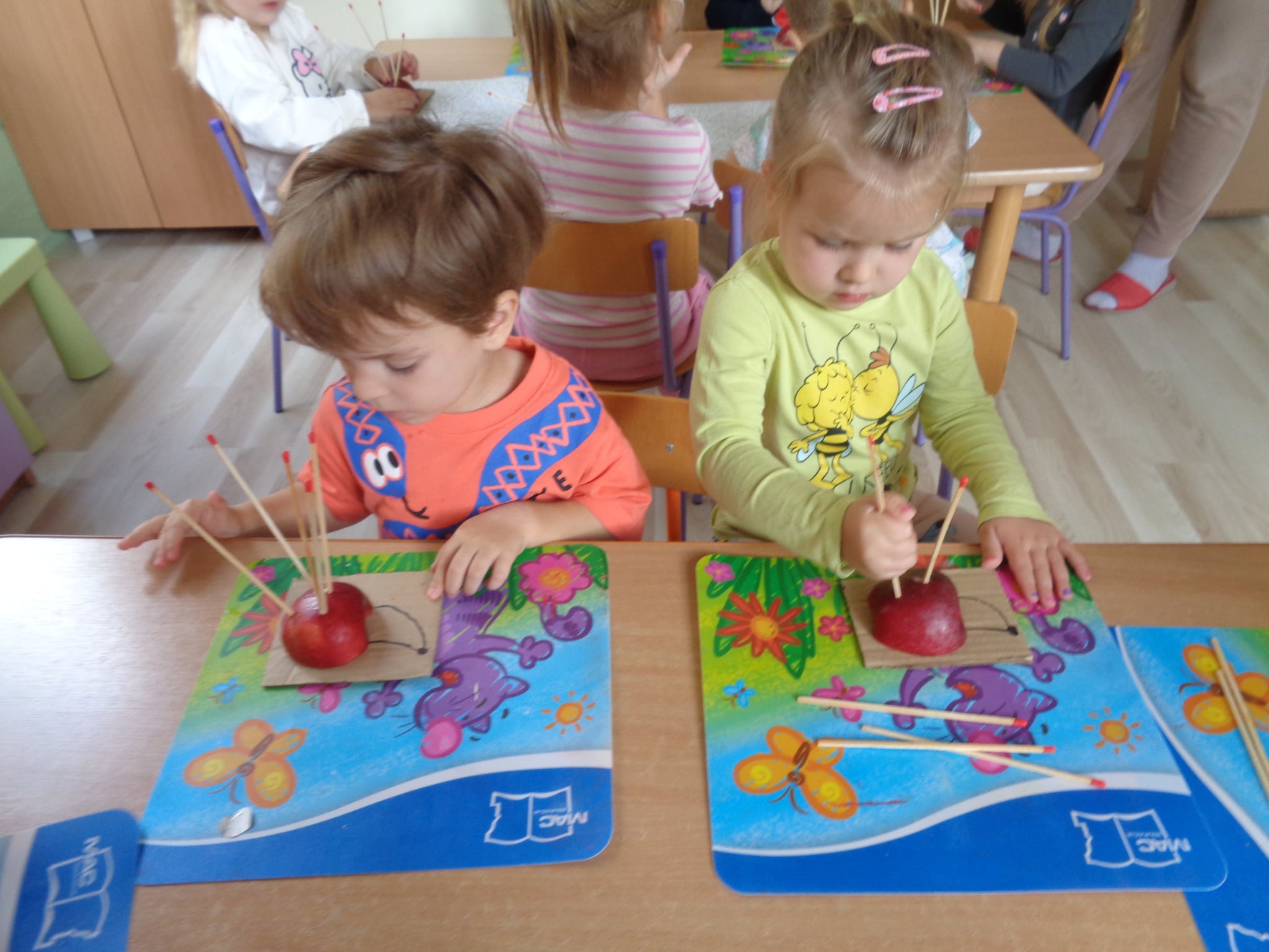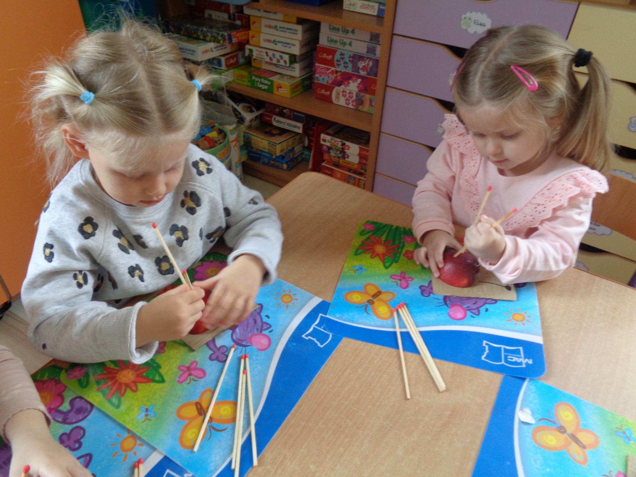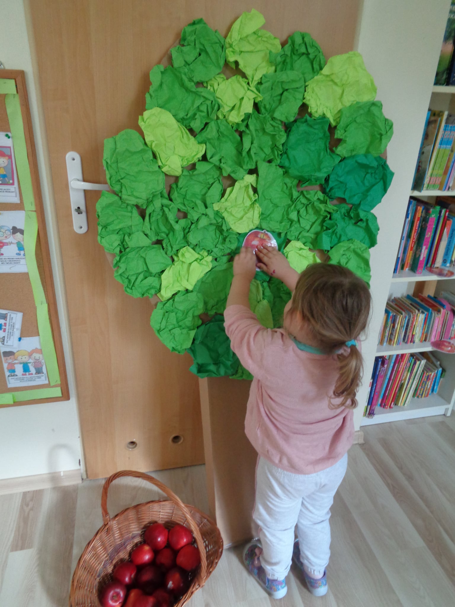 Dzień Jabłka to doskonała okazja do kształtowania postaw prozdrowotnych. Przedszkolaki podczas kreatywnych zabaw tematycznych ćwiczyły swoją koncentrację oraz motorykę małą. Wspaniały nastrój towarzyszył dzieciom podczas degustacji jabłek i soku jabłkowego, a zadanie, by własnoręcznie wykonać ,,Jabłkowego Jeża" bardzo spodobało się chłopcom i dziewczynkom.