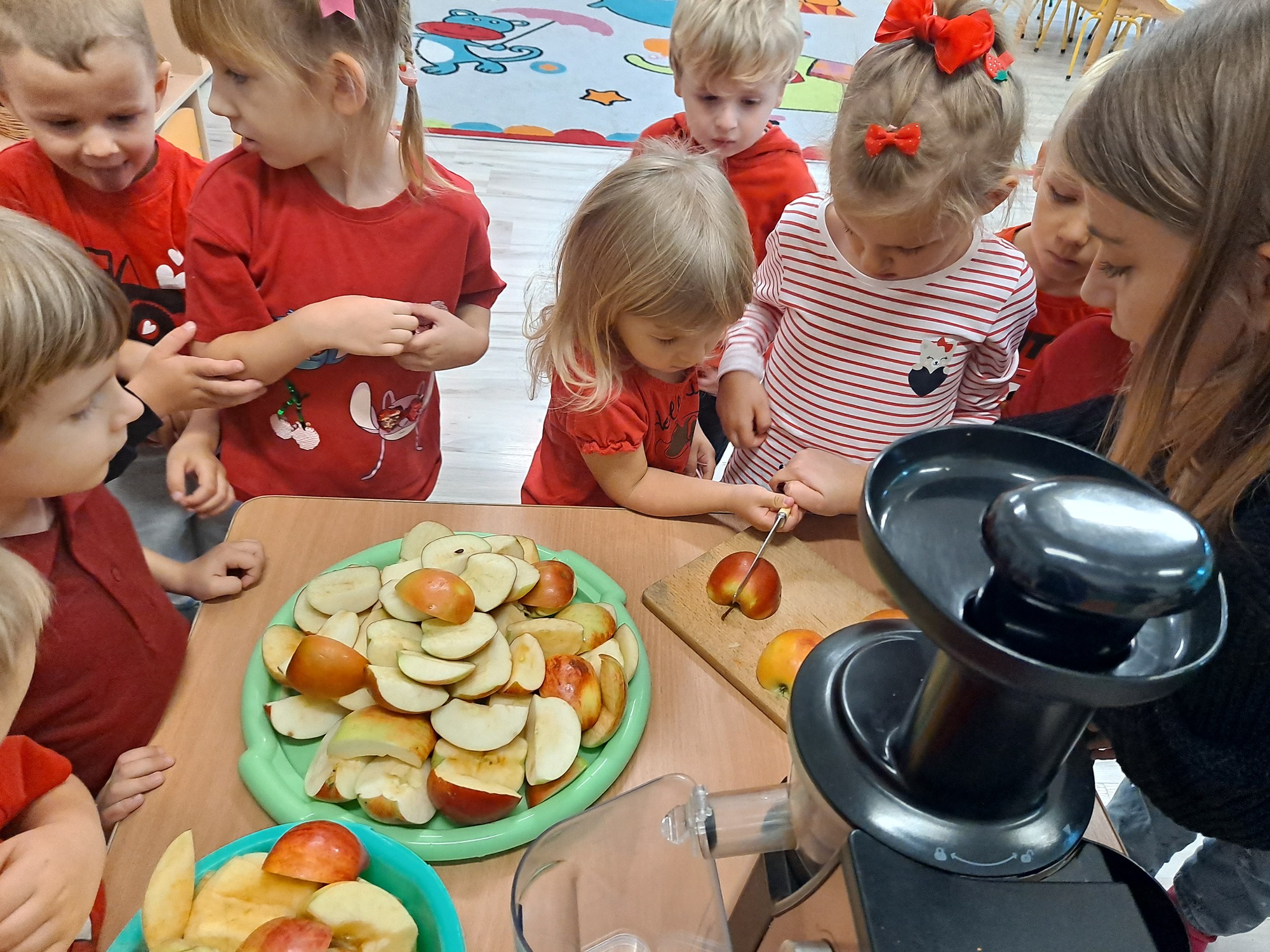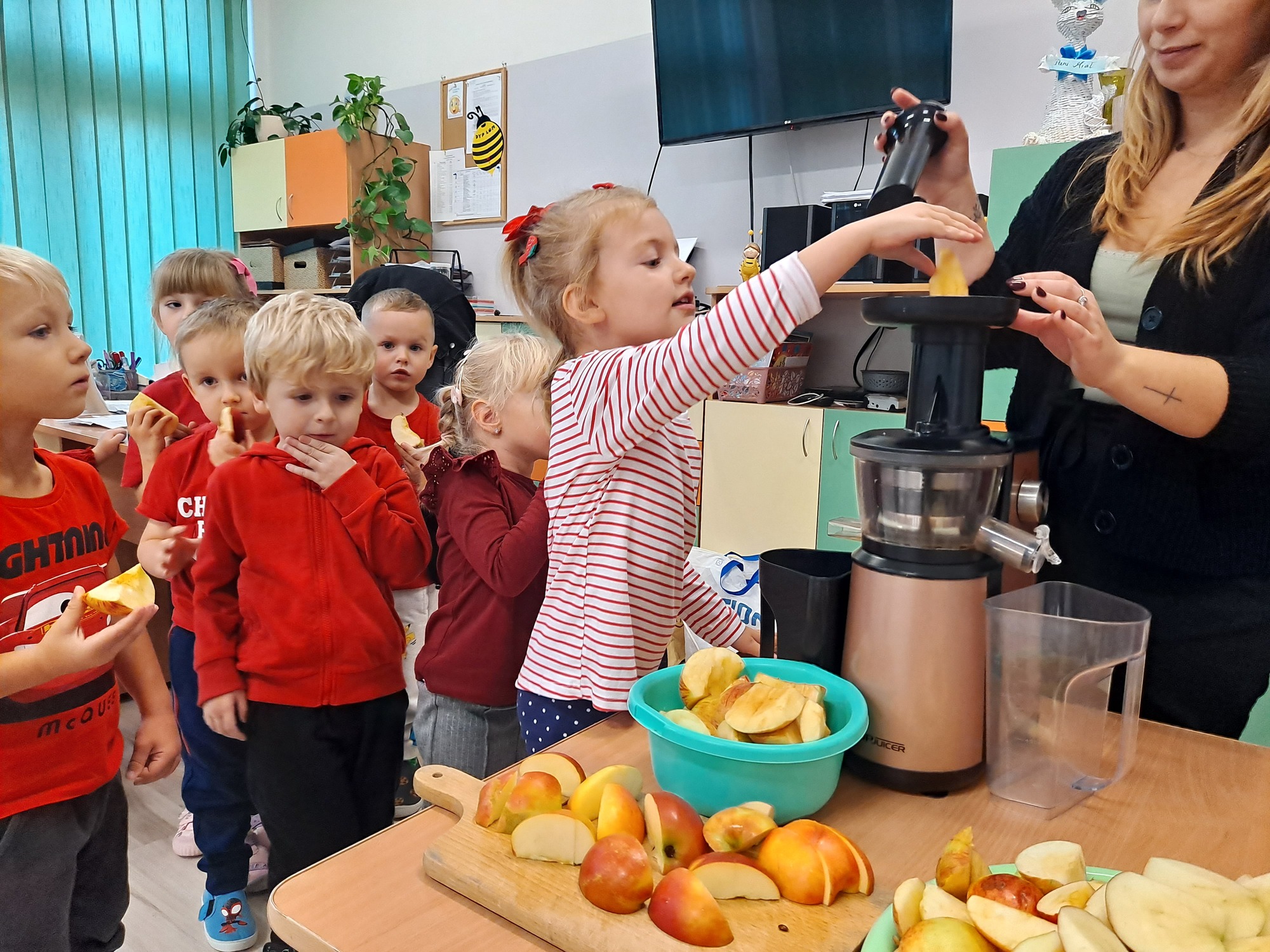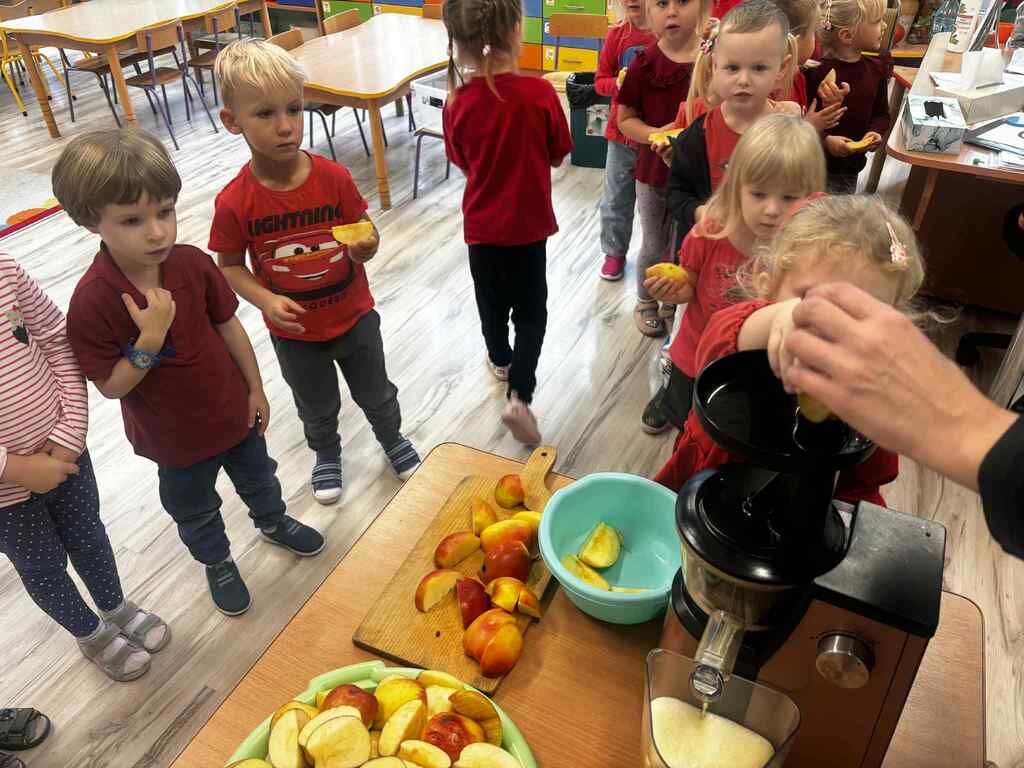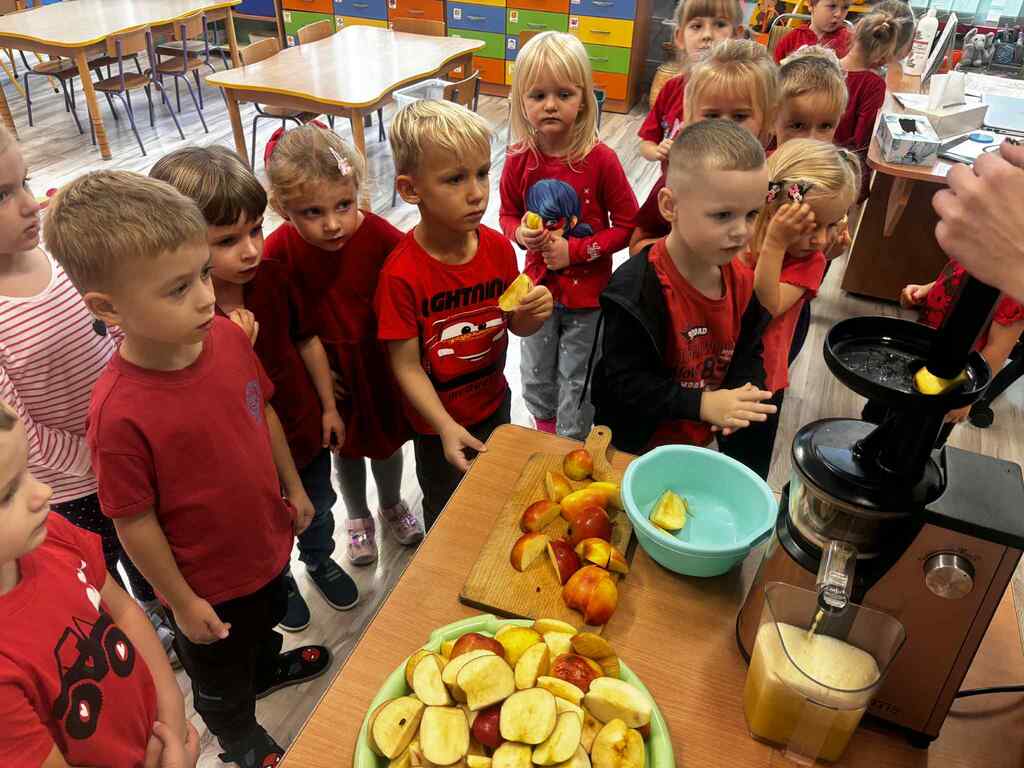 Najwięcej radości sprawiło nam przygotowanie świeżego soku z jabłek – dzieci mogły zobaczyć, jak powstaje zdrowy napój, a potem z apetytem go spróbować.