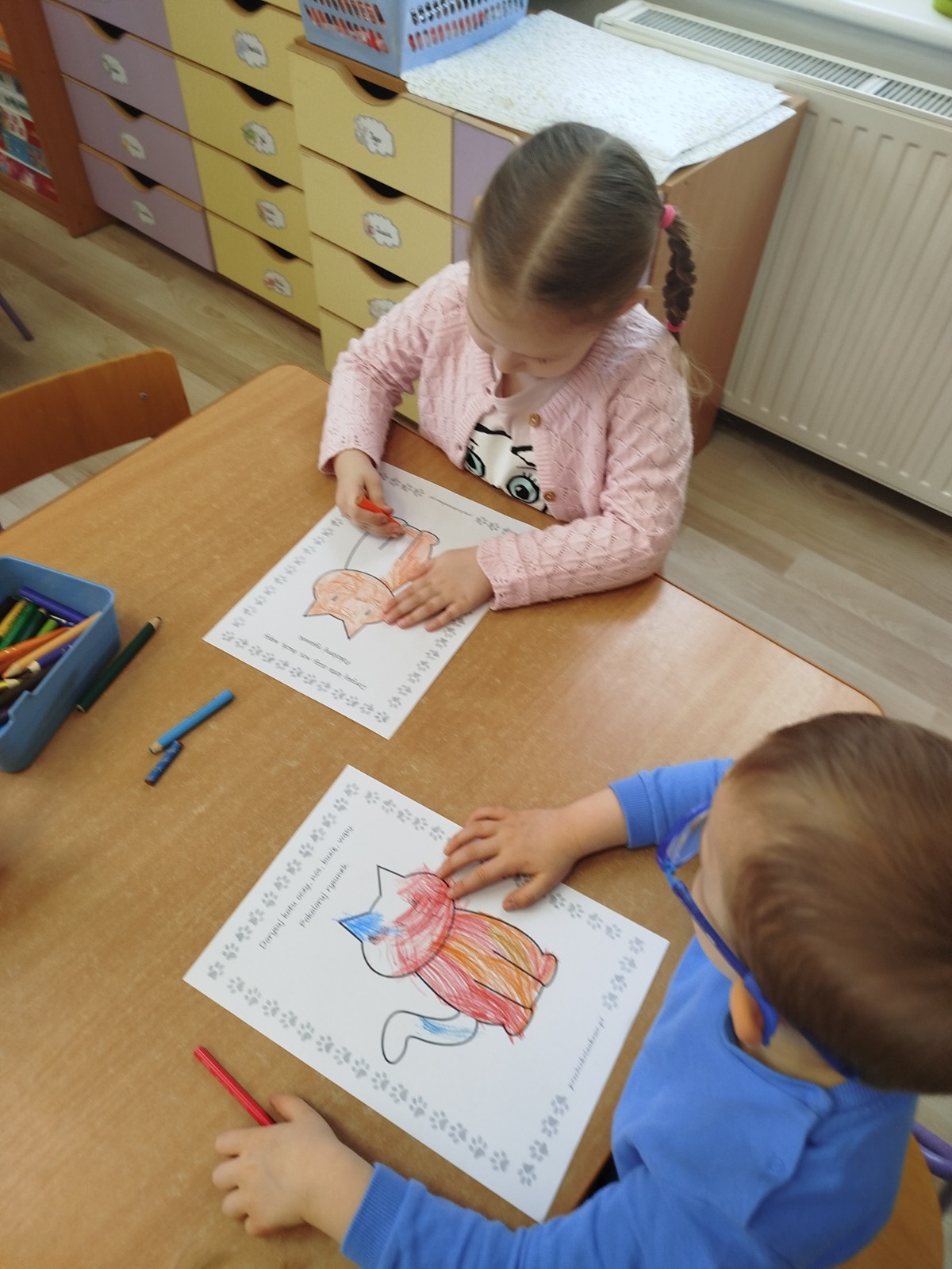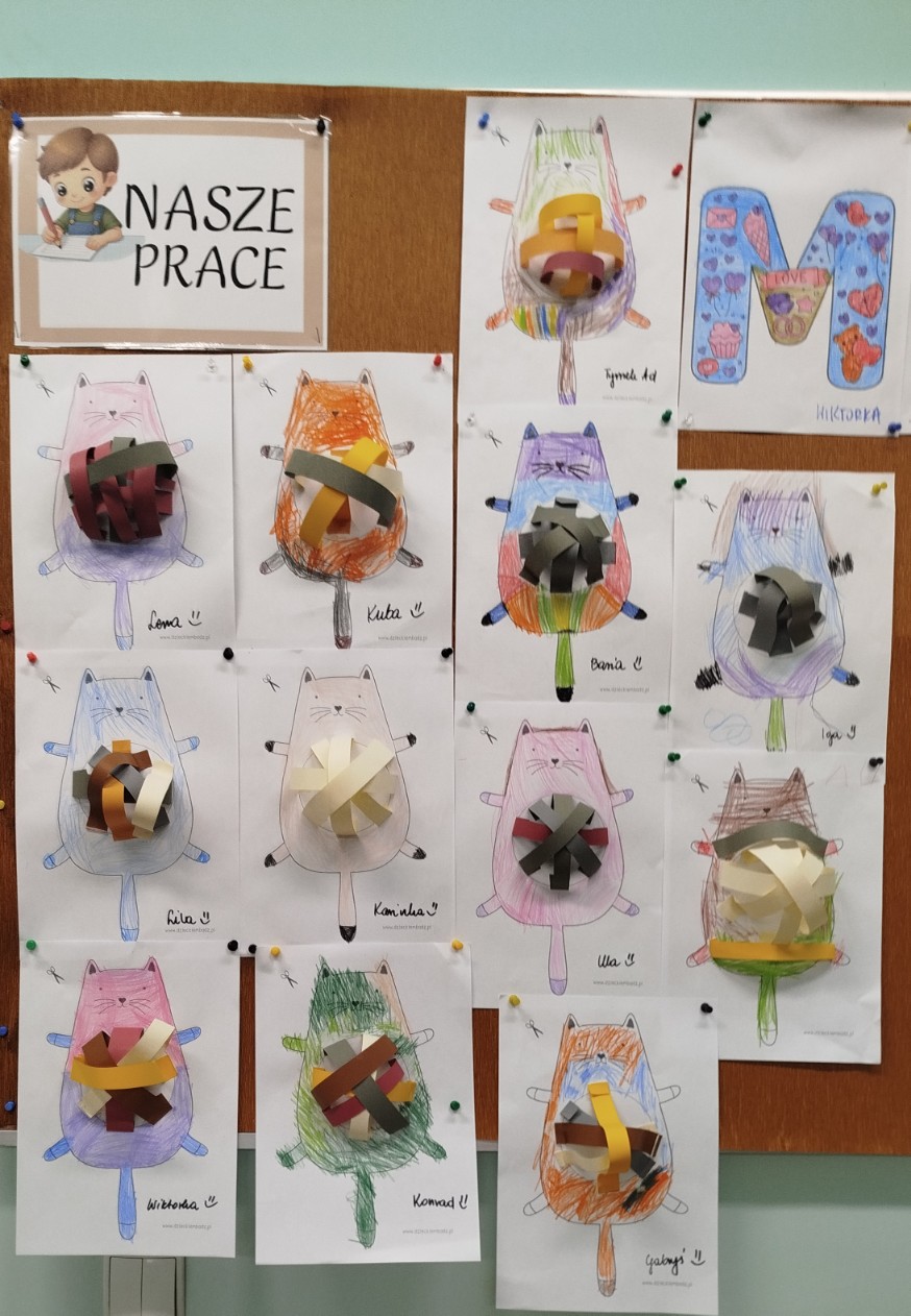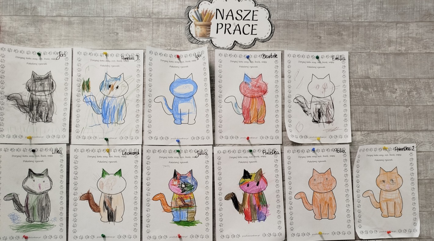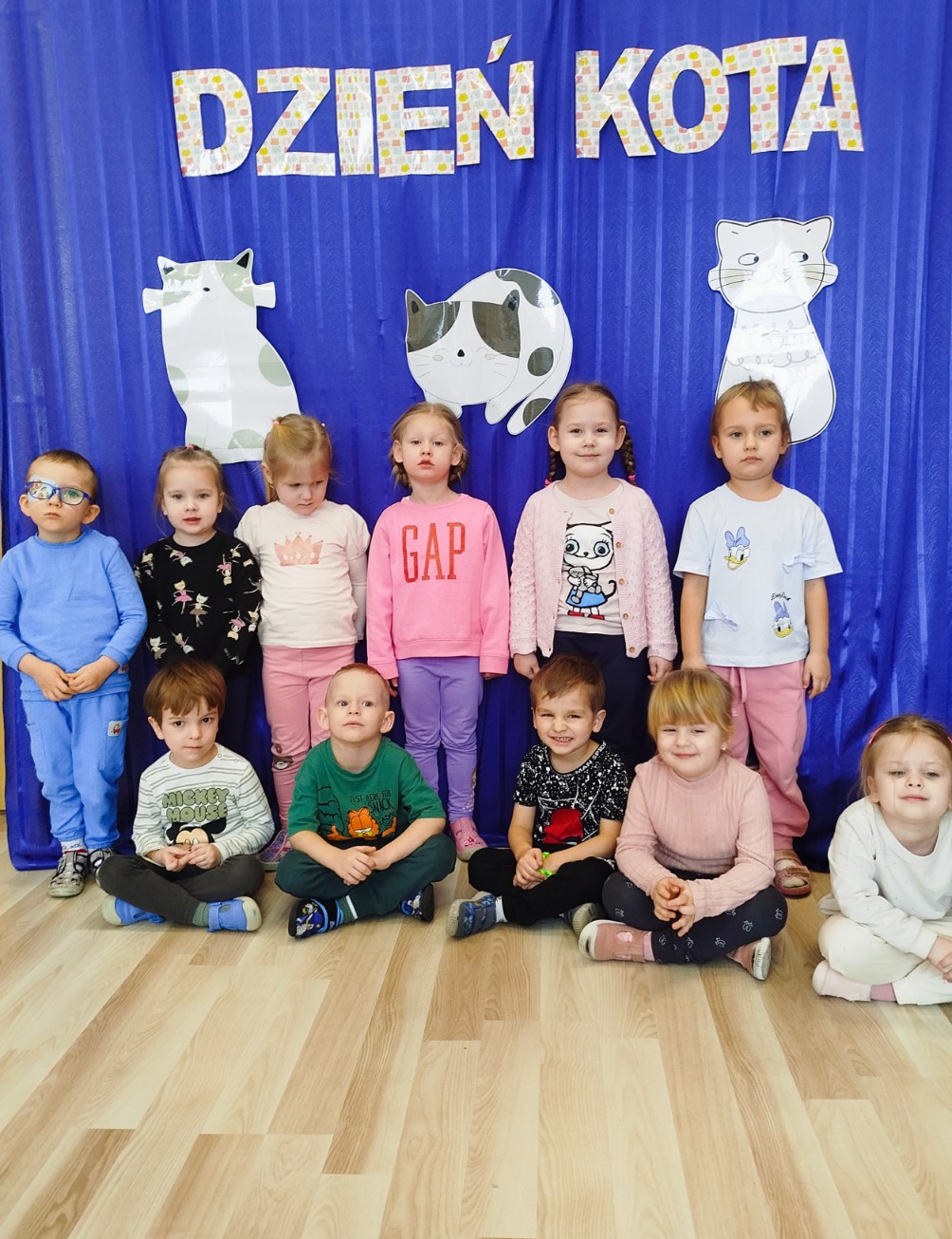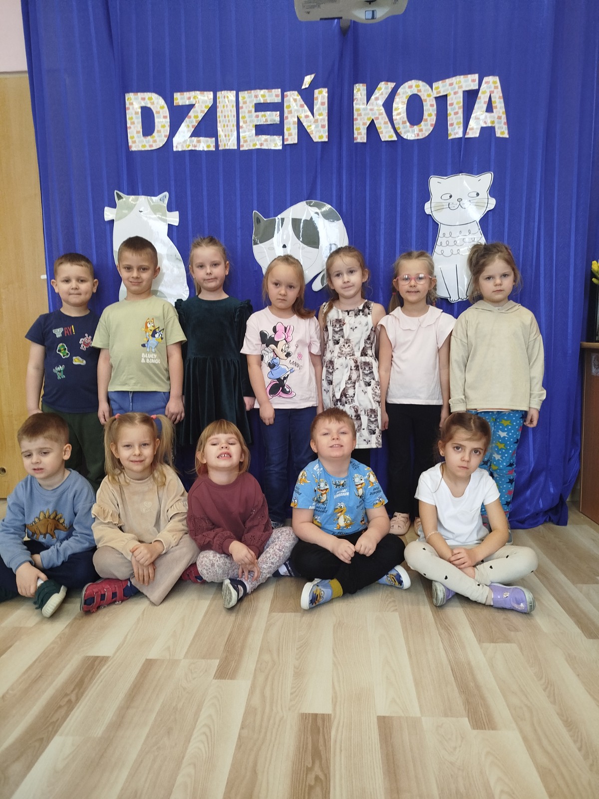 Dziś w naszym przedszkolu obchodziliśmy Dzień Kota. Spotkanie rozpoczęło się wspólną zabawą przy znanej piosence "Kotki małe dwa". Dzieci z zainteresowaniem oglądały ilustracje przedstawiające koty domowe oraz dzikie. Dowiedziały się jak należy dbać o naszych domowych pupili oraz słuchały ciekawostek na ich temat. Rozpoznawały koty występujące w bajkach, aktywnie uczestniczyły w zabawie formie opowieści ruchowej miaucząc, robiąc koci grzbiet, miaucząc. Na zakończenie wykonały pracę plastyczną nt. "Mój kotek".