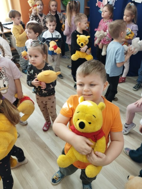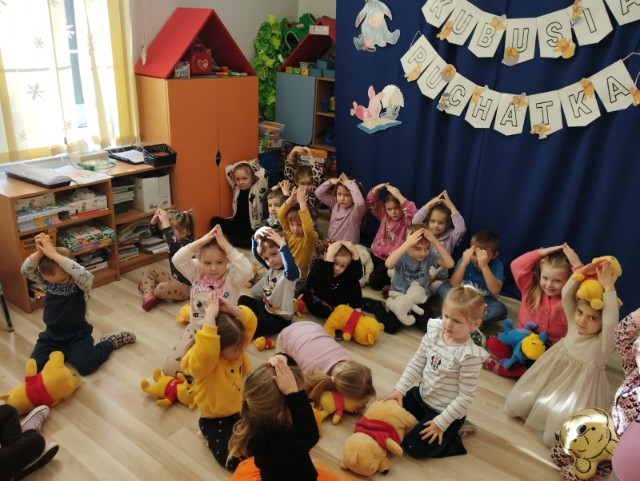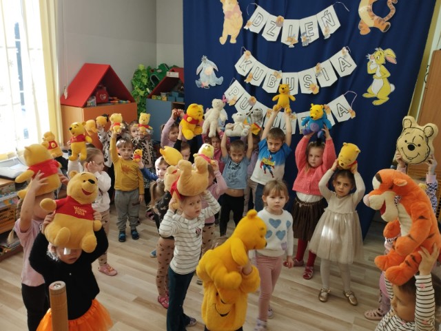 Niezabudki i Stokrotki obchodziły dziś Dzień Kubusia Puchatka. By uczcić ten dzień dzieci przyniosły maskotki bohaterów z bajki o Kubusiu Puchatku. Przedszkolaki miały okazję dowiedzieć się jaka była historia powstania książki o przygodach Puchatka, rozwiązywały zagadki dotyczące bajki, brały udział w zabawach muzyczno-ruchowych oraz sprawnościowych. Były rożne zabawy, degustacja miodu, fotobudka. To był prawdziwie Kubusiowy dzień. Uśmiech zagościł na buzi każdego dziecka, co można zauważyć na zdjęciach naszej galerii.