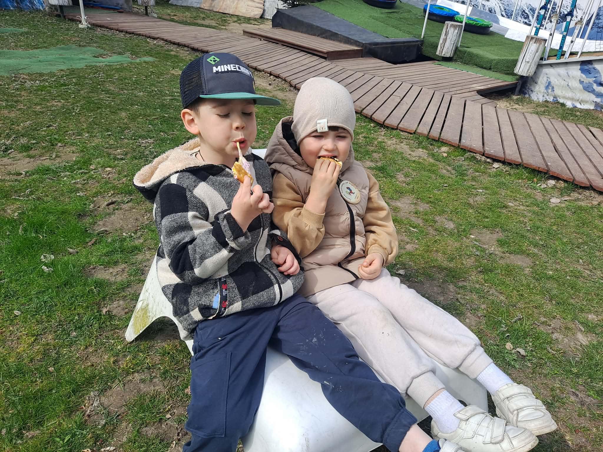 Nie zabrakło także czasu na swobodną zabawę oraz wyjątkowej atrakcji, jaką była przejażdżka kolejką po całym obiekcie. Po aktywnym czasie dzieci zjadły wspólny obiad, a na zakończenie dnia uczestniczyły w ognisku, podczas którego ze smakiem zajadały pianki z krakersami.