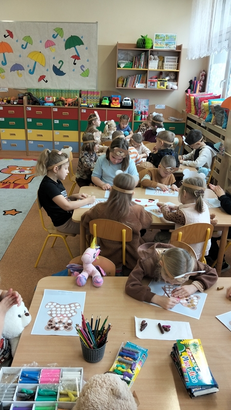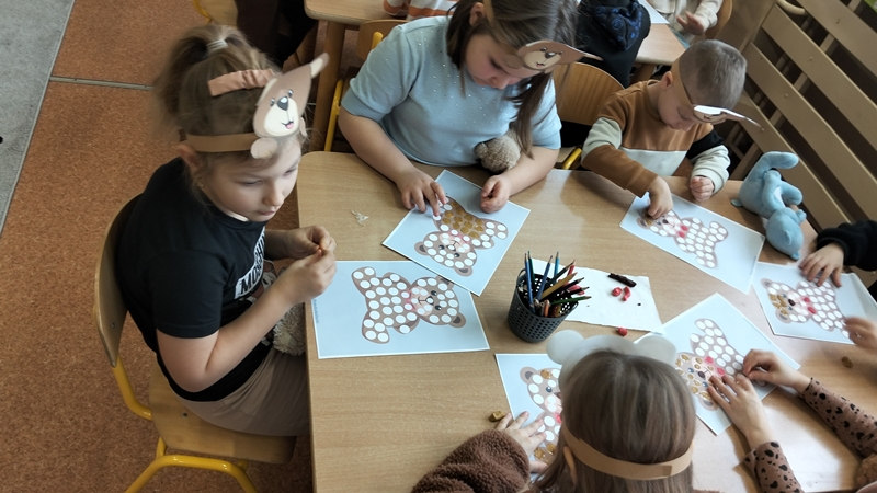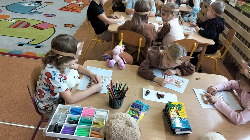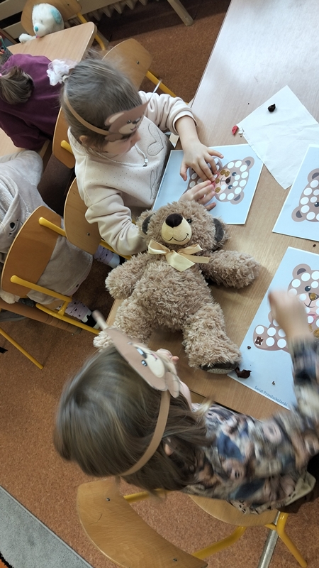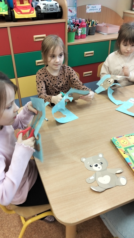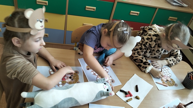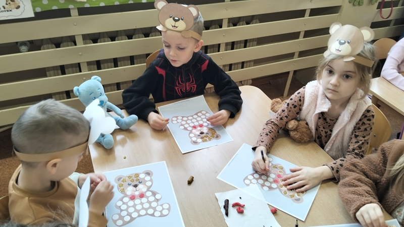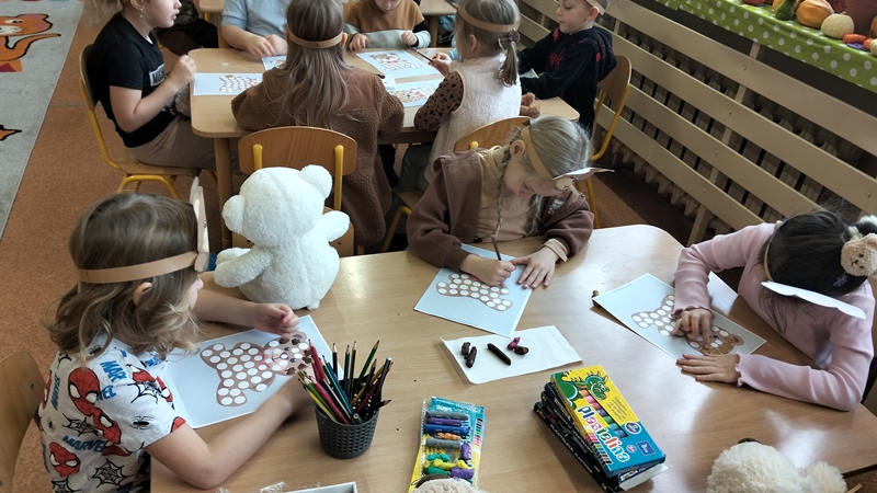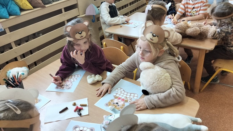 25 listopada obchodziliśmy Dzień Pluszowego Misia - głównym celem obchodów Dnia Pluszowego Misia jest zabawa i wspólne świętowanie, które ma na celu rozwijanie u dzieci wrażliwości, kreatywności oraz umiejętności pracy w grupie. Dzieci zapoznały się z historią powstania pluszowego misia, oraz wylepiały i wycinały sylwety misia. Dzisiejszy dzień był dla dzieci pełen przytulania ze swoim pluszakiem.