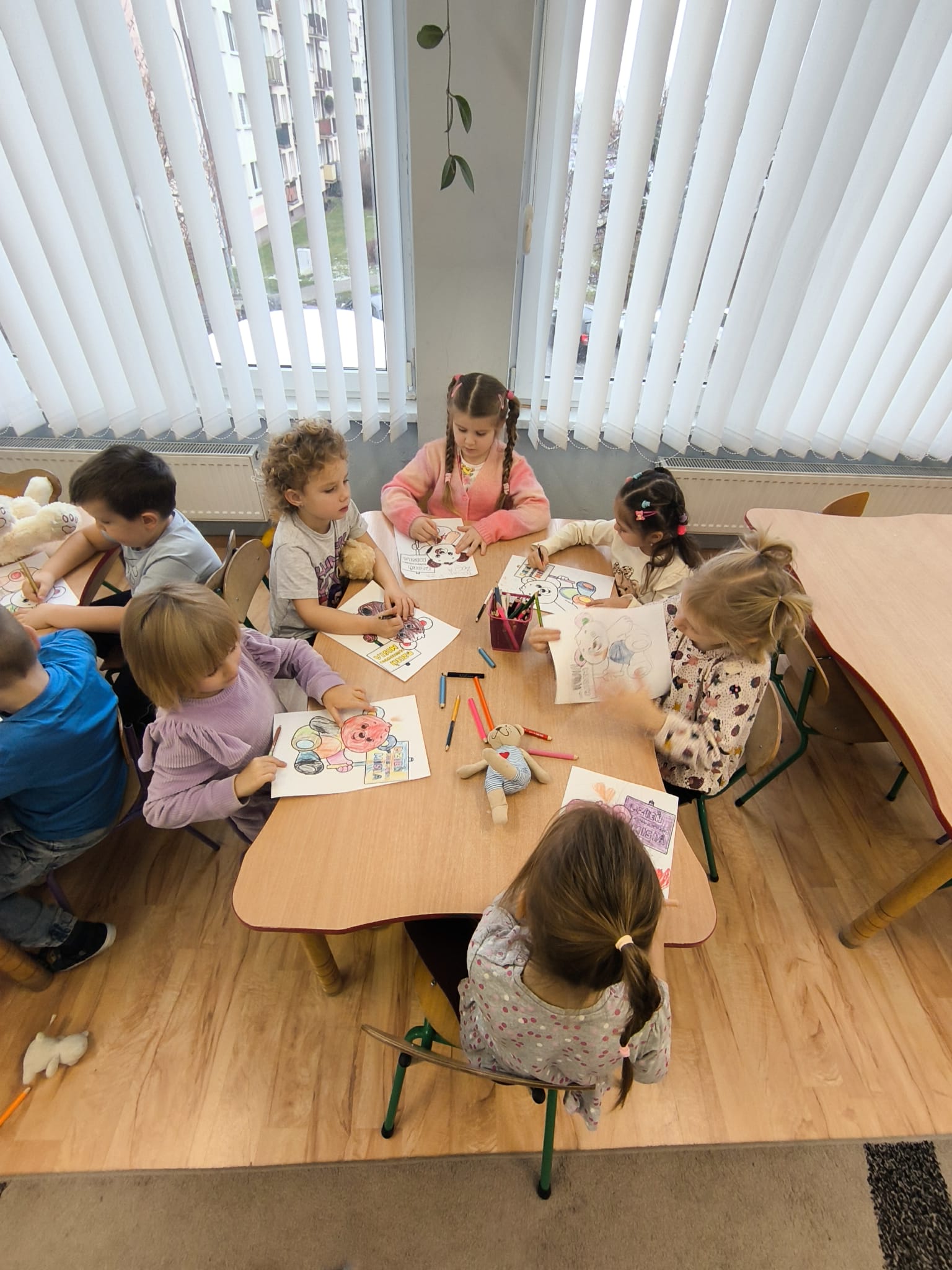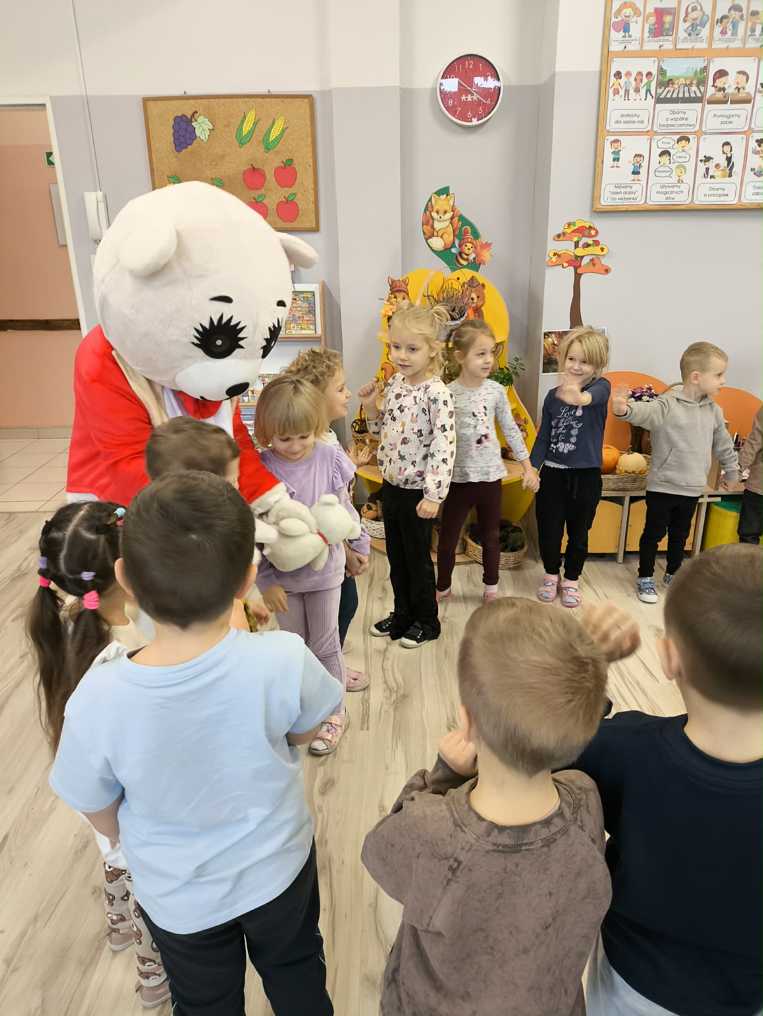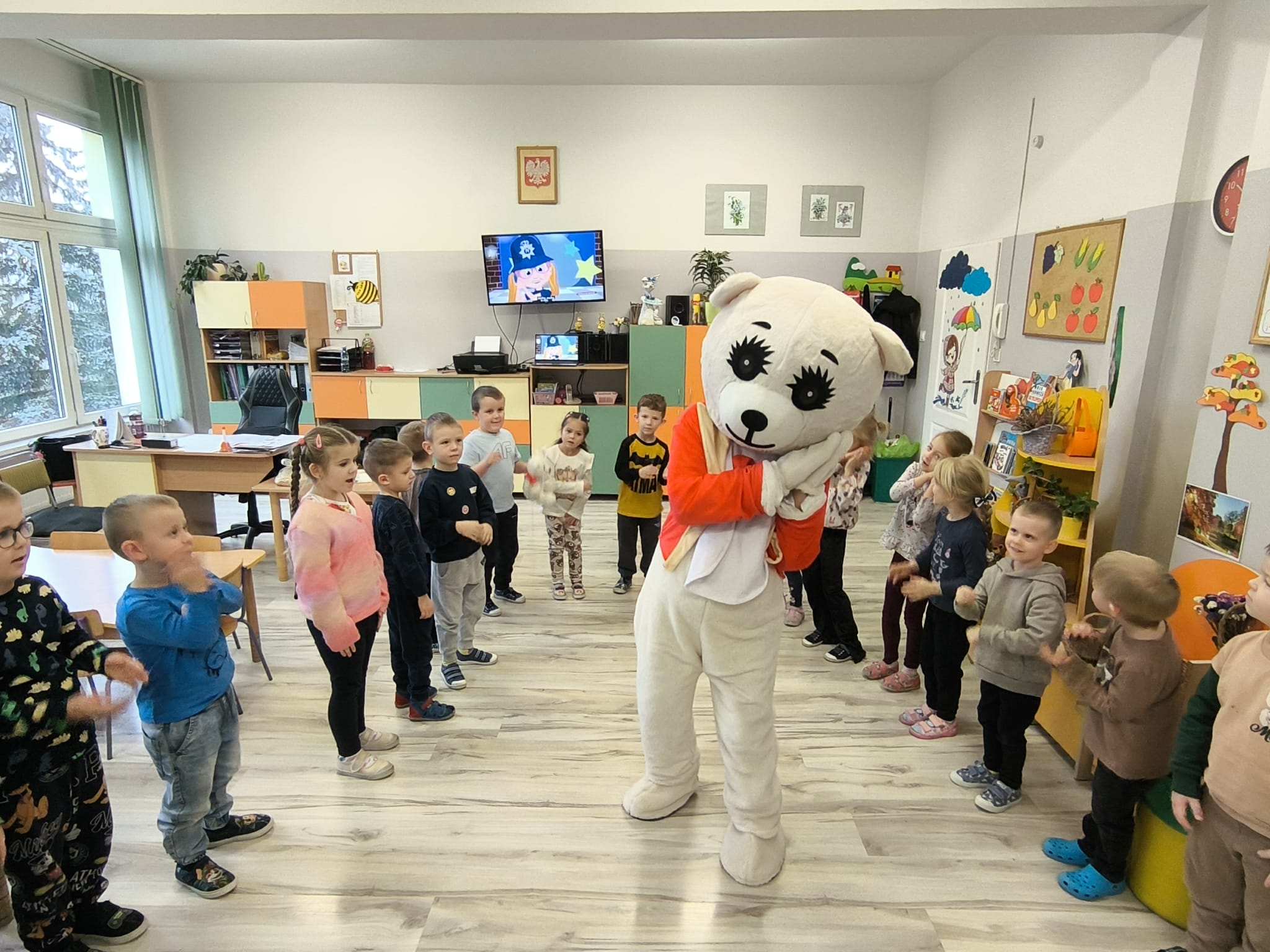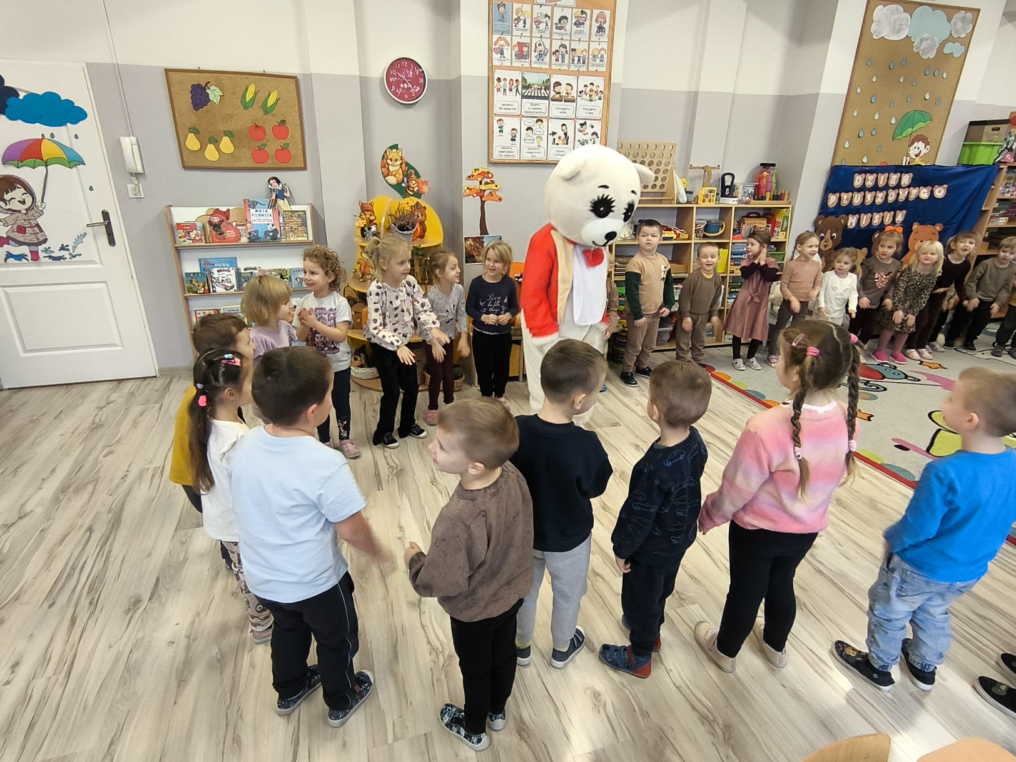 Dzień Pluszowego Misia w przedszkolu był pełen radości i zabawy. Dzieci przyniosły swoje ulubione pluszaki, tańczyły z misiami przy wesołej muzyce, brały udział w wspólnych zabawach i konkursach, a na koniec wysłuchały krótkiej opowieści o historii pluszowego misia. Atmosfera była ciepła, przytulna i pełna uśmiechów.