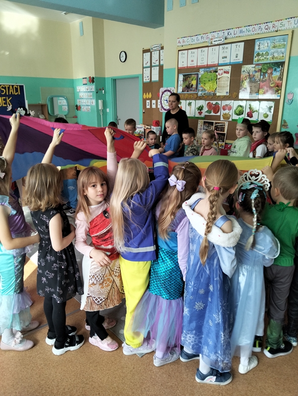 5 listopada dzieci wspólnie z kolegami z grupy I brały udział we wspólnych zabawach z okazji "Dnia Postaci z bajek". W tym dniu nie zabrakło księżniczek, wróżek i super bohaterów. Celem dzisiejszych zajęć było ukazanie wartości jakie niosą za sobą bajki i baśnie, takie jak: dobroć, uczciwość, odwaga, odpowiedzialność itp.