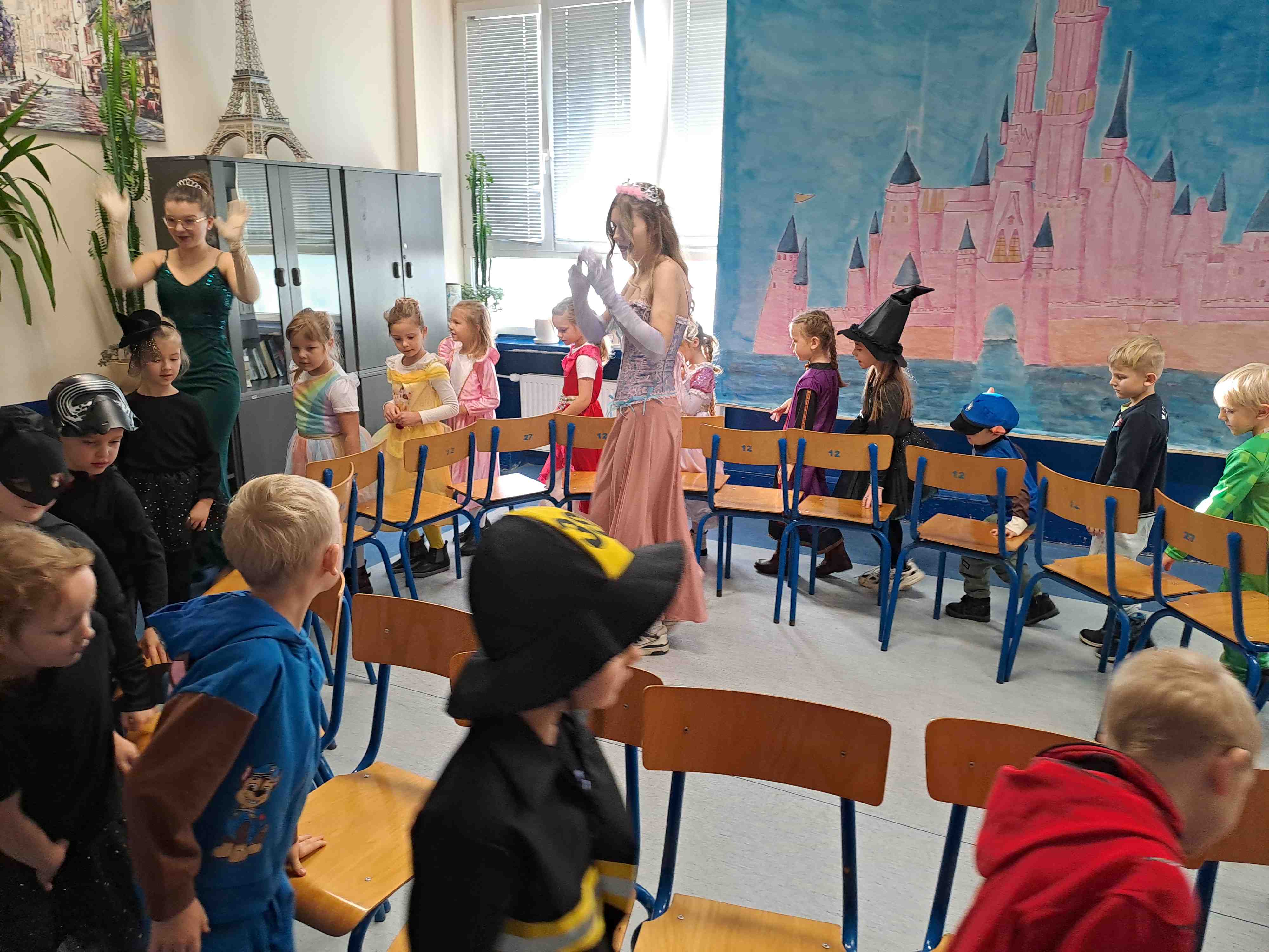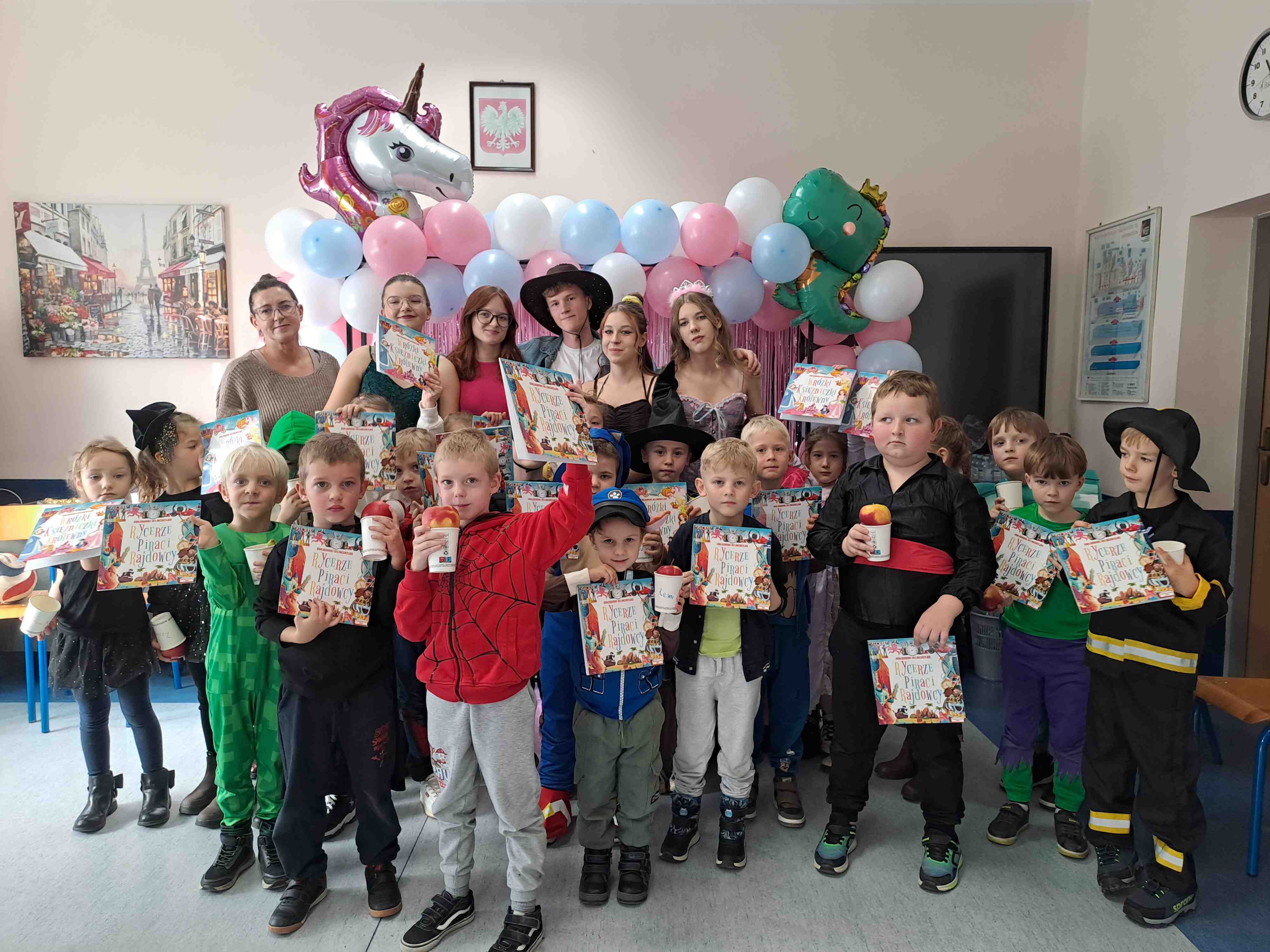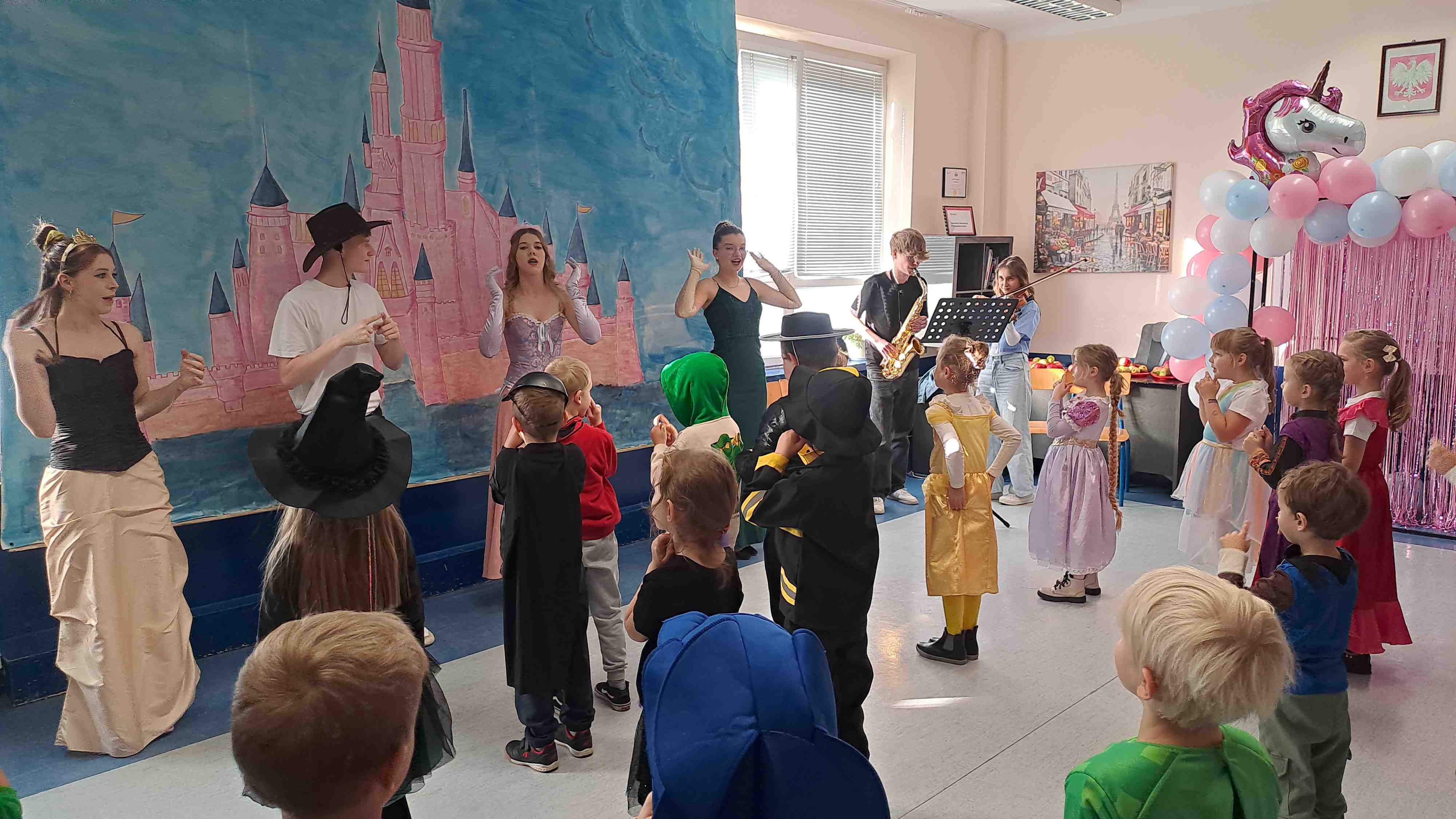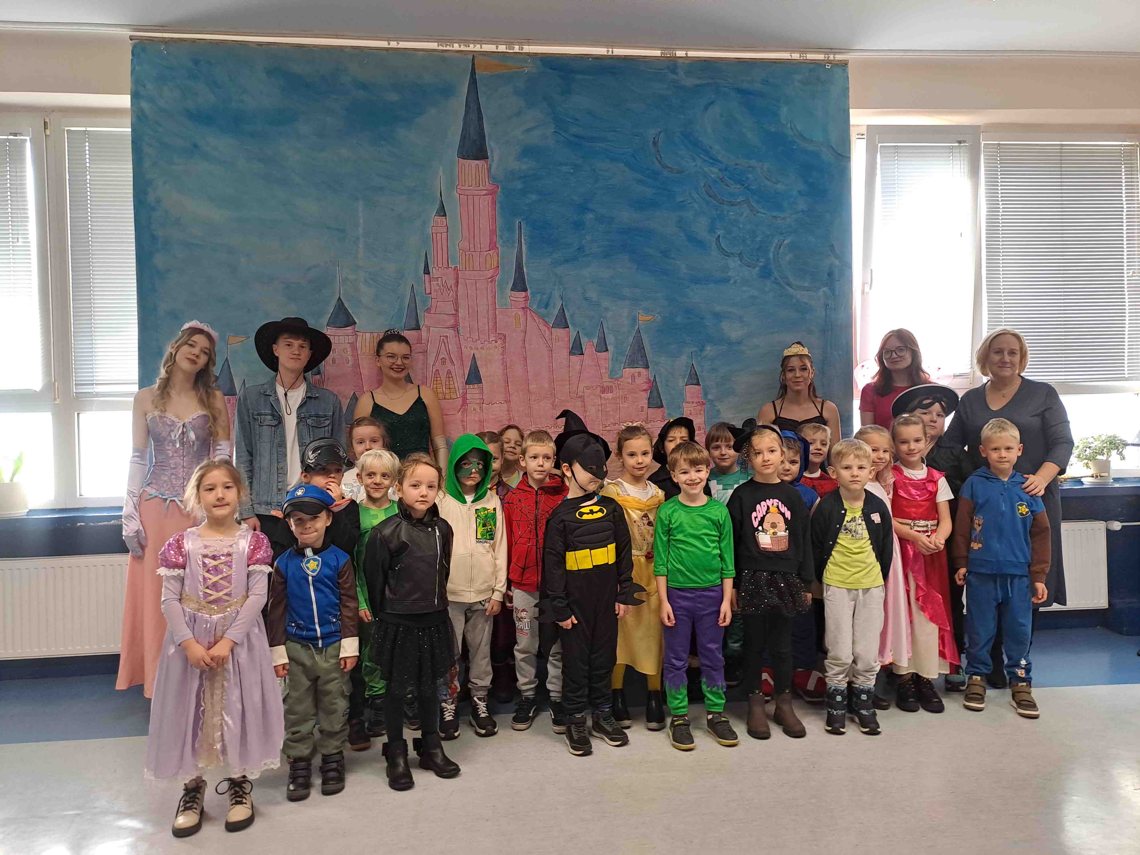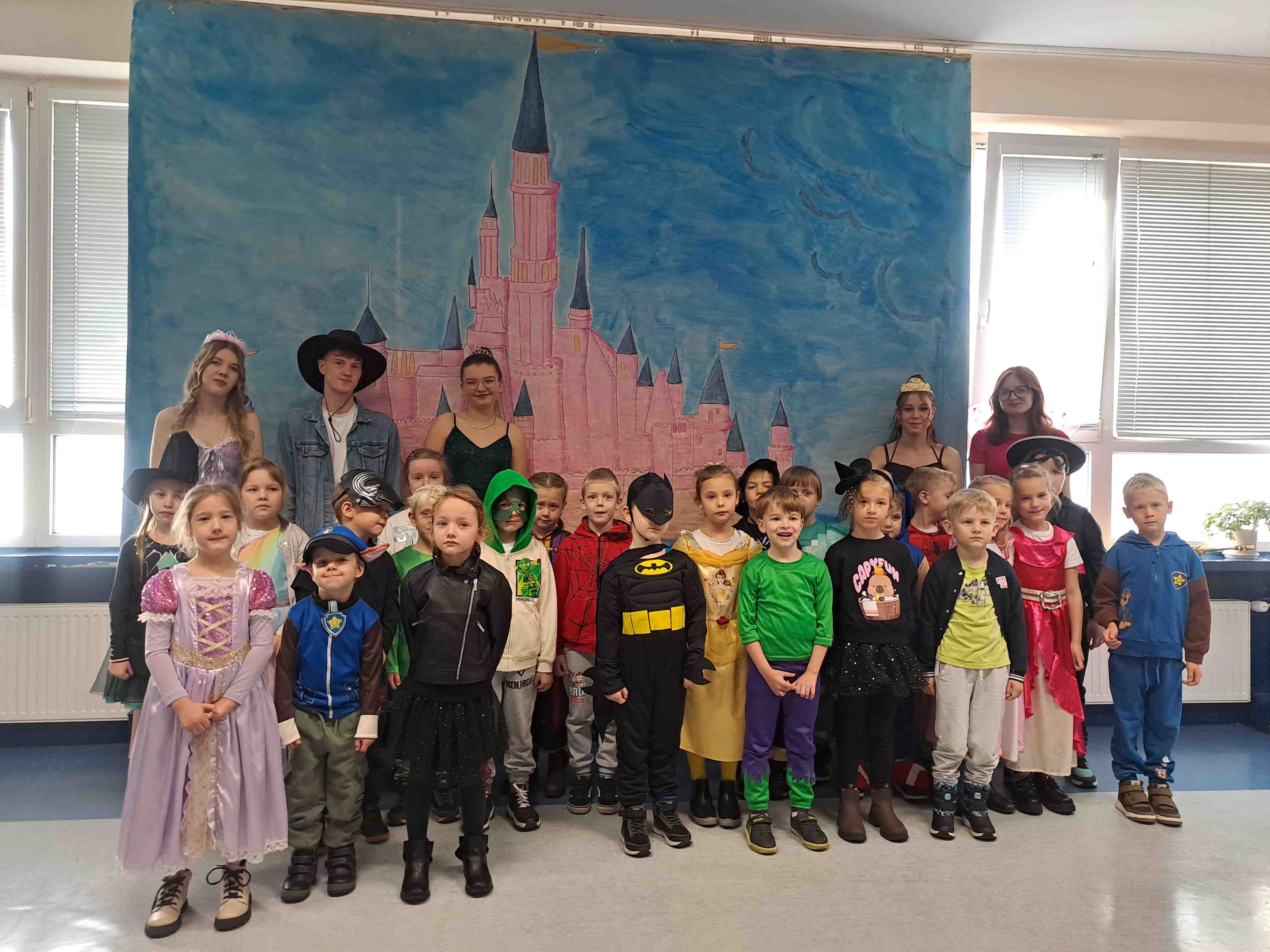 Dzień Postaci z Bajek to okazja do wesołej zabawy i przybliżenia dzieciom historii oraz bohaterów najpiękniejszych bajek i baśni. W tym roku Motylki świętowały ten dzień wraz z młodzieżą i nauczycielami I Liceum Ogólnokształcącego im. Gen. J. H. Dąbrowskiego w Kutnie, którzy zaprosili nas do wspólnej zabawy. Przedszkolaki wysłuchały bajki "Kot w butach" oraz "Jaś i Małgosia" odczytanych przez licealistów. Opowiadały o swoich strojach i postaciach, za które się przebrały. Następnie młodzież "Dąbrowszczaka" porwała dzieci w wir tańca, zabaw ruchowych, konkursów i zagadek. Dzieci bawiły się wyśmienicie, a towarzystwo starszych kolegów sprawiło, że przedszkolaki z ogromną chęcią przystępowały do wszystkich zadań. Składamy serdeczne podziękowanie Dyrekcji I LO - pani Edycie Gustowskiej, pani Monice Szymaniak i wszystkim licealistom tak wspaniale zaangażowanym w organizację tej uroczystości dla naszej grupy, a także za upominki i zdrowe przekąski. Dziękujemy!