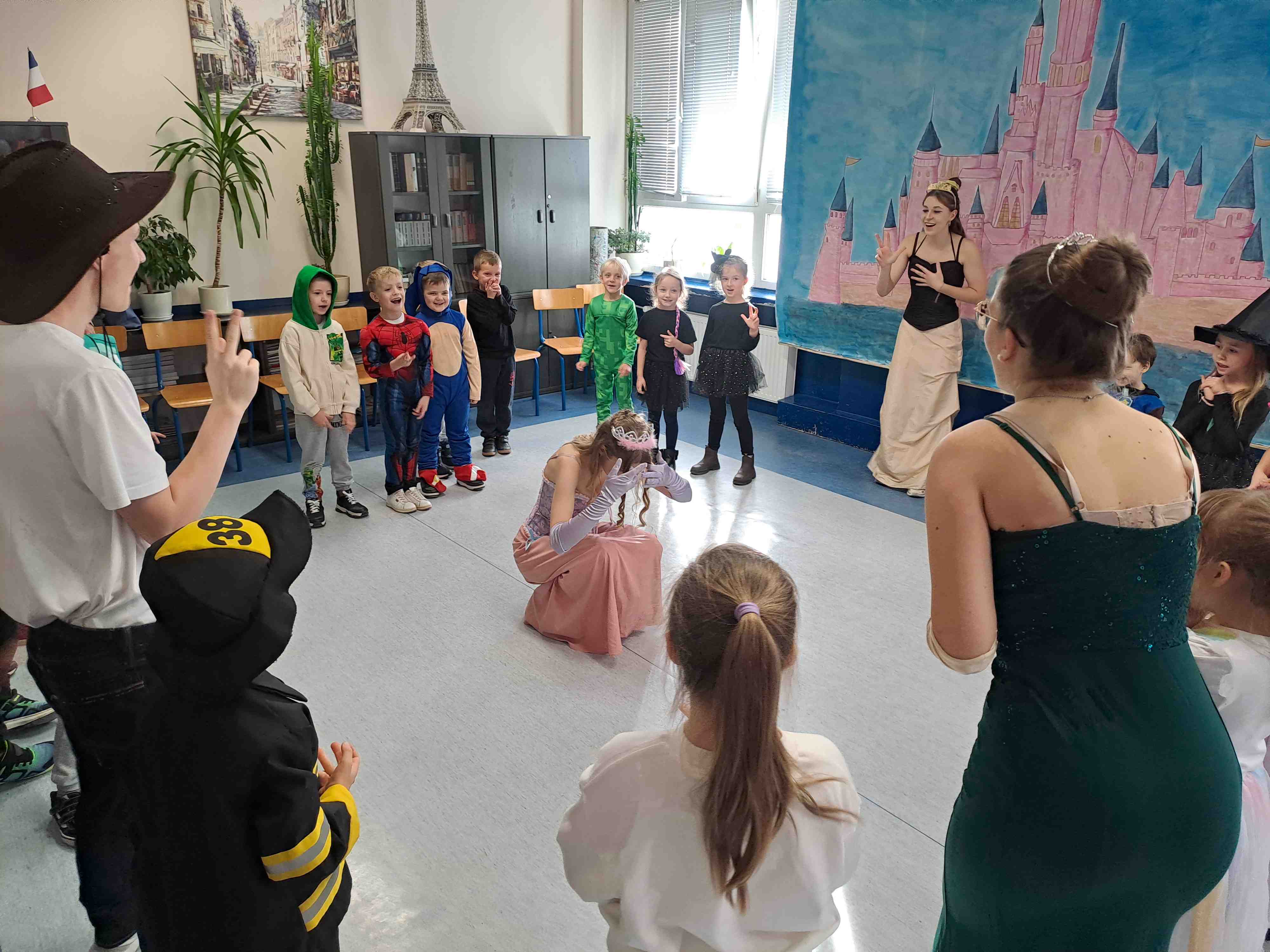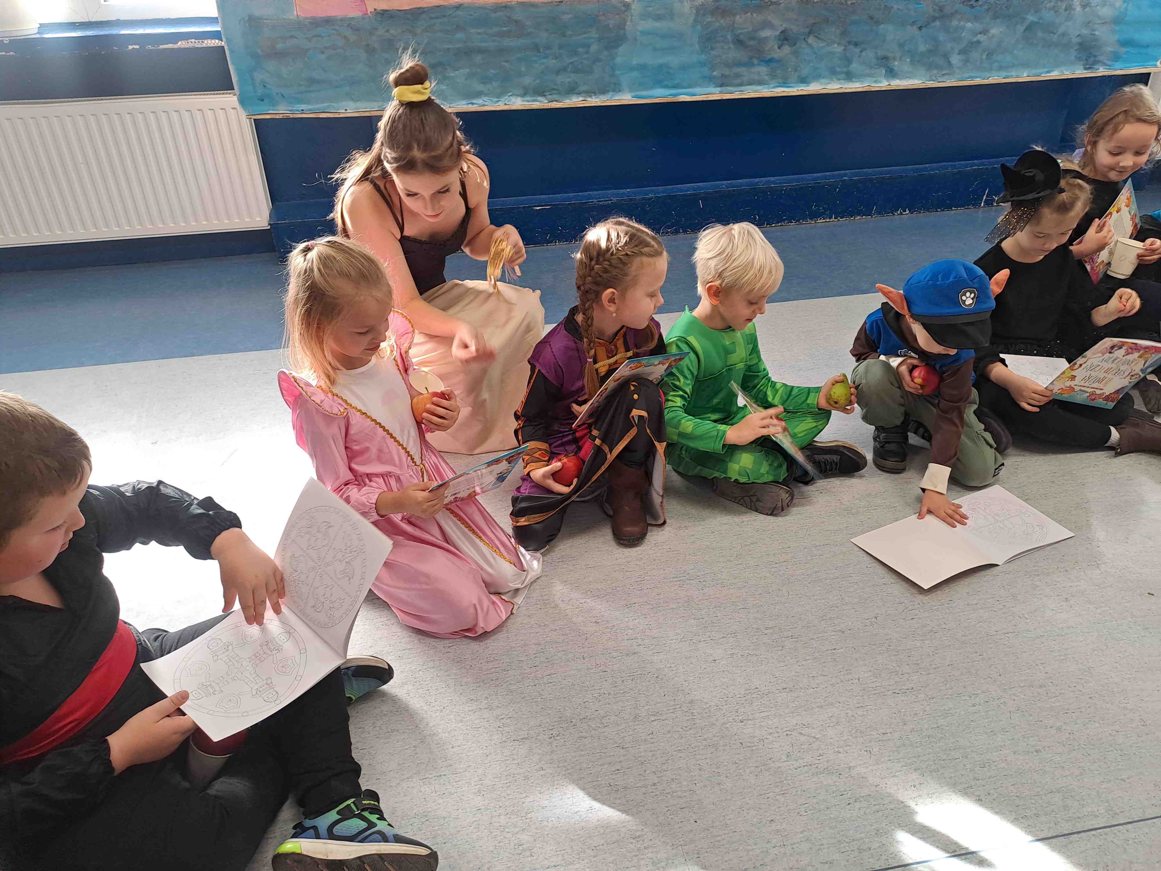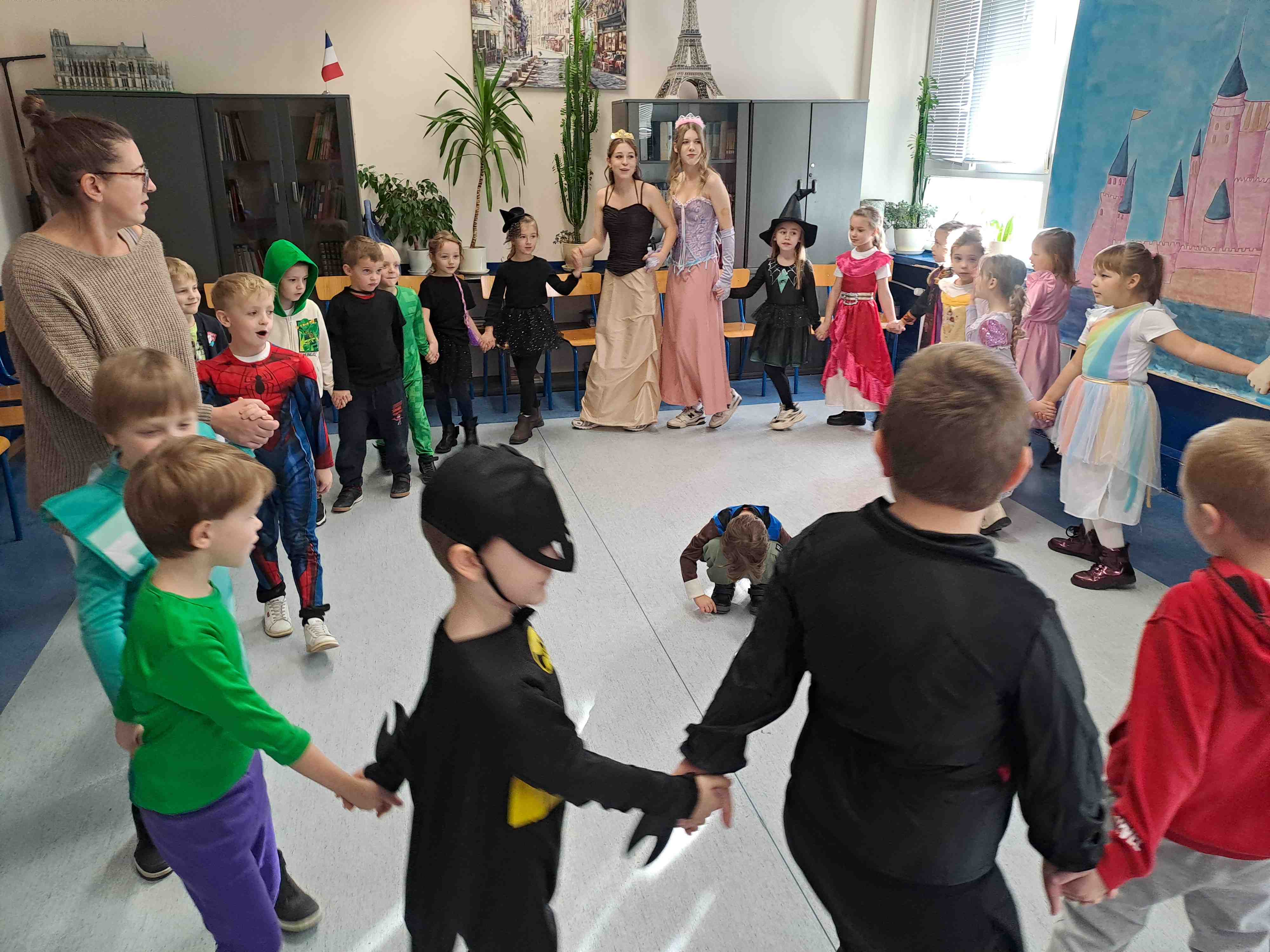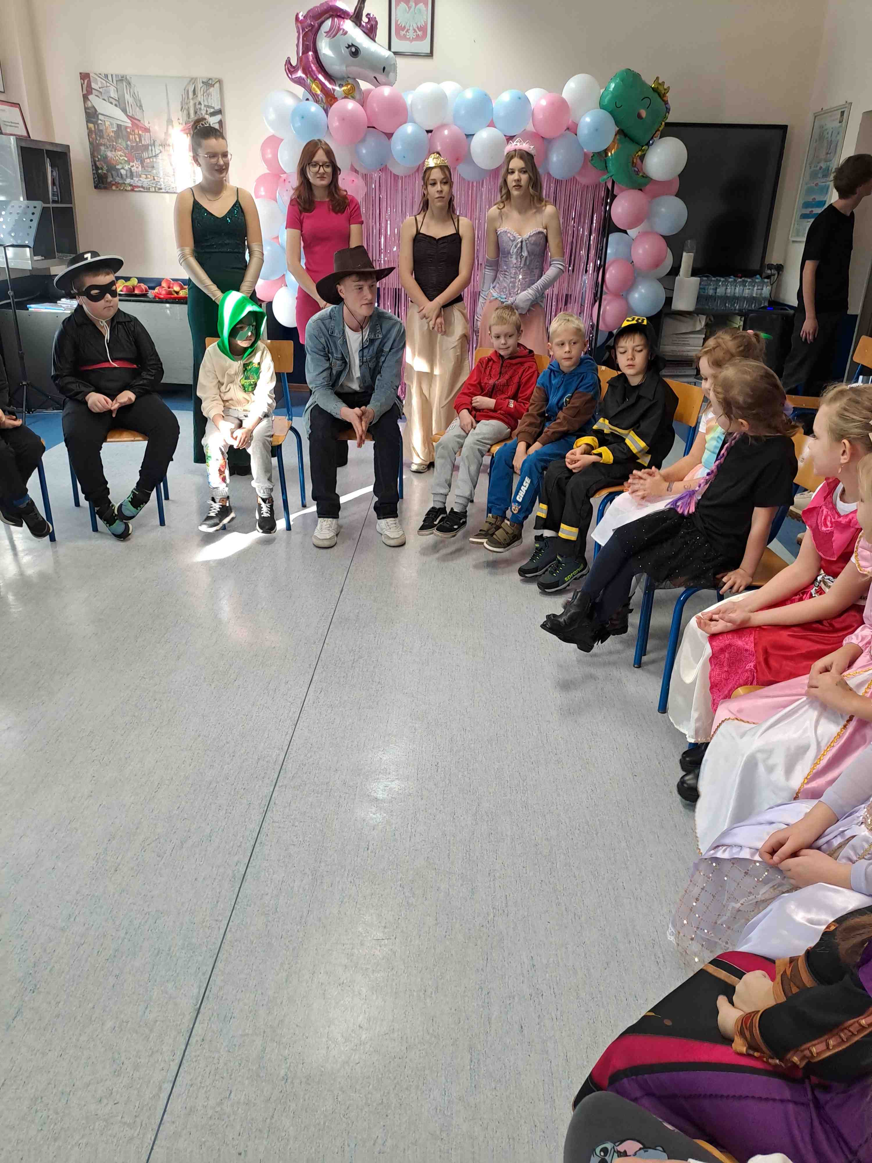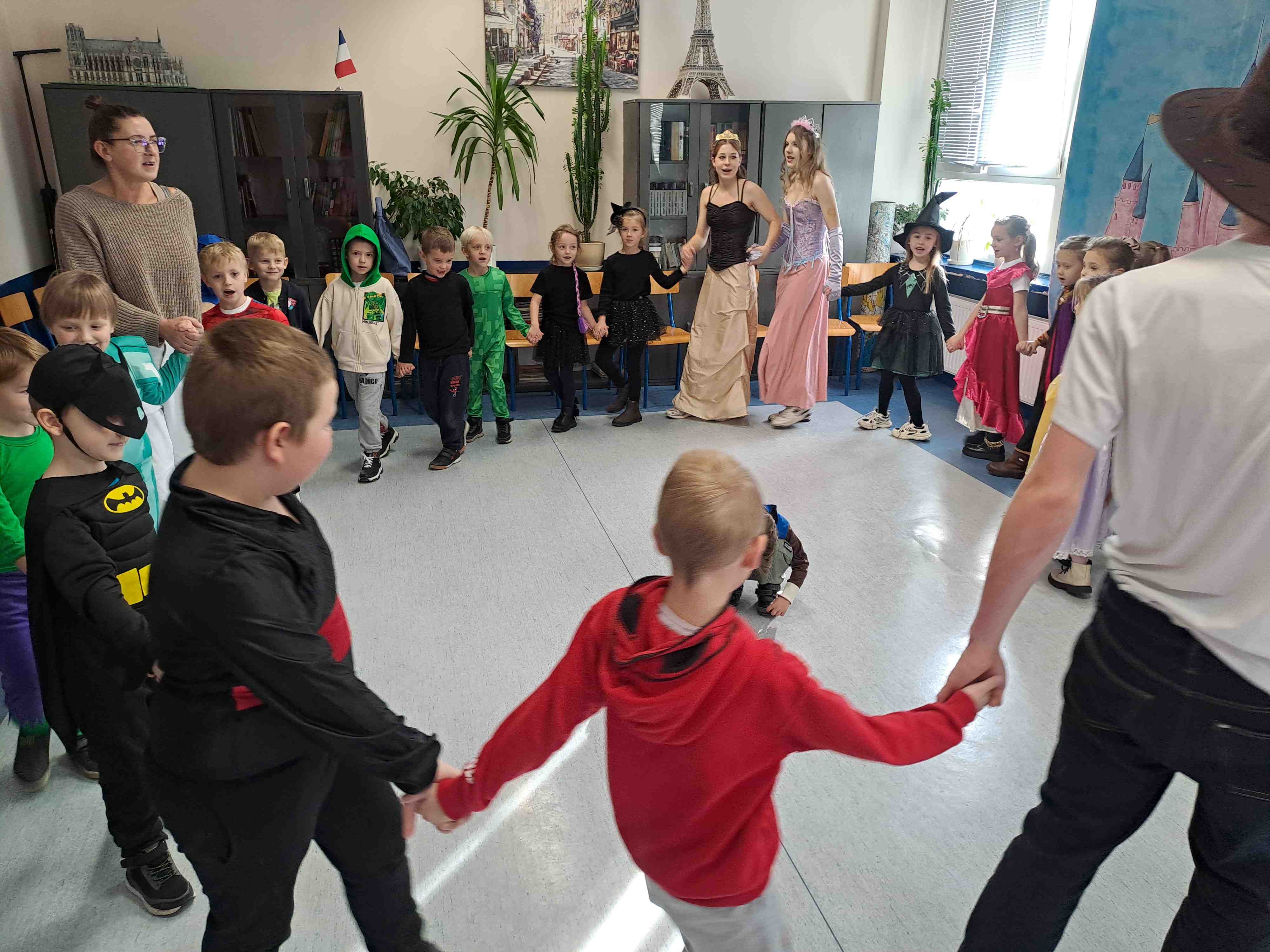 Dzień Postaci z Bajek to okazja do wesołej zabawy i przybliżenia dzieciom historii oraz bohaterów najpiękniejszych bajek i baśni. W tym roku Motylki świętowały ten dzień wraz z młodzieżą i nauczycielami I Liceum Ogólnokształcącego im. Gen. J. H. Dąbrowskiego w Kutnie, którzy zaprosili nas do wspólnej zabawy. Przedszkolaki wysłuchały bajki "Kot w butach" oraz "Jaś i Małgosia" odczytanych przez licealistów. Opowiadały o swoich strojach i postaciach, za które się przebrały. Następnie młodzież "Dąbrowszczaka" porwała dzieci w wir tańca, zabaw ruchowych, konkursów i zagadek. Dzieci bawiły się wyśmienicie, a towarzystwo starszych kolegów sprawiło, że przedszkolaki z ogromną chęcią przystępowały do wszystkich zadań. Składamy serdeczne podziękowanie Dyrekcji I LO - pani Edycie Gustowskiej, pani Monice Szymaniak i wszystkim licealistom tak wspaniale zaangażowanym w organizację tej uroczystości dla naszej grupy, a także za upominki i zdrowe przekąski. Dziękujemy!