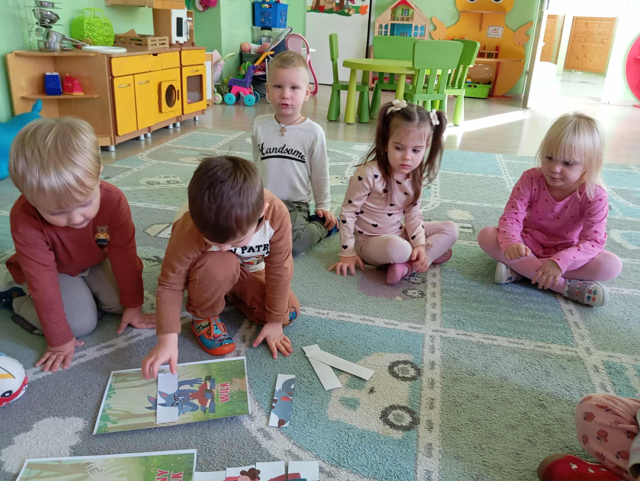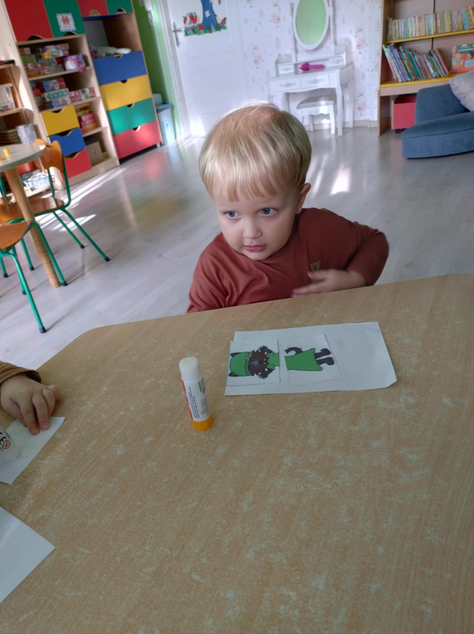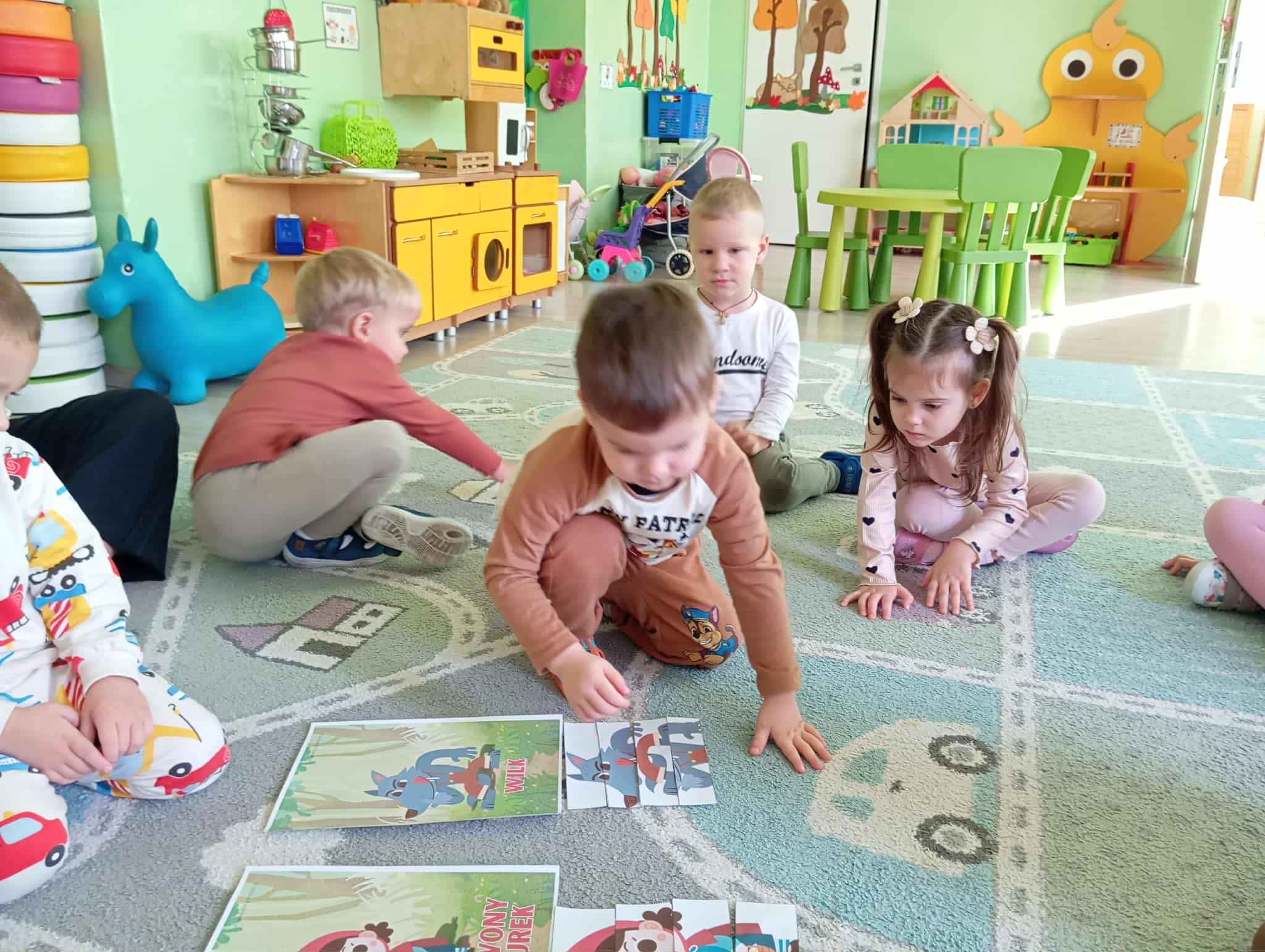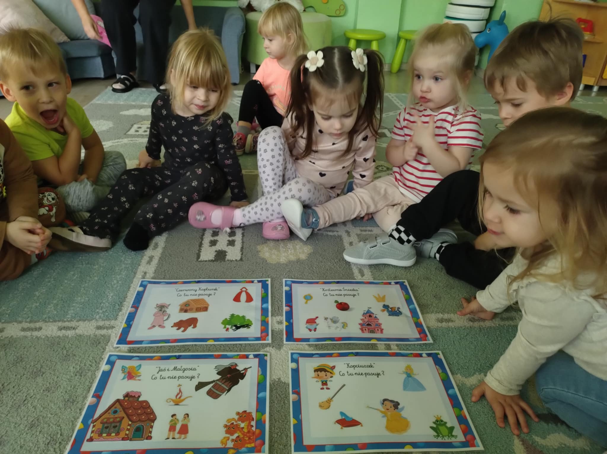 Dnia 5 listopada w naszym przedszkolu obchodziliśmy Dzień Postaci z Bajek – święto pełne uśmiechu, fantazji i kolorów. Podczas zajęć przedszkolaki poznawały różne znane bajki, rozmawiały o ich bohaterach i morałach. Szczególną uwagę poświęciliśmy bajce o Czerwonym Kapturku. Dzieci słuchały opowieści, omawiały zachowania bohaterów oraz uczyły się, jak ważne jest słuchanie rad dorosłych i ostrożność wobec nieznajomych. Następnie przedszkolaki wykonały pracę plastyczną – „Bohaterowie bajek”. Zadaniem dzieci było sklejenie poszczególnych elementów postaci w całość, tak aby powstał ich ulubiony bajkowy bohater. Ta twórcza aktywność sprawiła wszystkim wiele radości i pozwoliła rozwijać wyobraźnię, zdolności manualne oraz umiejętność współpracy. Dużym zainteresowaniem cieszyła się również historyjka obrazkowa o Czerwonym Kapturku. Dzieci układały obrazki we właściwej kolejności, opowiadały wydarzenia własnymi słowami i utrwalały treść bajki. Na zakończenie odbyły się zabawy i tańce przy bajkowej muzyce – przedszkolaki z radością ruszyły do wspólnej zabawy, tańcząc w rytm wesołych piosenek o swoich ulubionych bohaterach. To był magiczny, pełen emocji i dobrej zabawy dzień, który przypomniał wszystkim, jak ważne są bajki w rozwijaniu dziecięcej wyobraźni i nauce wartości takich jak dobro, odwaga i przyjaźń.