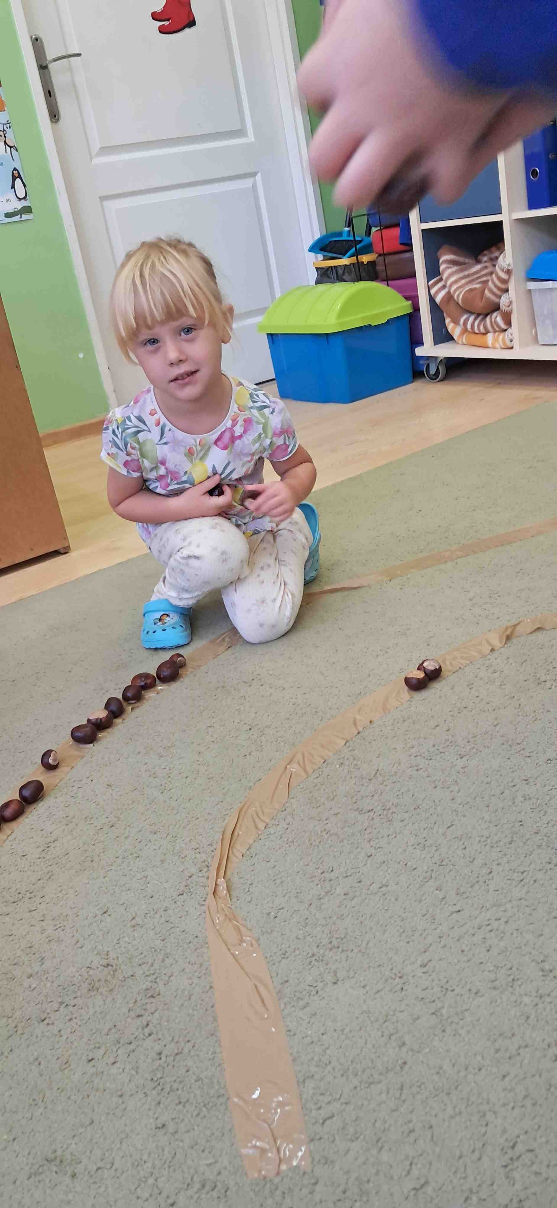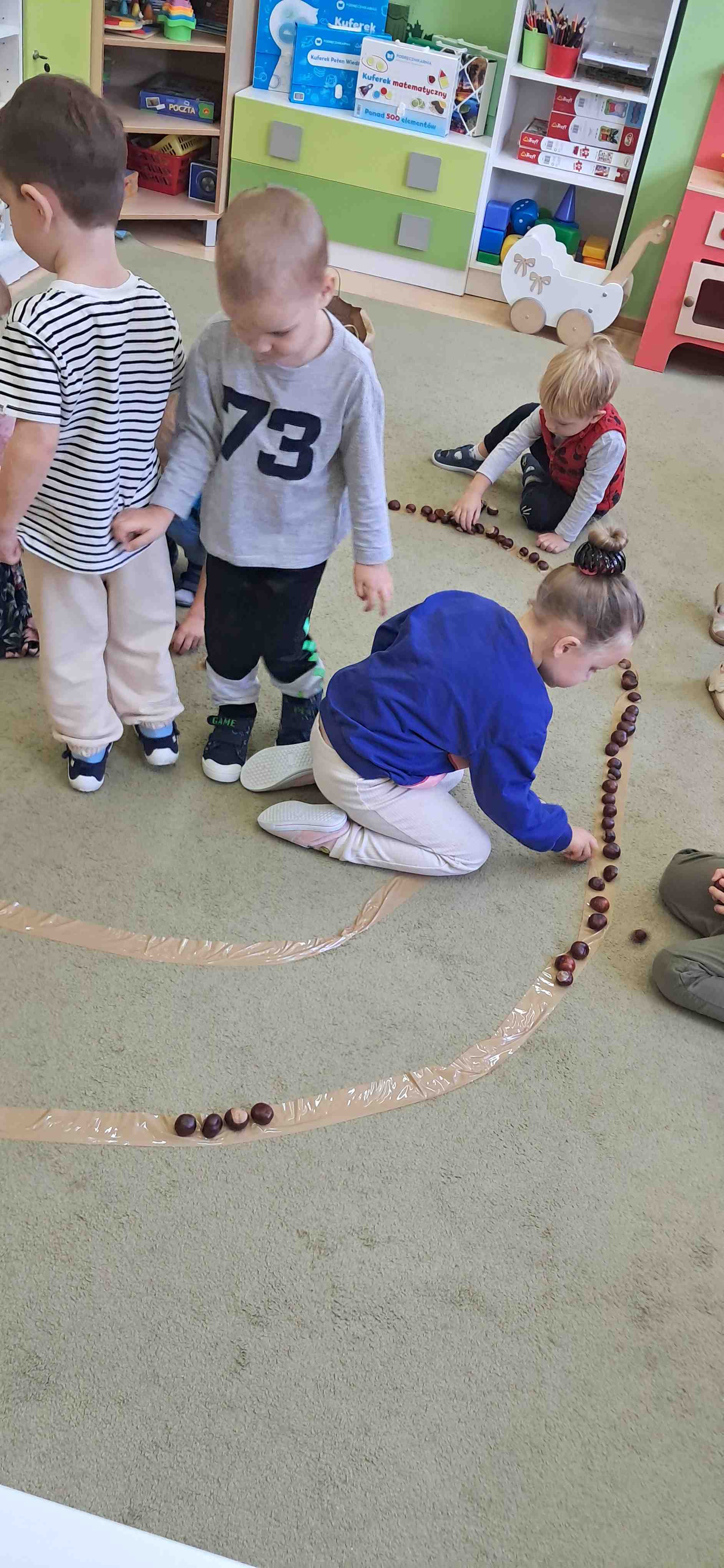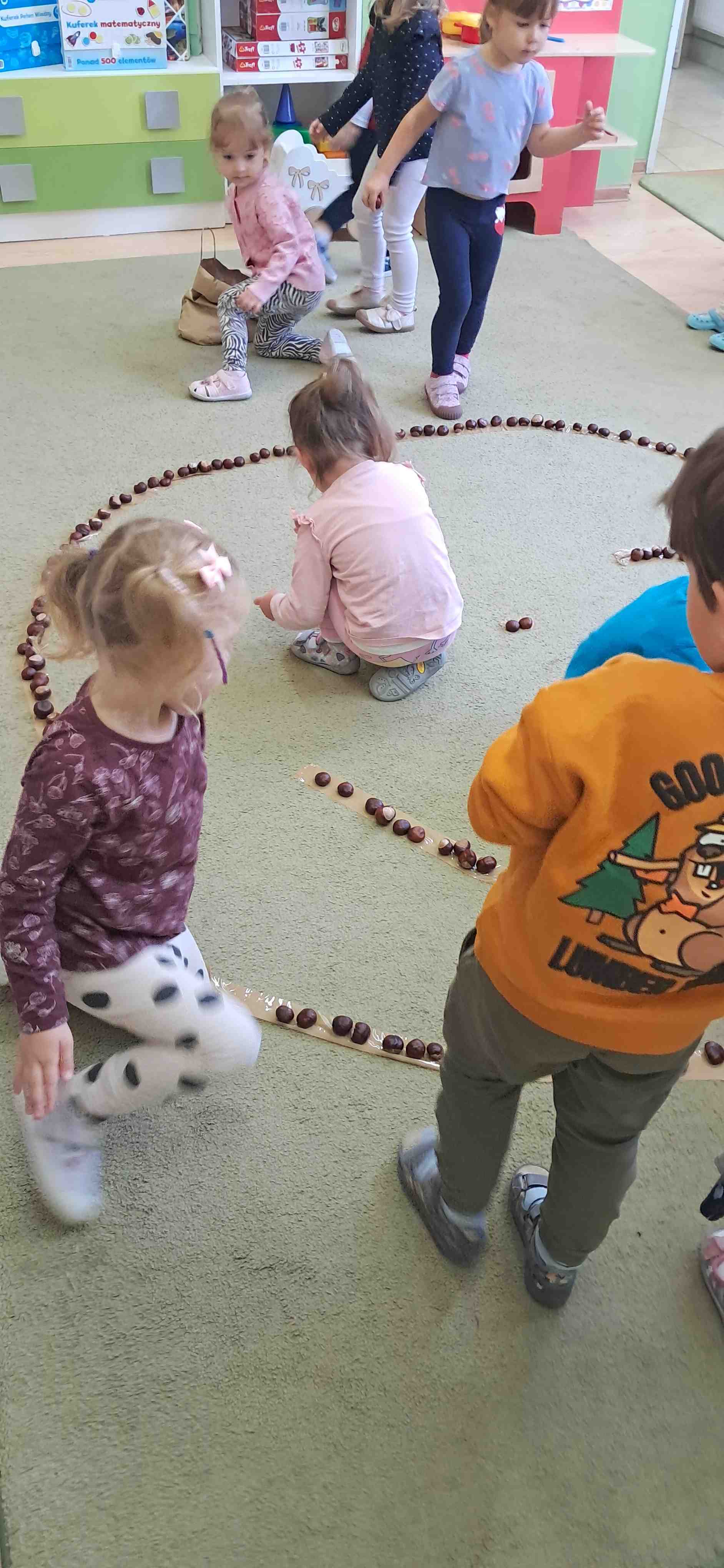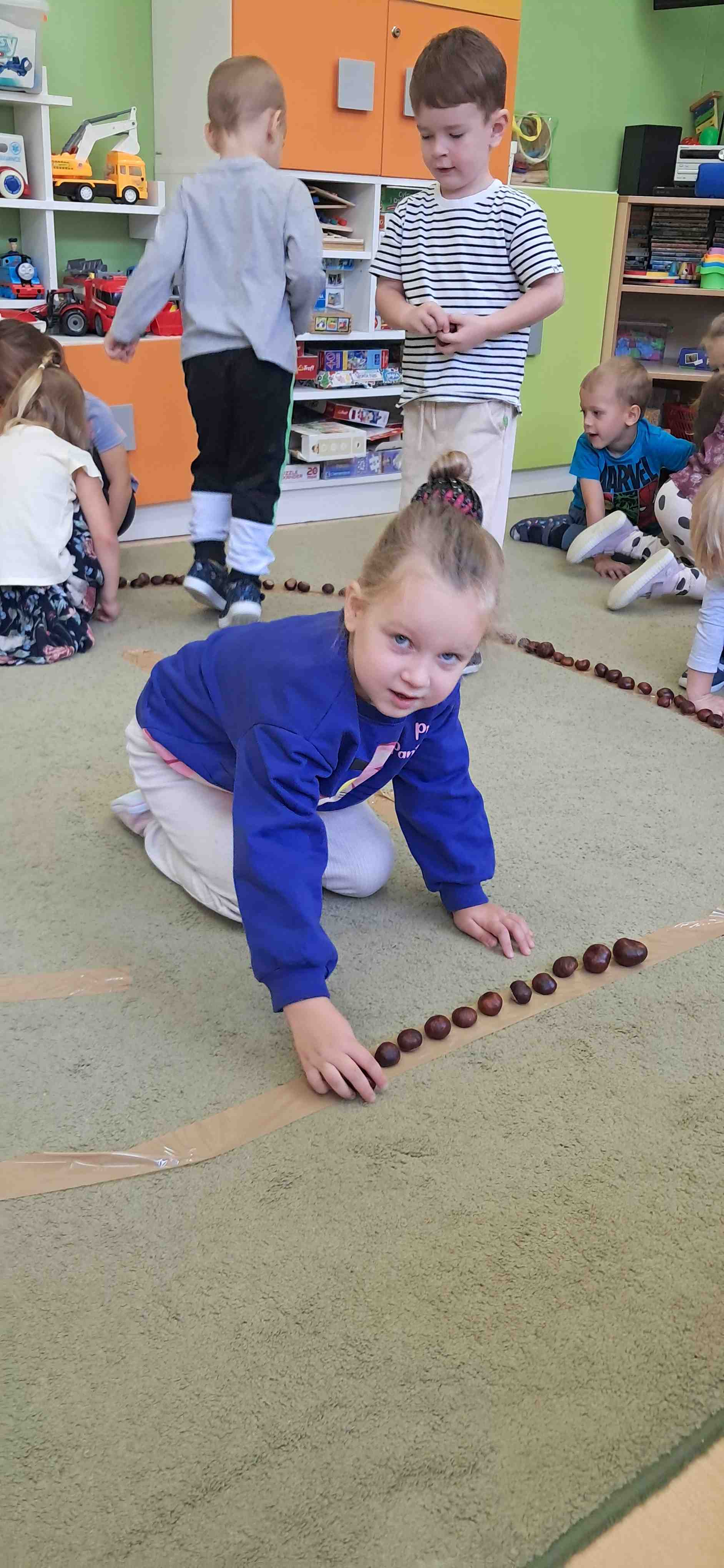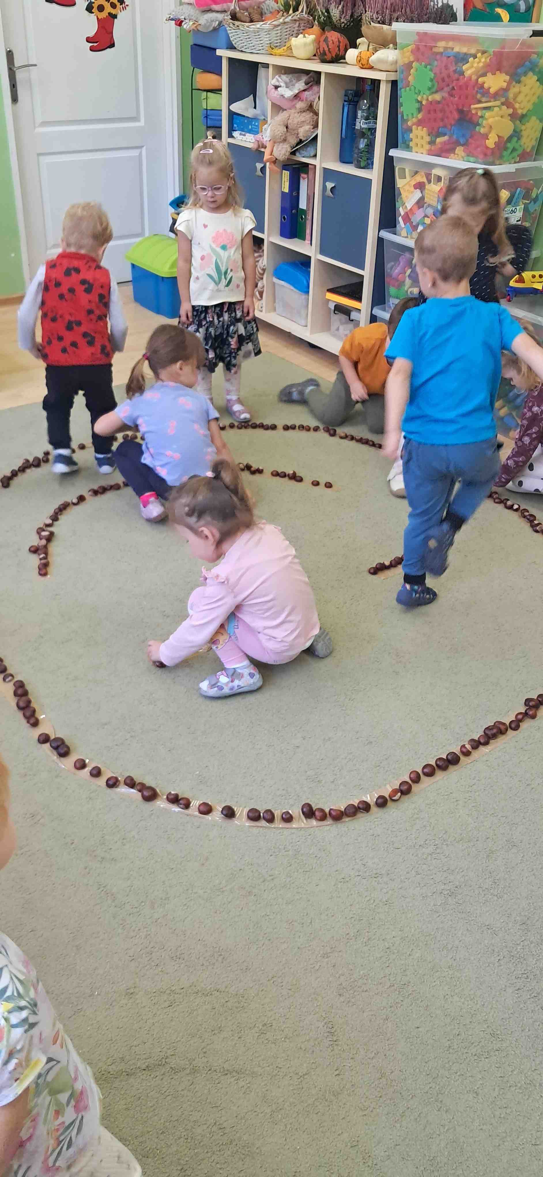 Z okazji Światowego Dnia Uśmiechu ,,Jagódki'' zrobiły w sali ogromną, uśmiechniętą buzię. Do swojej pracy wykorzystały dary jesieni- kasztany!