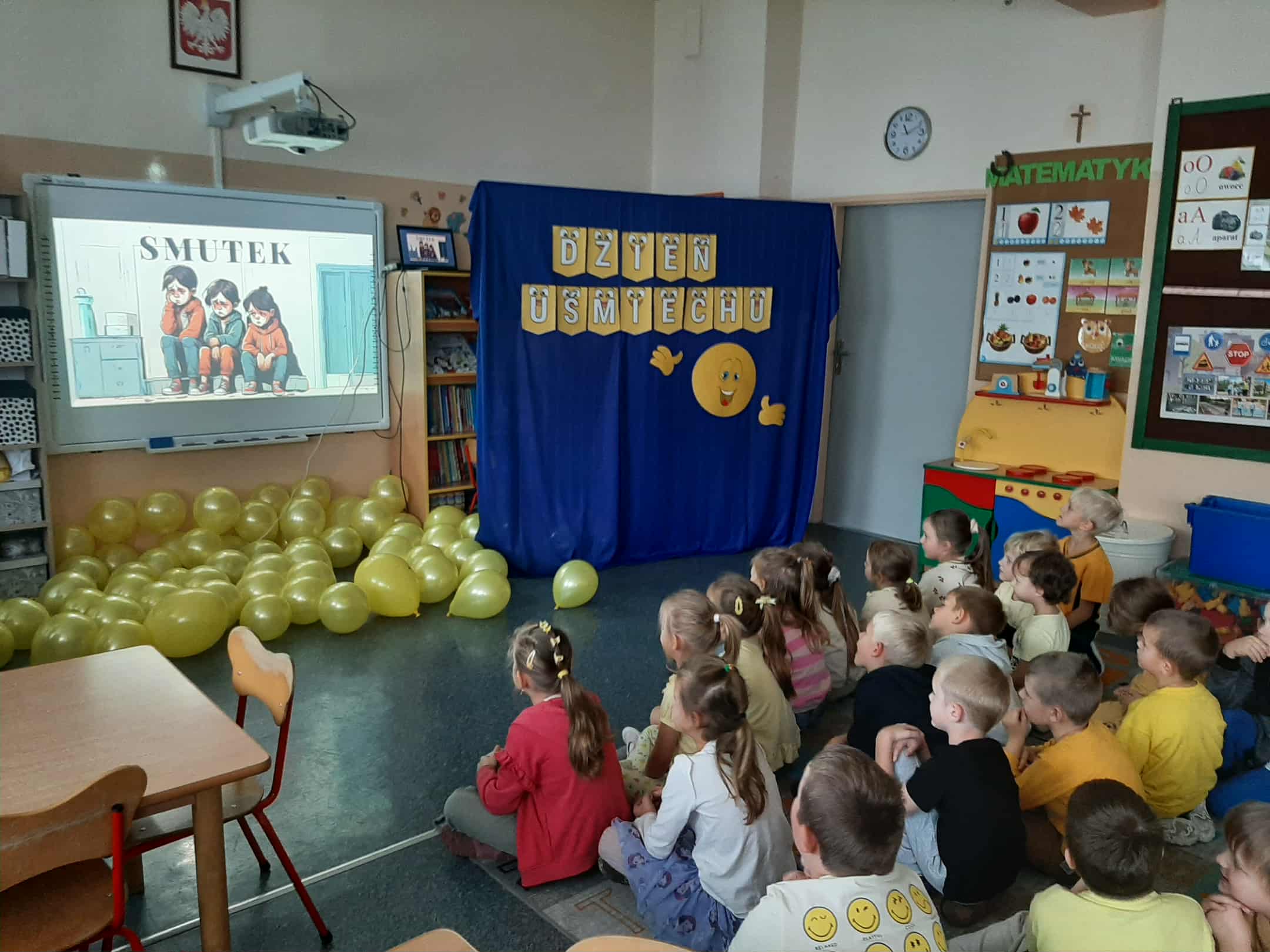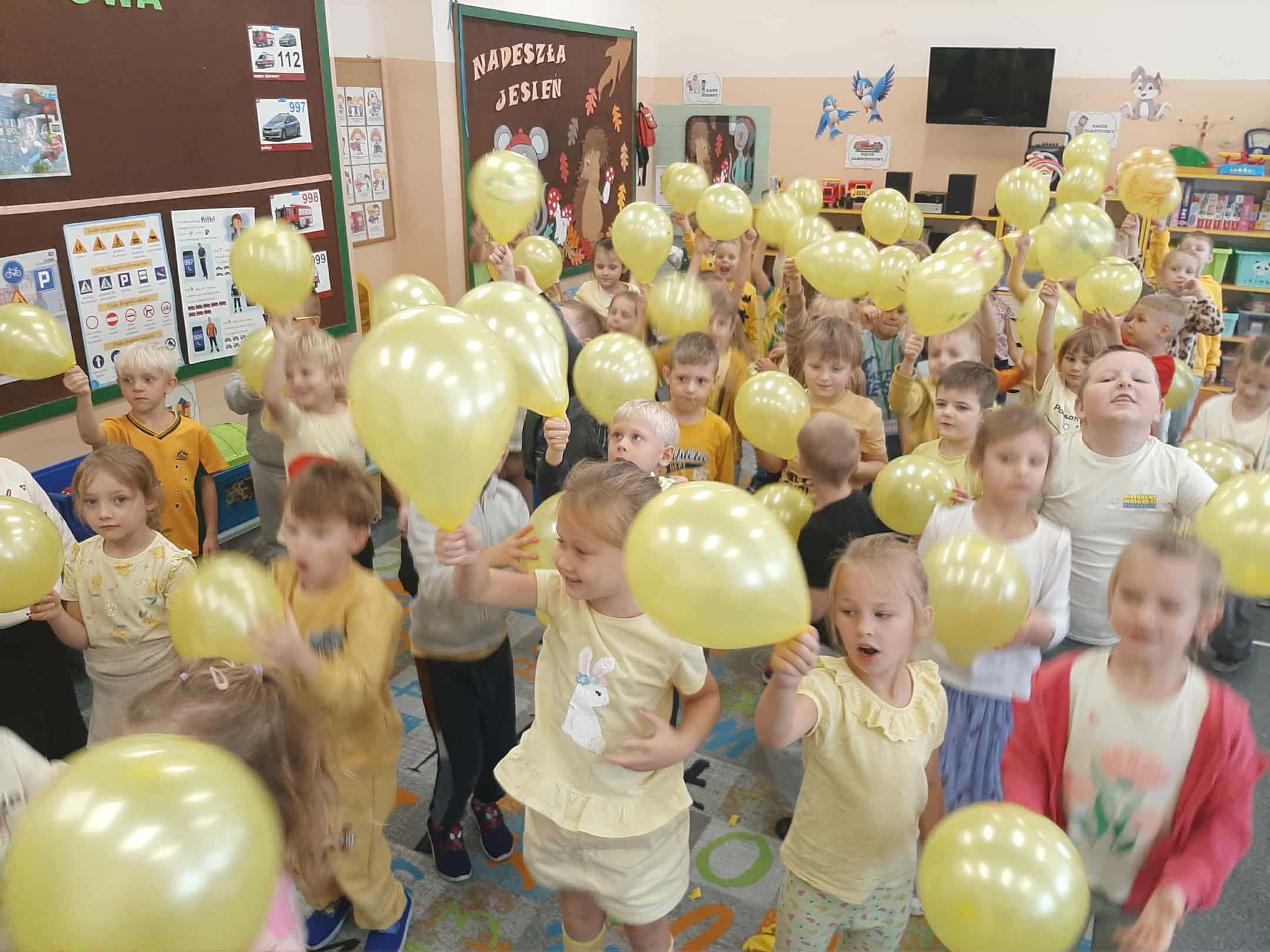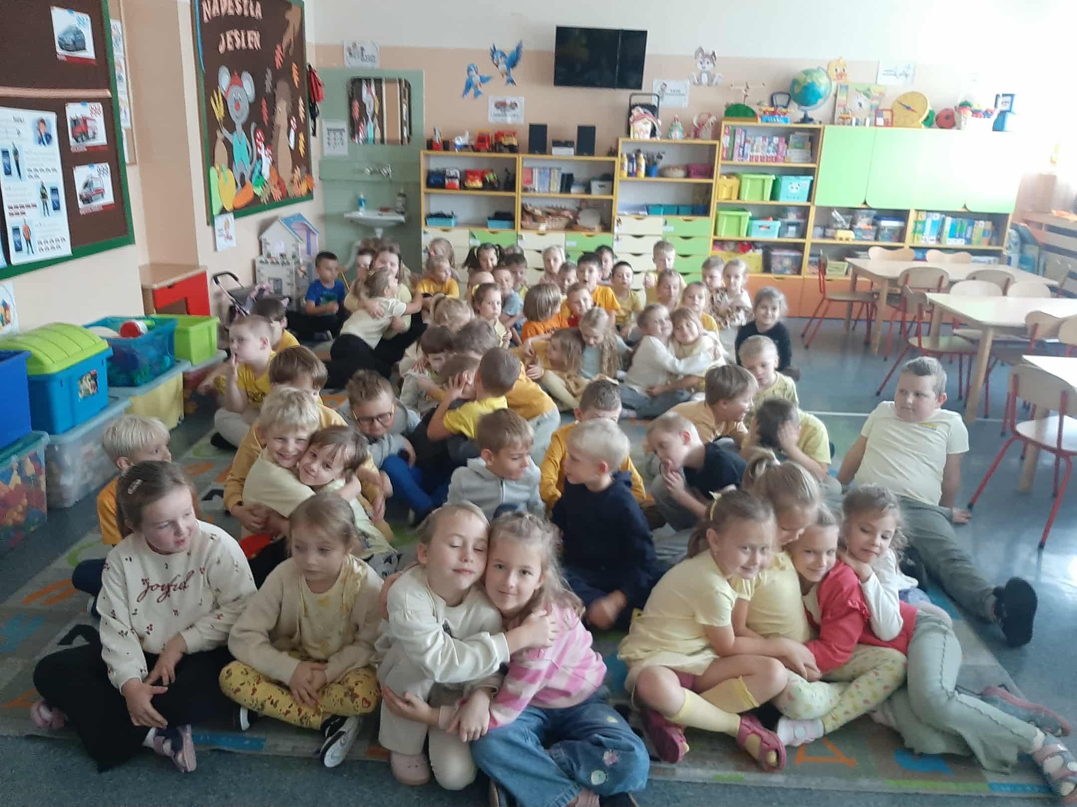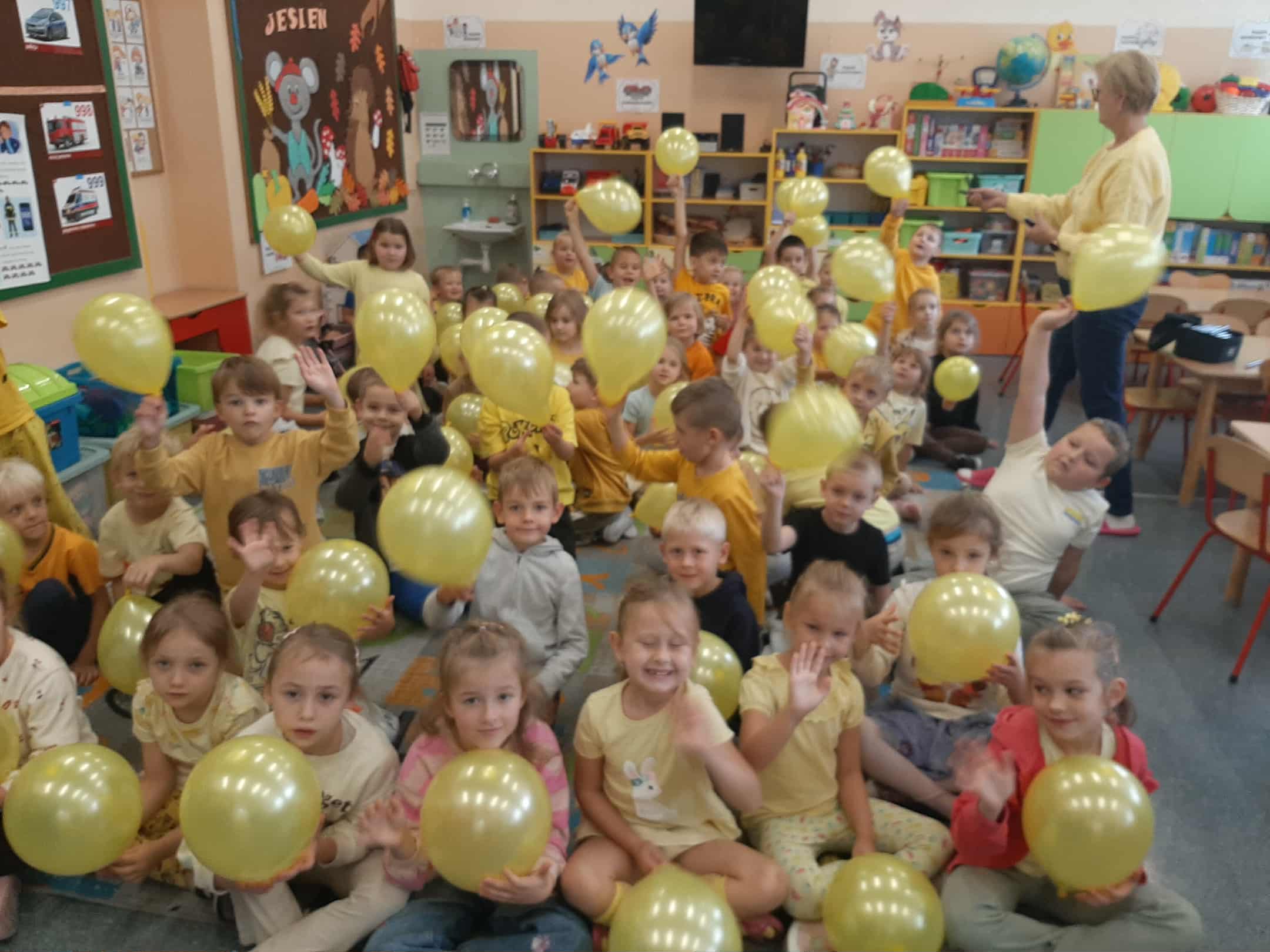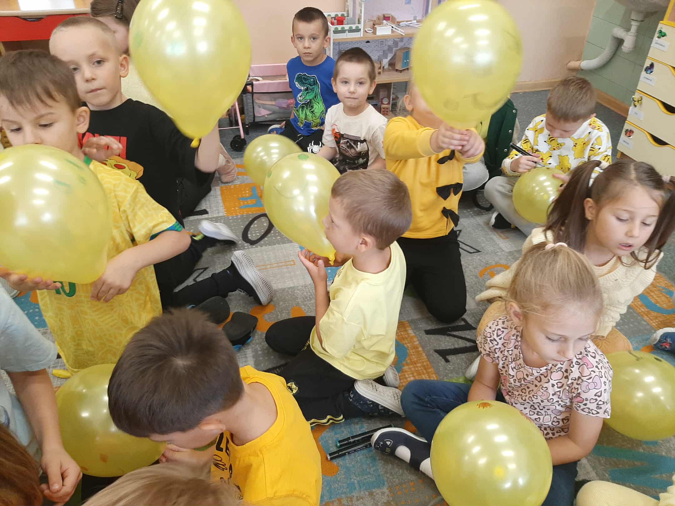 W dniu 06.10.2025r. w naszym przedszkolu obchodziliśmy Dzień Uśmiechu! W zabawie wzięły udział trzy grupy 6-latków, które od samego rana dzieliły się radością i pozytywną energią. Świętowanie rozpoczęło się od pogadanki o emocjach – dzieci rozmawiały o tym, co sprawia im radość i dlaczego warto się uśmiechać. Następnie przedszkolaki z wielkim zaangażowaniem rysowały wesołe minki na żółtych balonach, tworząc kolorowe, radosne buźki. Nie zabrakło też degustacji cytryny – to zabawne doświadczenie wywołało wiele śmiechu, choć miny nie zawsze były wesołe! Na zakończenie każde dziecko otrzymało Order Uśmiechu, jako symbol radości, życzliwości i dobrej zabawy. Dzień zakończyliśmy pamiątkowymi zdjęciami grupowymi, które na pewno będą piękną pamiątką tego radosnego wydarzenia. Uśmiech to najlepszy sposób, by świat stał się lepszy!