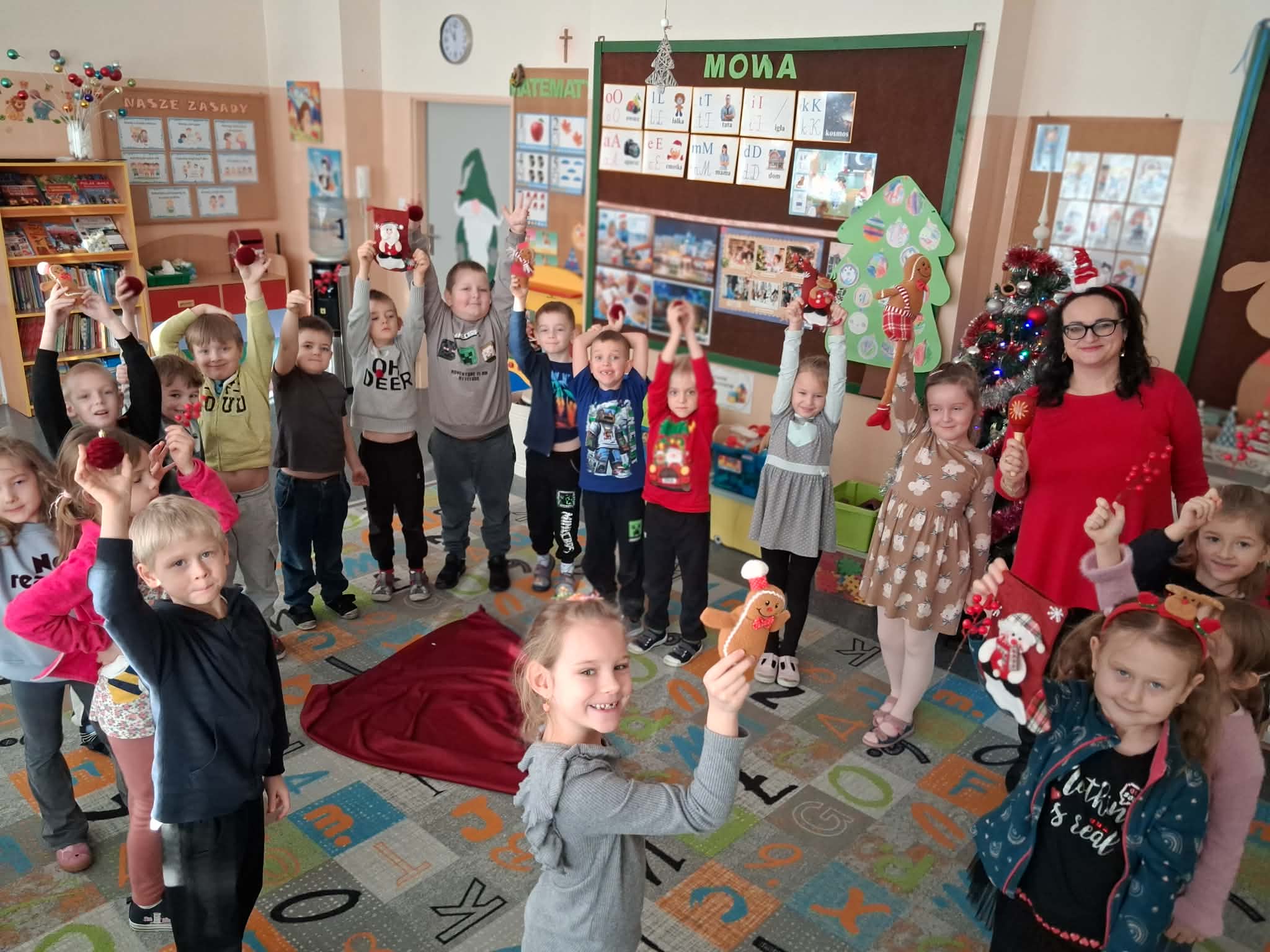 W grupie I, II oraz III zostały przeprowadzone kolejne zajęcia w ramach realizacji Ogólnopolskiego Projektu Edukacyjnego "Alfabet Logopedyczny". Zajęcia odbyły się w klimacie świątecznym. Podczas zajęć usprawniano narządy artykulacyjne oraz rozwijano koncentrację.
