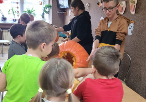 Dynia jest warzywem, które zachwyca swoim wyjątkowym wyglądem i smakiem. Przekonały się o tym Stokrotki uczestnicząc 26 października w Święcie Dyni. Wszyscy tego dnia przeżyliśmy istny dyniowy zawrót głowy. Wspólnie z Wychowankami Ośrodka Rehabilitacyjno-Edukacyjno- Wychowawczego "Niezabudka" uczestniczyliśmy w zajęciach, których celem było poznanie bardzo zdrowego i urodziwego warzywa jakim jest dynia. Rozmawialiśmy na temat jej wyglądu, różnorodności i przeznaczenia., a także dopasowaliśmy symbol dyni do jej cienia. Zabawa była świetna, a śmiechu co niemiara ponieważ mieliśmy okazję uczestniczyć w przygotowaniu dyniowych placków.