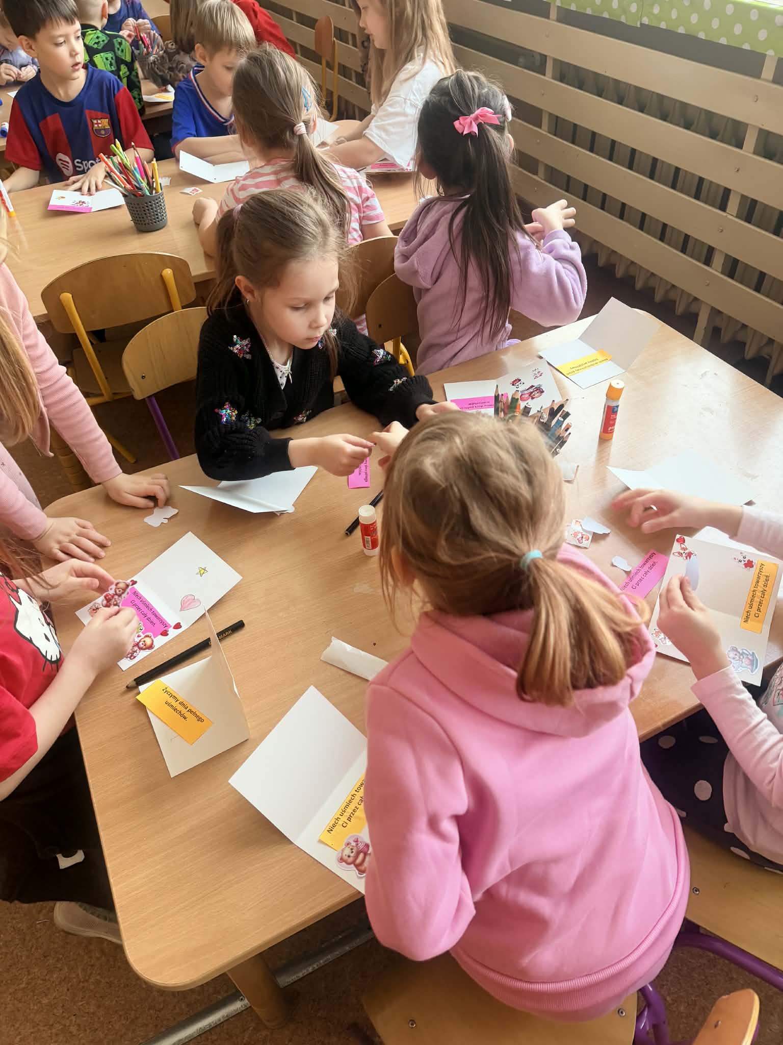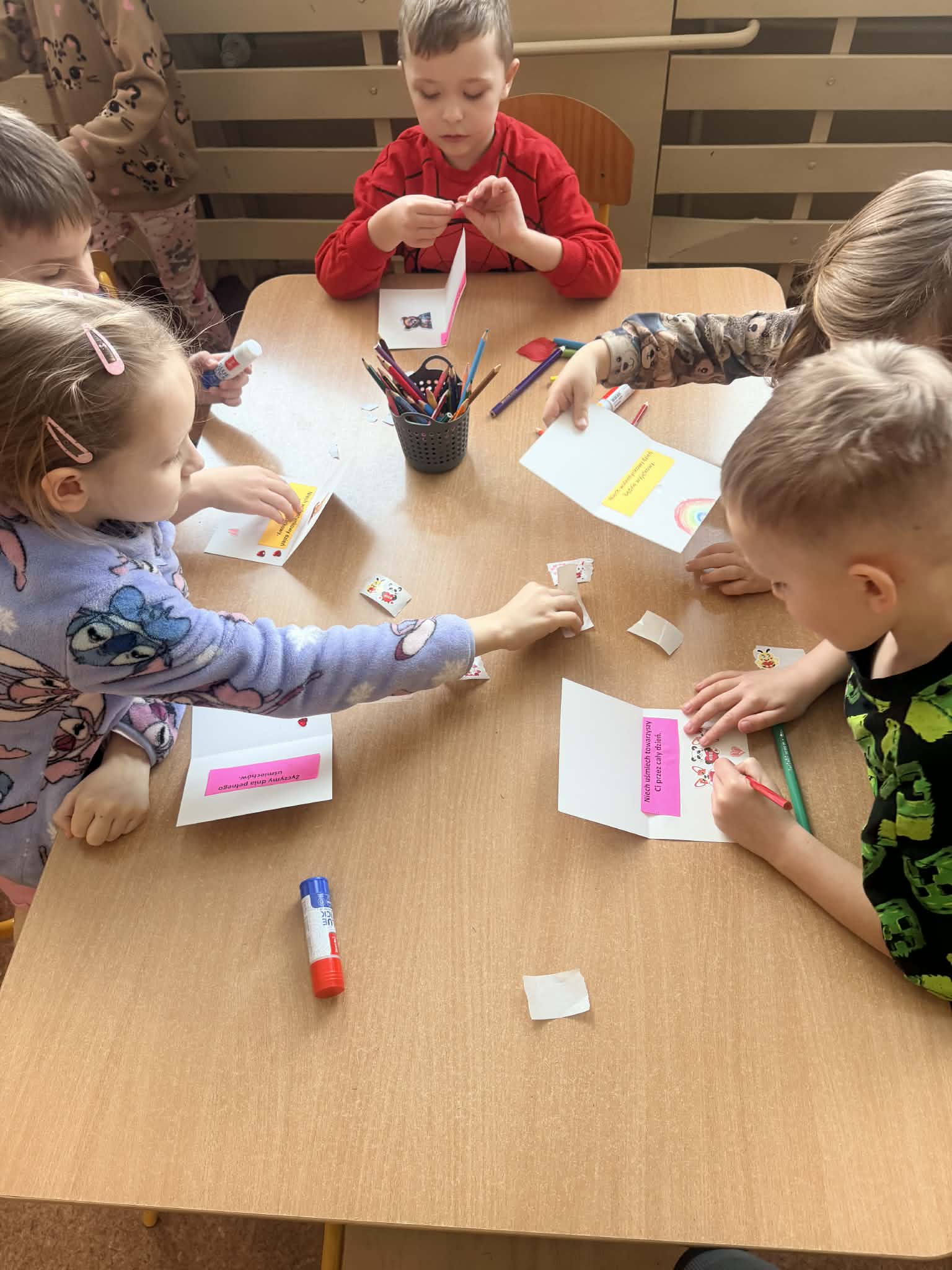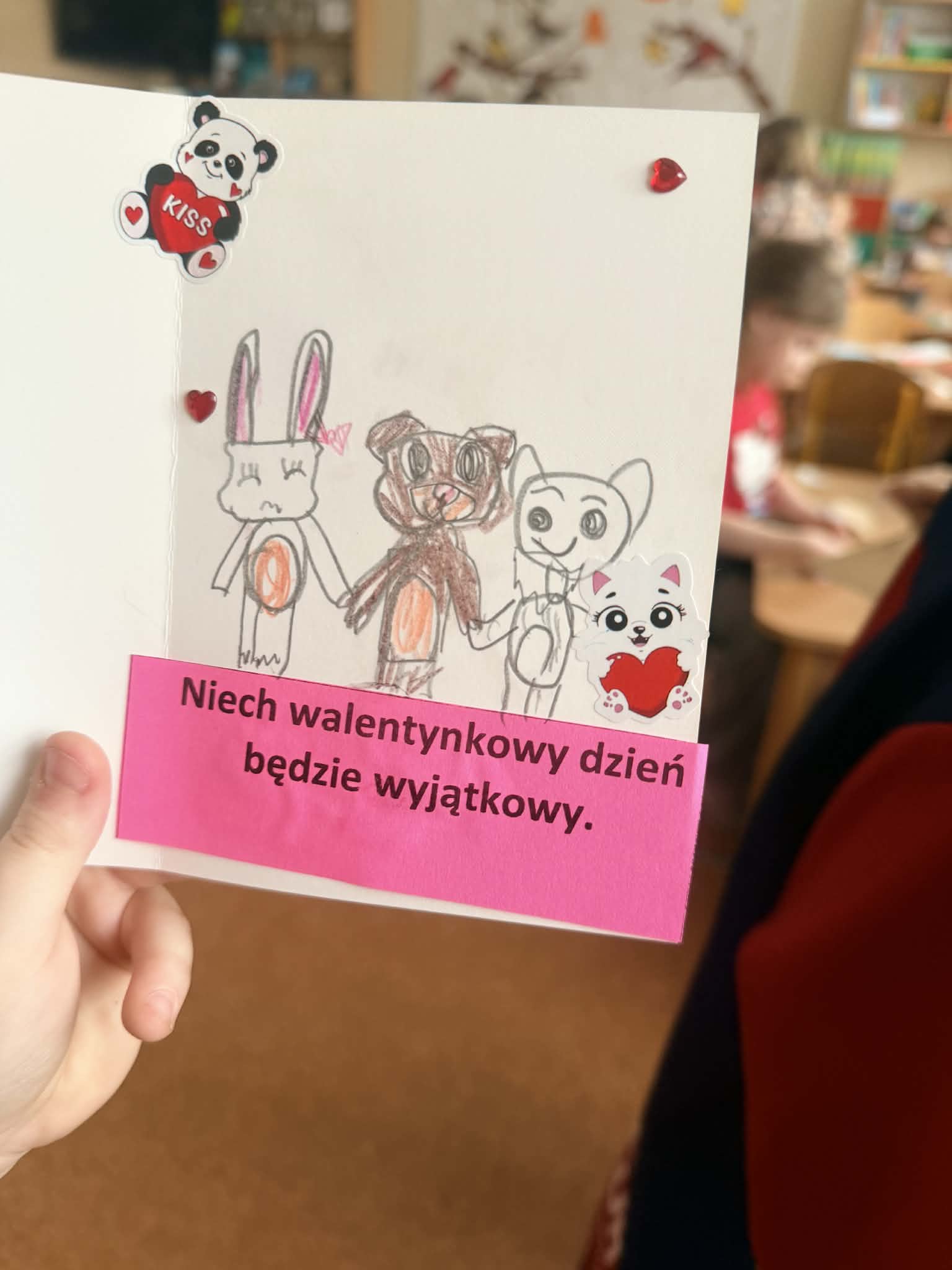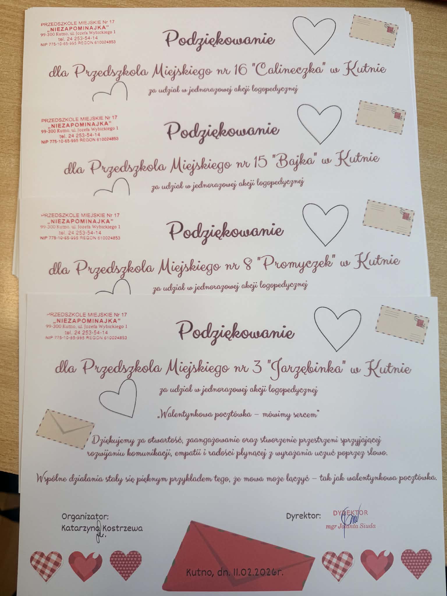 Nasze Przedszkole zorganizowało Jednorazową Akcję Logopedyczną "Walentynkowa pocztówka - mówimy sercem". Do udziału w akcji zostały zaproszone dzieci 6-letnie z Przedszkoli Miejskich oraz Oddziałów Przedszkolnych zlokalizowanych w Kutnie. Akcja polegała na przygotowaniu i wymianie między przedszkolami kartek walentynkowych. W przygotowaniu kartek z naszego przedszkola brały udział dzieci z grupy II "Biedronki" z oddziału zlokalizowanego przy ulicy Jana Zamoyskiego 1. Głównym celem akcji było wspieranie rozwoju mowy oraz kompetencji komunikacyjnych dzieci. Dziękujemy bardzo za włączenie w akcję dzieciom z przedszkoli: Przedszkole Miejskie nr 3 "Jarzębinka", Przedszkole Miejskie nr 8 "Promyczek", Przedszkole Miejskie nr 15 "Bajka" oraz Przedszkole Miejskie nr 16 "Calineczka" w Kutnie. Przygotowane kartki wywołały uśmiech na niejednej dziecięcej twarzy.