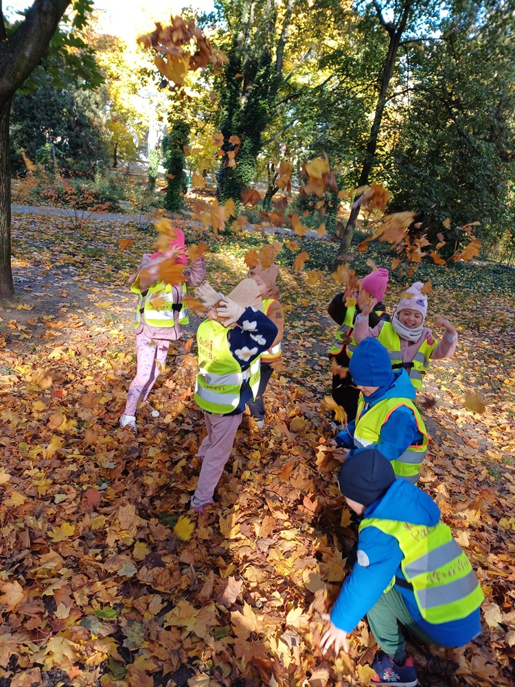 Dzieci z naszego przedszkola wybrały się na jesienny spacer, korzystając z pięknej, słonecznej pogody. Podczas wyjścia obserwowały zmieniającą się przyrodę, spadające liście i barwy jesieni. To był radosny i pełen wrażeń dzień spędzony na świeżym powietrzu!