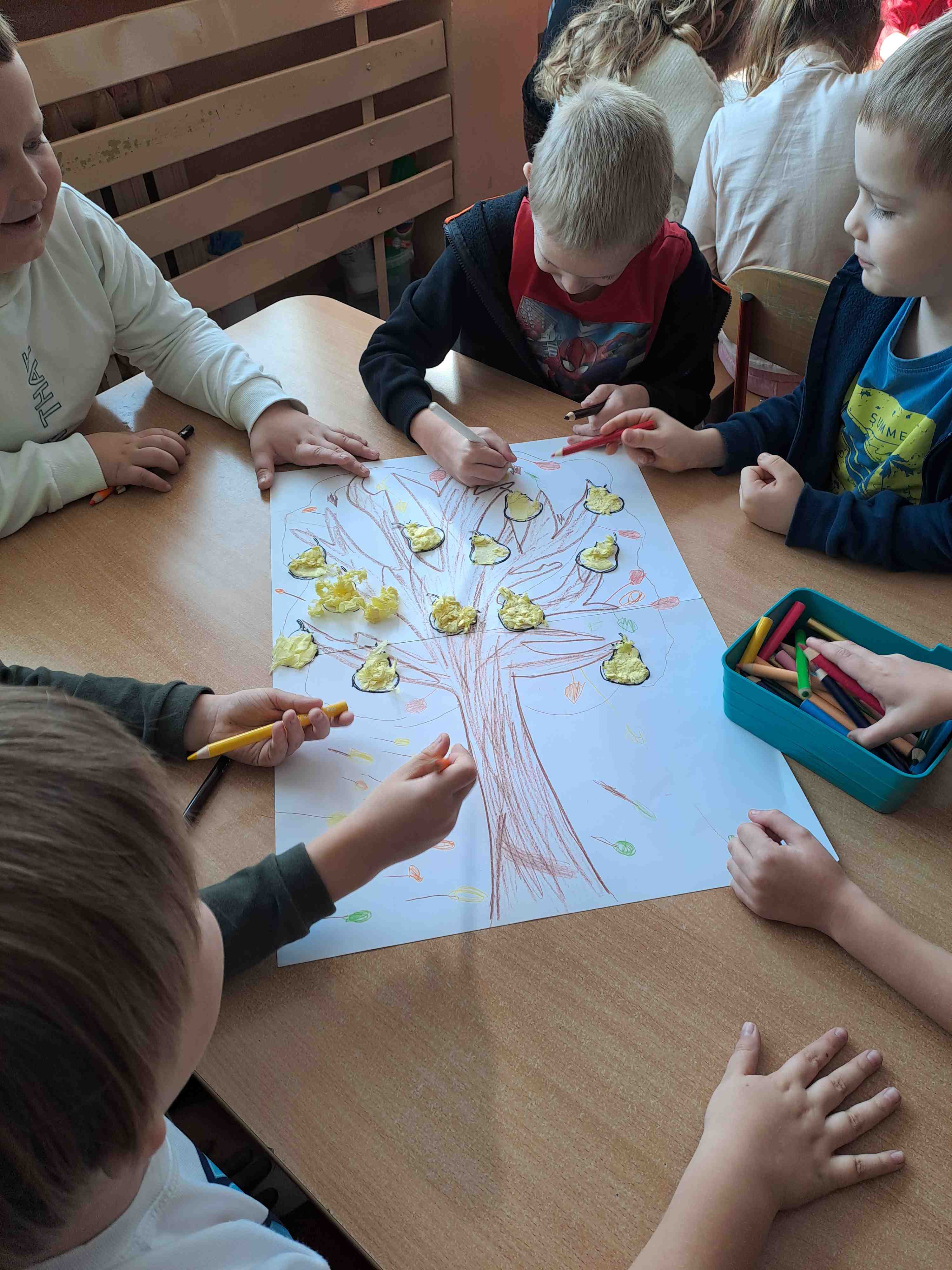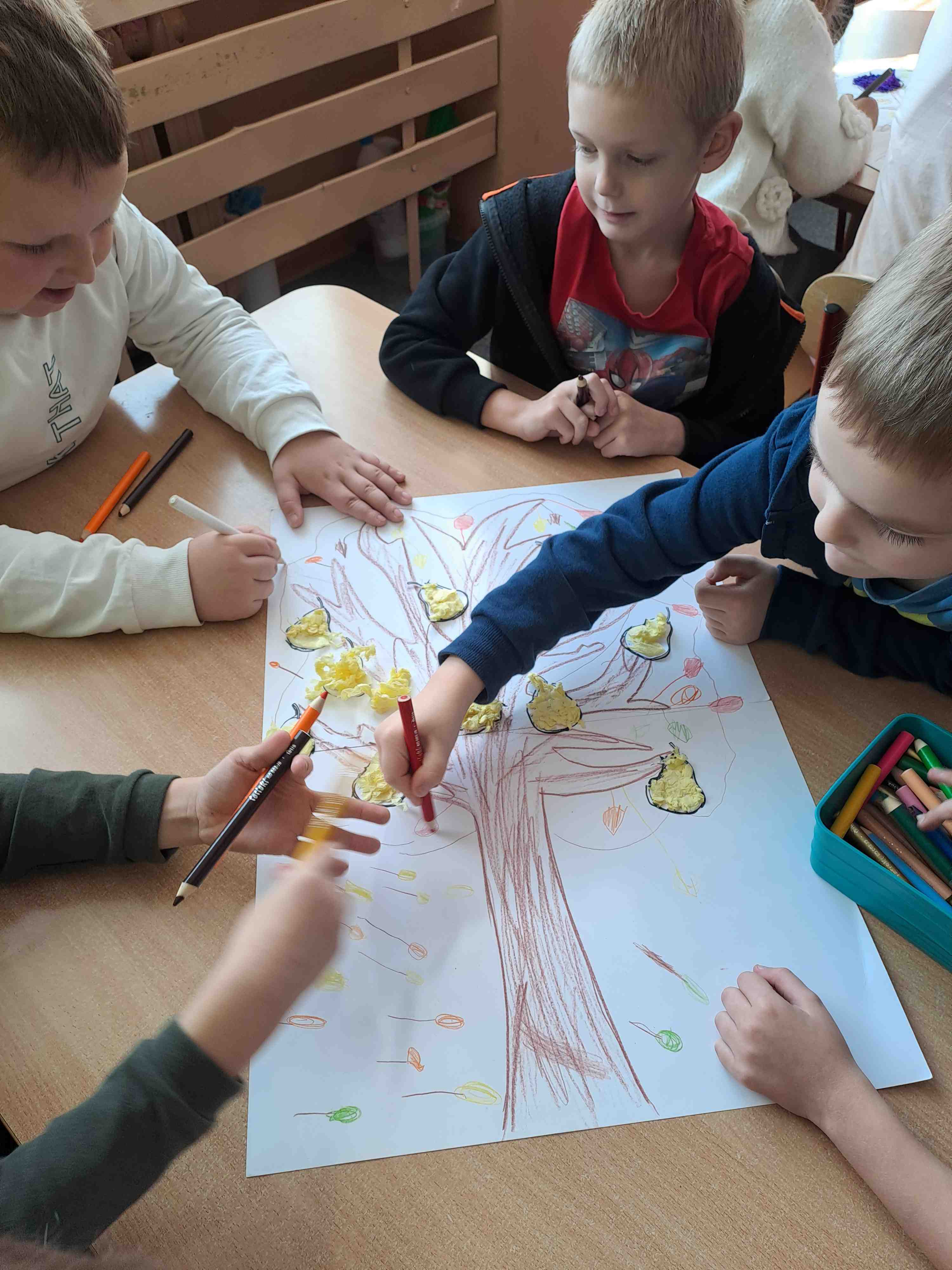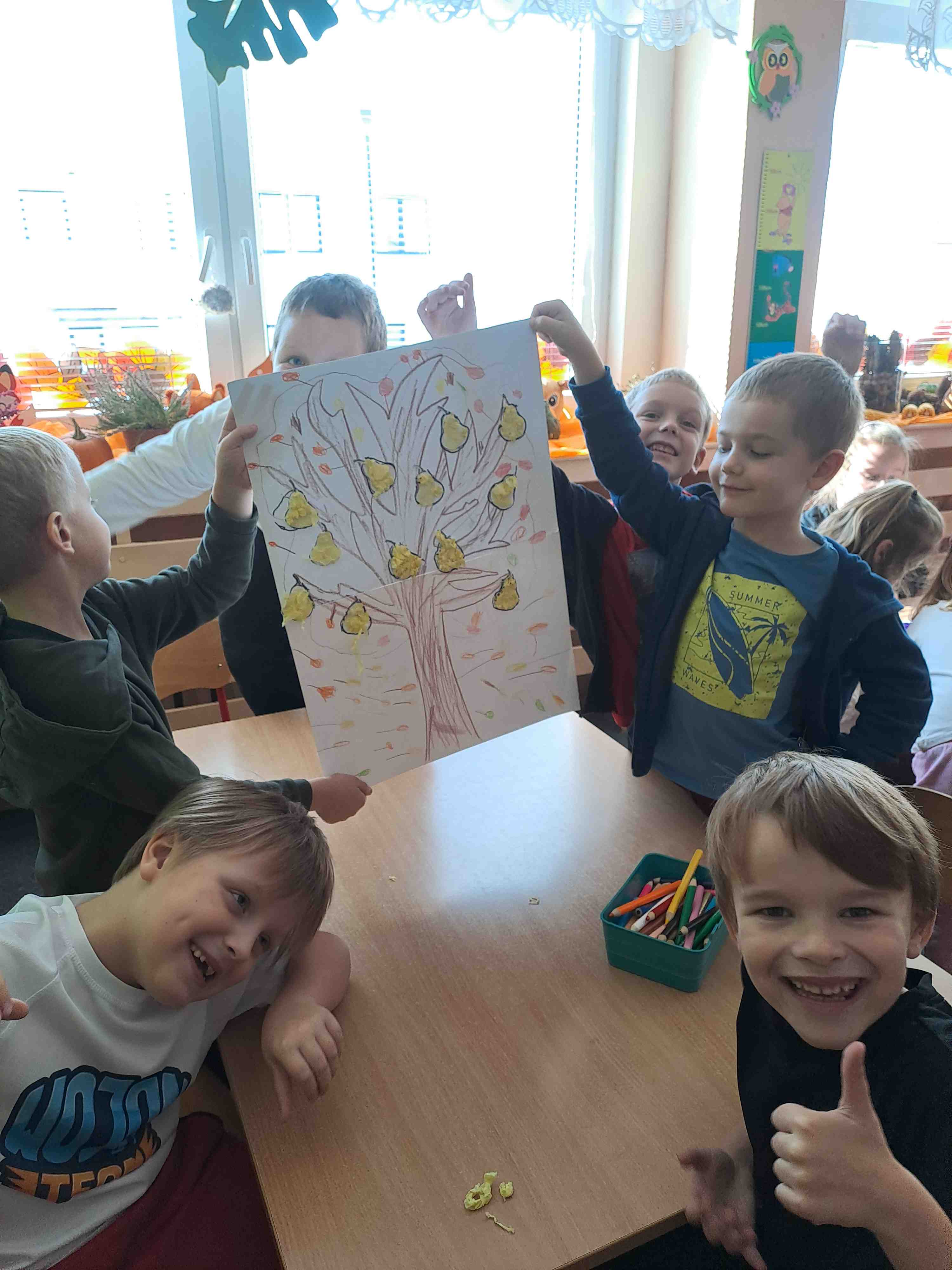 Dziś utrwalaliśmy nazwy i wygląd drzew owocowych. Ćwiczenia w kodowaniu oraz kolorowe prace plastyczne rozwijały nasze umiejętności logicznego myślenia, odwzorowywania, projektowania. A dodatkowo uczymy się współpracować w zespołach.