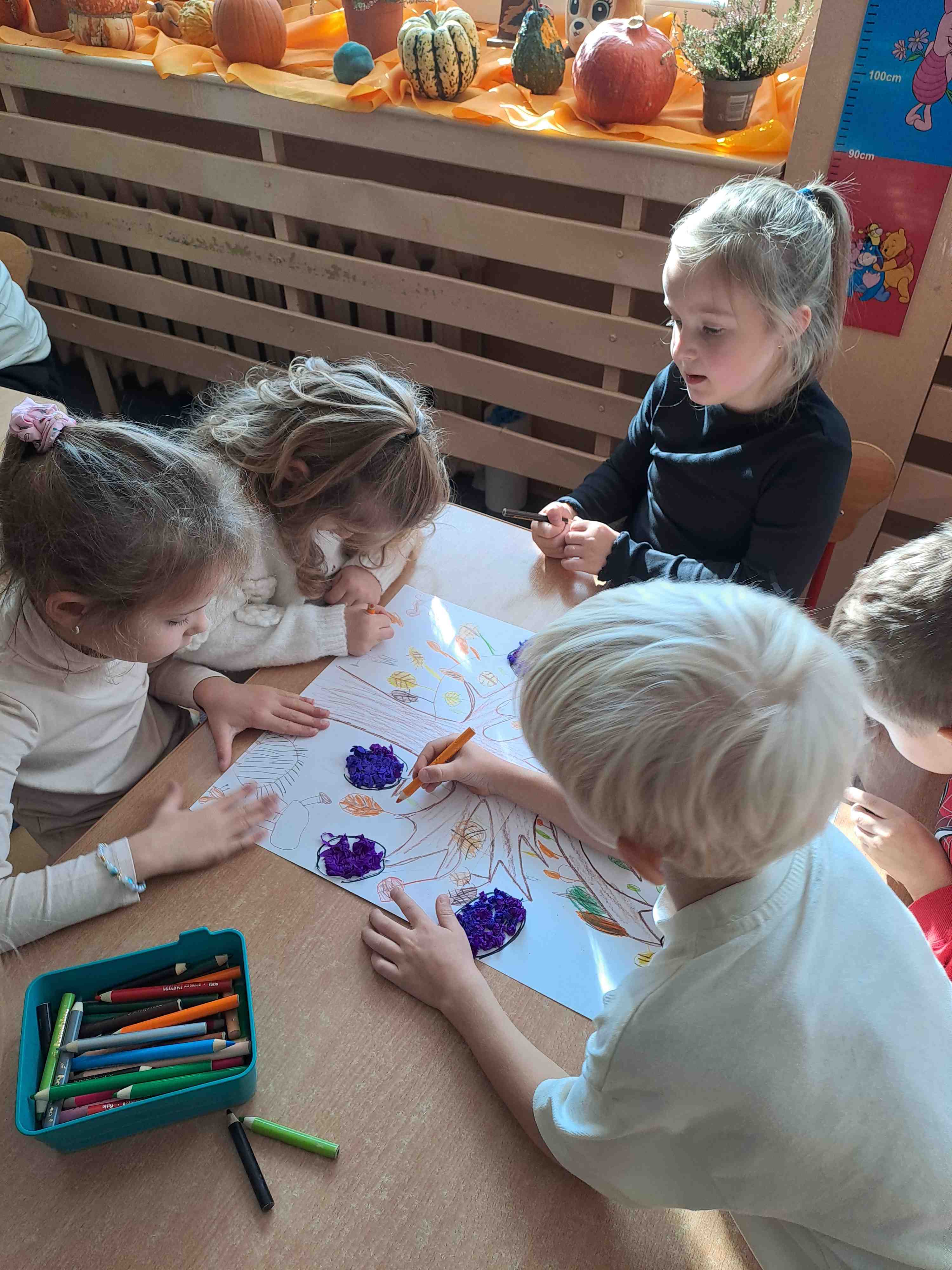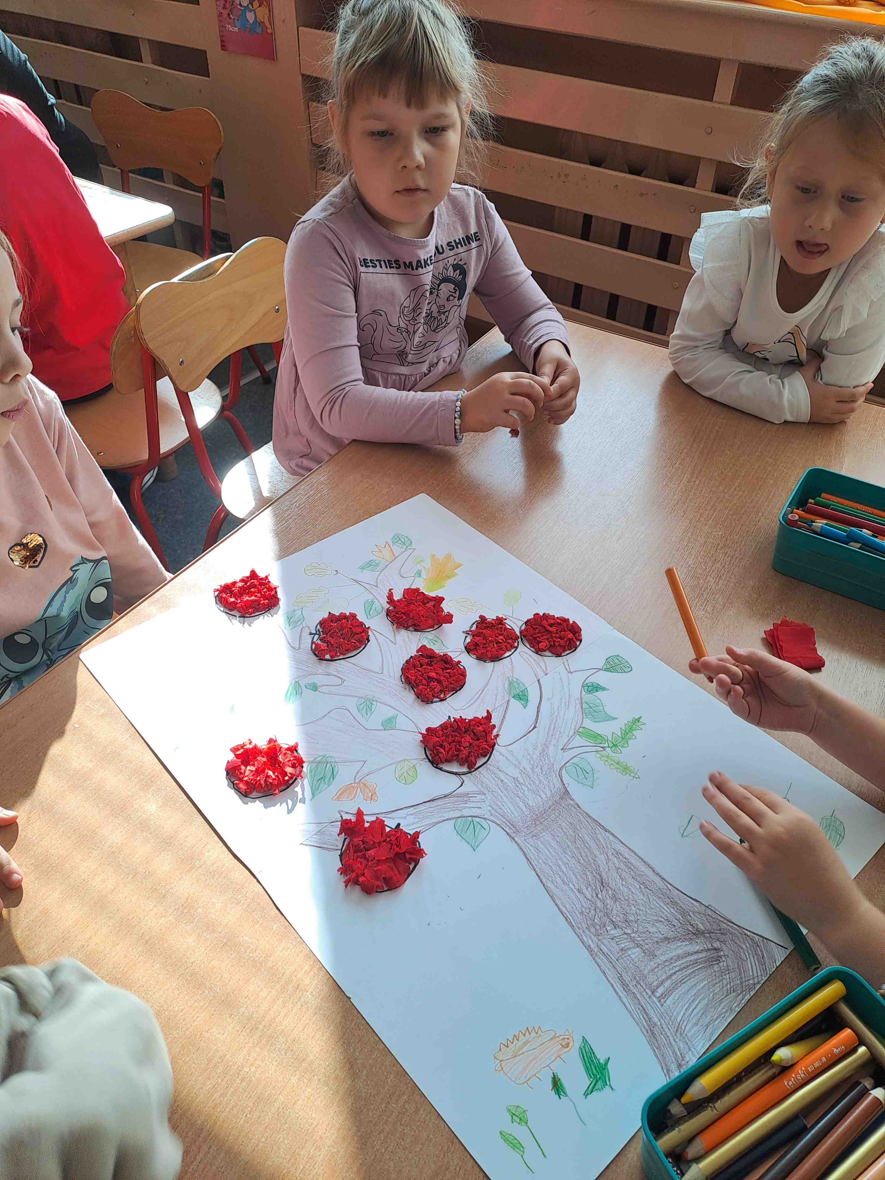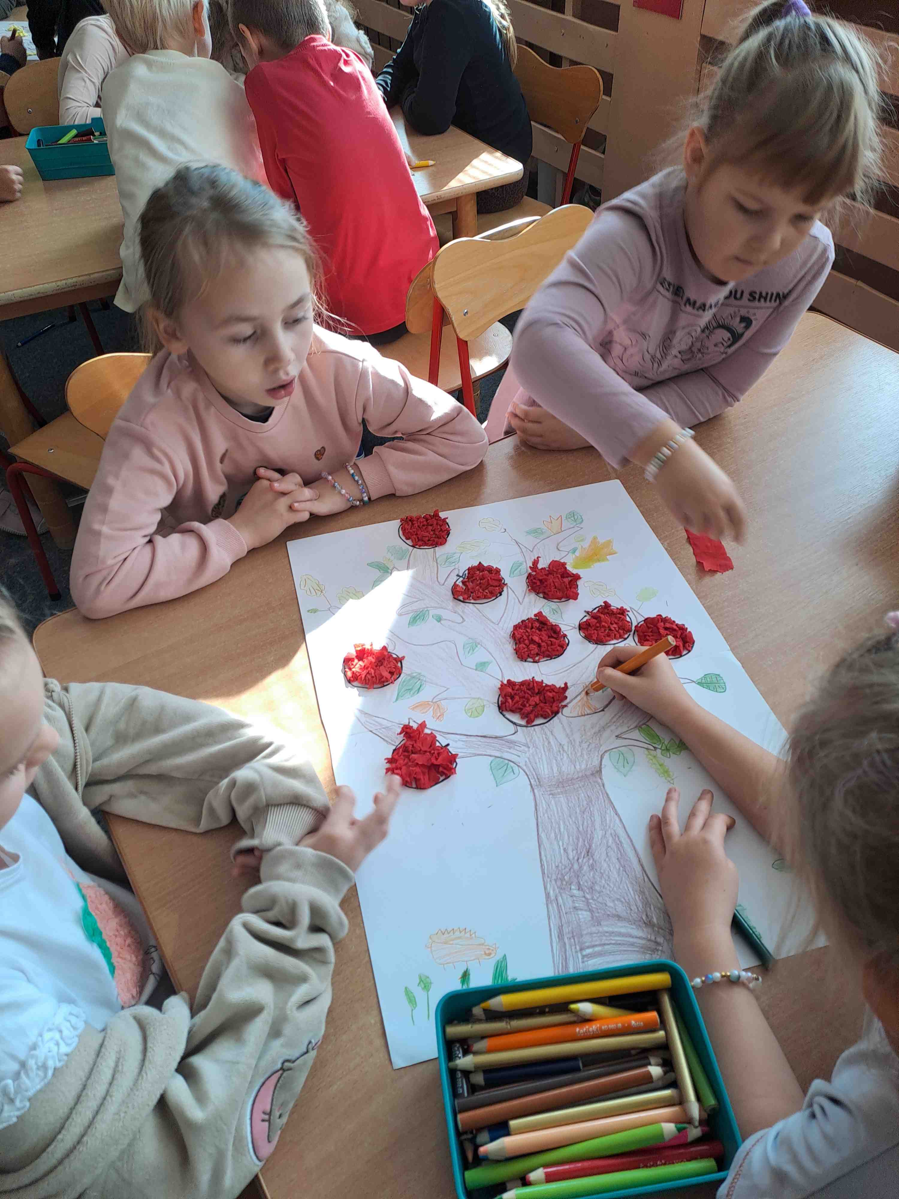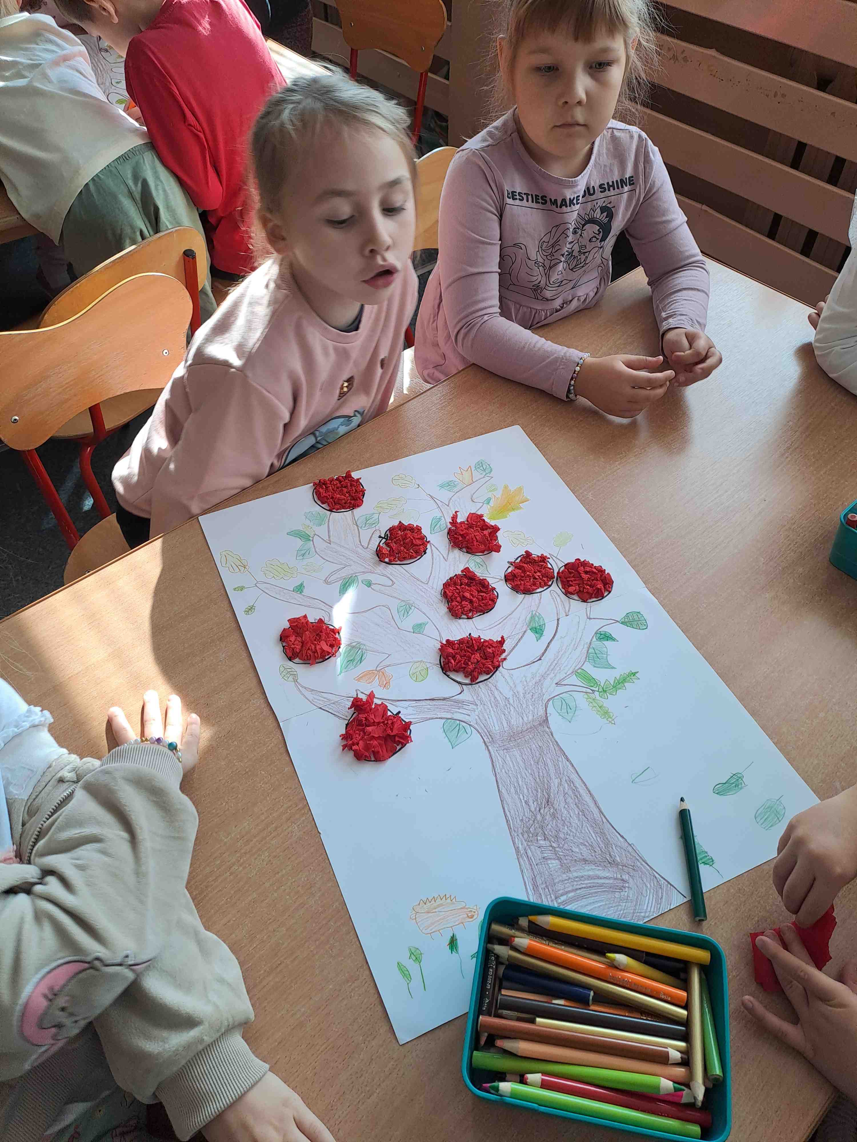 Dziś utrwalaliśmy nazwy i wygląd drzew owocowych. Ćwiczenia w kodowaniu oraz kolorowe prace plastyczne rozwijały nasze umiejętności logicznego myślenia, odwzorowywania, projektowania. A dodatkowo uczymy się współpracować w zespołach.