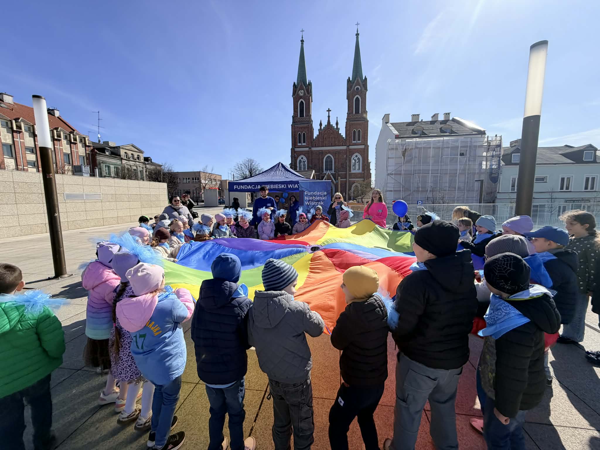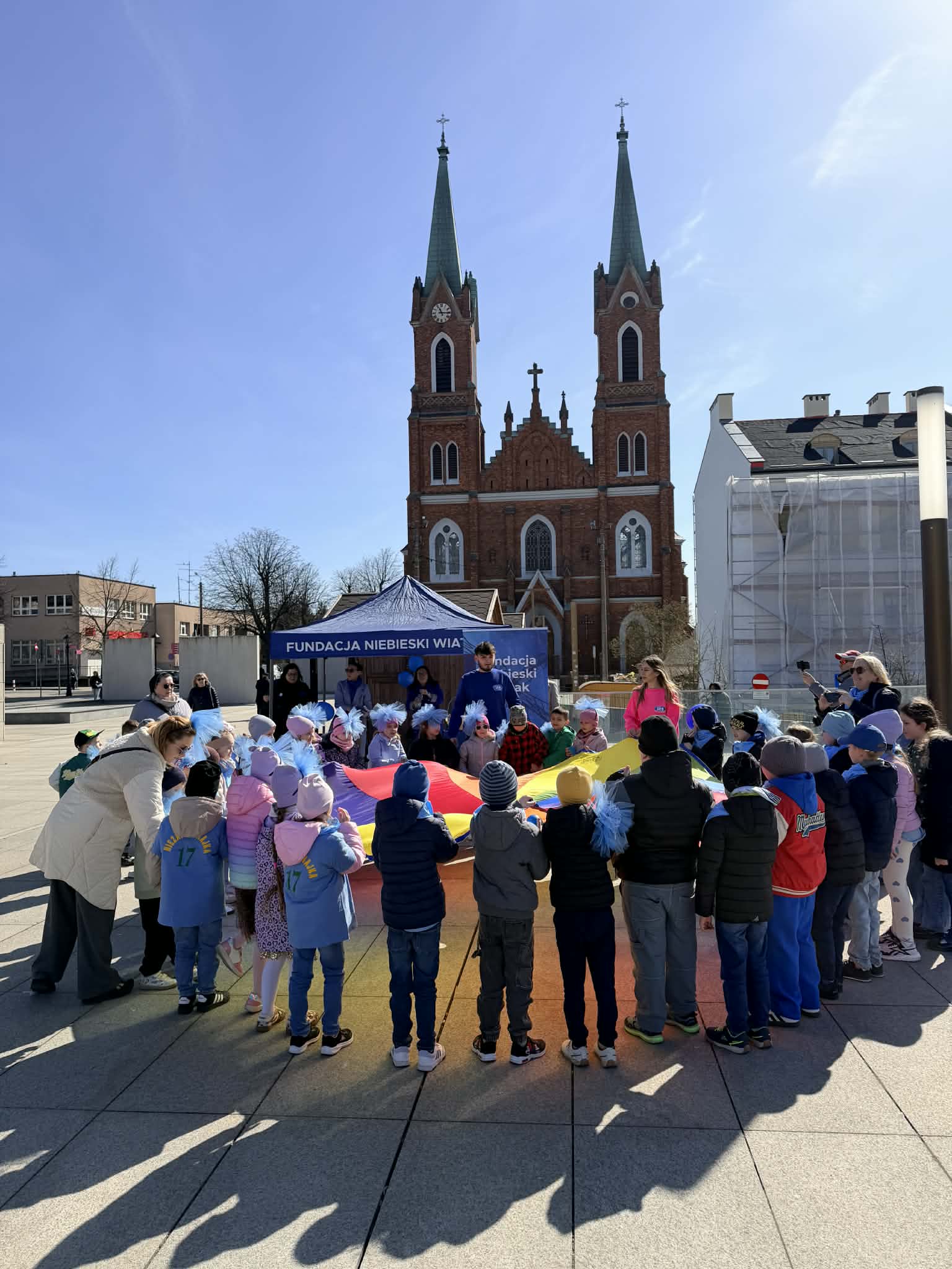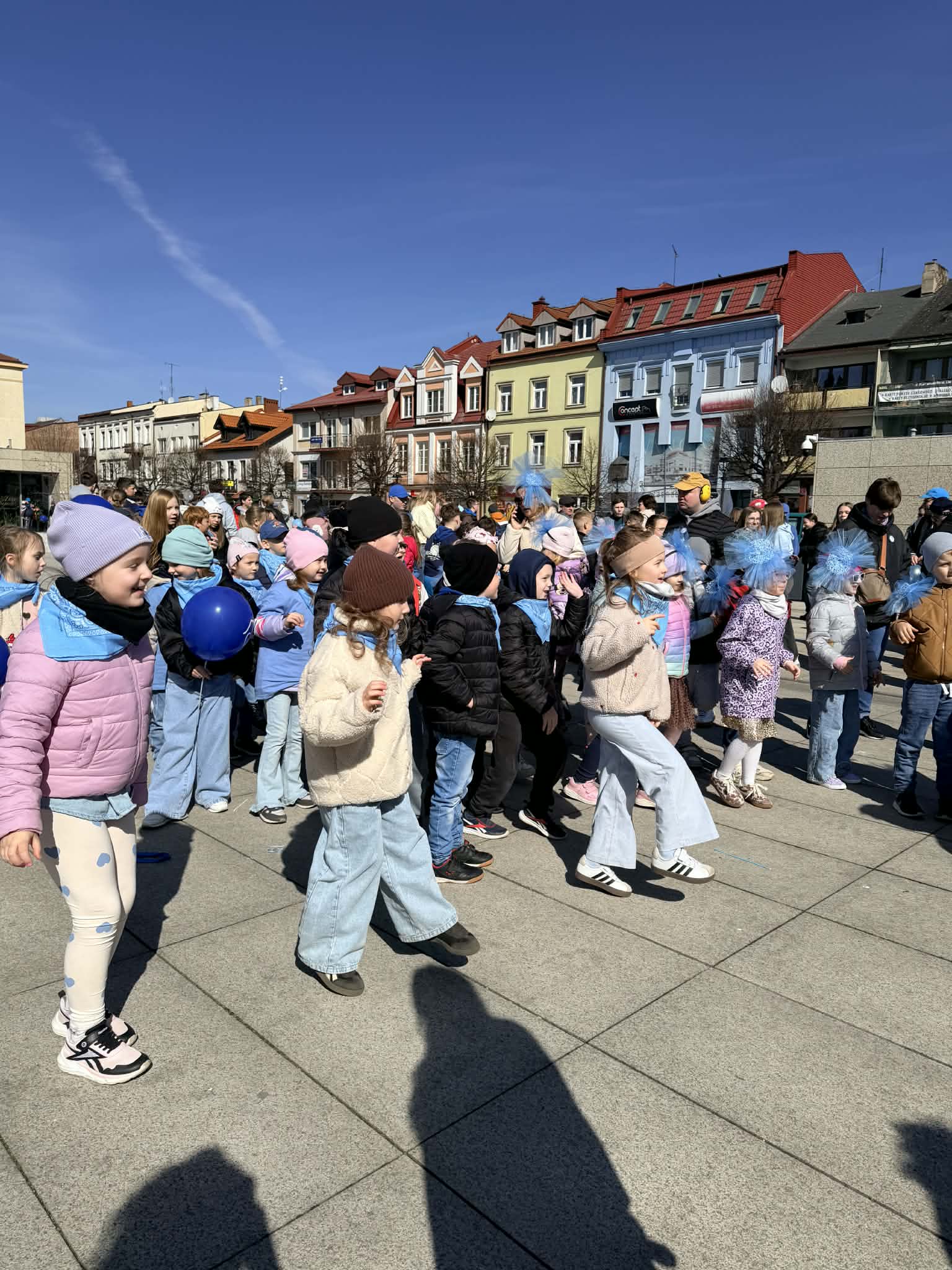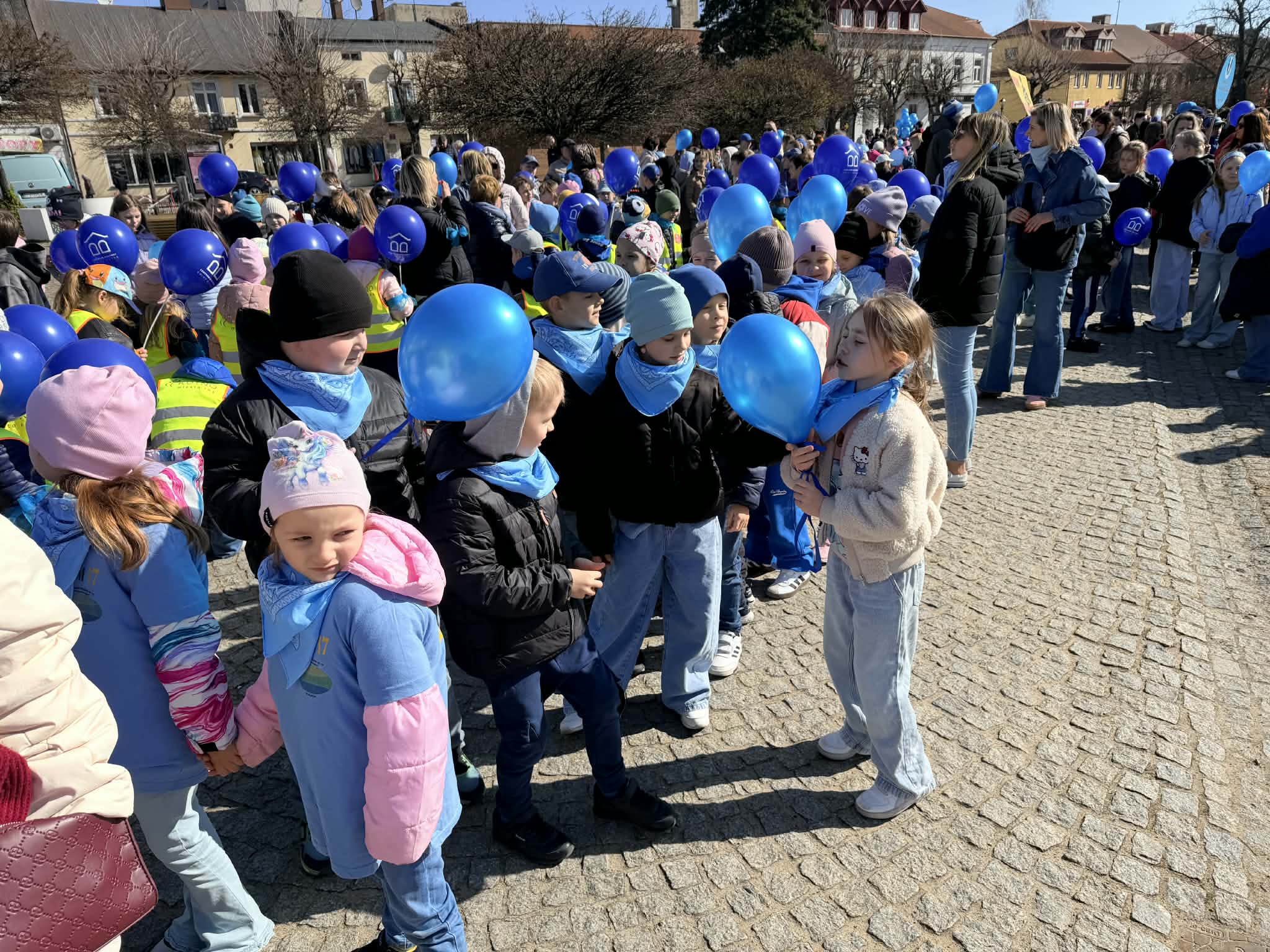 W dniu 01.04.2026r. dzieci z grupy III z oddziału zlokalizowanego przy ulicy Jana Zamoyskiego 1 wzięły udział w Marszu "Zaświeć się na niebiesko" organizowanym przez Fundację Niebieski Wiatrak, Miasto Kutno oraz Centrum Kultury Gminy Kutno. Marsz został zorganizowany w ramach obchodów Światowego Dnia Świadomości Autyzmu. Dzień wcześniej dzieci wzięły udział w zajęciach prowadzonych przez logopedę. Celem zajęć było rozwijanie u dzieci empatii, zrozumienia i akceptacji wobec osób z autyzmem.