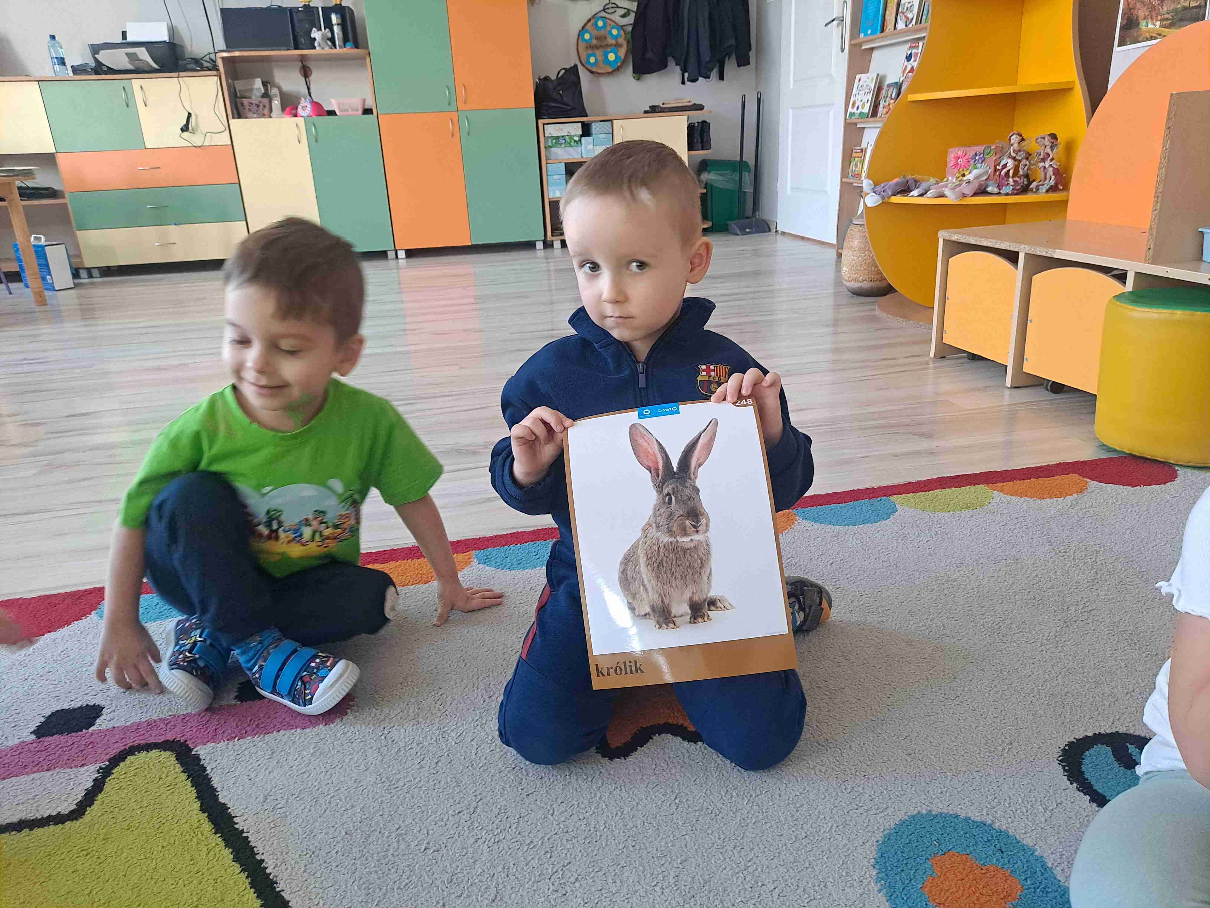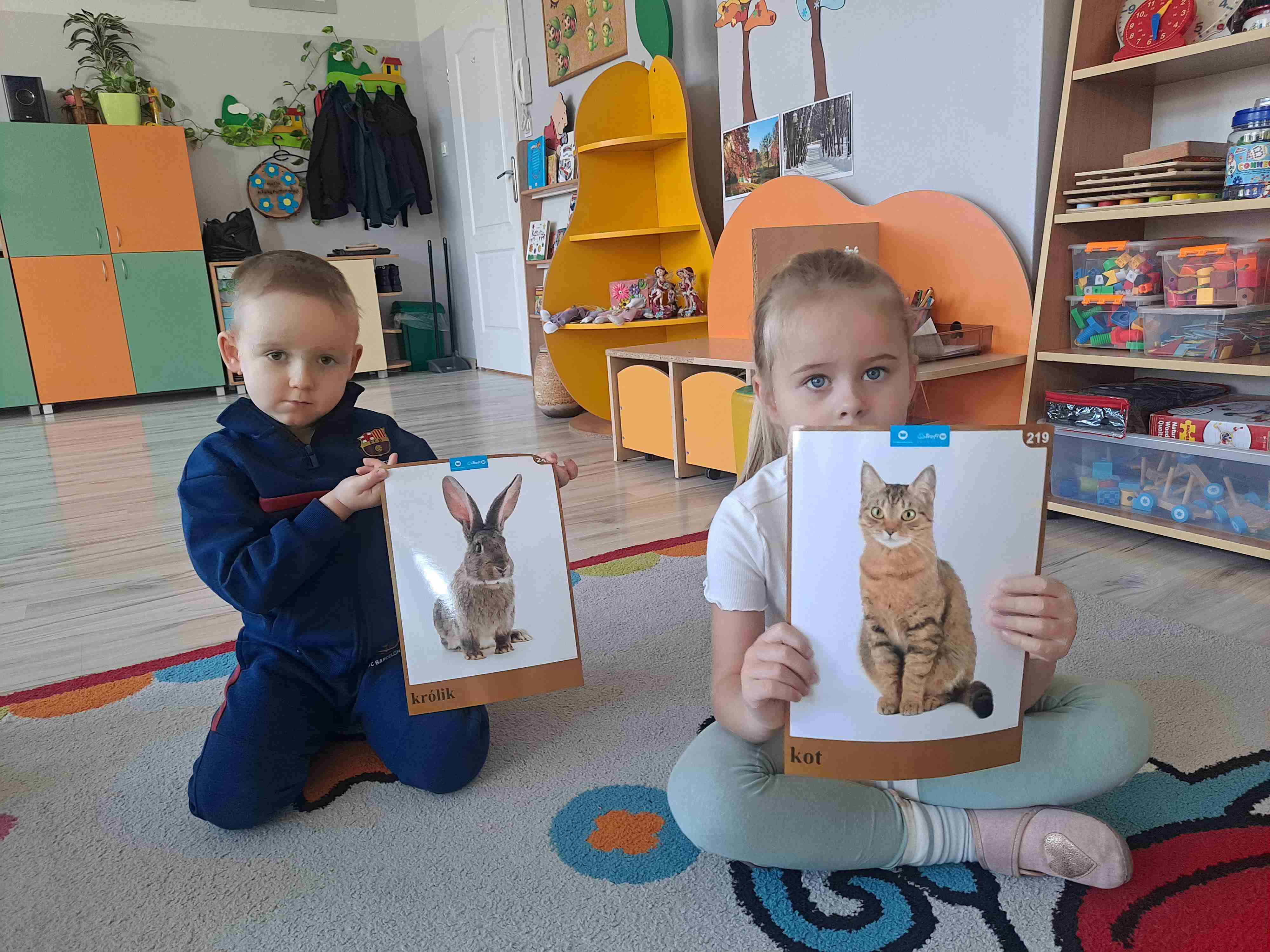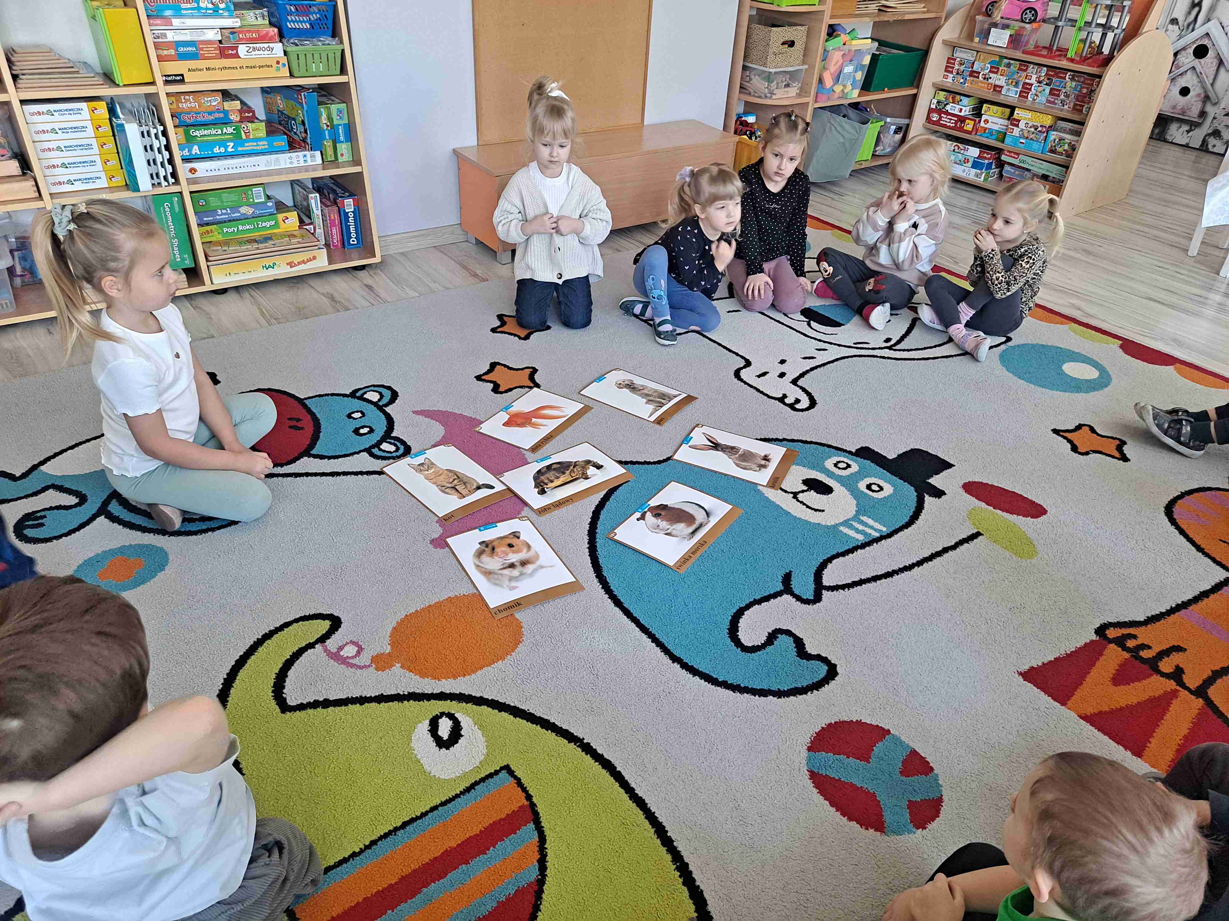 Dziś w naszej grupie odbyły się zajęcia pt. „Nasze zwierzątka domowe”. Dzieci rozmawiały z nauczycielką o zwierzętach, które mają w swoich domach oraz o tych, które mogą być domowymi pupilami. Wspólnie omawialiśmy, jak wyglądają, co jedzą oraz jak należy się nimi opiekować.