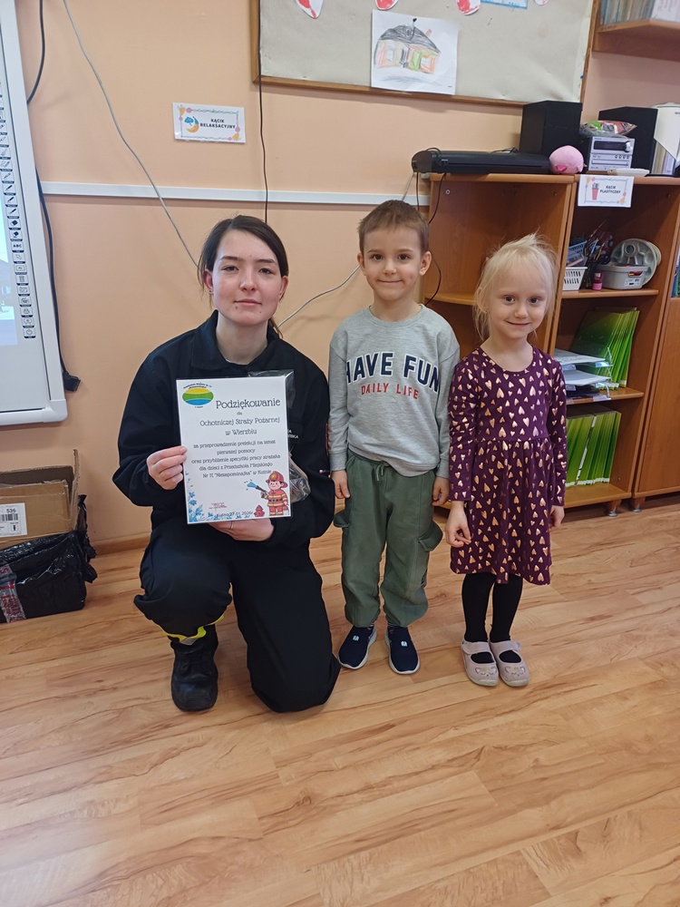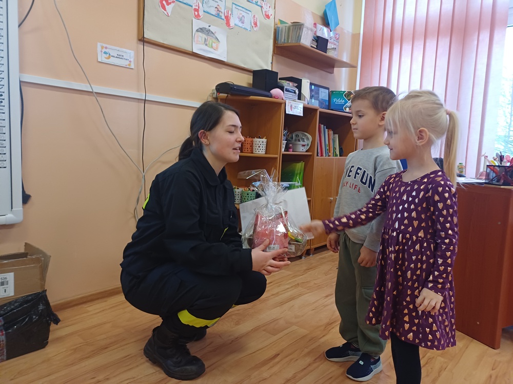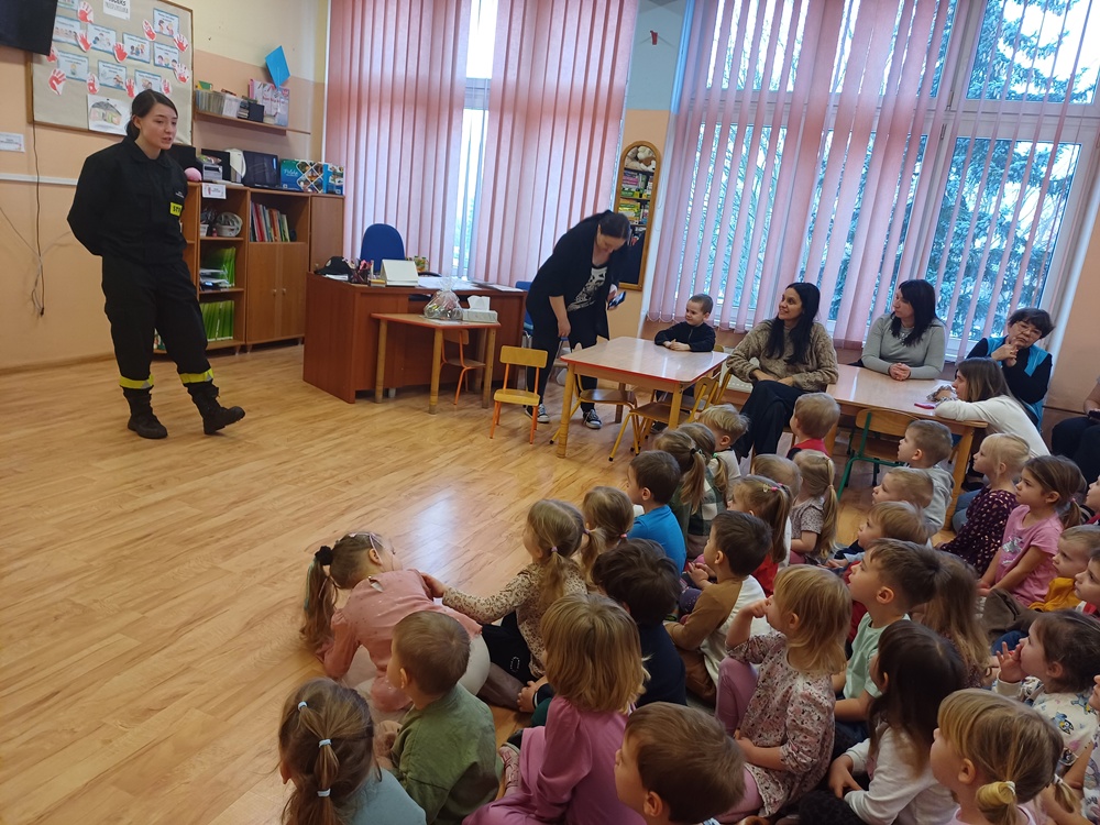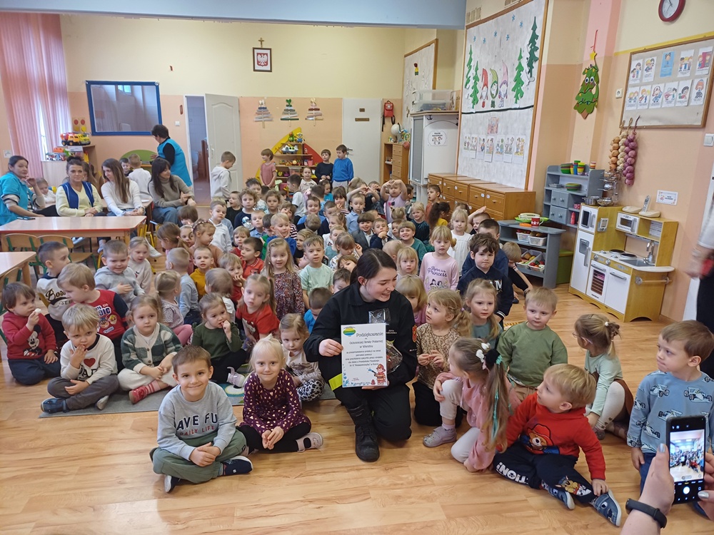 W naszym przedszkolu odbyło się wyjątkowe spotkanie z przedstawicielem Ochotniczej Straży Pożarnej w Wierzbiu. Podczas wizyty dzieci dowiedziały się o zasadach bezpiecznego spędzania ferii zimowych oraz o swojej odpowiedzialnej i niezwykle ważnej pracy. Przedszkolaki dowiedziały się, czym zajmuje się straż pożarna, w jakich sytuacjach niesie pomoc. Spotkanie było bardzo ciekawe i dostarczyło dzieciom wielu nowych wiadomości. Na zakończenie przedszkolaki serdecznie podziękowały za poświęcony czas, ciekawe opowieści oraz cenne wskazówki dotyczące bezpieczeństwa.
