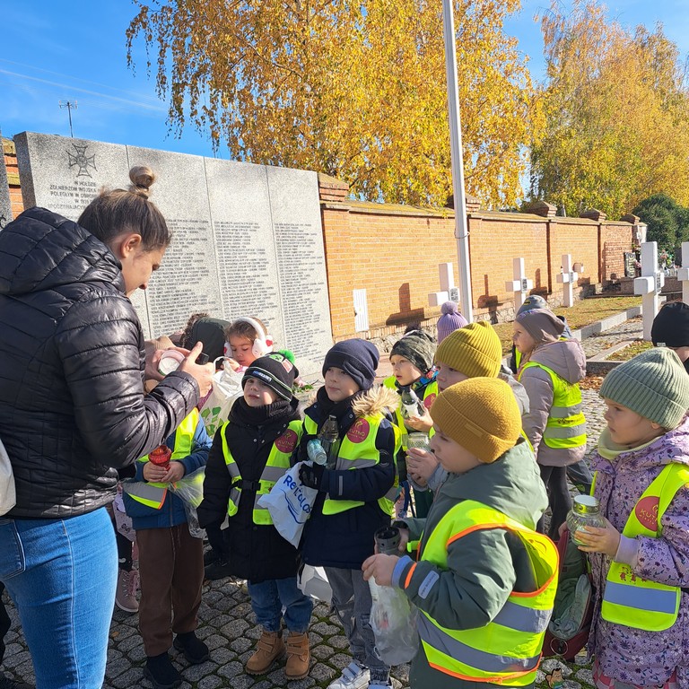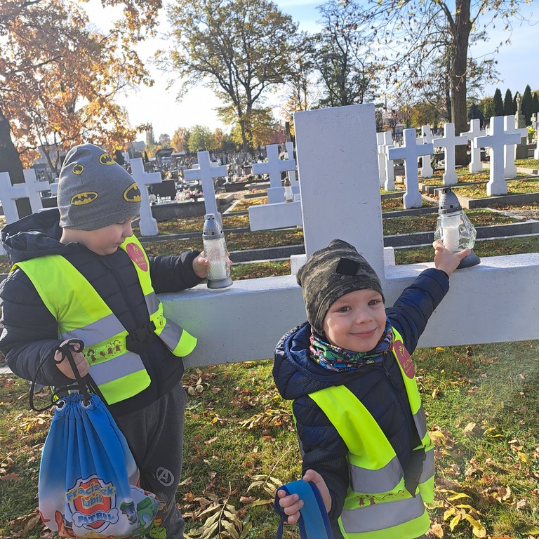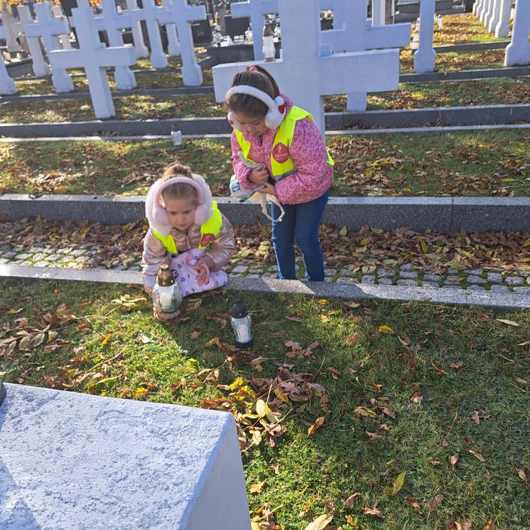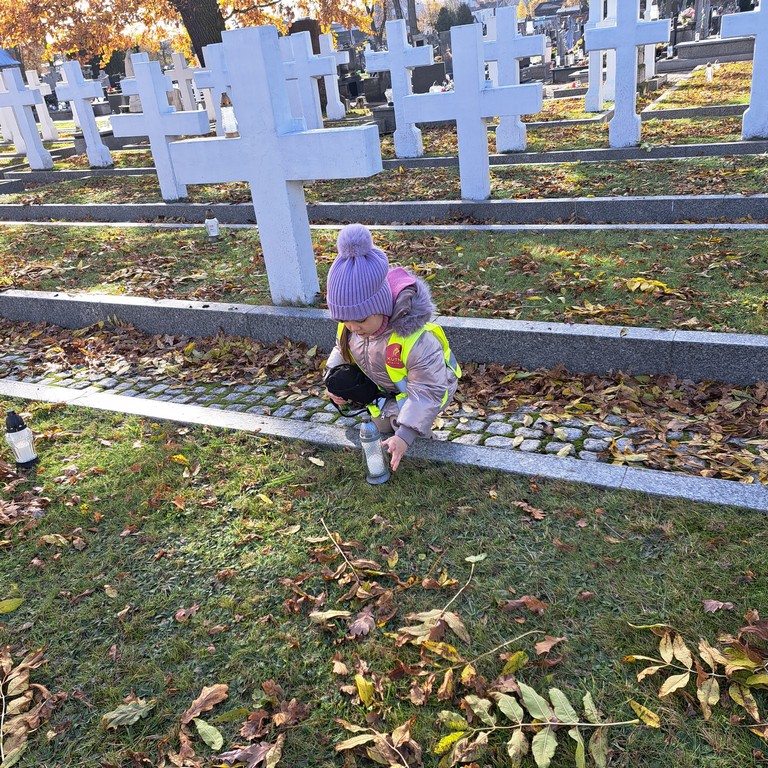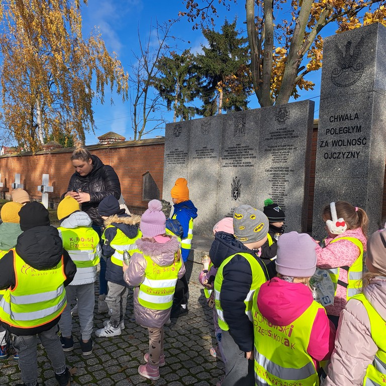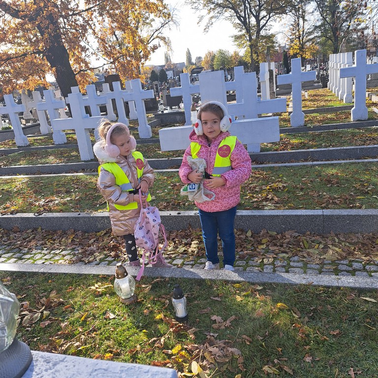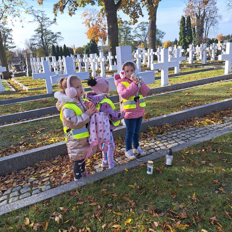 Podczas pobytu na cmentarzu Przedszkolaki mogły w ciszy i zadumie posłuchać opowieści na temat przeszłości naszej ojczyzny, zapalić znicze na Grobie Nieznanego Żołnierza i tym samym oddać hołd poległym, którzy walczyli w obronie naszej ojczyzny. Wychowankowie dowiedzieli się także, jak należy zachowywać się na cmentarzu, by nie zakłócać spokoju zmarłych i osób odwiedzających to miejsce.