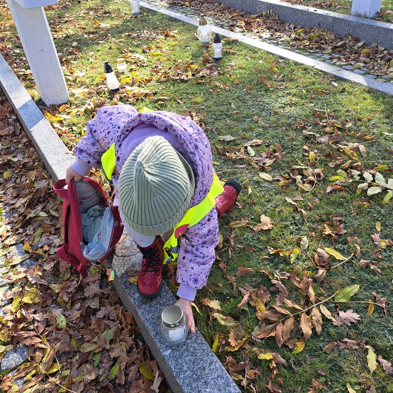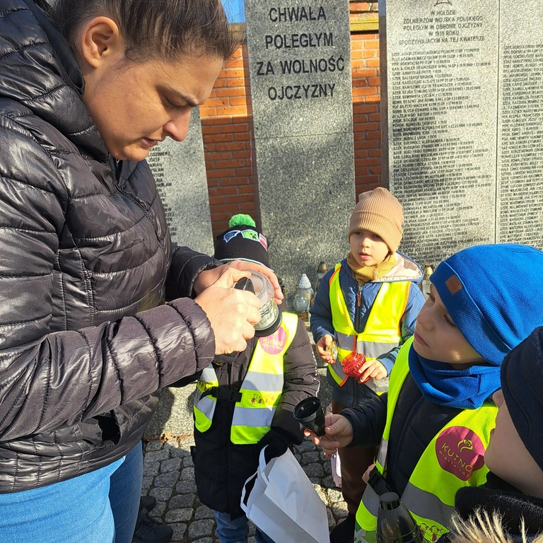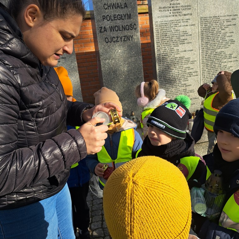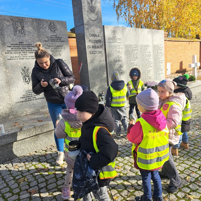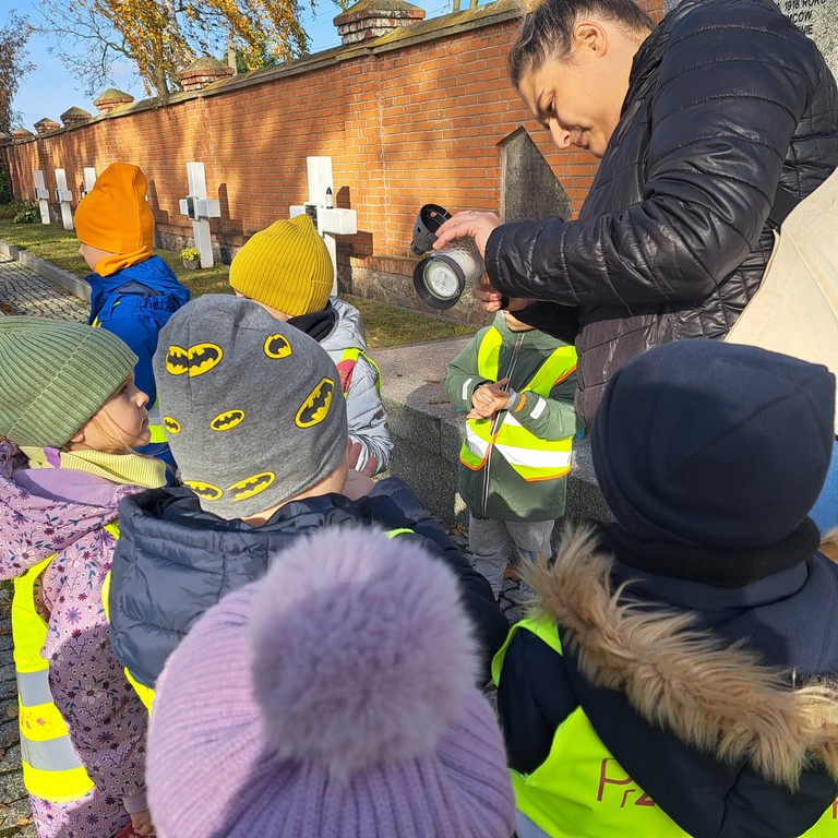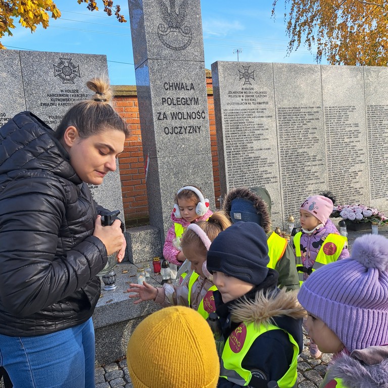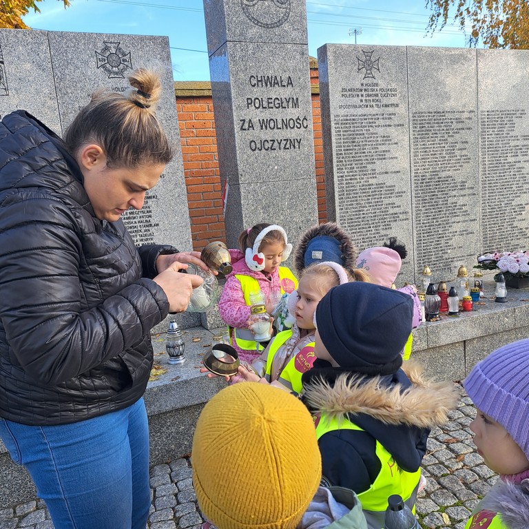 Podczas pobytu na cmentarzu Przedszkolaki mogły w ciszy i zadumie posłuchać opowieści na temat przeszłości naszej ojczyzny, zapalić znicze na Grobie Nieznanego Żołnierza i tym samym oddać hołd poległym, którzy walczyli w obronie naszej ojczyzny. Wychowankowie dowiedzieli się także, jak należy zachowywać się na cmentarzu, by nie zakłócać spokoju zmarłych i osób odwiedzających to miejsce.