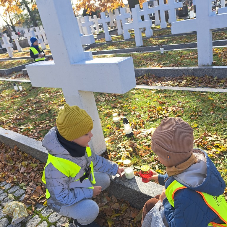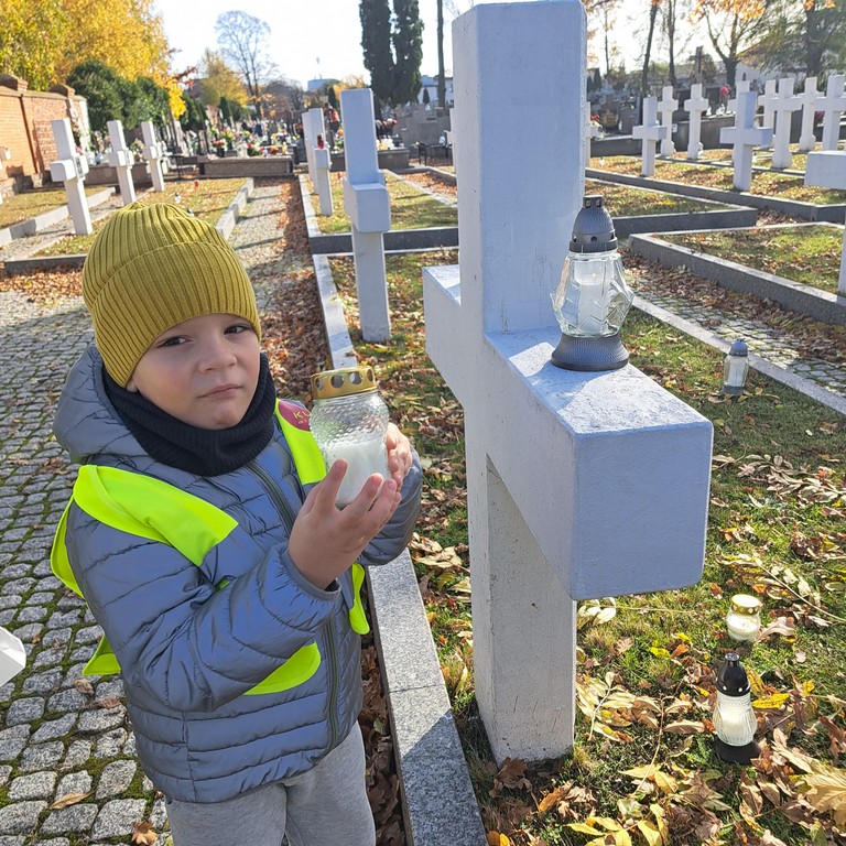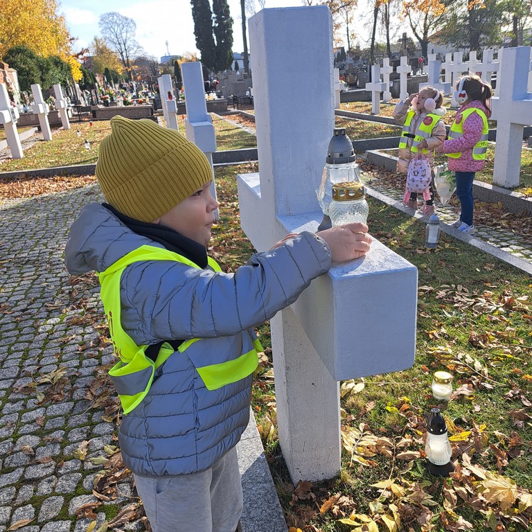 Spacer alejkami cmentarza był dla Dzieci ogromnym przeżyciem, szły skupione i bardzo zaciekawione. To była jedna z ważniejszych lekcji wychowania rodzinnego, obywatelskiego i patriotycznego, która z pewnością pozostanie w pamięci dzieci.