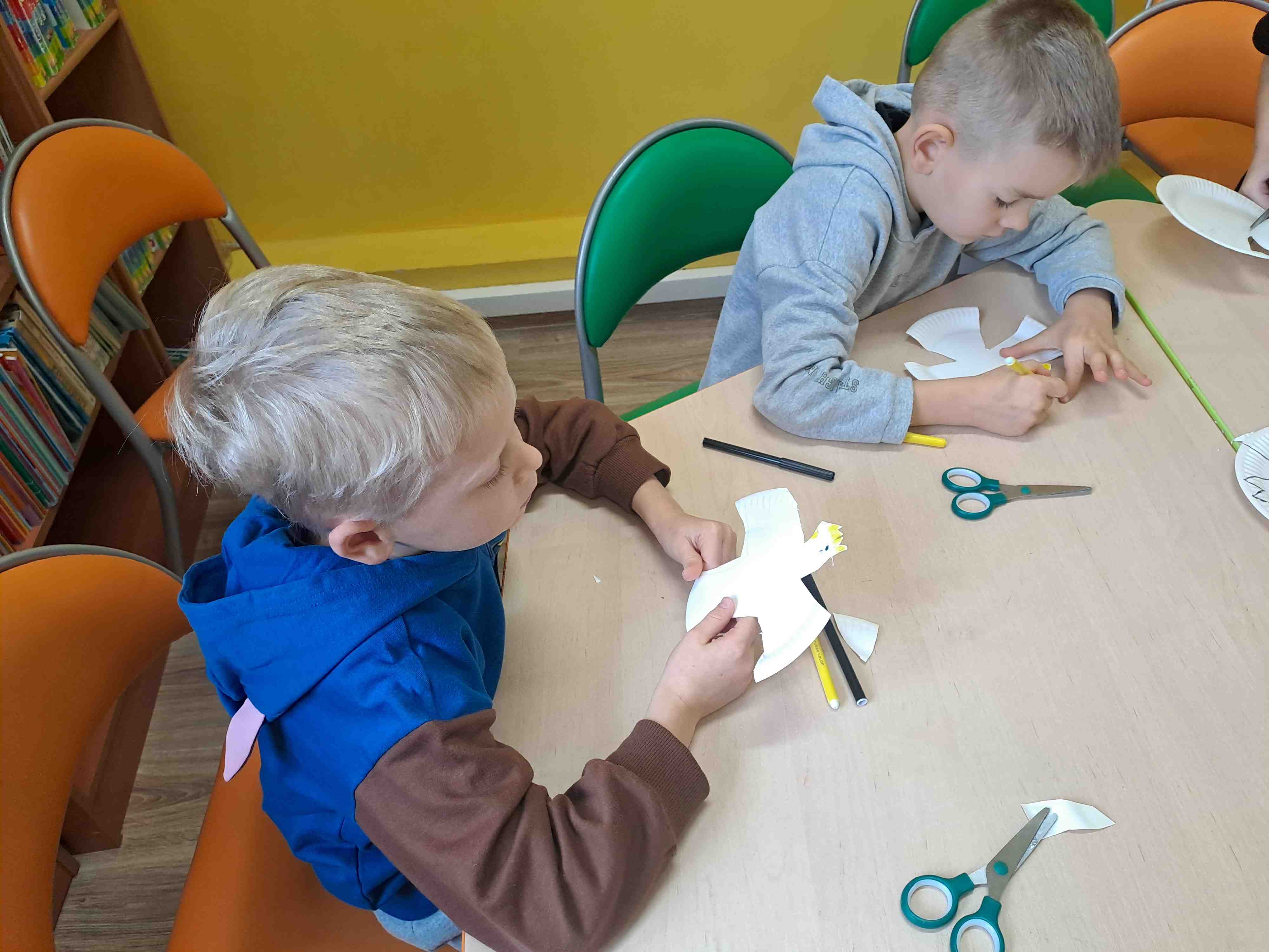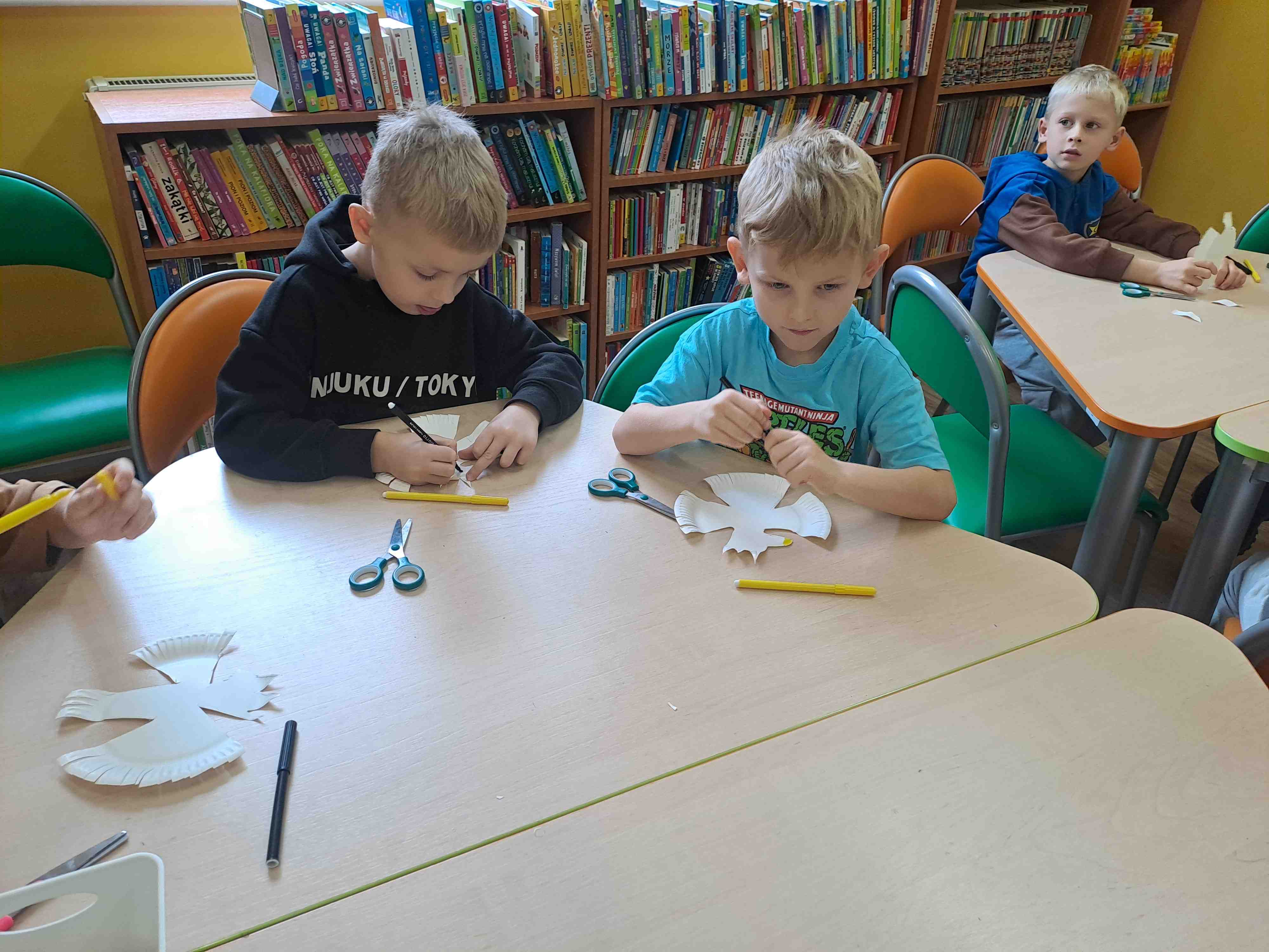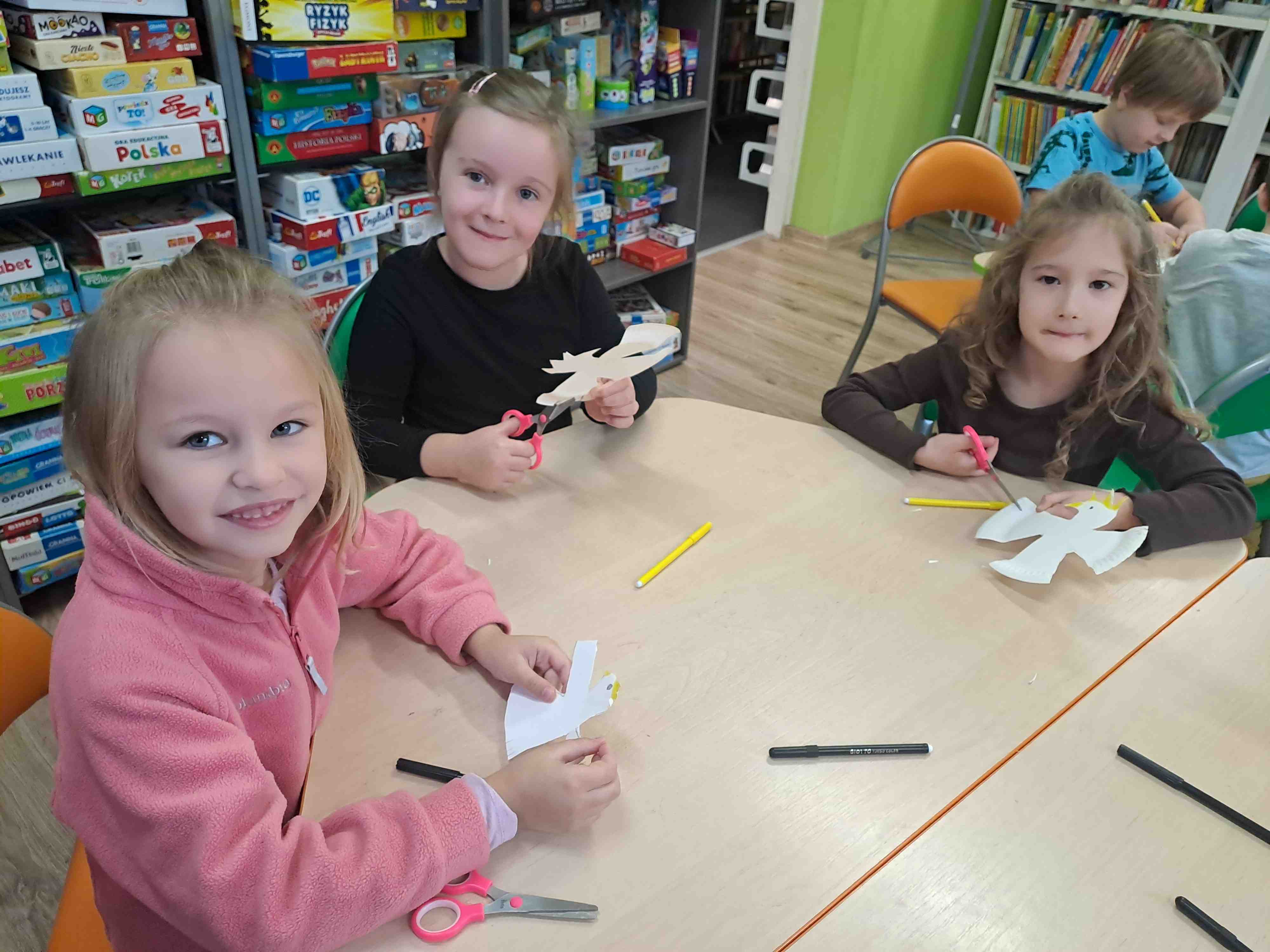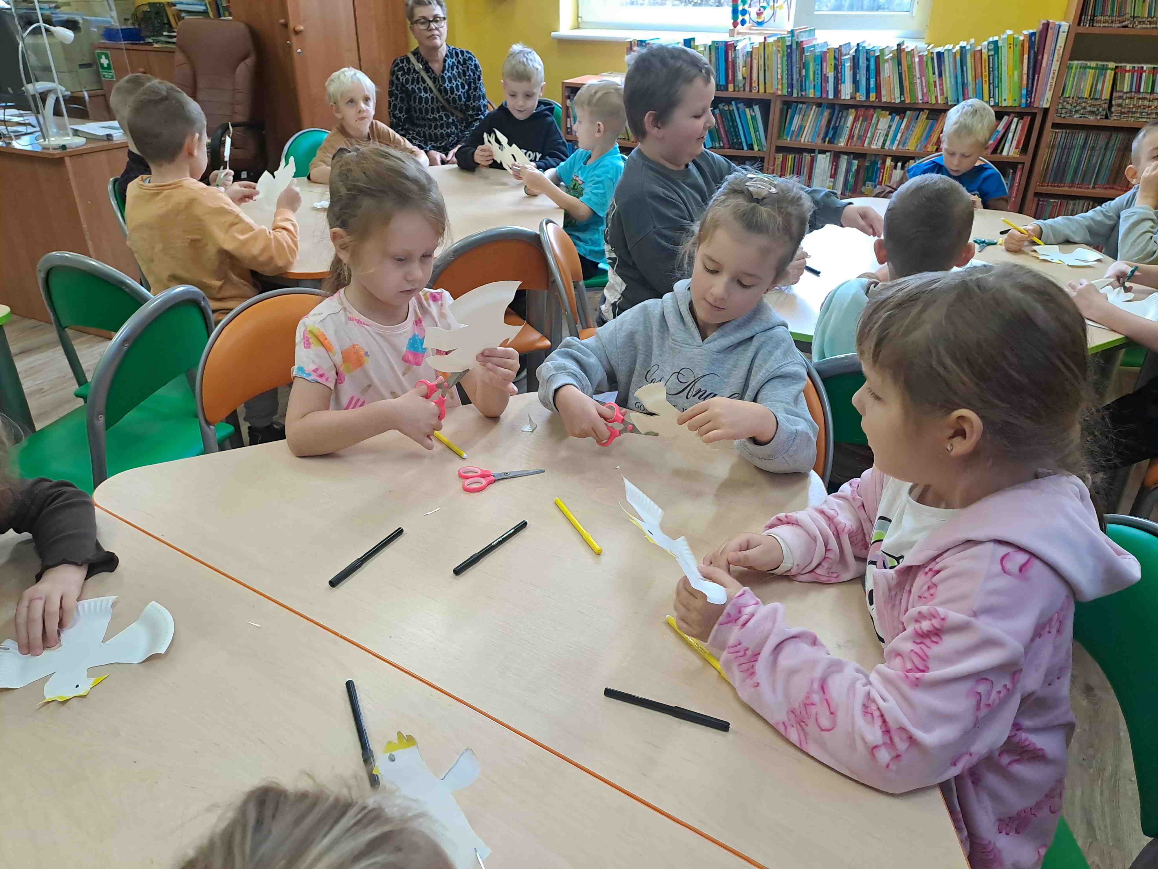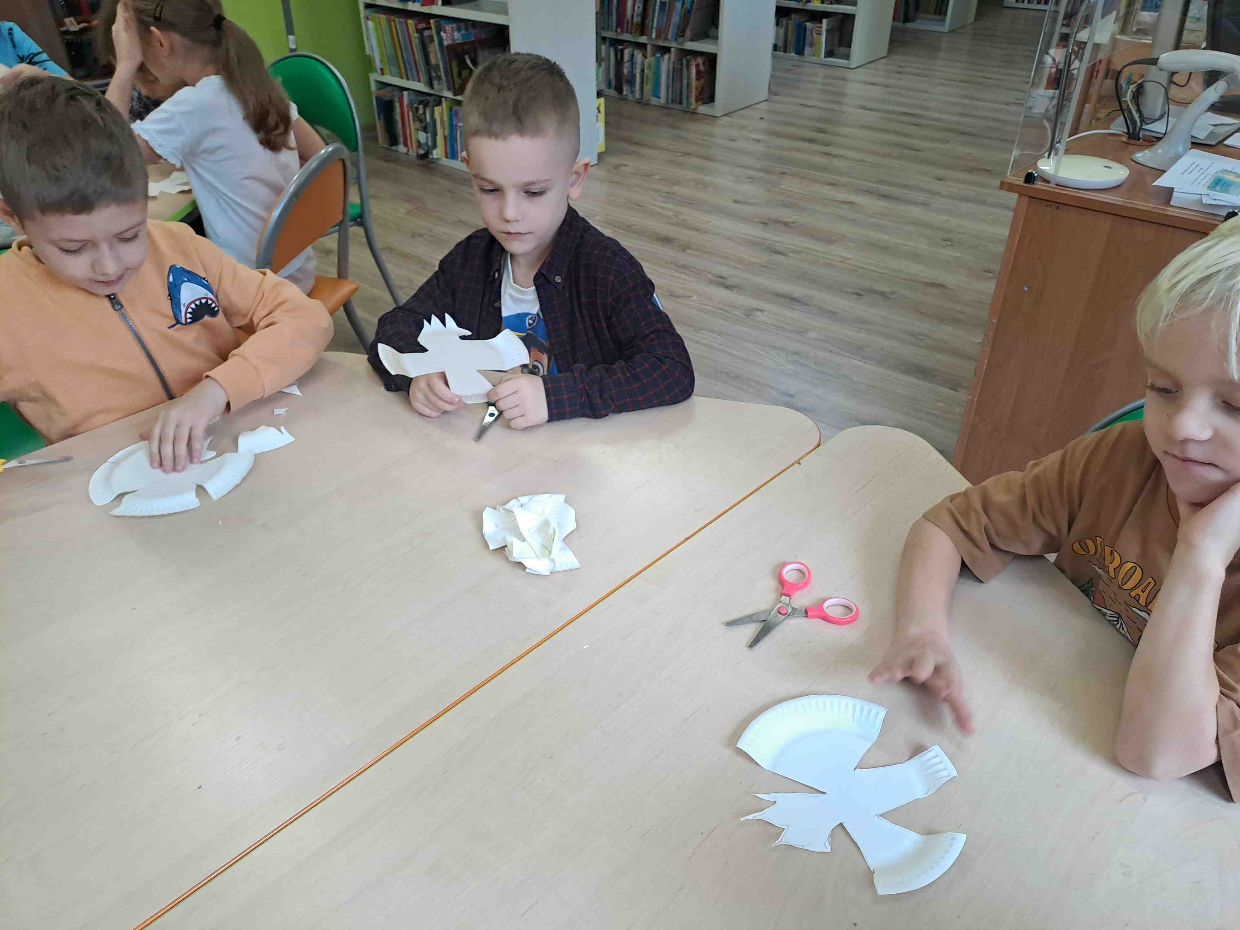 Podczas dzisiejszych zajęć w Bibliotece Miejskiej Motylki omawiały tematykę polskich symboli narodowych. Wspólnie z panią Moniką opowiedziały legendę o założeniu państwa polskiego - "O Lechu, Czechu i Rusie". Recytowały wiersz W. Bełzy "Katechizm polskiego dziecka". Miały okazję zaobserwować, jak zmieniał się wygląd polskiego godła na przestrzeni wieków. Zwieńczeniem zajęć było wykonanie pracy plastycznej z wykorzystaniem papierowych talerzyków i czerwonych kartek, które dzieci przerobiły na wizerunek białego orła na czerwonym tle czyli współczesnego godła Polski.