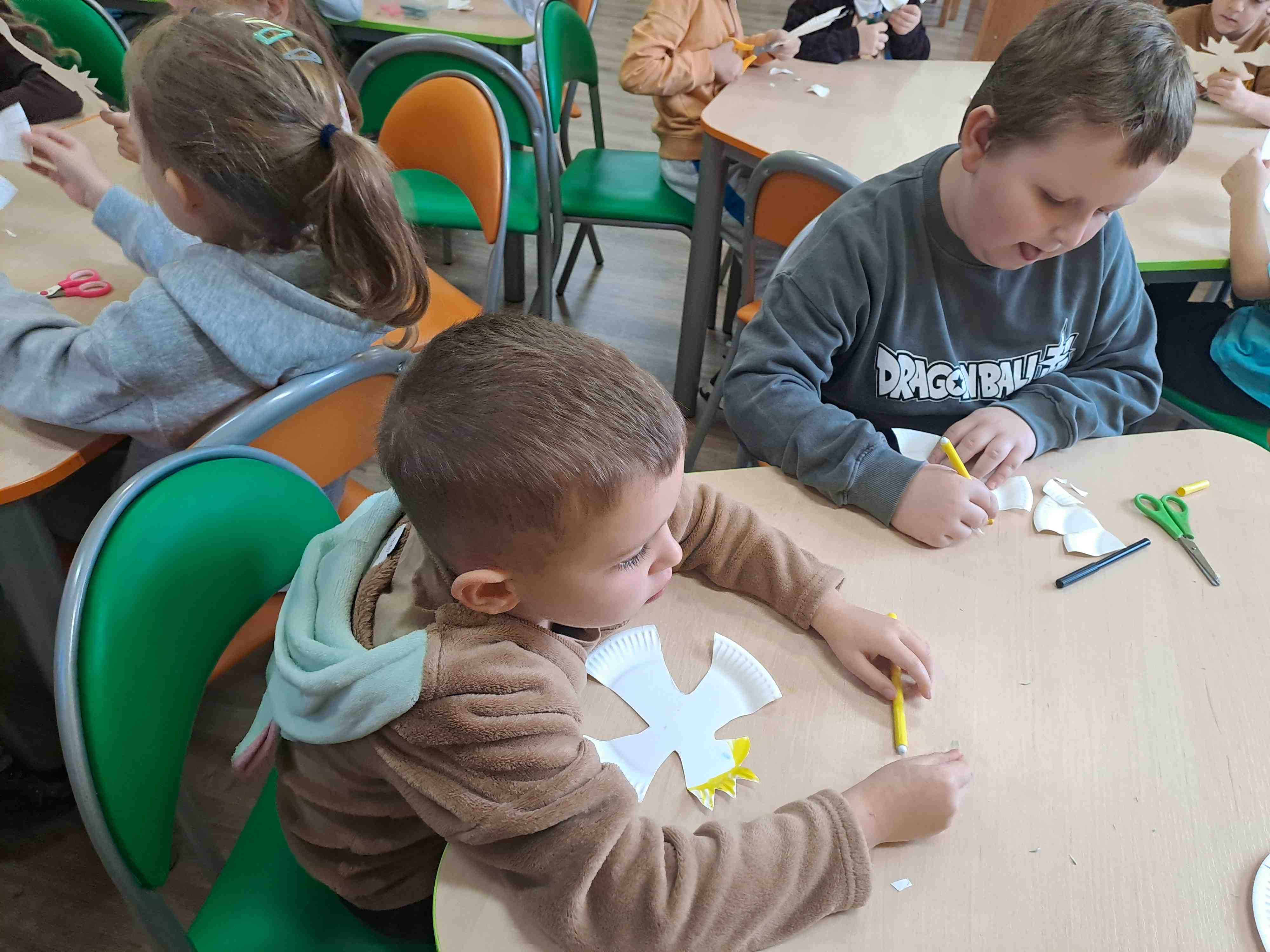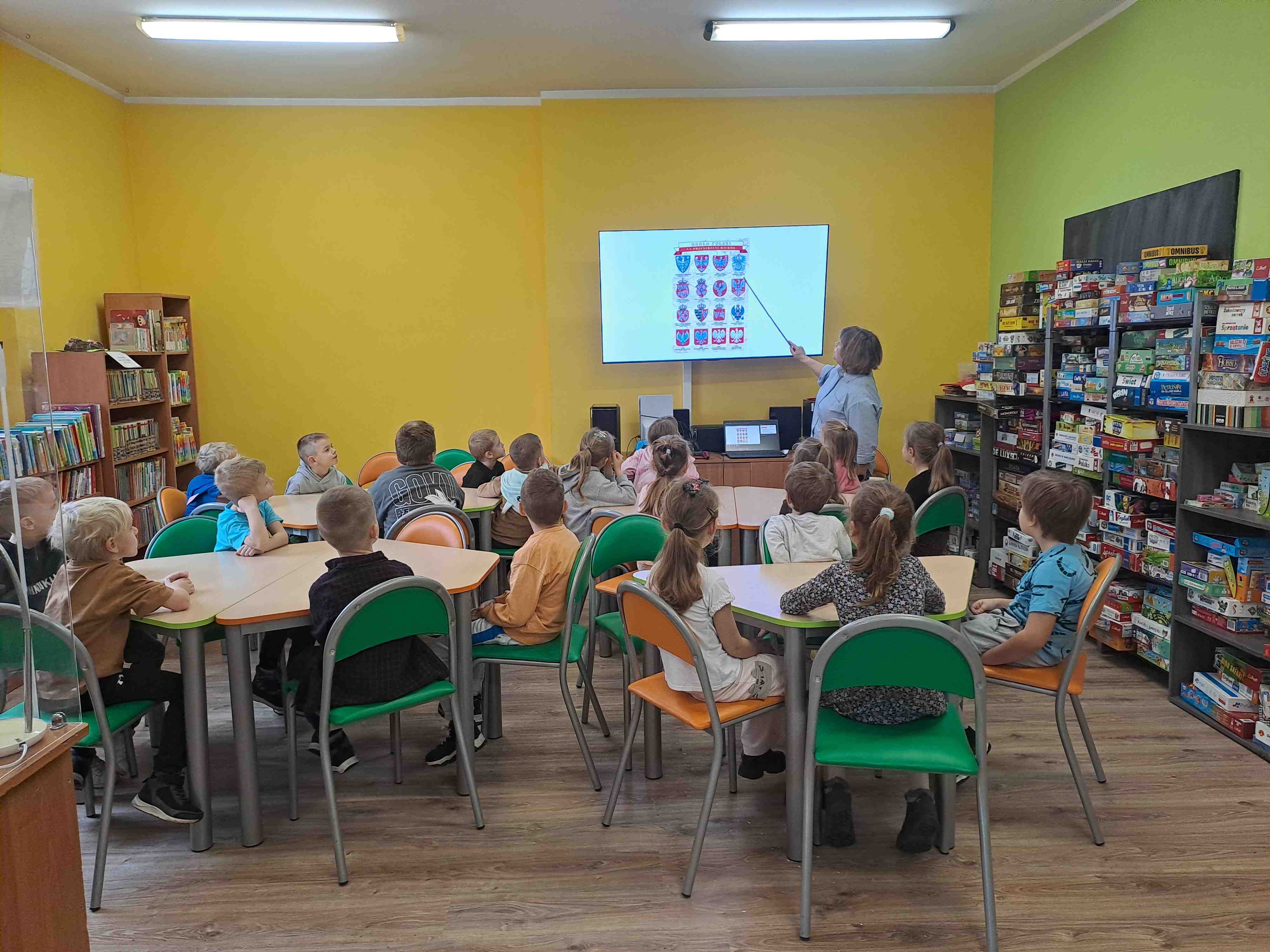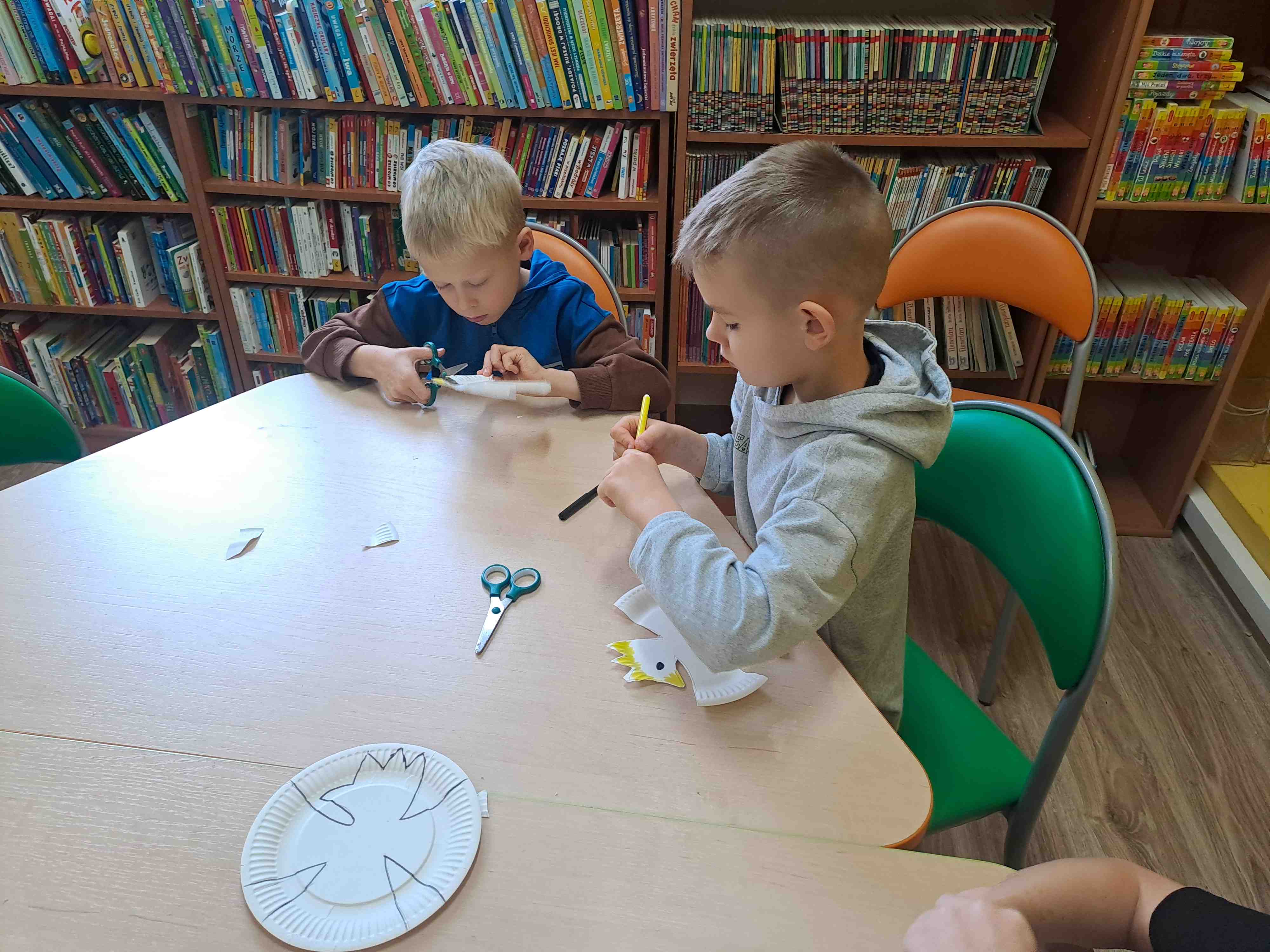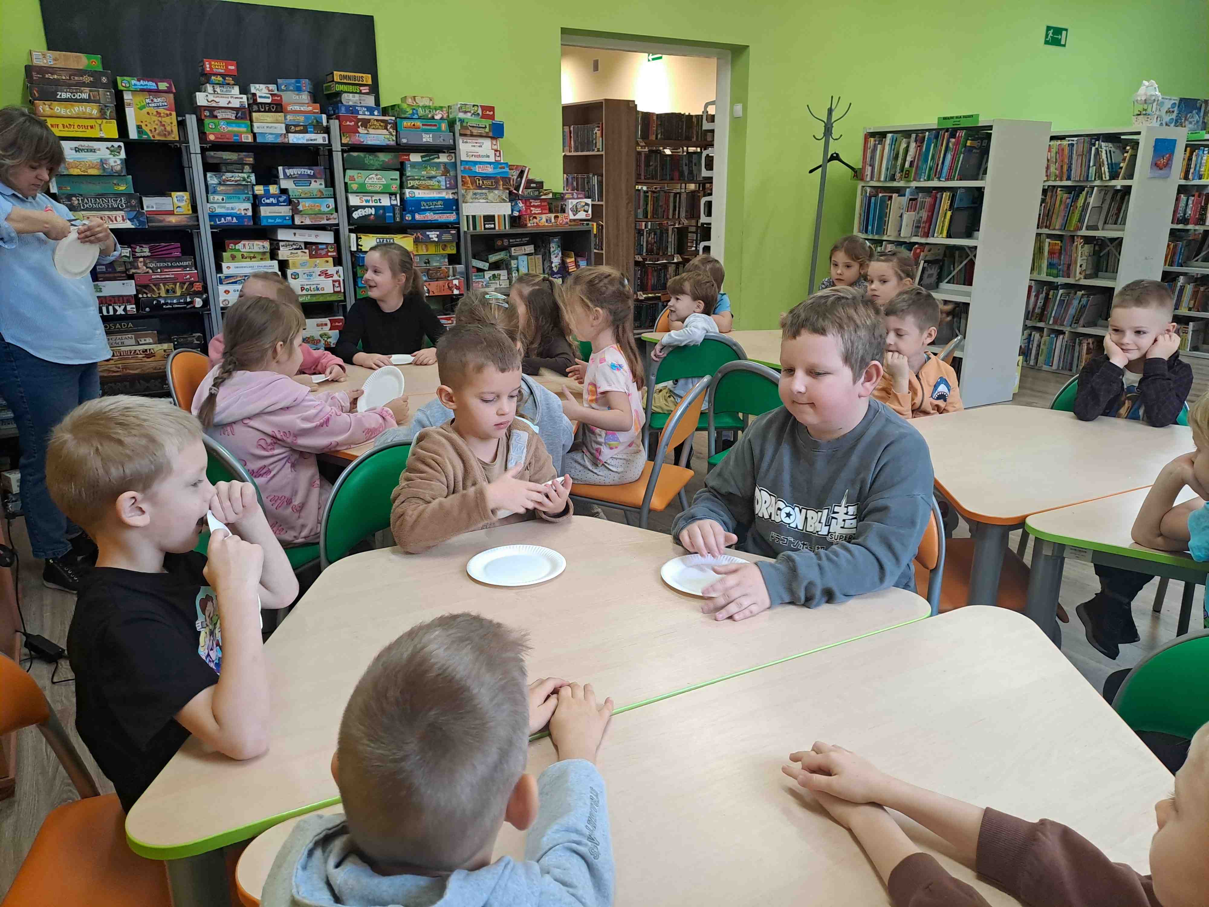 Podczas dzisiejszych zajęć w Bibliotece Miejskiej Motylki omawiały tematykę polskich symboli narodowych. Wspólnie z panią Moniką opowiedziały legendę o założeniu państwa polskiego - "O Lechu, Czechu i Rusie". Recytowały wiersz W. Bełzy "Katechizm polskiego dziecka". Miały okazję zaobserwować, jak zmieniał się wygląd polskiego godła na przestrzeni wieków. Zwieńczeniem zajęć było wykonanie pracy plastycznej z wykorzystaniem papierowych talerzyków i czerwonych kartek, które dzieci przerobiły na wizerunek białego orła na czerwonym tle czyli współczesnego godła Polski.
